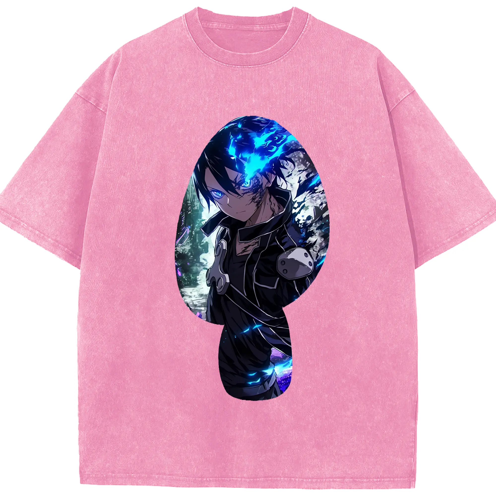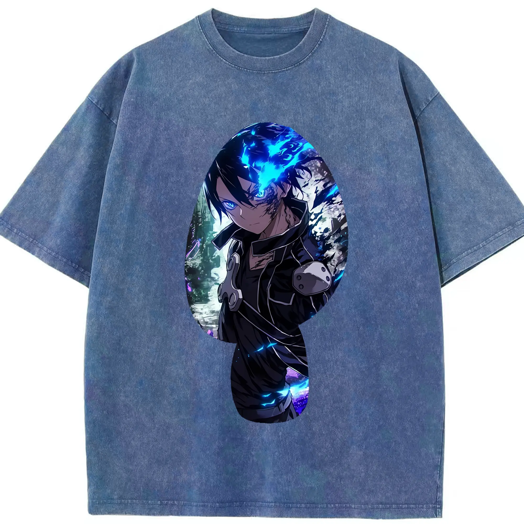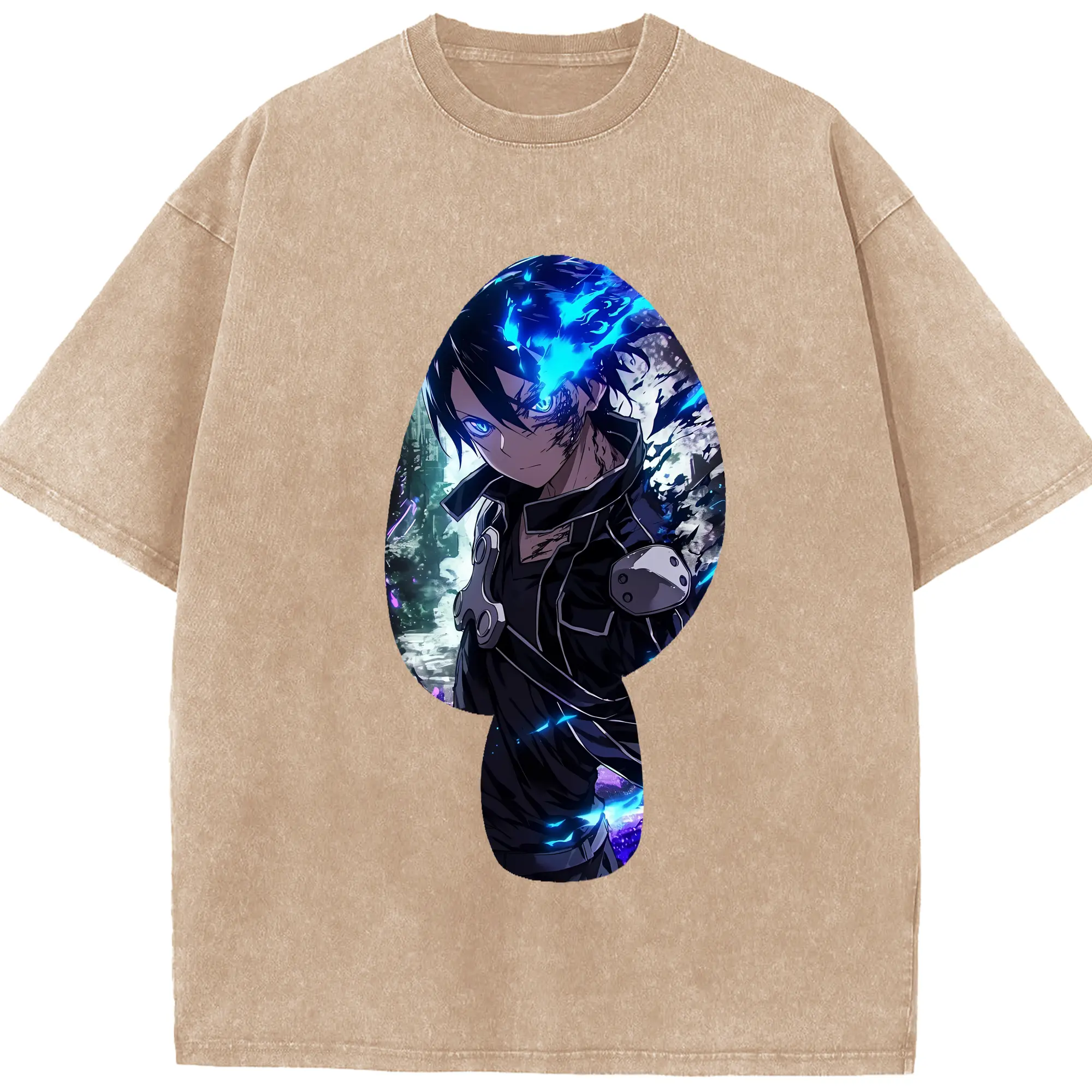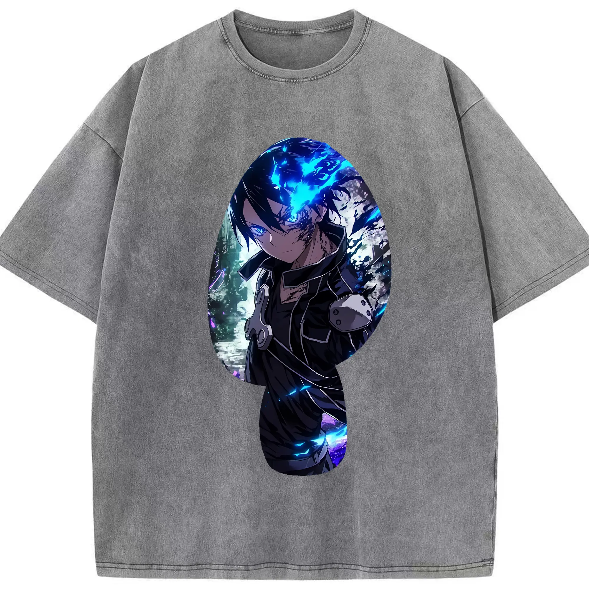 ソードアートオンライン グッズ キリト - 綿100% ヴィンテージ風 半袖Tシャツ ・ 背面プリント ・ 柔らか肌触り ・ 通気性 快適 ・ スポーツ カジュアル 外出用