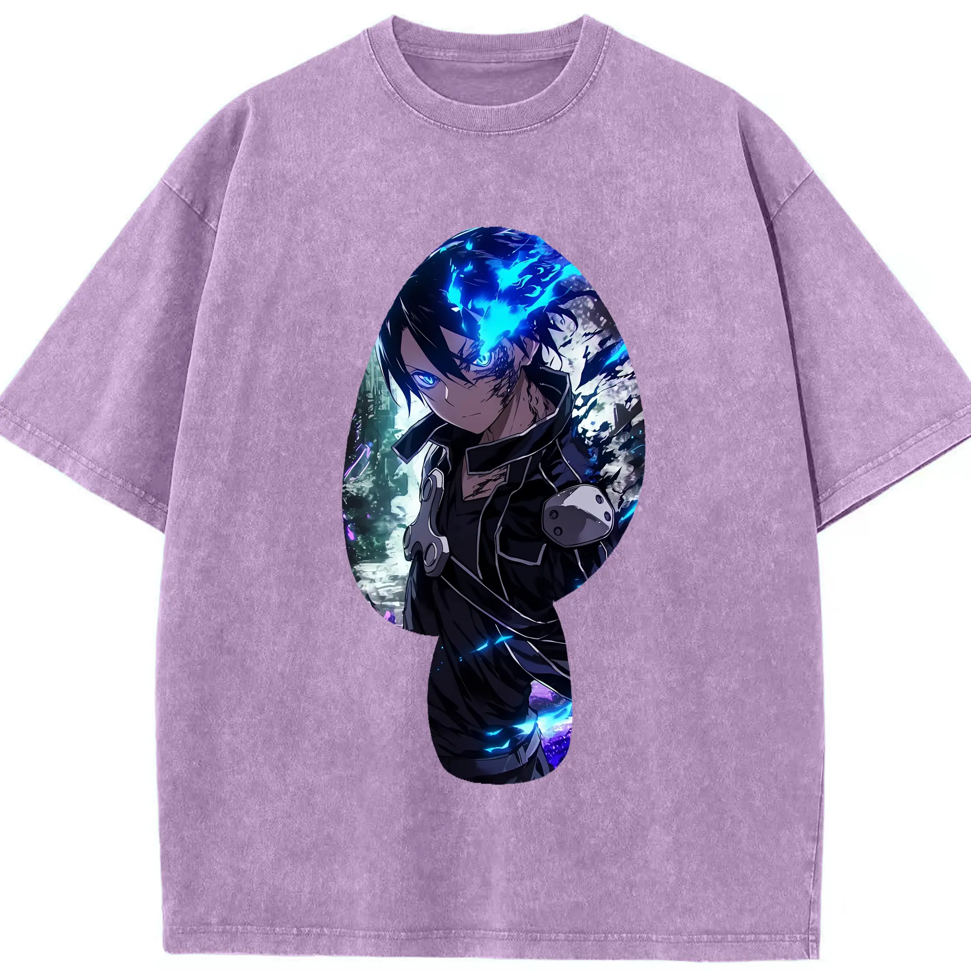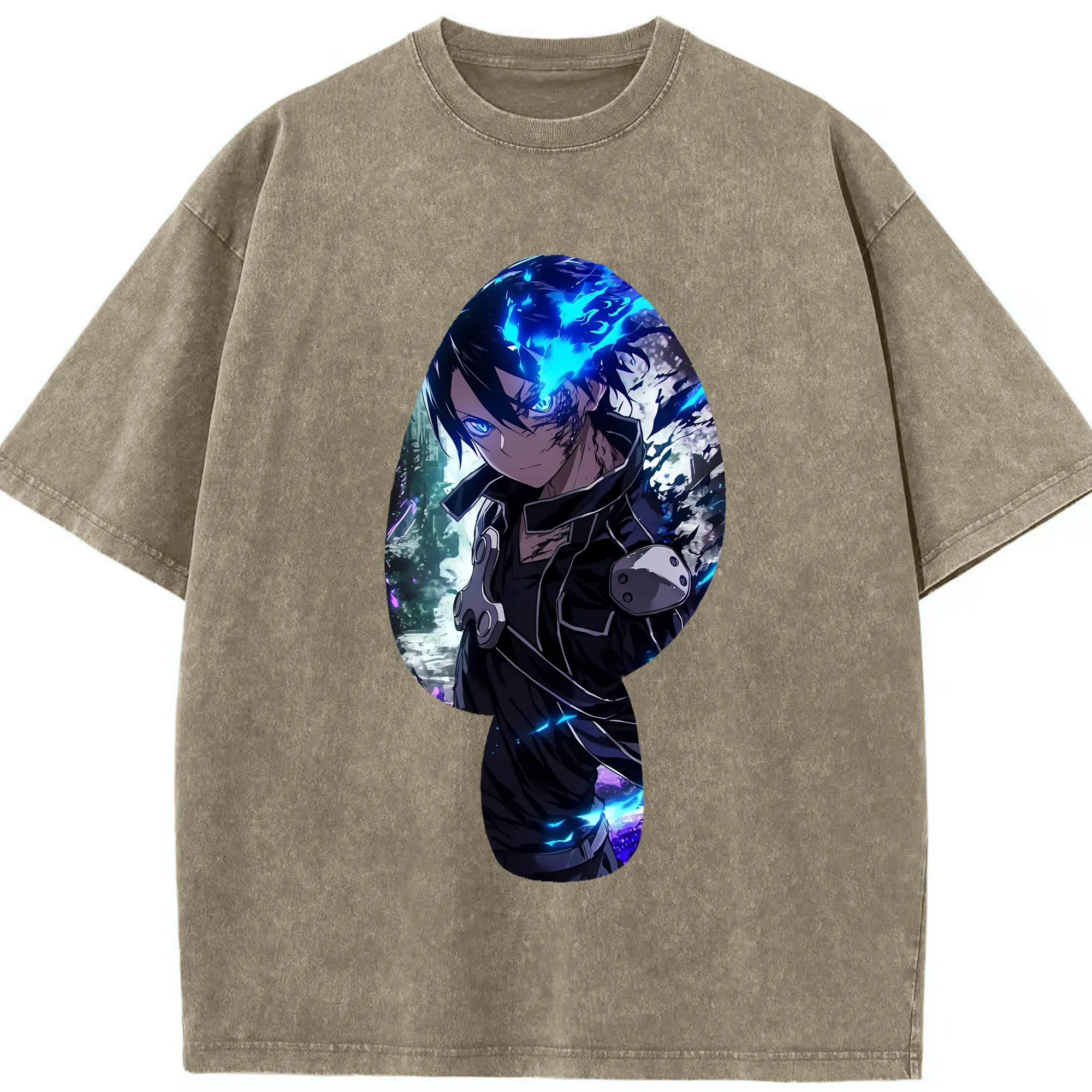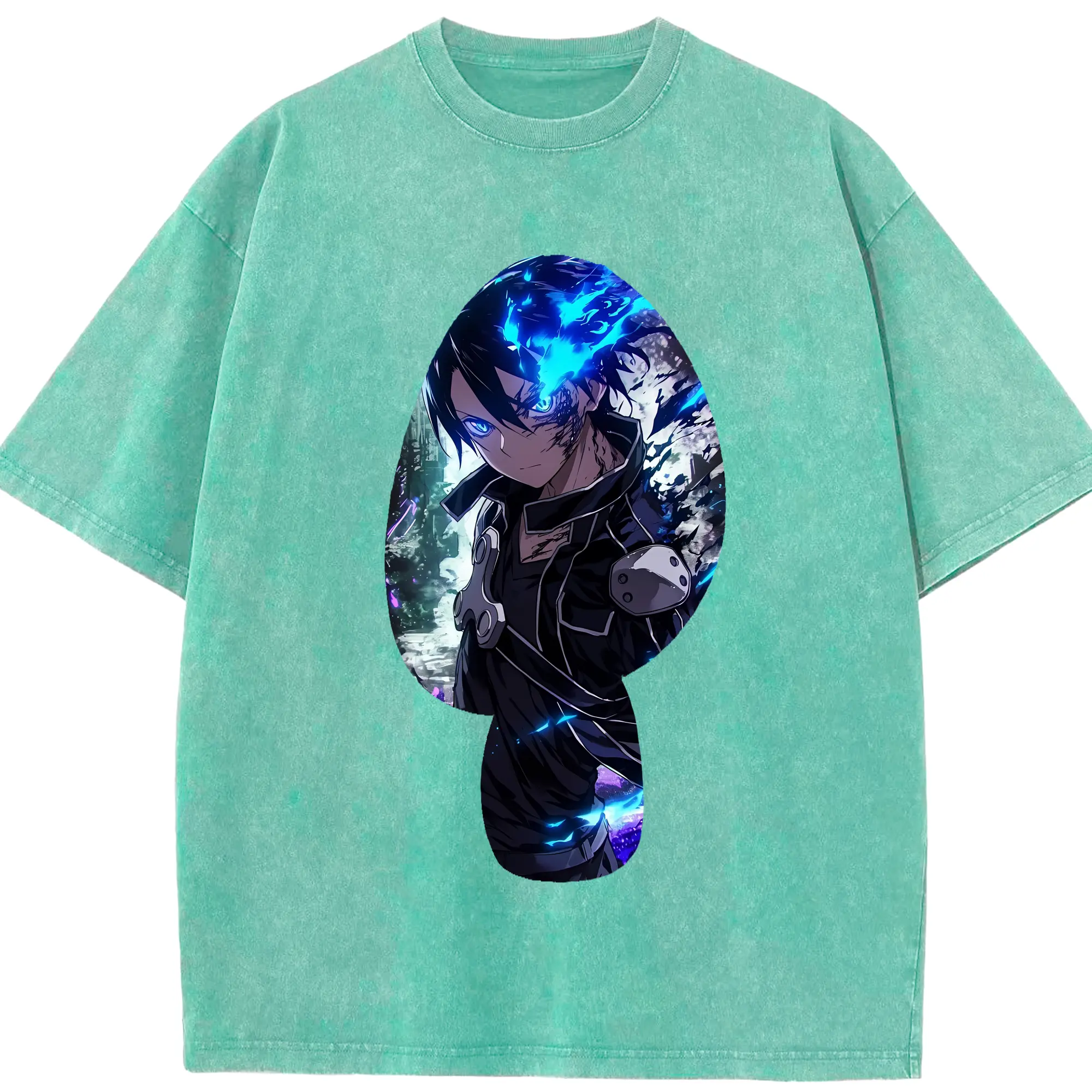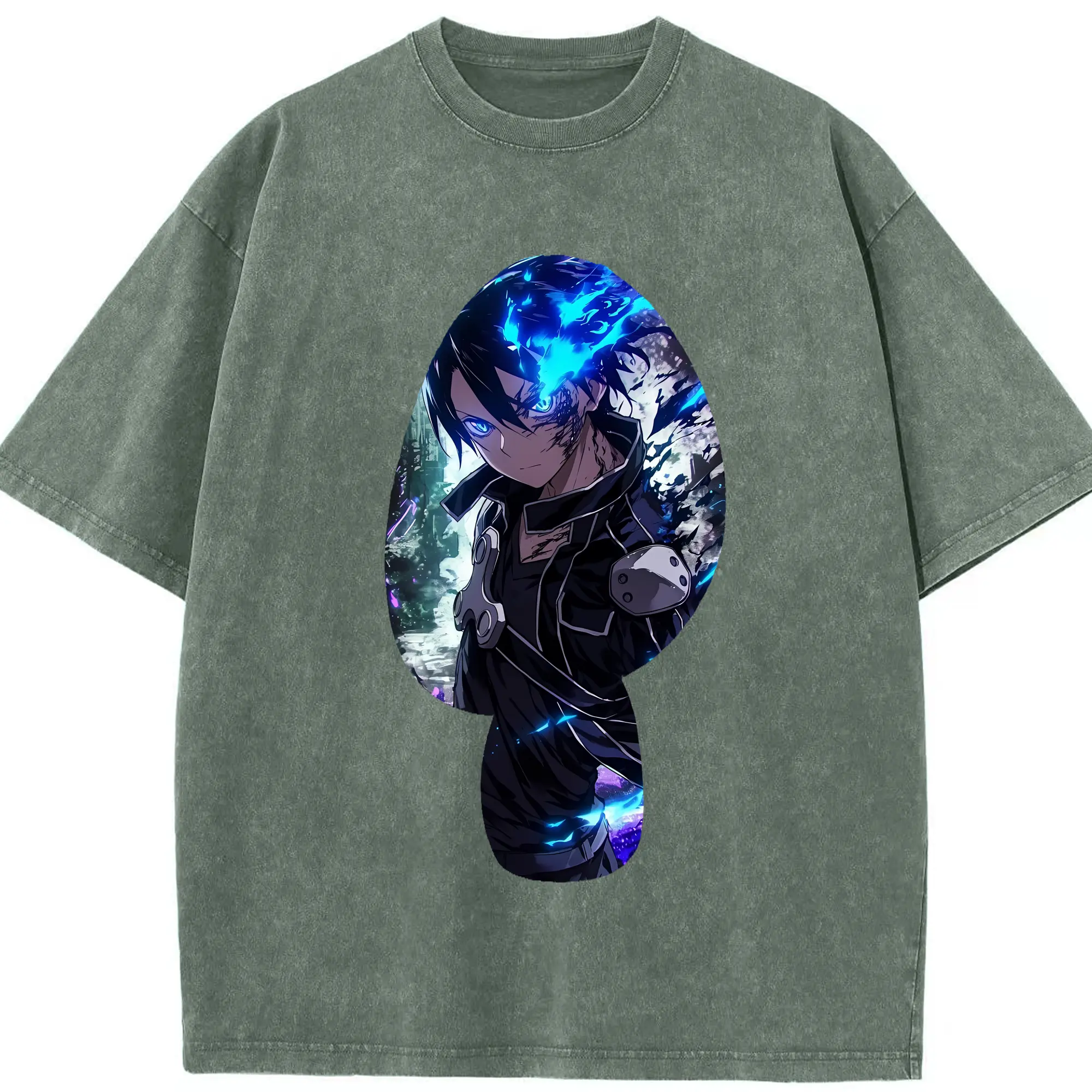 ソードアートオンライン グッズ キリト - 綿100% ヴィンテージ風 半袖Tシャツ ・ 背面プリント ・ 柔らか肌触り ・ 通気性 快適 ・ スポーツ カジュアル 外出用