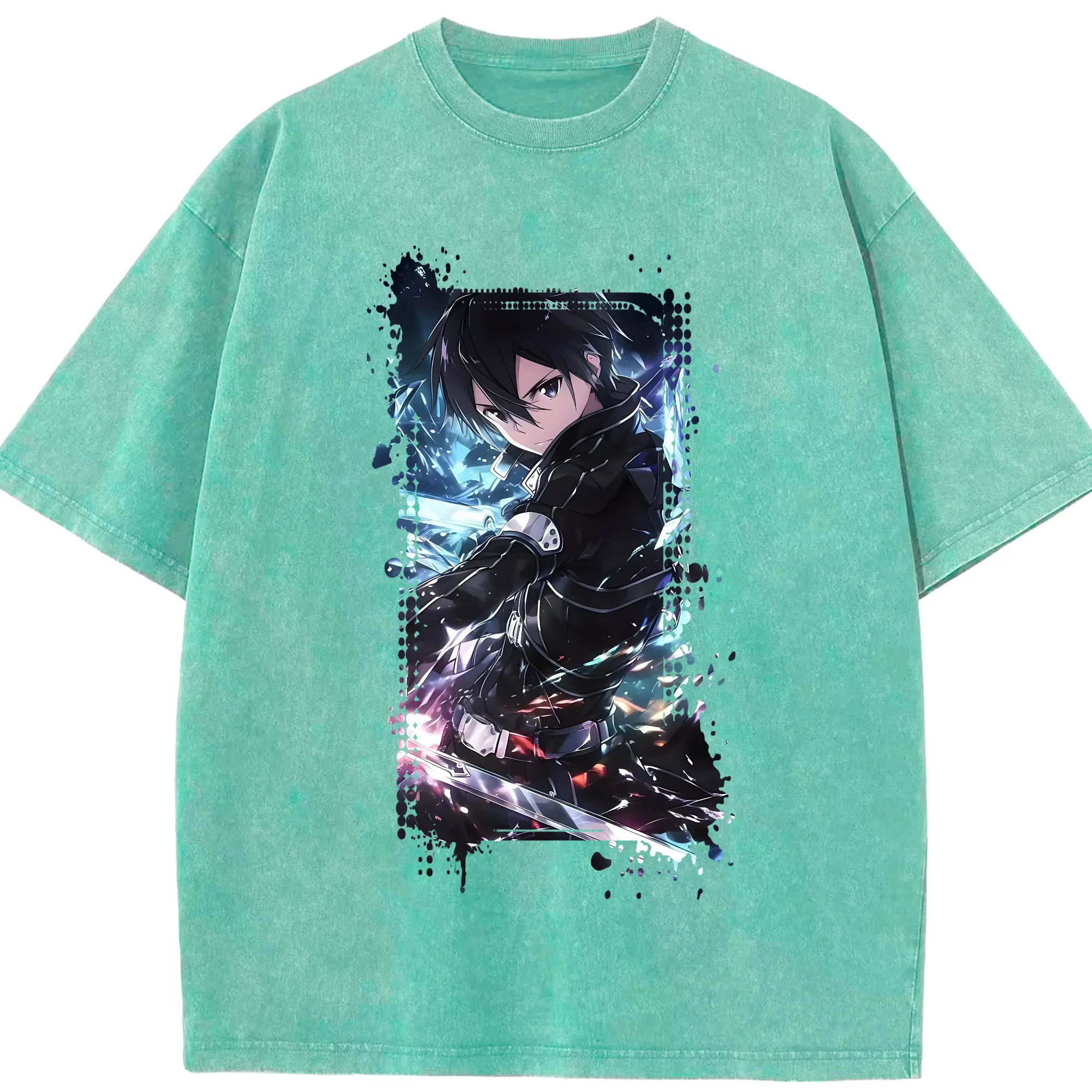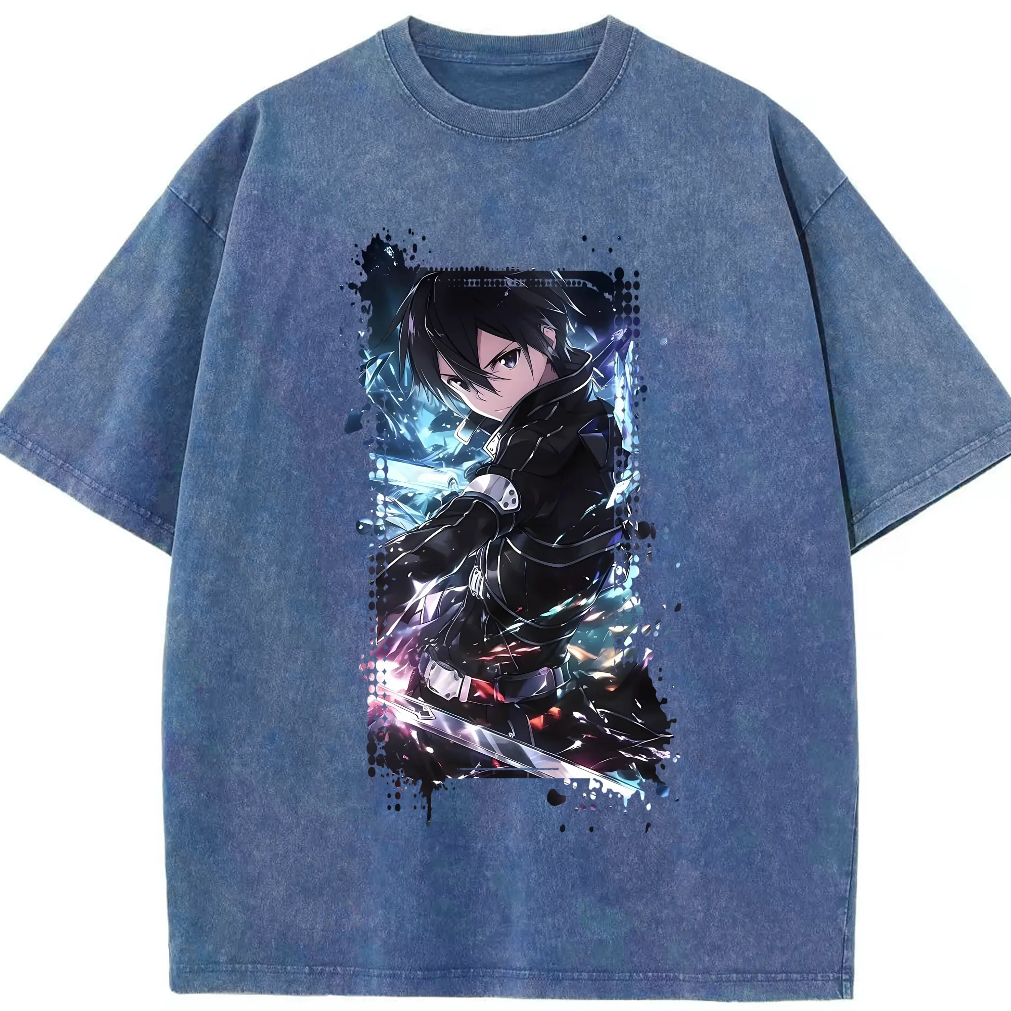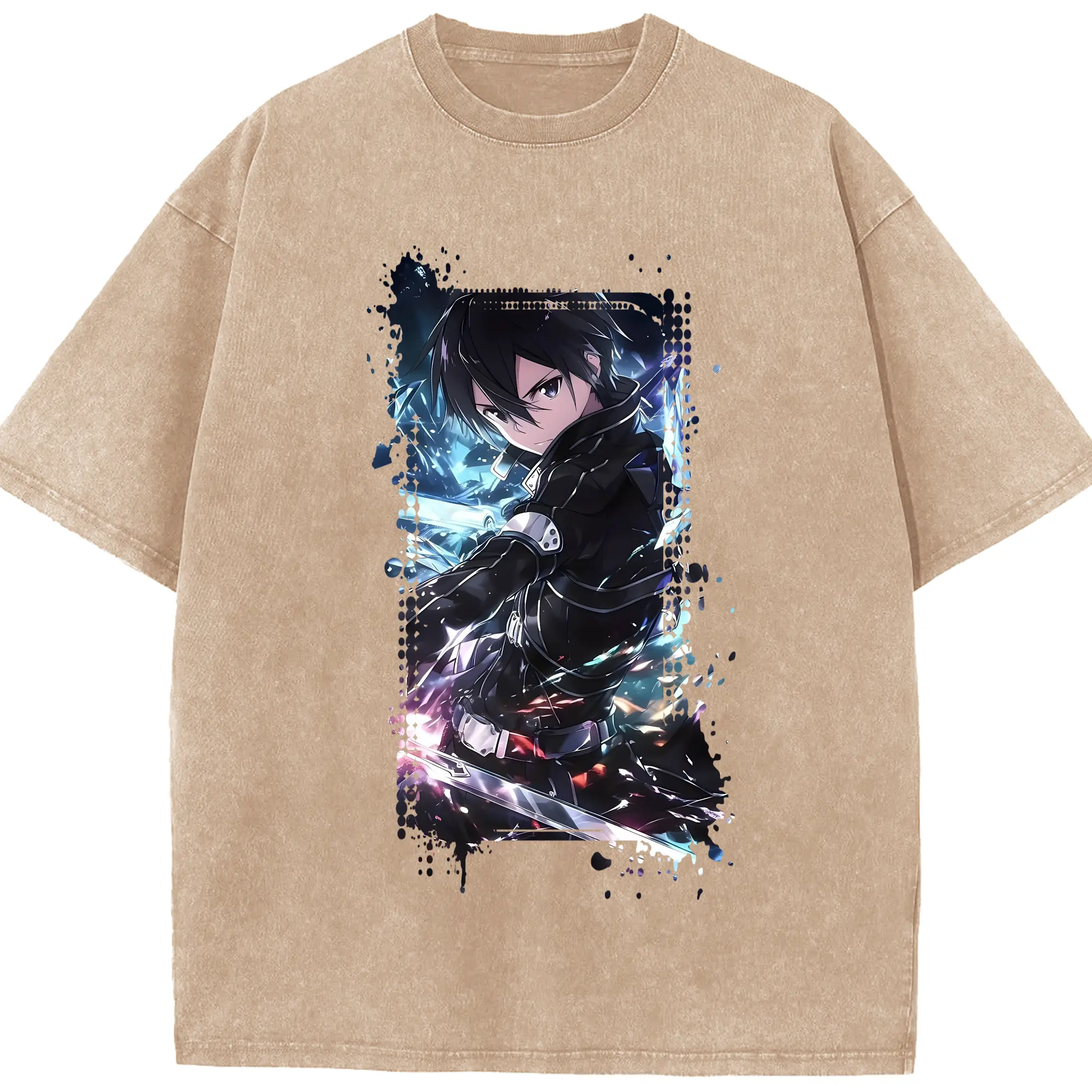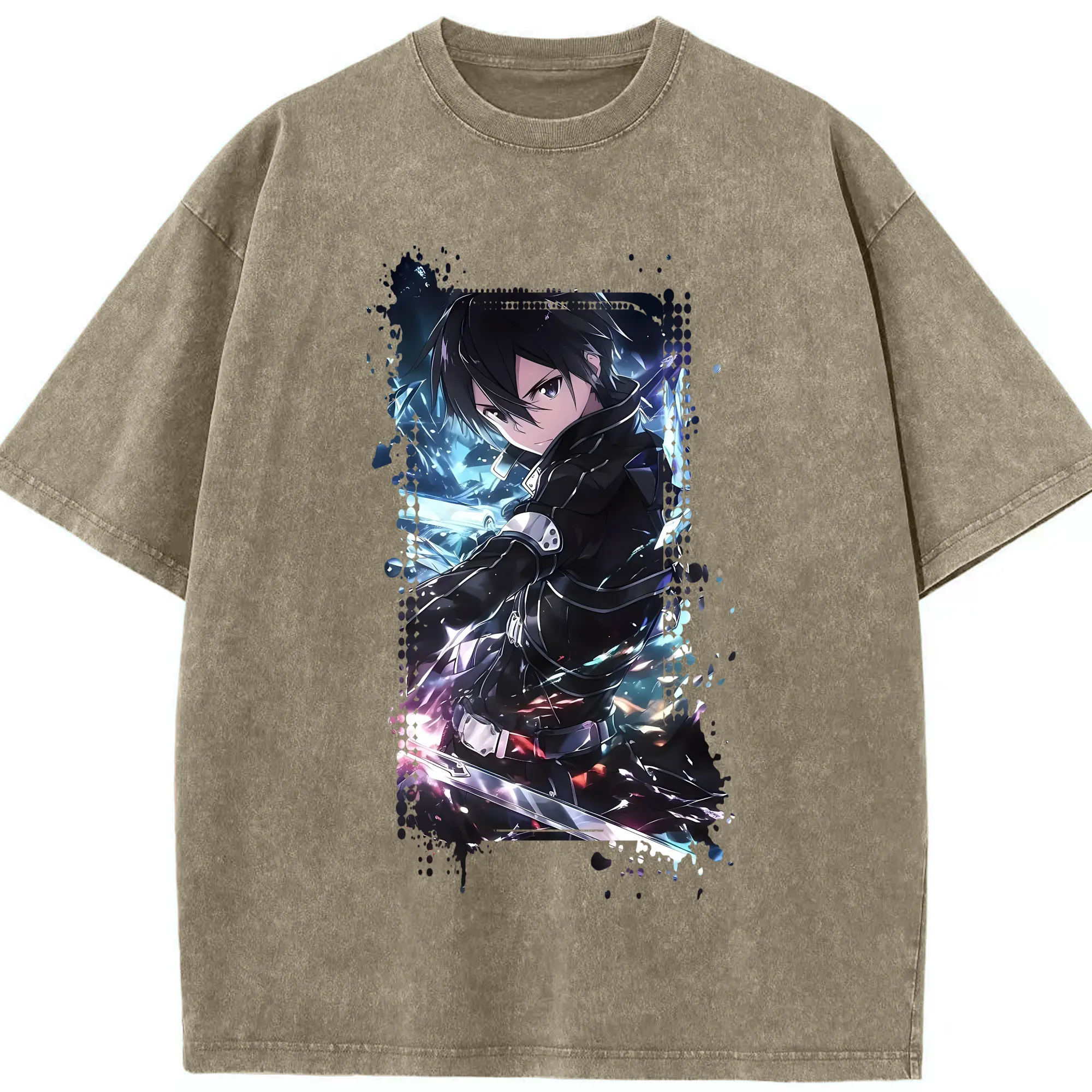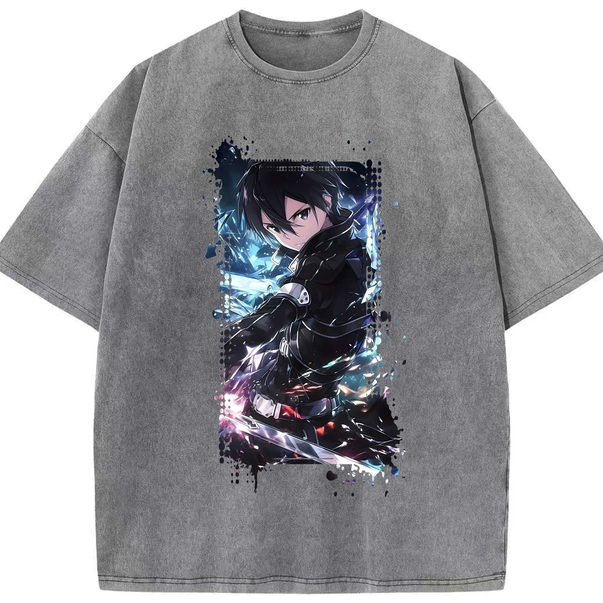 ソードアートオンライン グッズ キリト - 綿100% ヴィンテージ風 半袖Tシャツ ・ 背面プリント ・ 柔らか肌触り ・ 通気性 快適 ・ スポーツ カジュアル 外出用