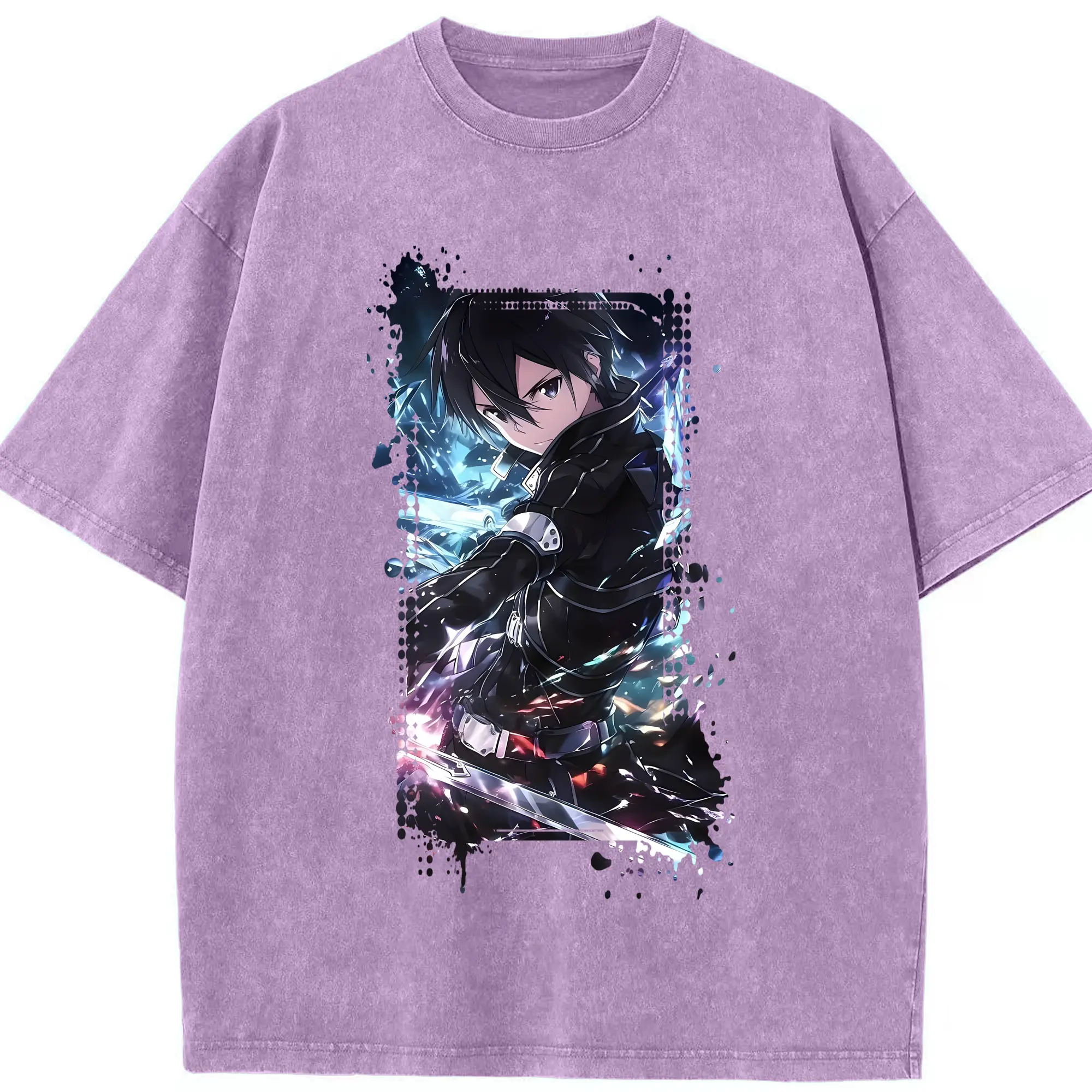 ソードアートオンライン グッズ キリト - 綿100% 半袖Tシャツ ・ フロントプリント ・ 快適 通気性 ・ 日常使い 散歩 スポーツ用