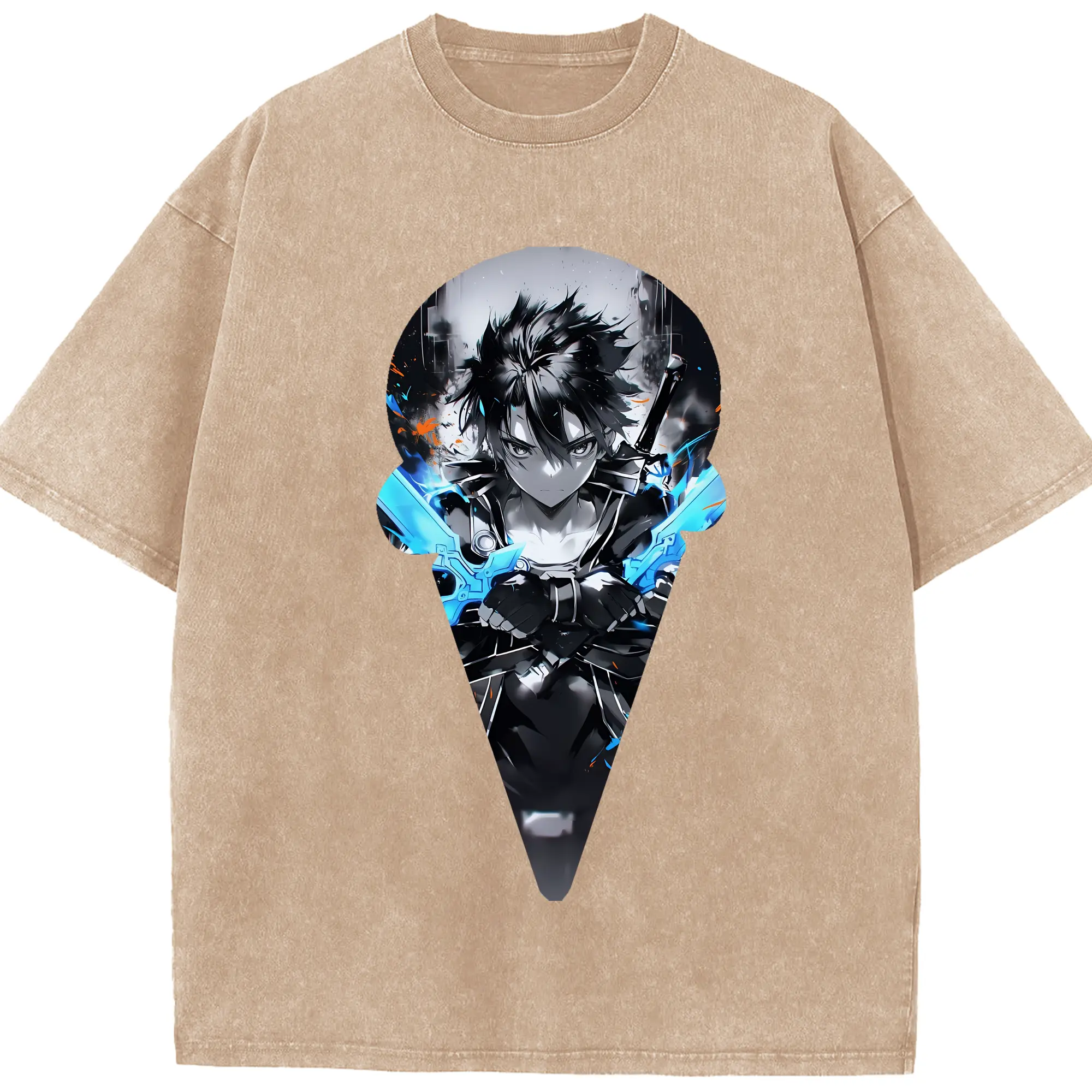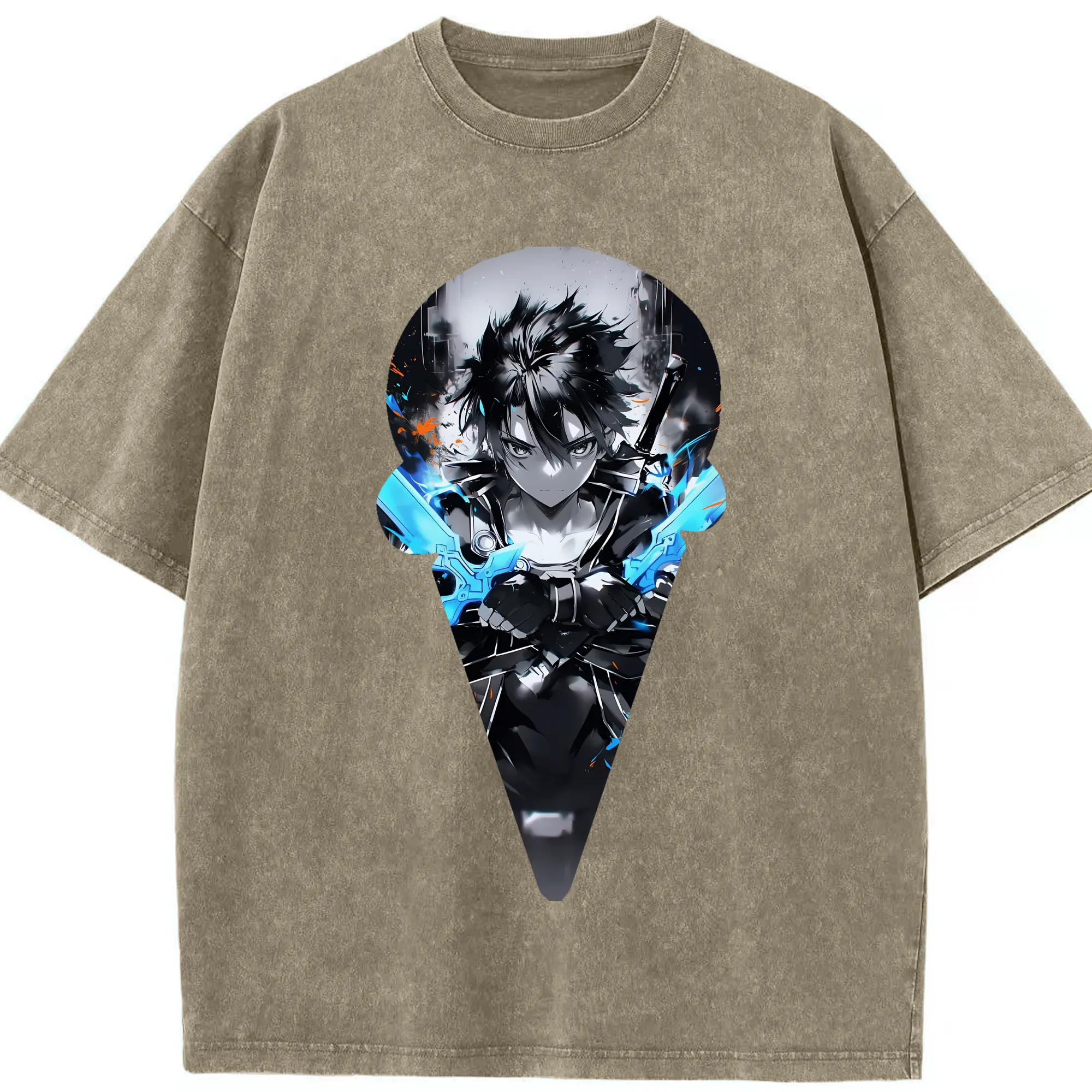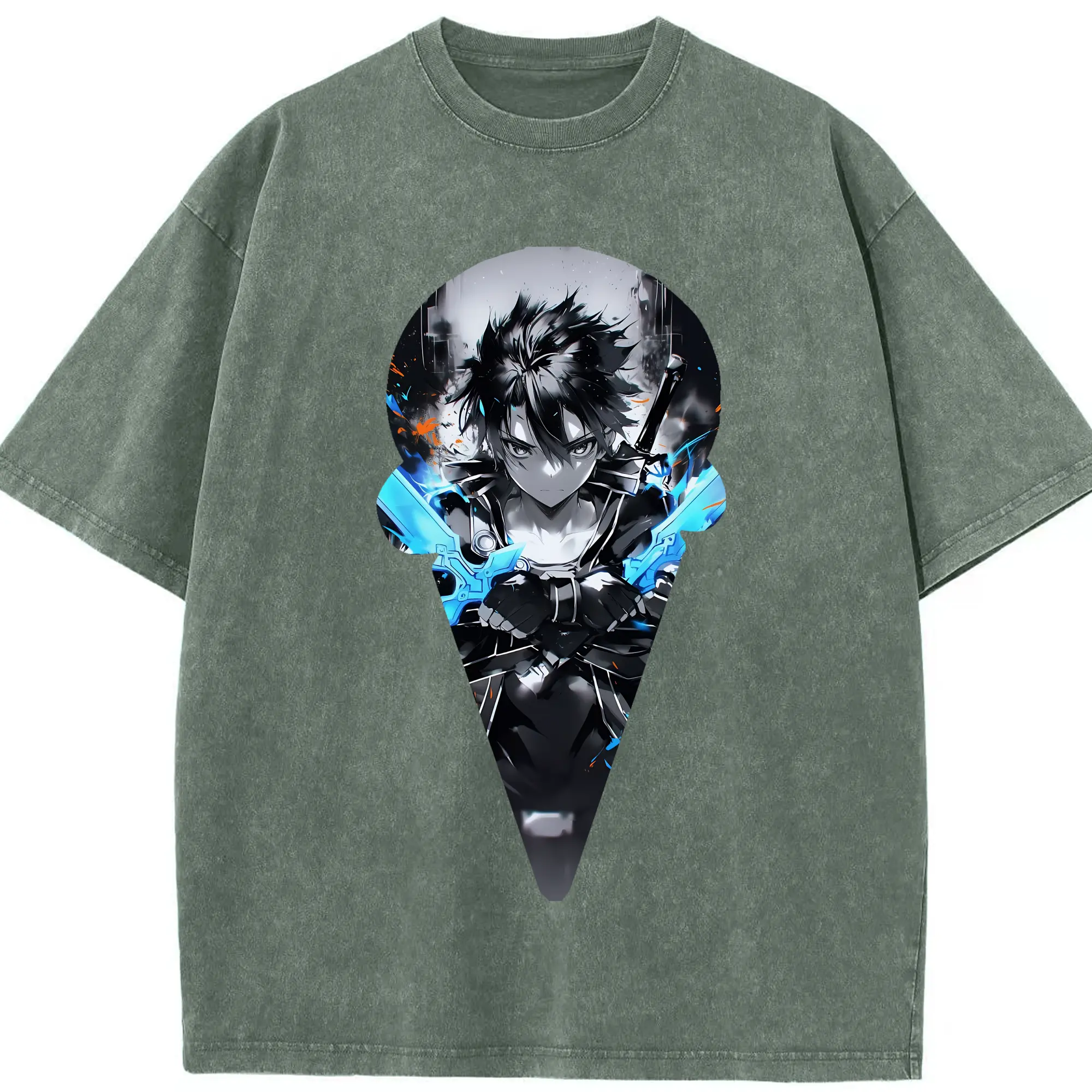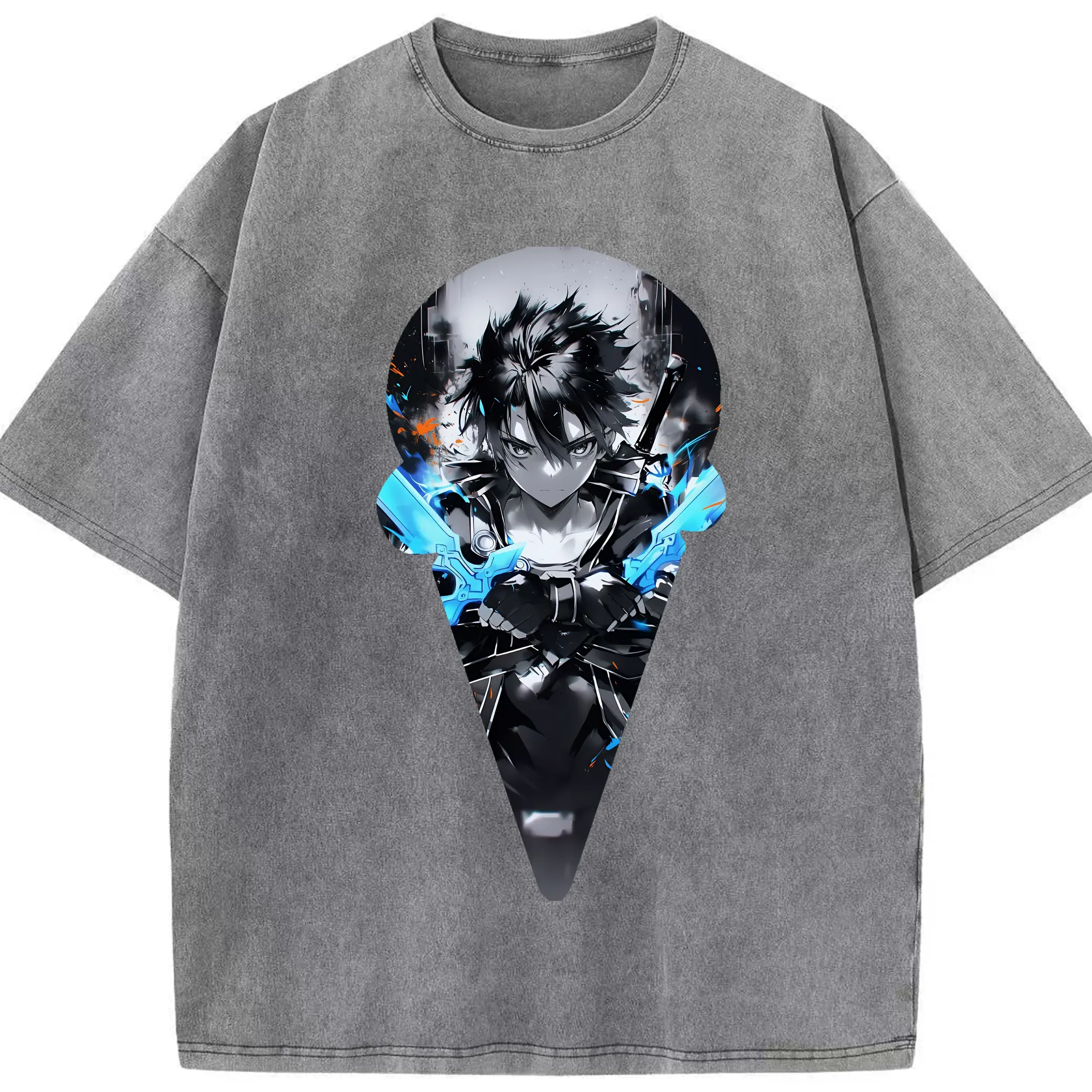 ソードアートオンライン グッズ キリト - 綿100% ヴィンテージ風 半袖Tシャツ ・ 背面プリント ・ 柔らか肌触り ・ 通気性 快適 ・ スポーツ カジュアル 外出用