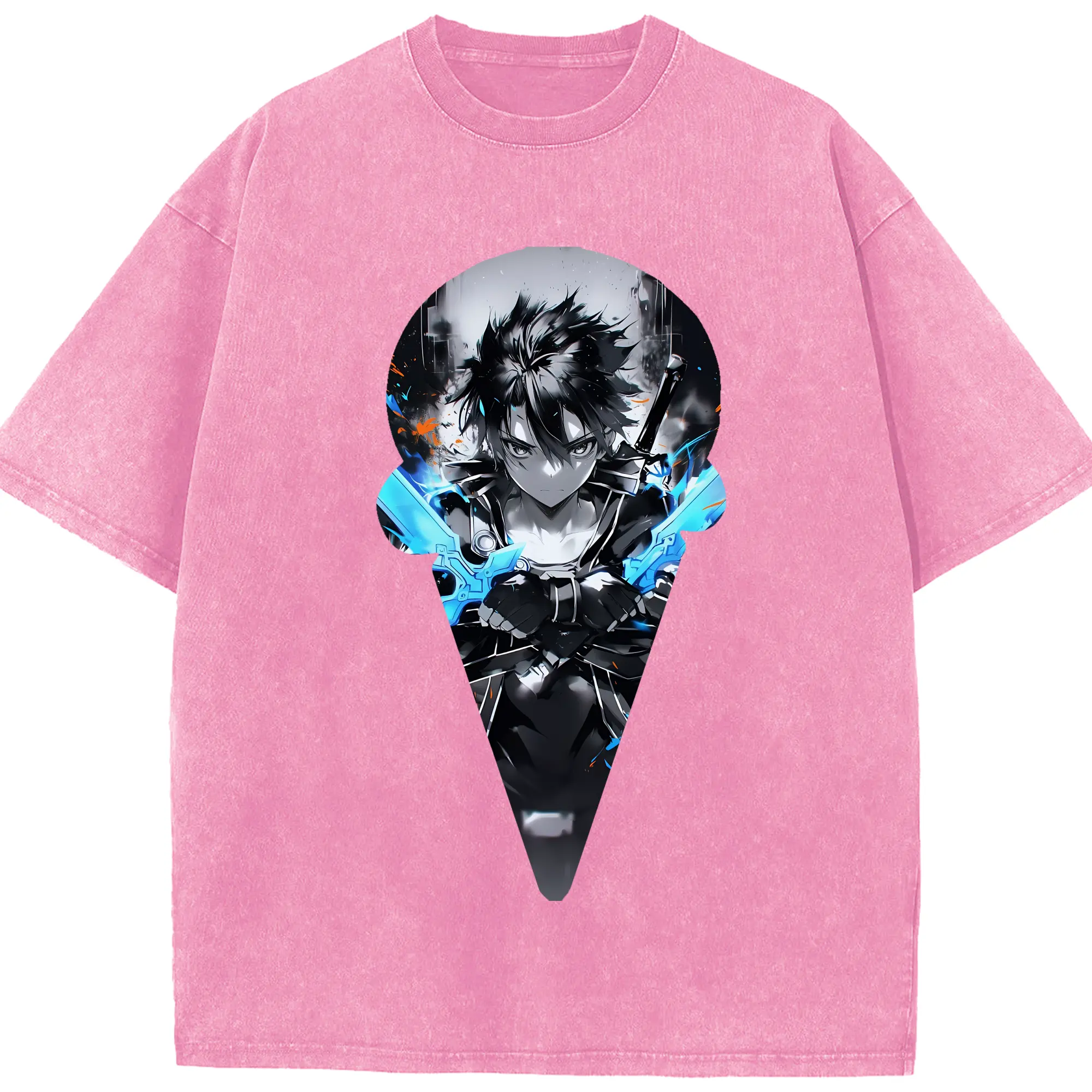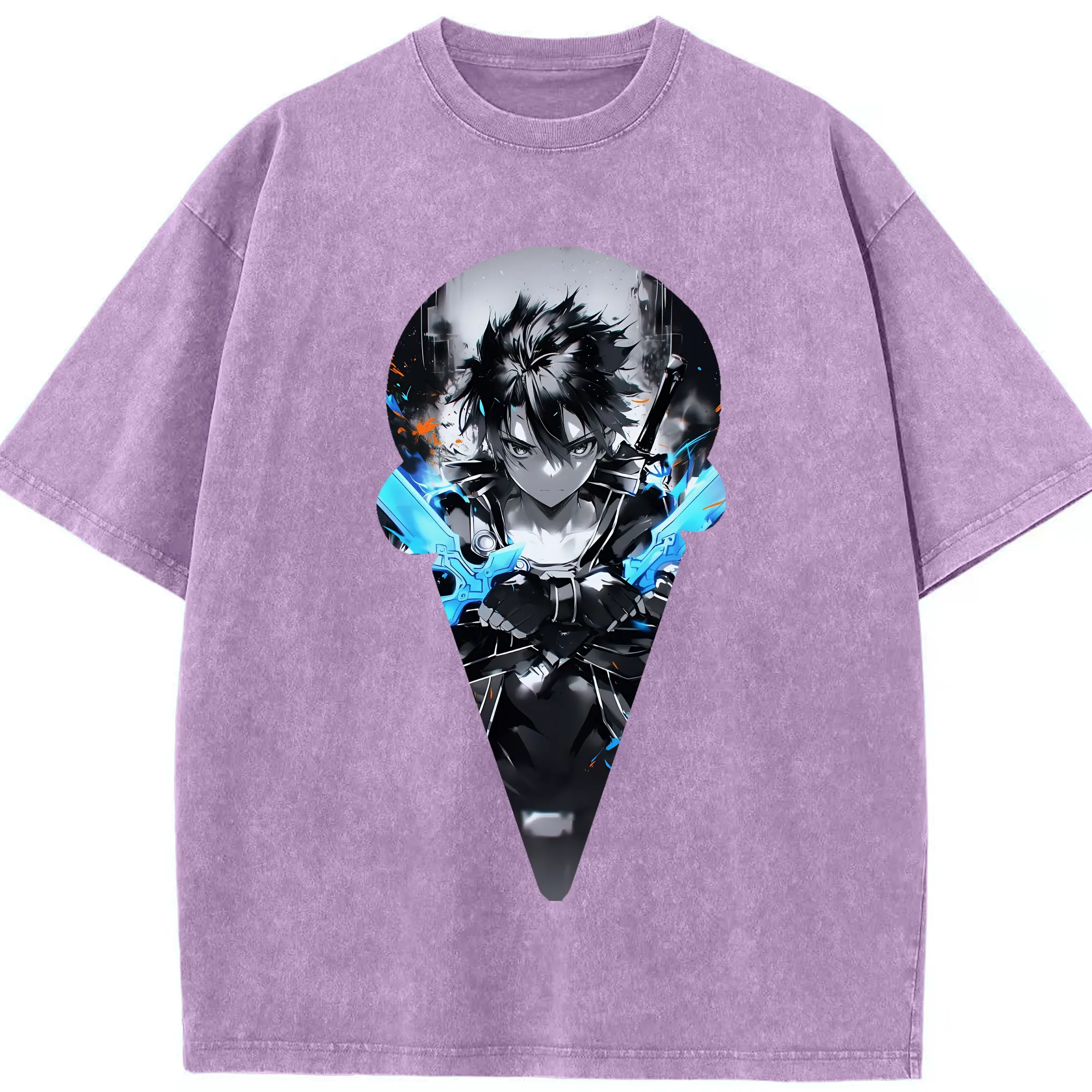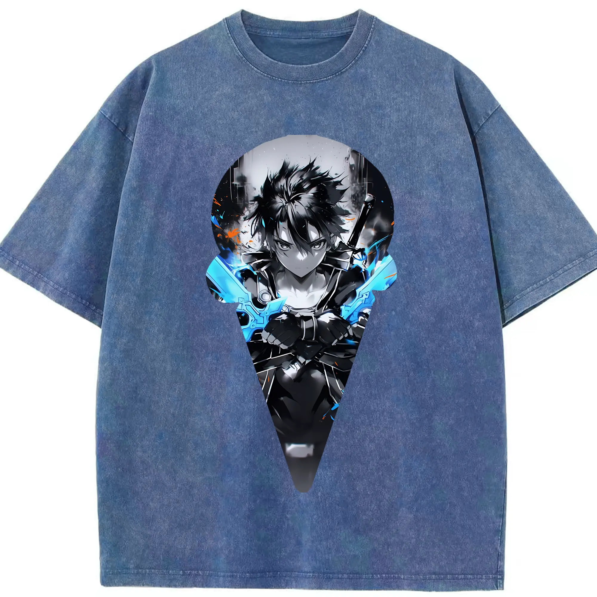 ソードアートオンライン グッズ キリト - 綿100% 半袖Tシャツ ・ フロントプリント ・ 快適 通気性 ・ 日常使い 散歩 スポーツ用
