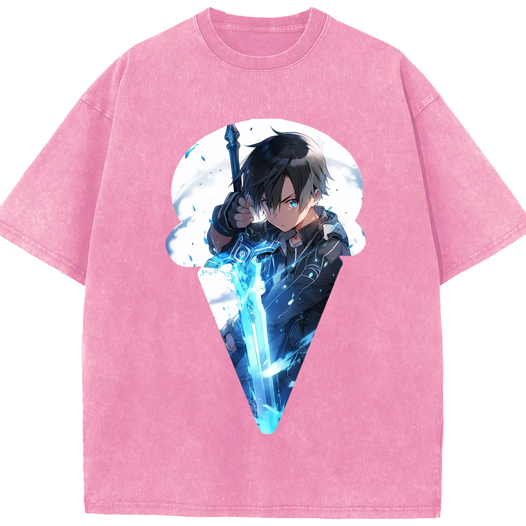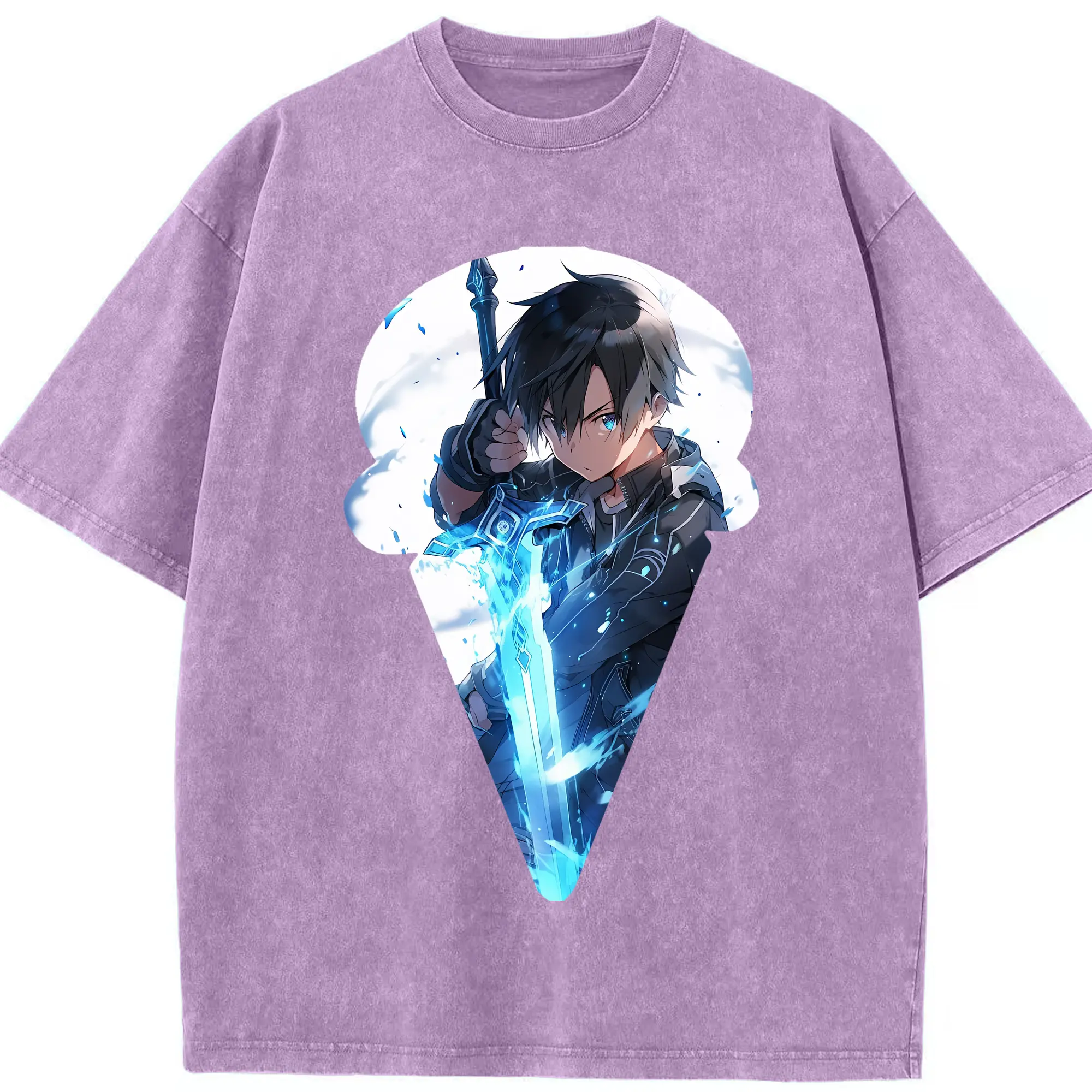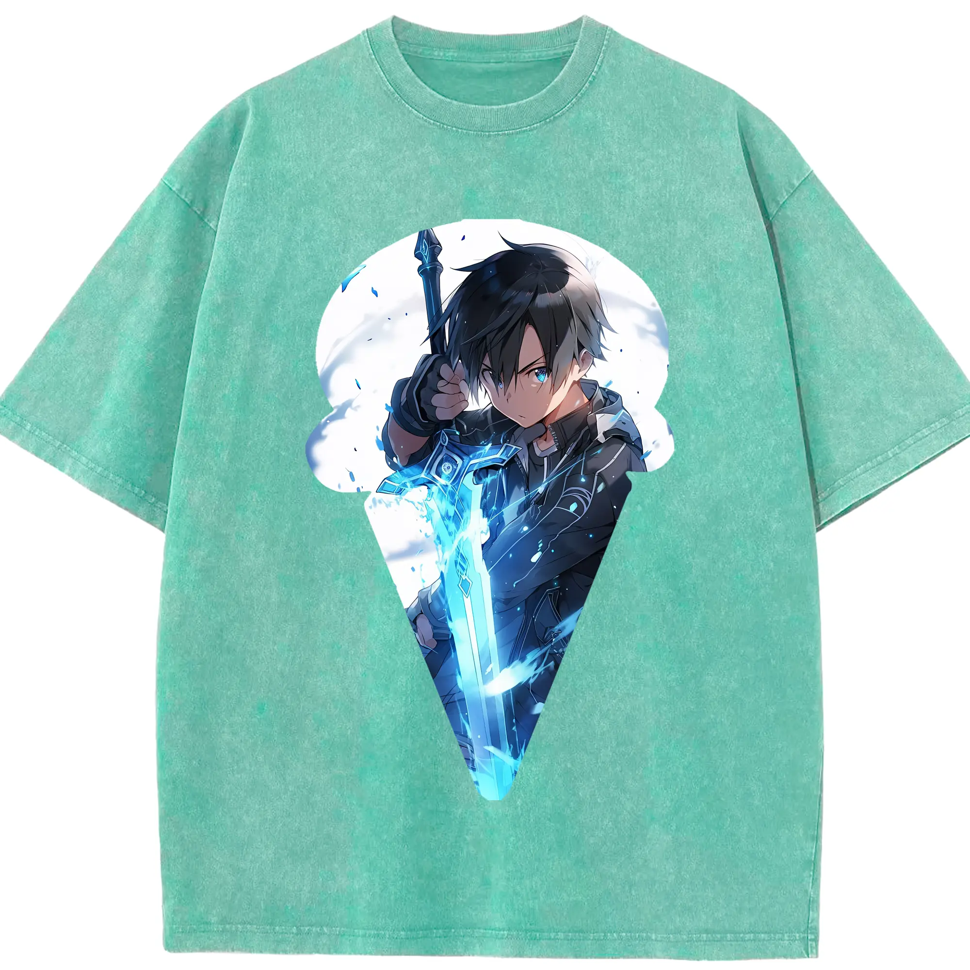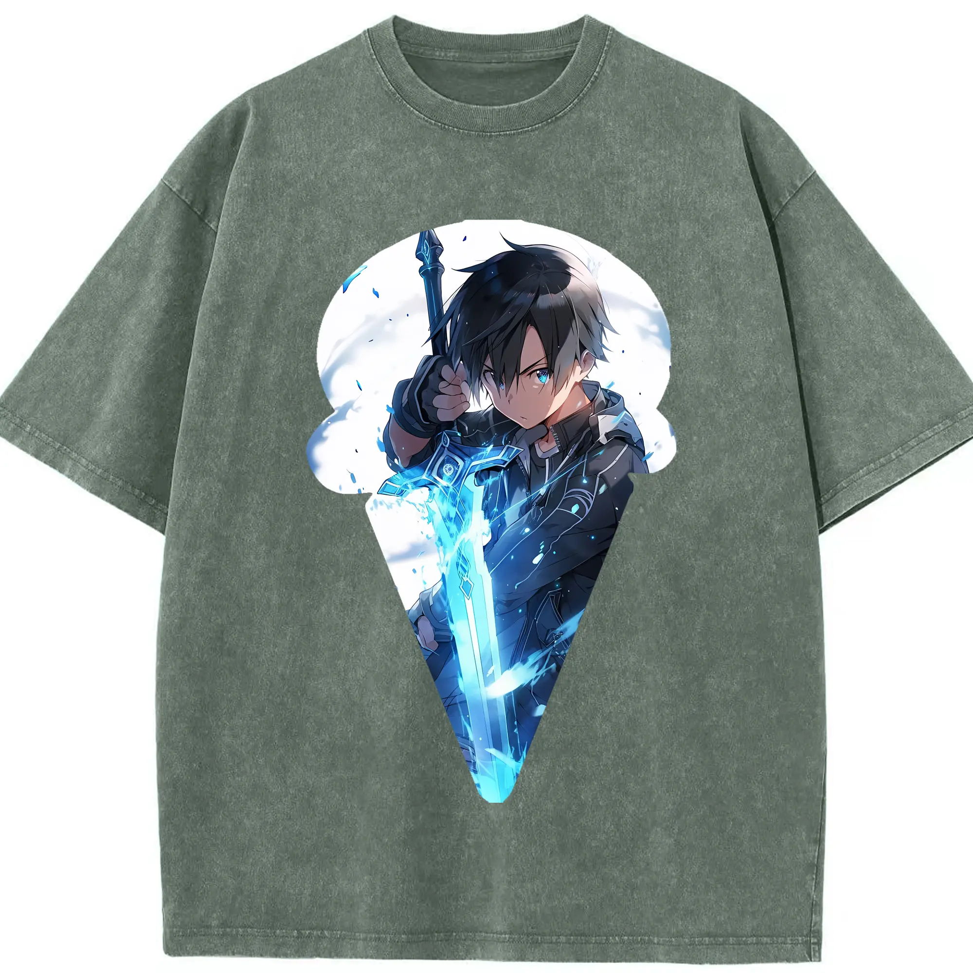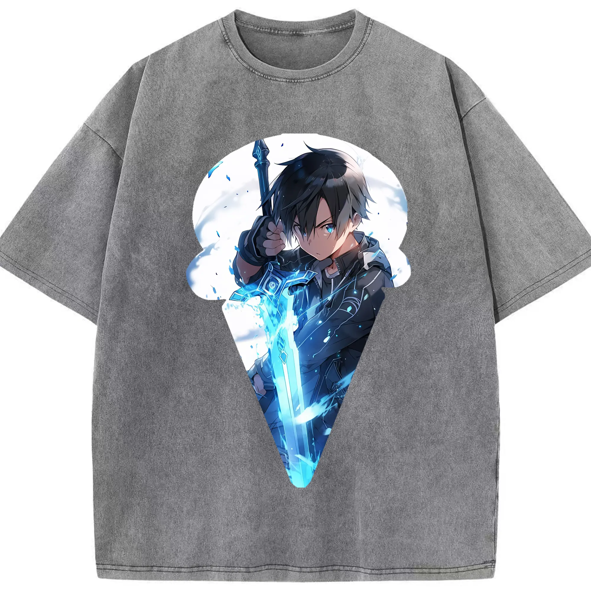 ソードアートオンライン グッズ キリト - 綿100% 半袖Tシャツ ・ フロントプリント ・ 快適 通気性 ・ 日常使い 散歩 スポーツ用