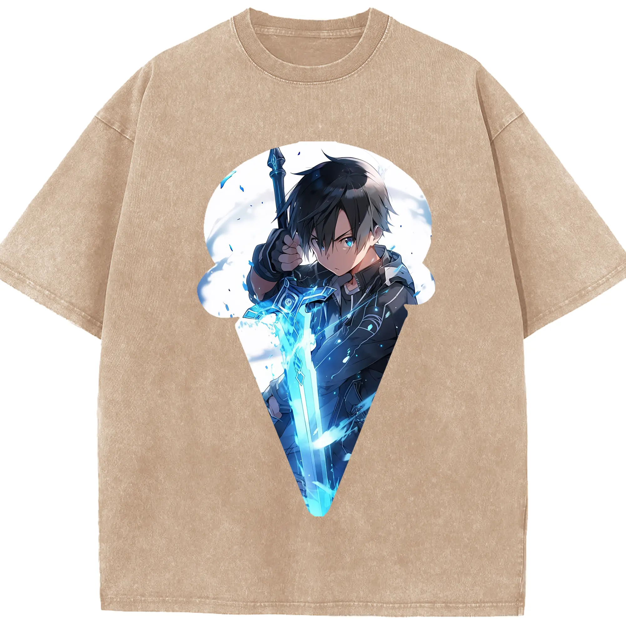ソードアートオンライン グッズ キリト - 綿100% ヴィンテージ風 半袖Tシャツ ・ 背面プリント ・ 柔らか肌触り ・ 通気性 快適 ・ スポーツ カジュアル 外出用