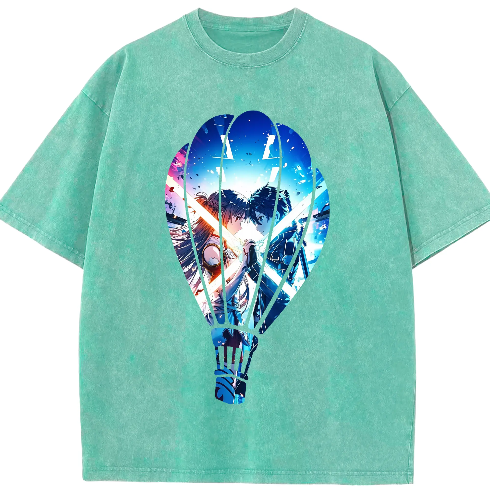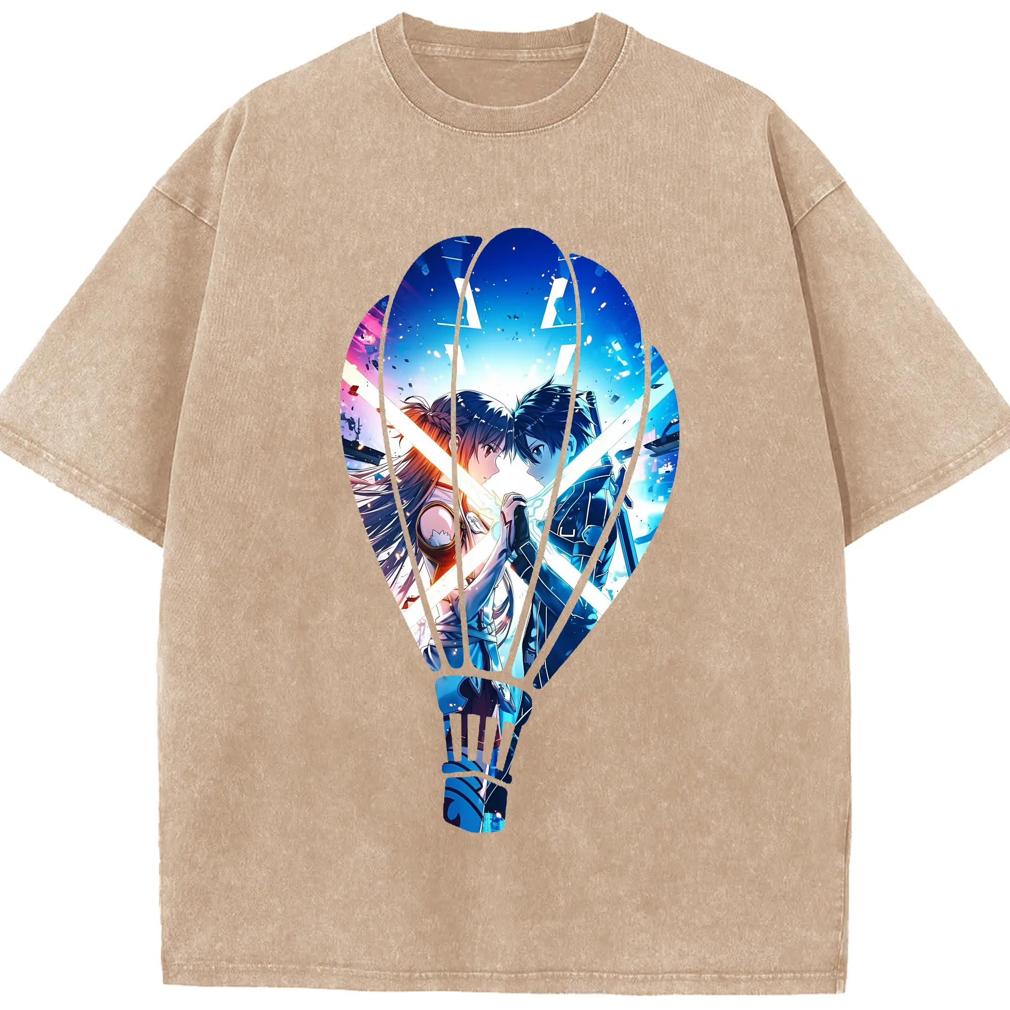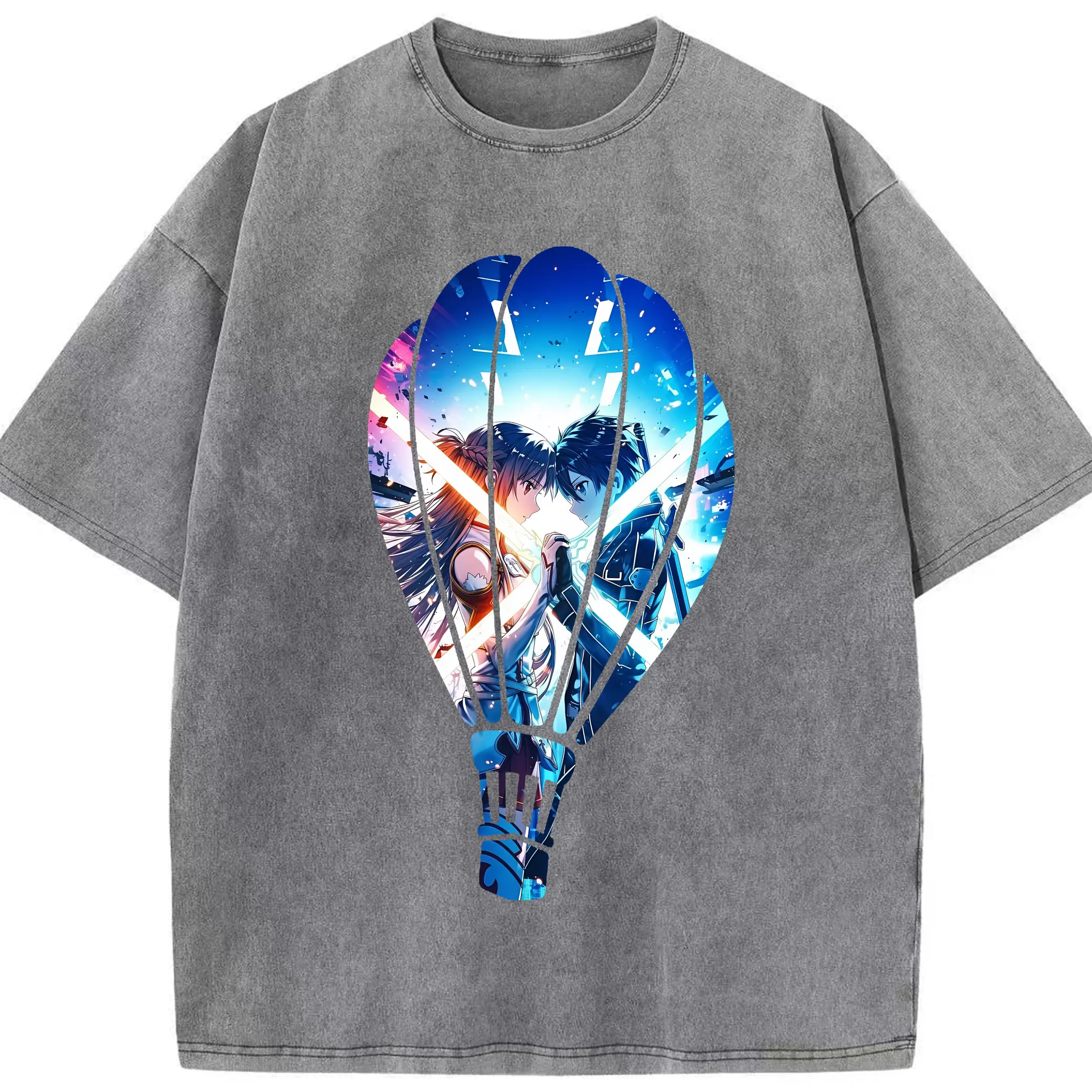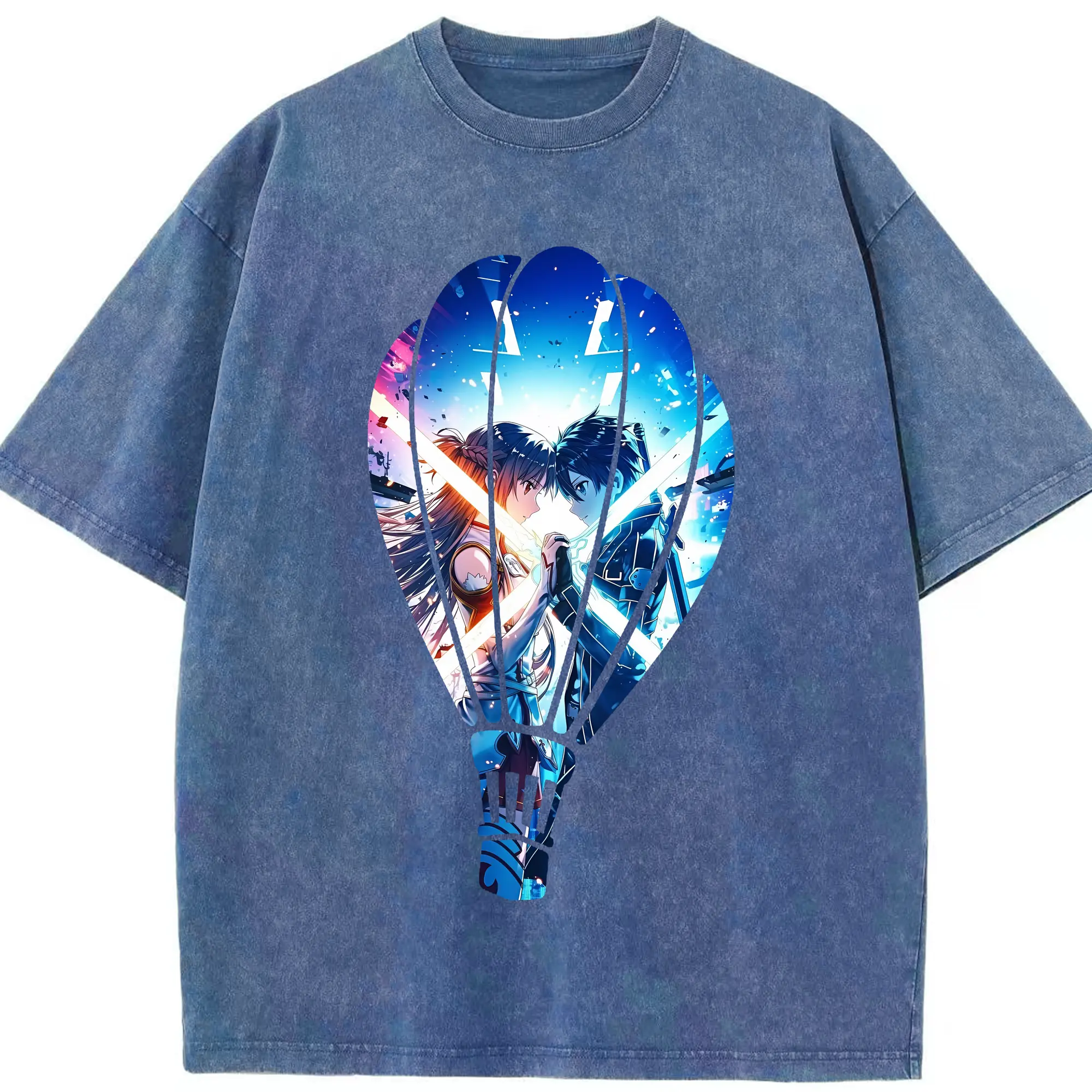 ソードアートオンライン グッズ キリト - 綿100% ヴィンテージ風 半袖Tシャツ ・ 背面プリント ・ 柔らか肌触り ・ 通気性 快適 ・ スポーツ カジュアル 外出用