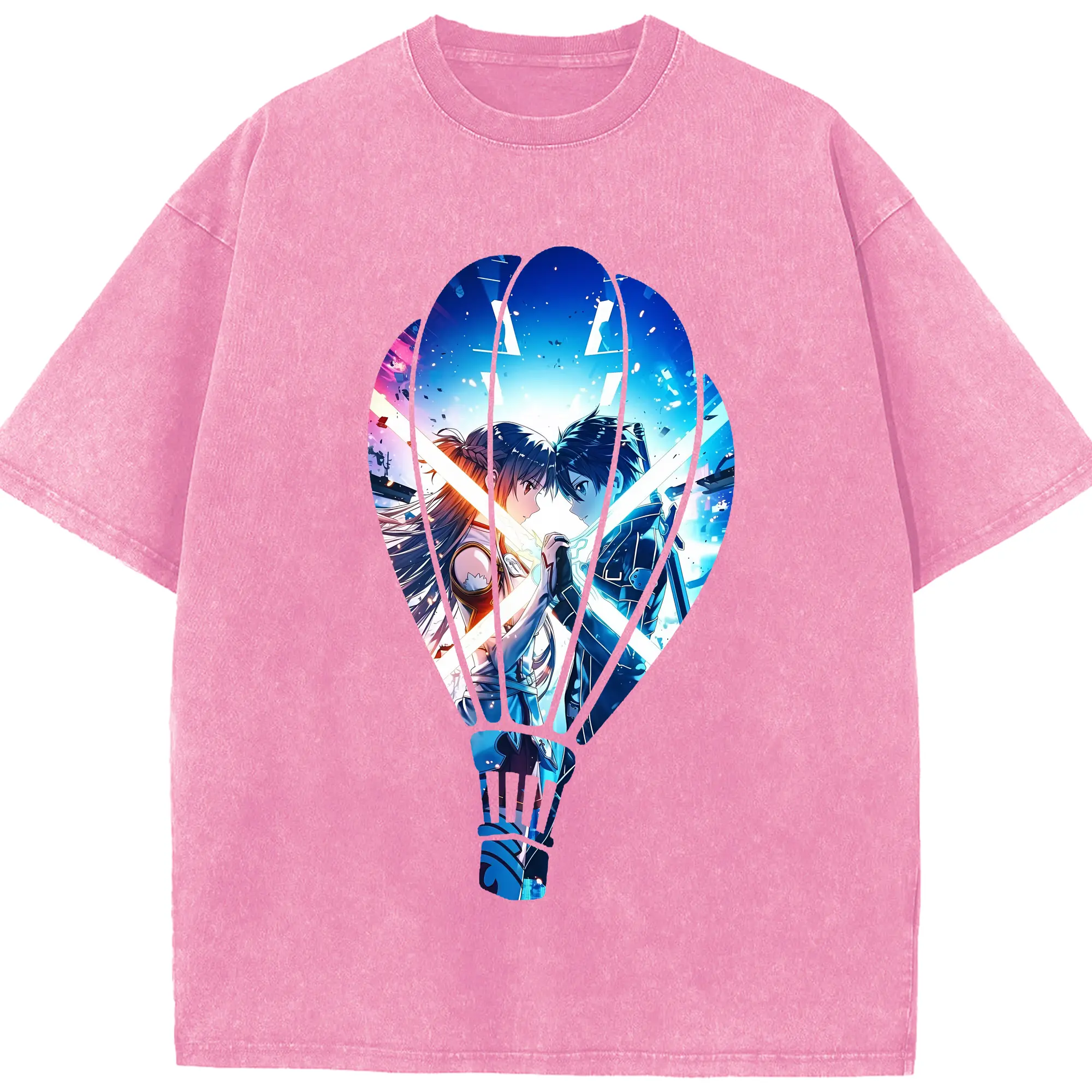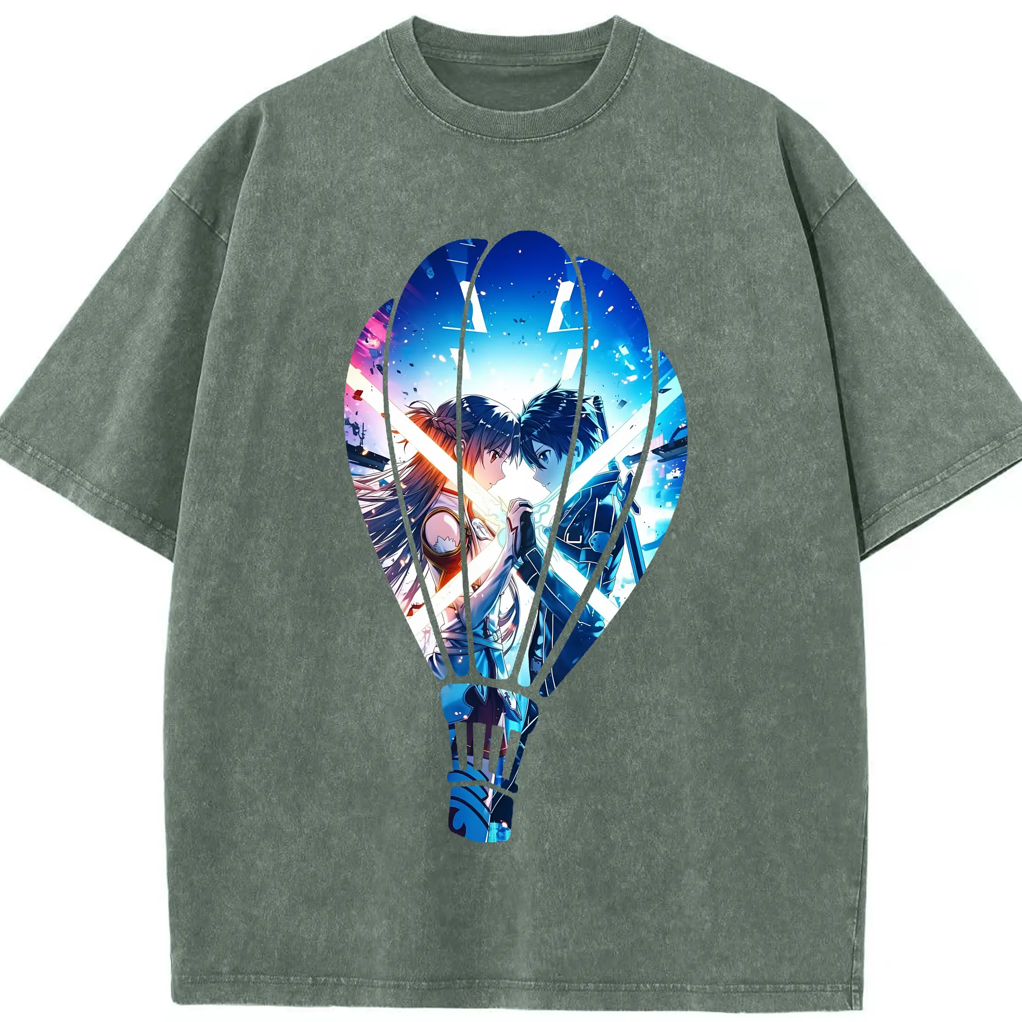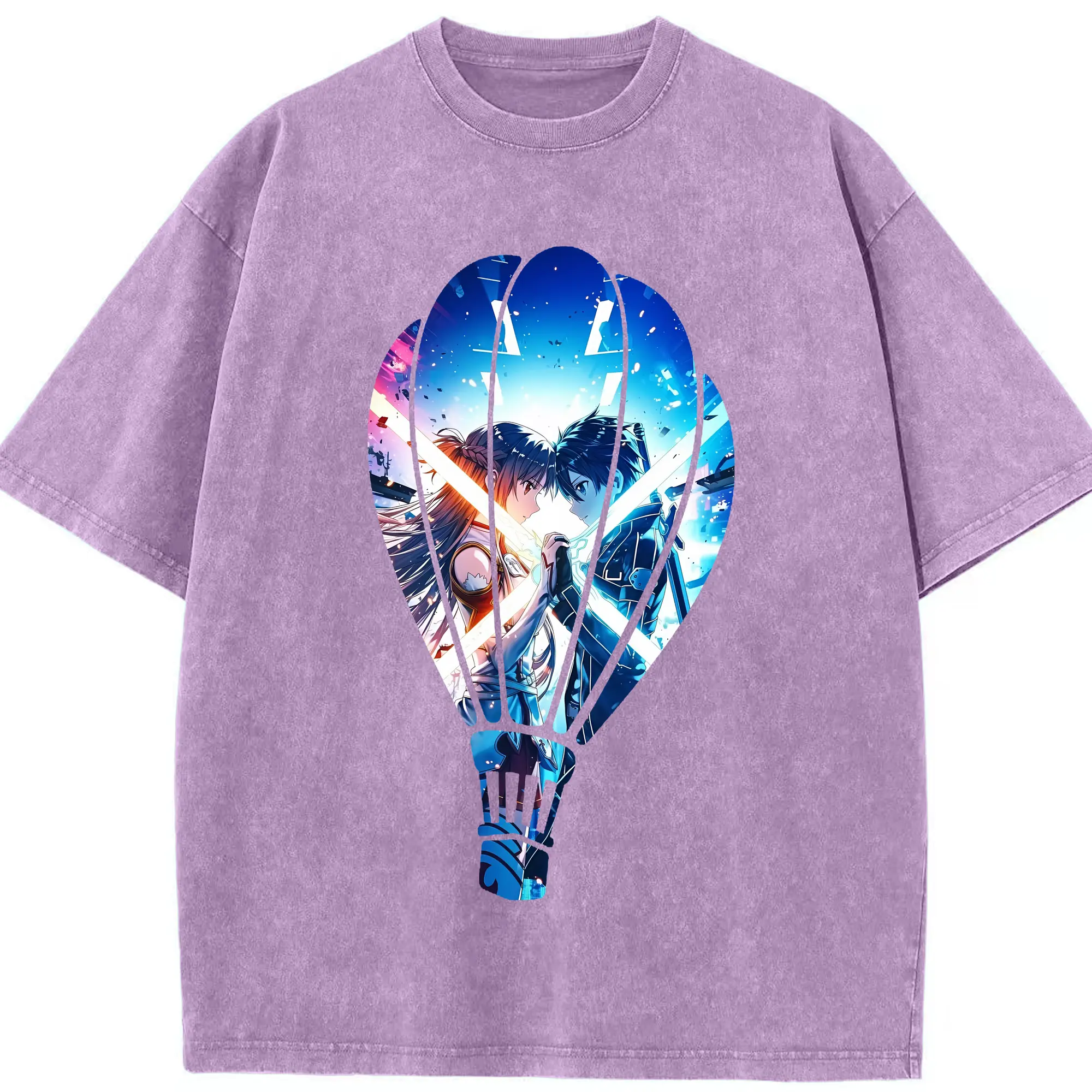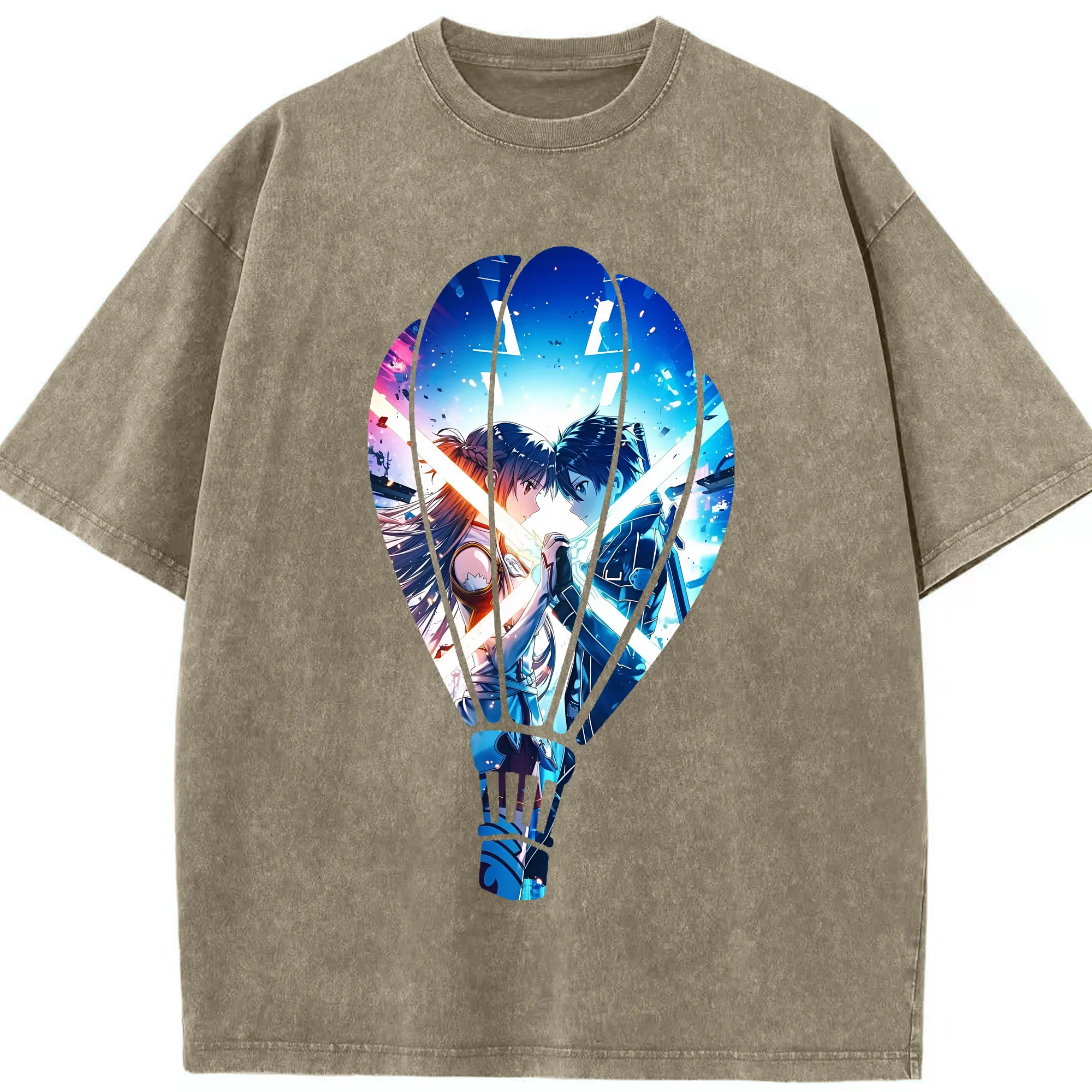ソードアートオンライン グッズ キリト - 綿100% ヴィンテージ風 半袖Tシャツ ・ 背面プリント ・ 柔らか肌触り ・ 通気性 快適 ・ スポーツ カジュアル 外出用