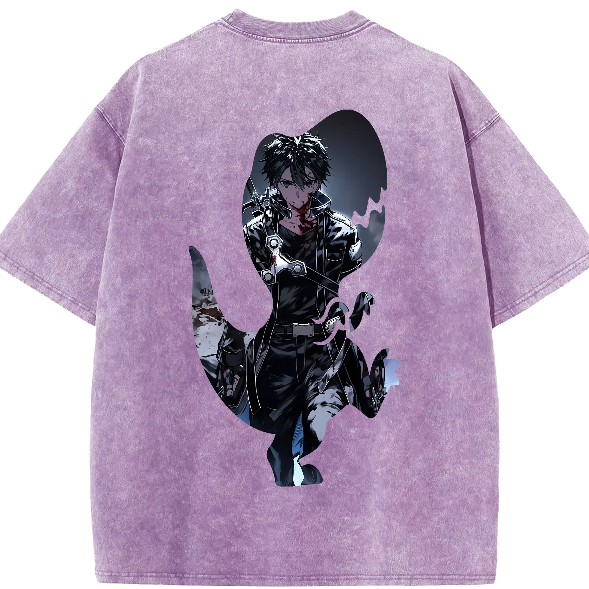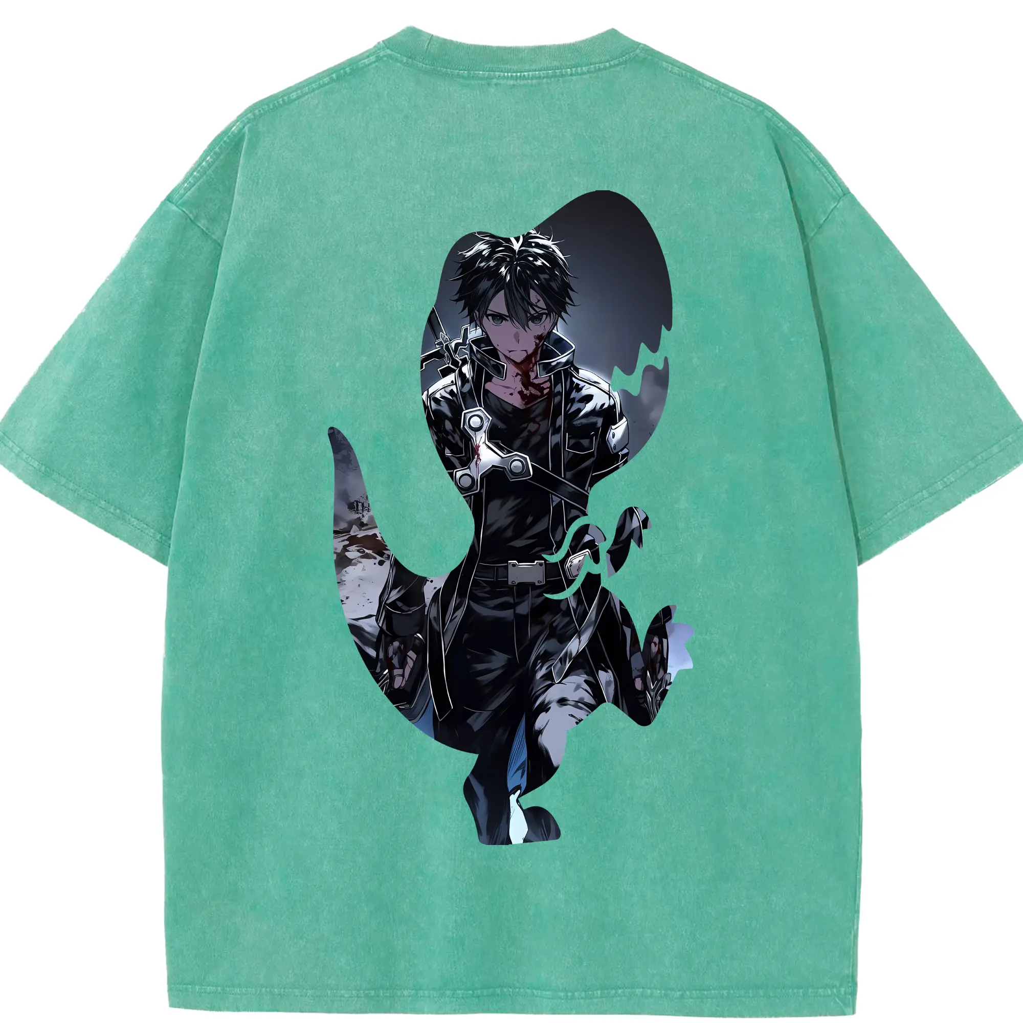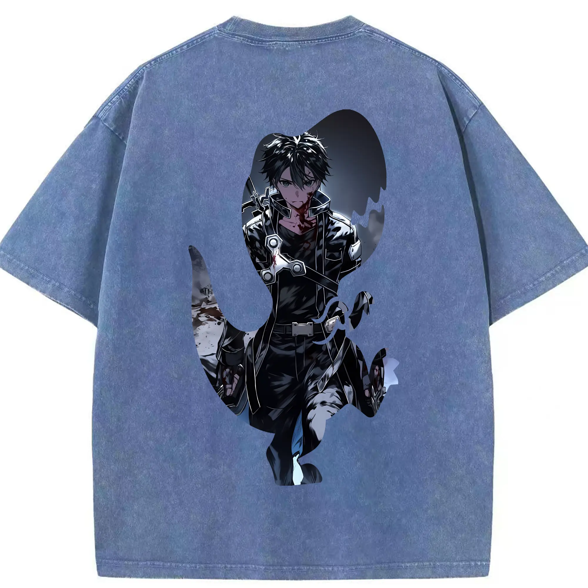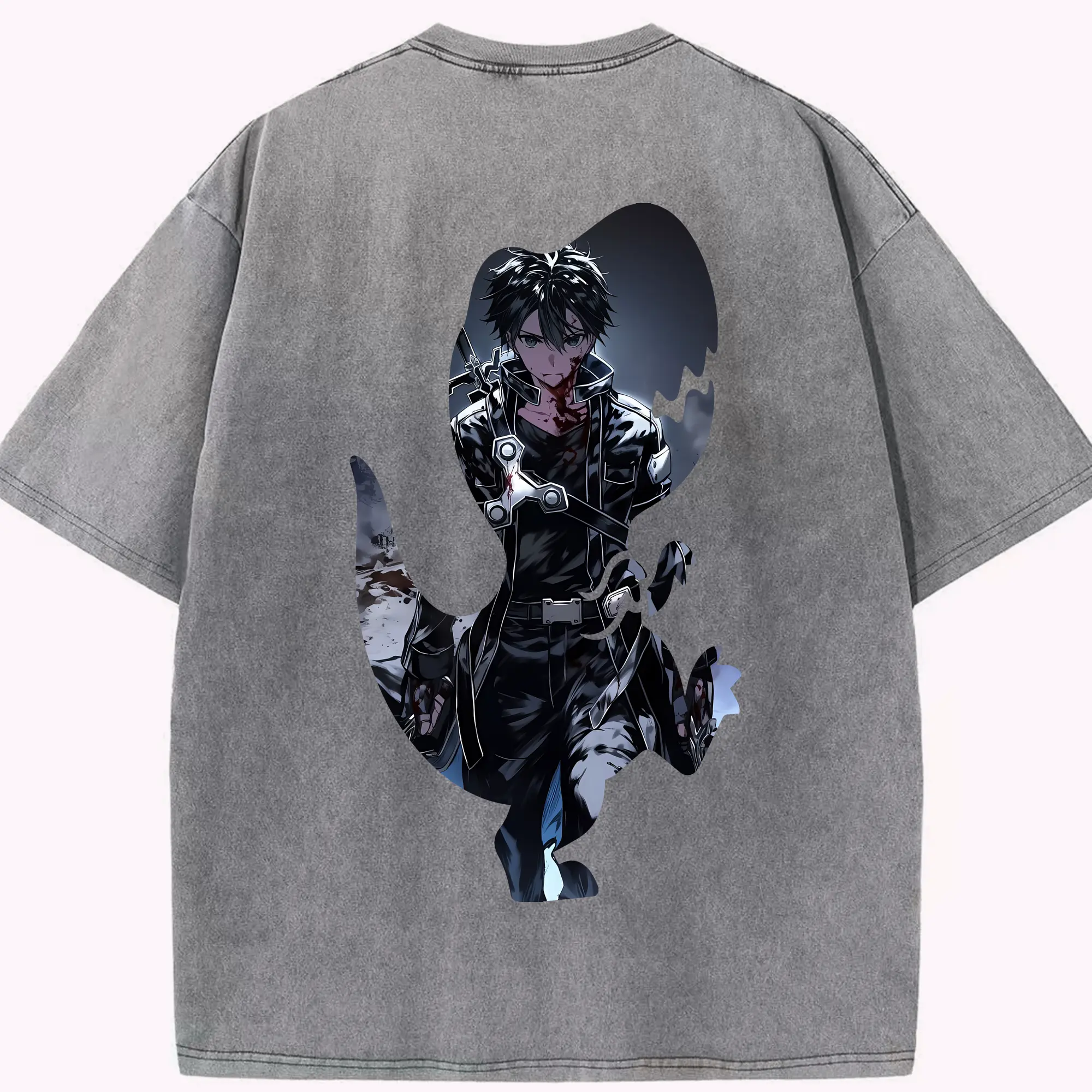 ソードアートオンライン グッズ キリト - 綿100% ヴィンテージ風 半袖Tシャツ ・ フロントプリント ・ 柔らか肌触り ・ 通気性 快適 ・ スポーツ カジュアル 外出用