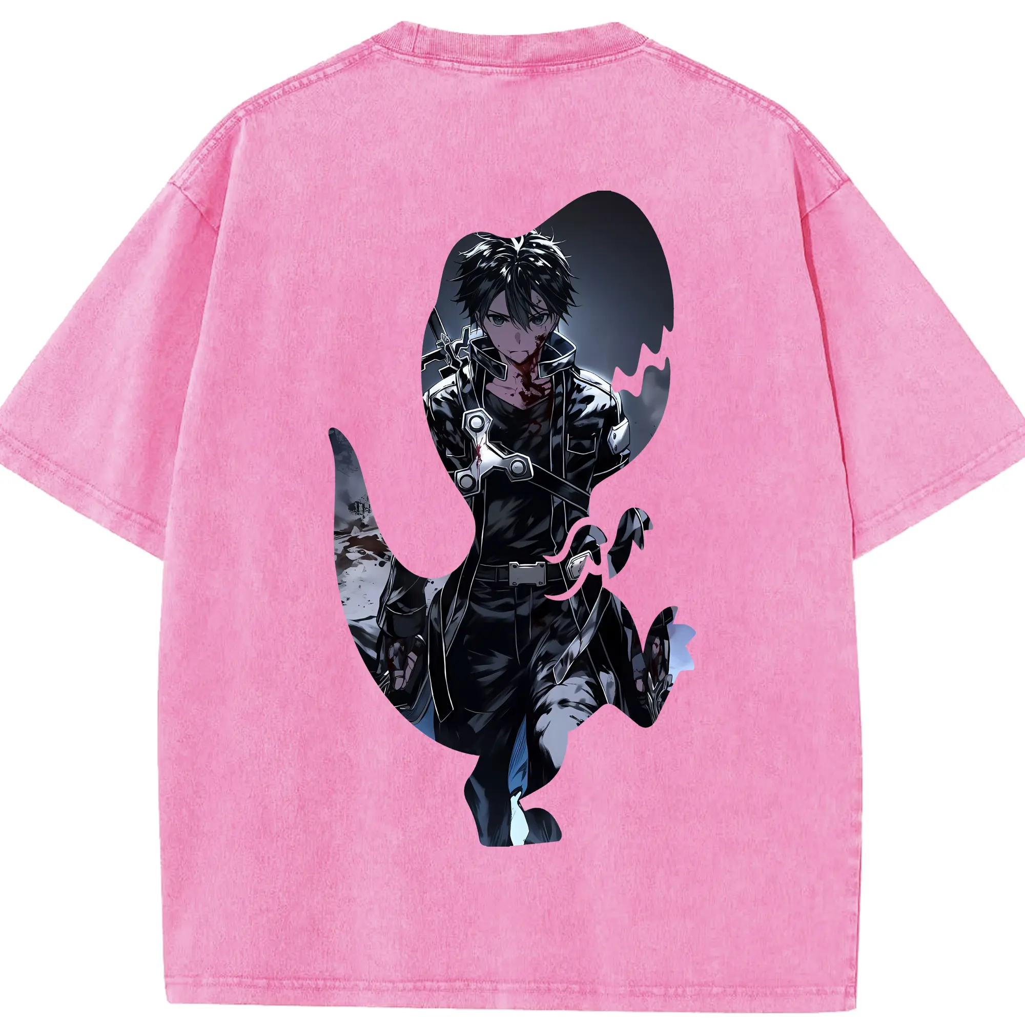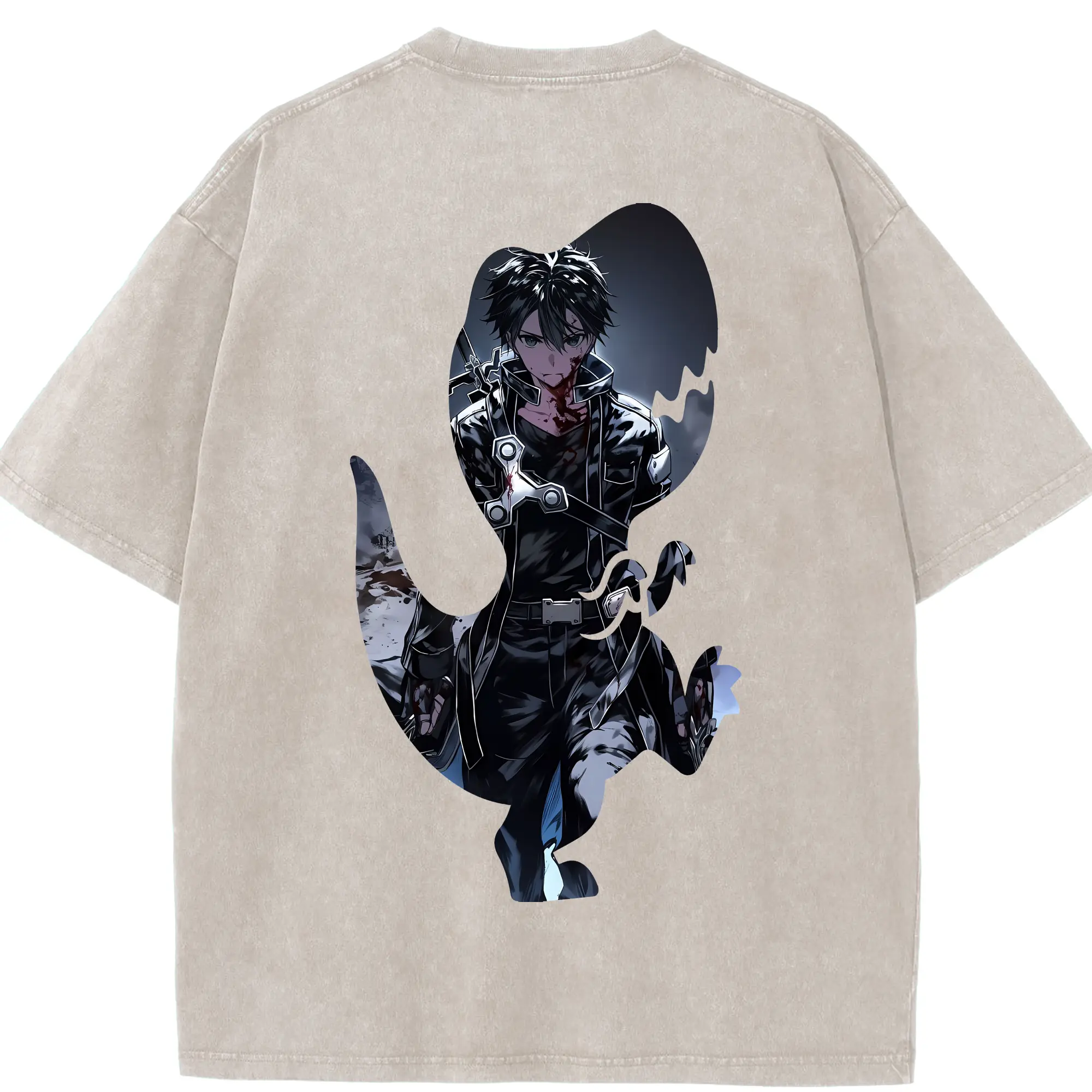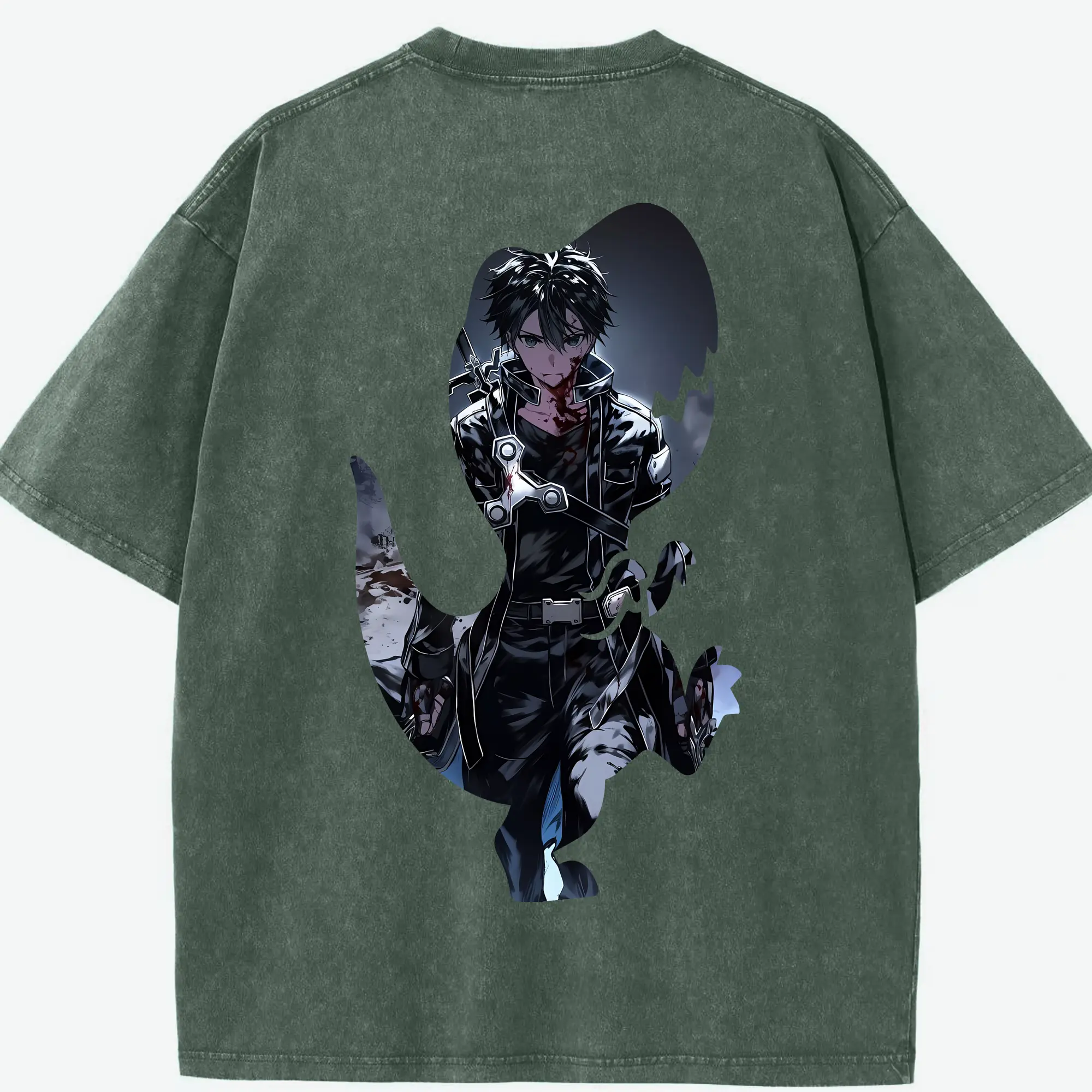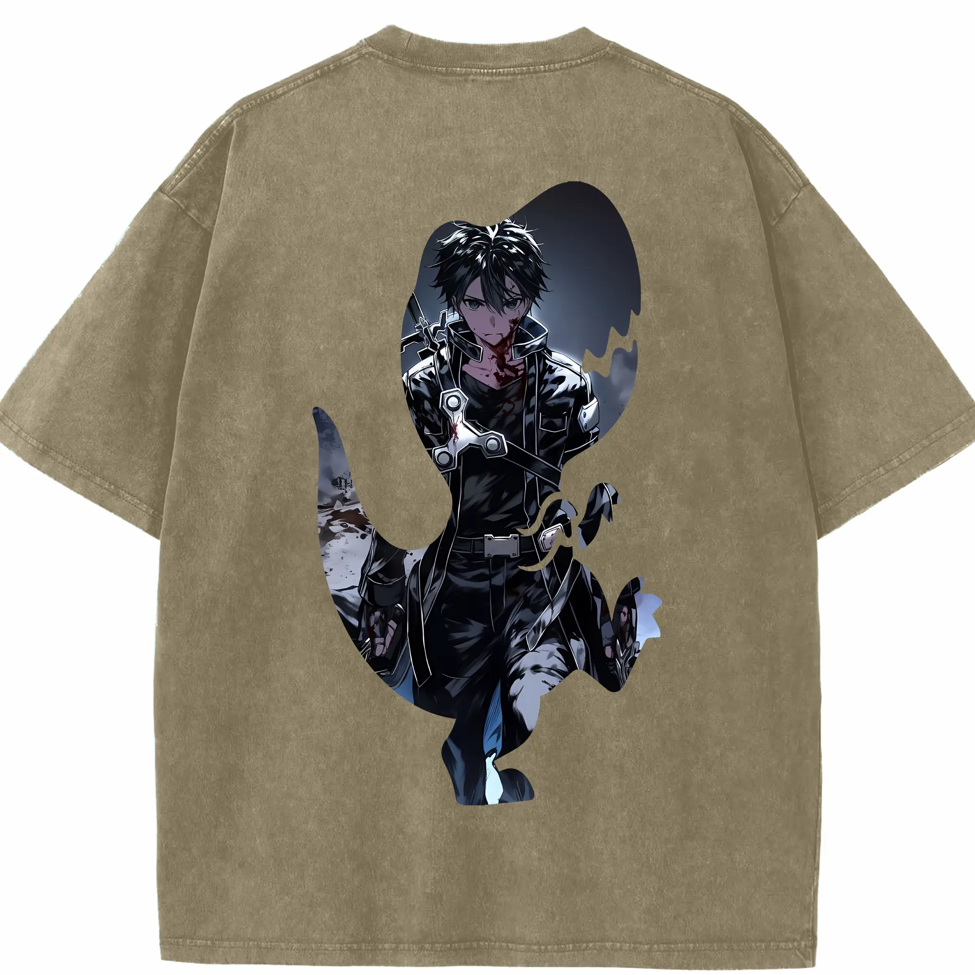 ソードアートオンライン グッズ キリト - 綿100% ヴィンテージ風 半袖Tシャツ ・ フロントプリント ・ 柔らか肌触り ・ 通気性 快適 ・ スポーツ カジュアル 外出用