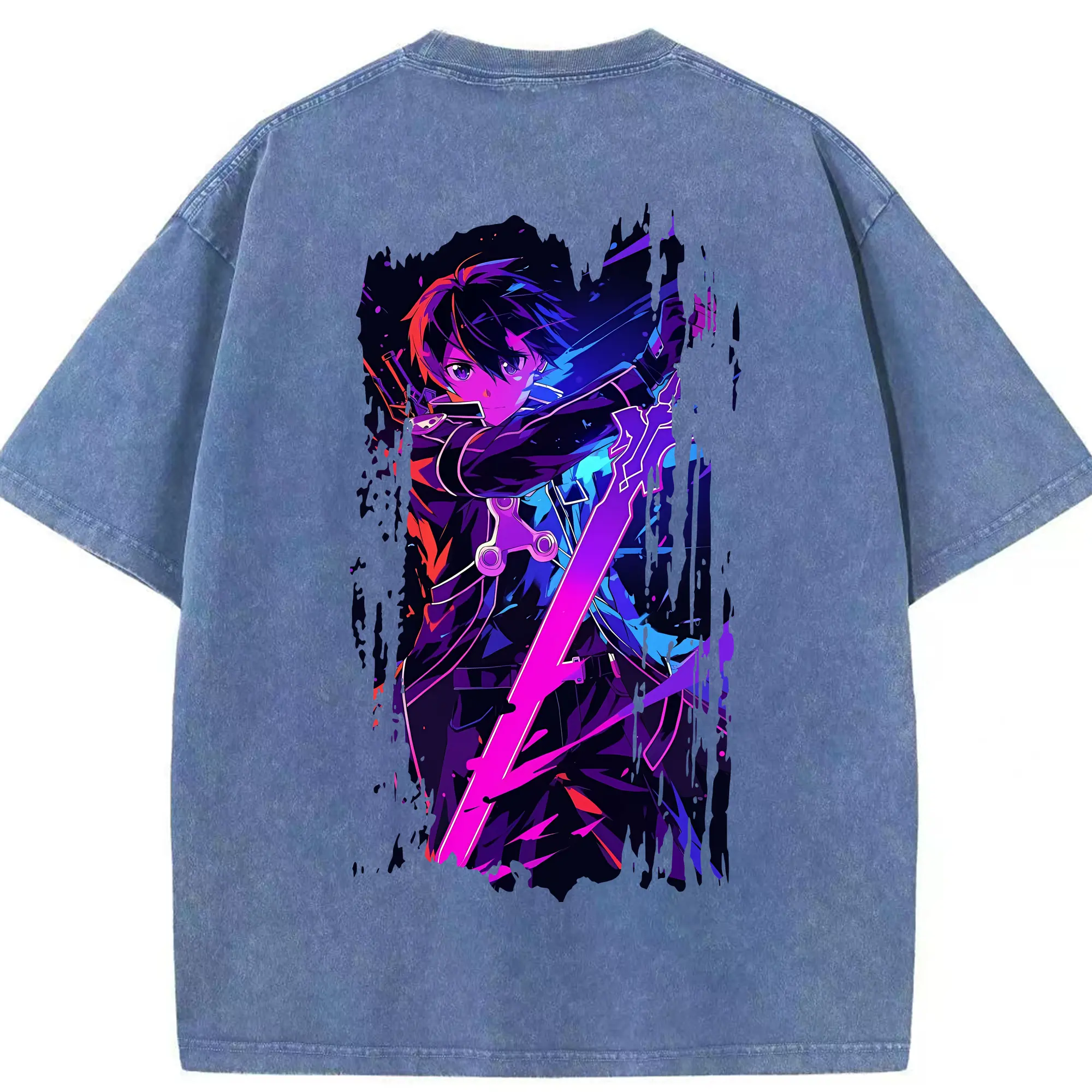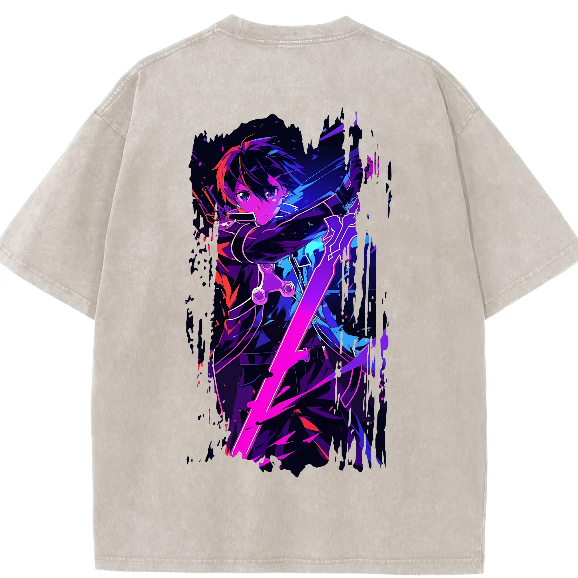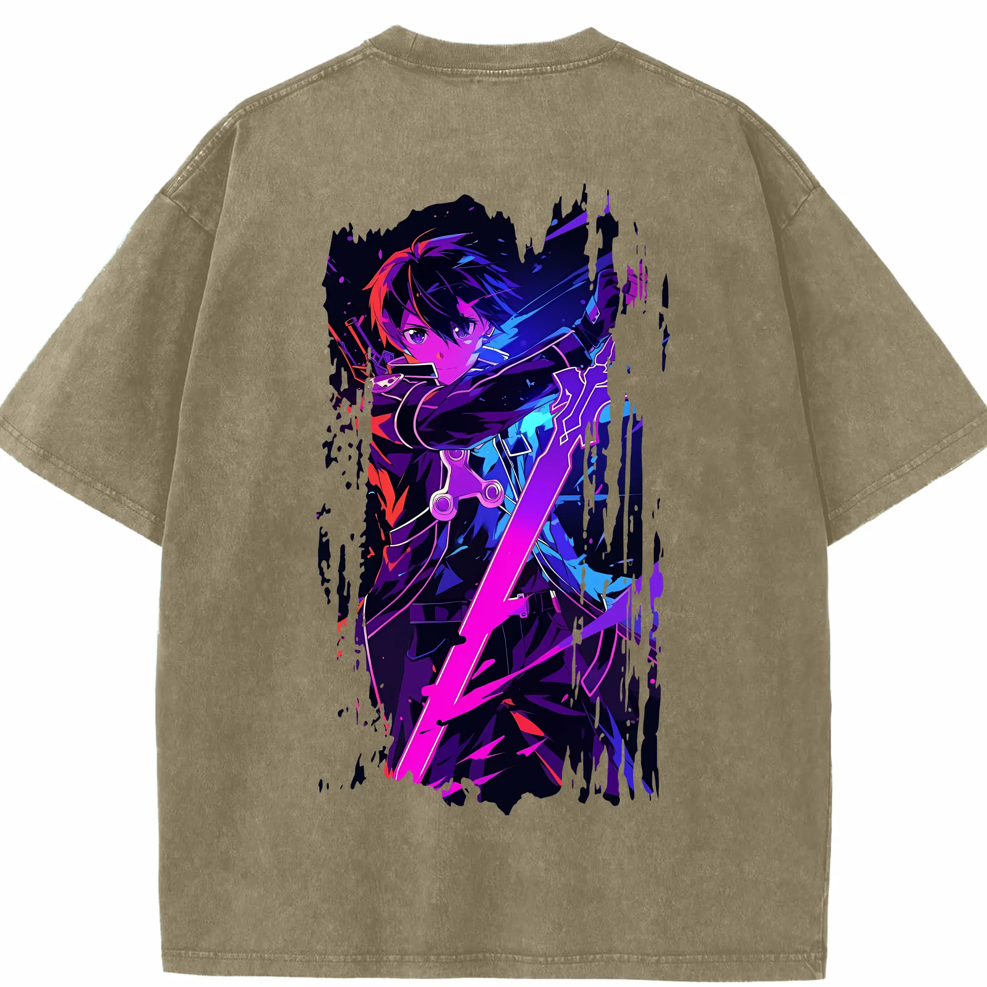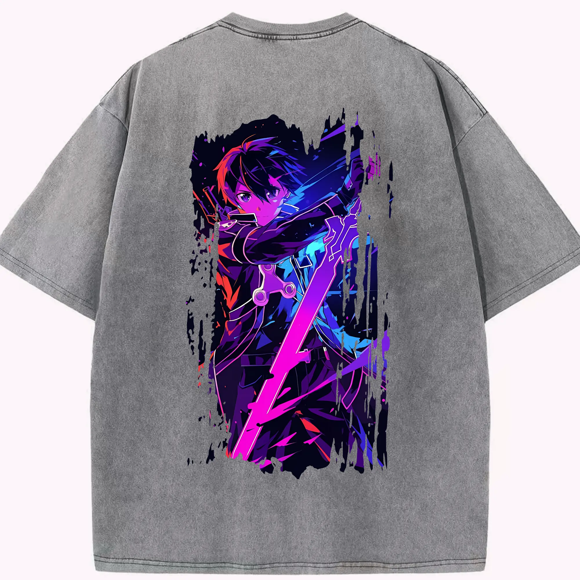 ソードアートオンライン グッズ キリト - 綿100% ヴィンテージ風 半袖Tシャツ ・ フロントプリント ・ 柔らか肌触り ・ 通気性 快適 ・ スポーツ カジュアル 外出用