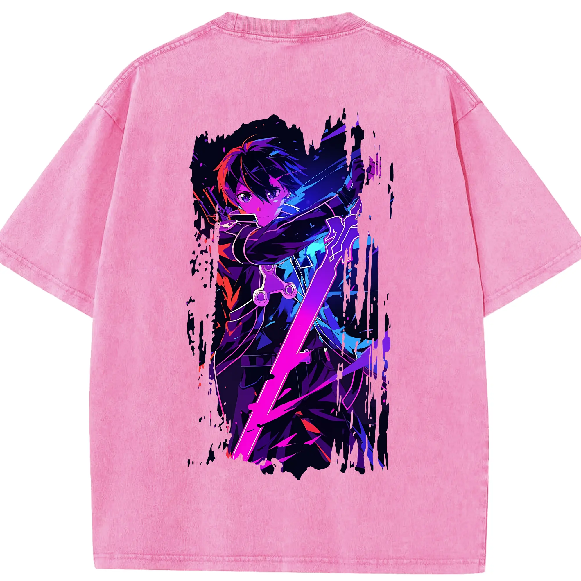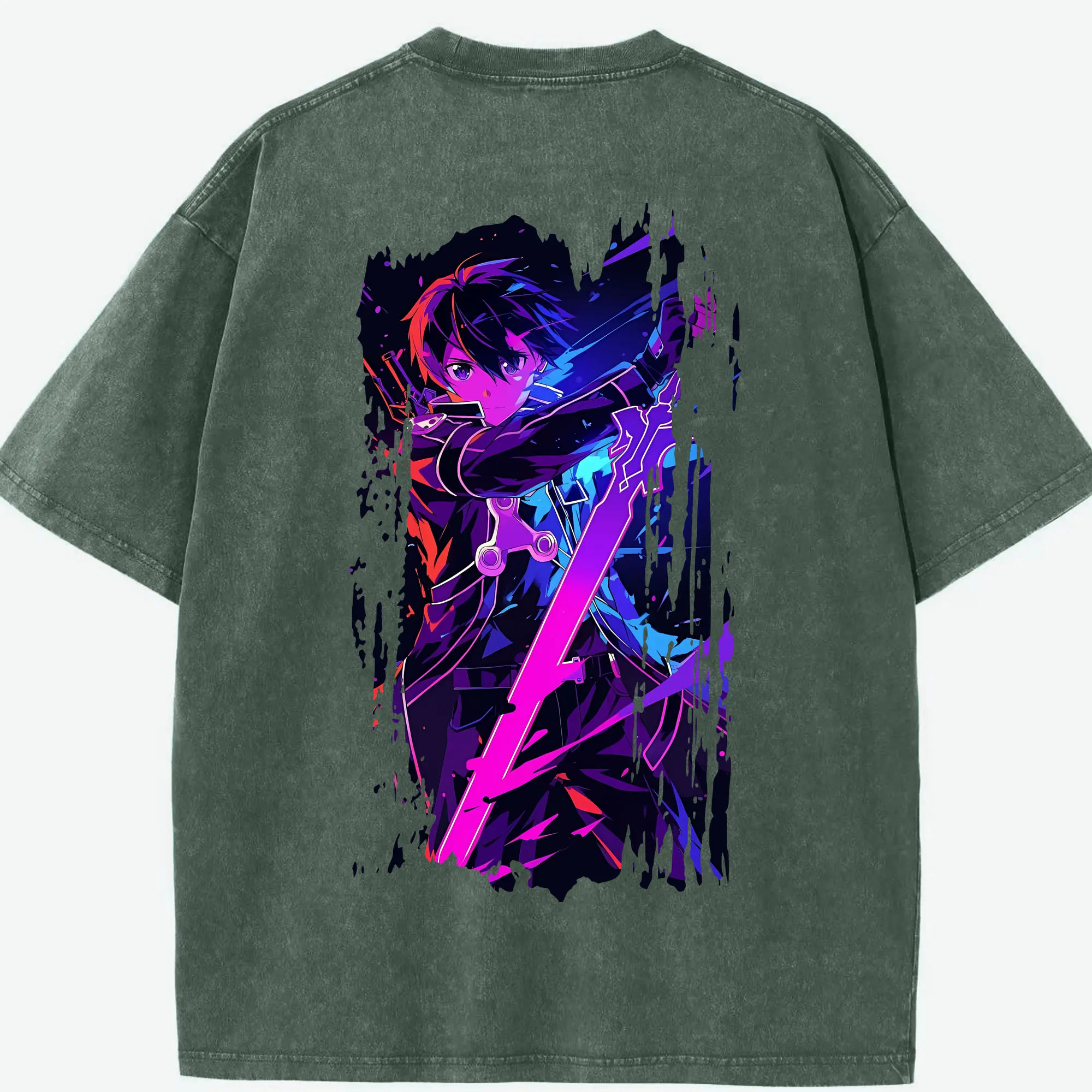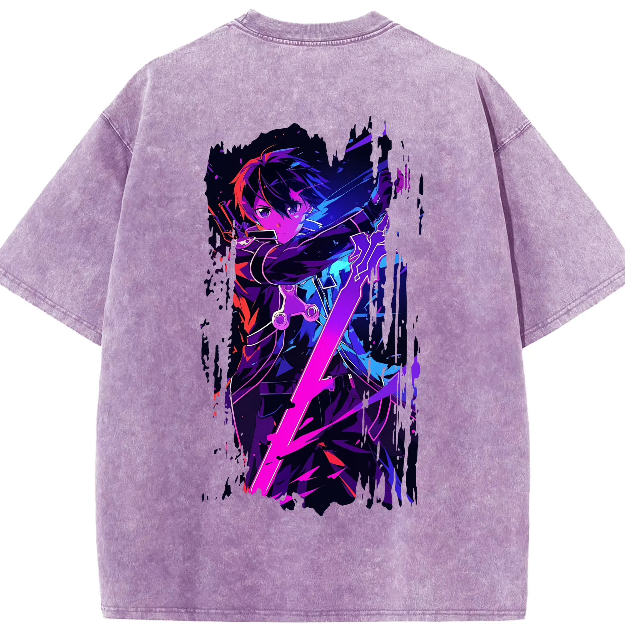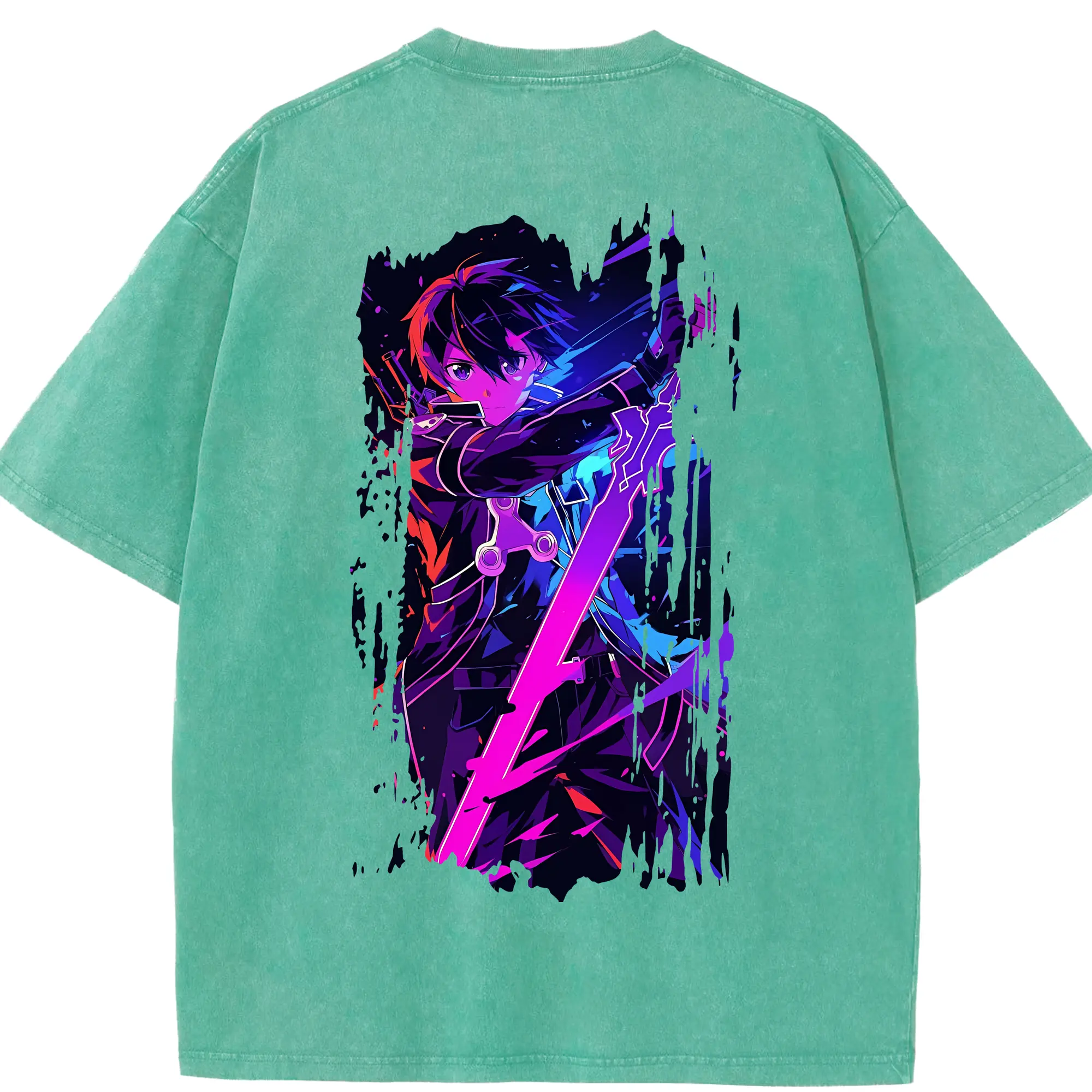 ソードアートオンライン グッズ キリト - 綿100% ヴィンテージ風 半袖Tシャツ ・ フロントプリント ・ 柔らか肌触り ・ 通気性 快適 ・ スポーツ カジュアル 外出用