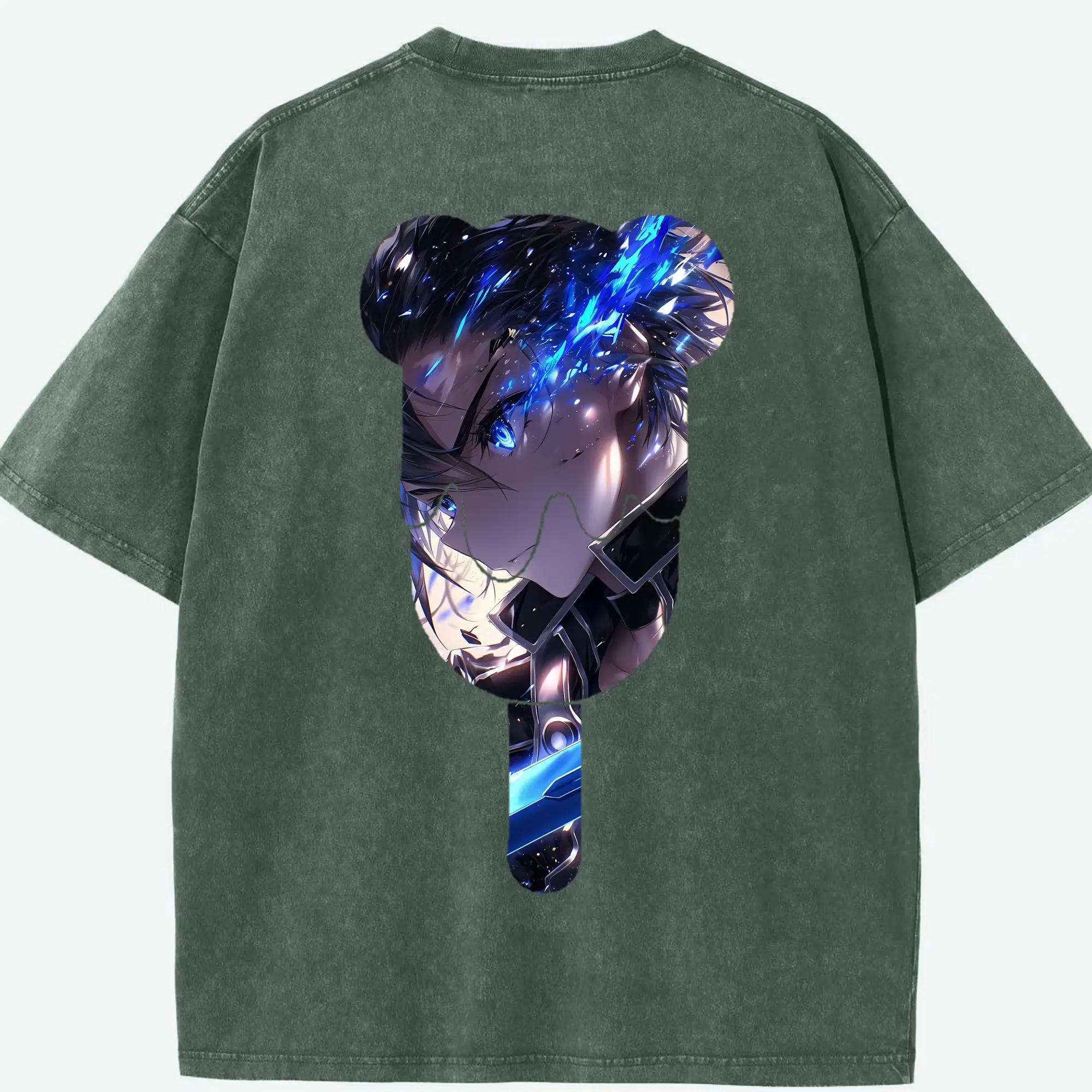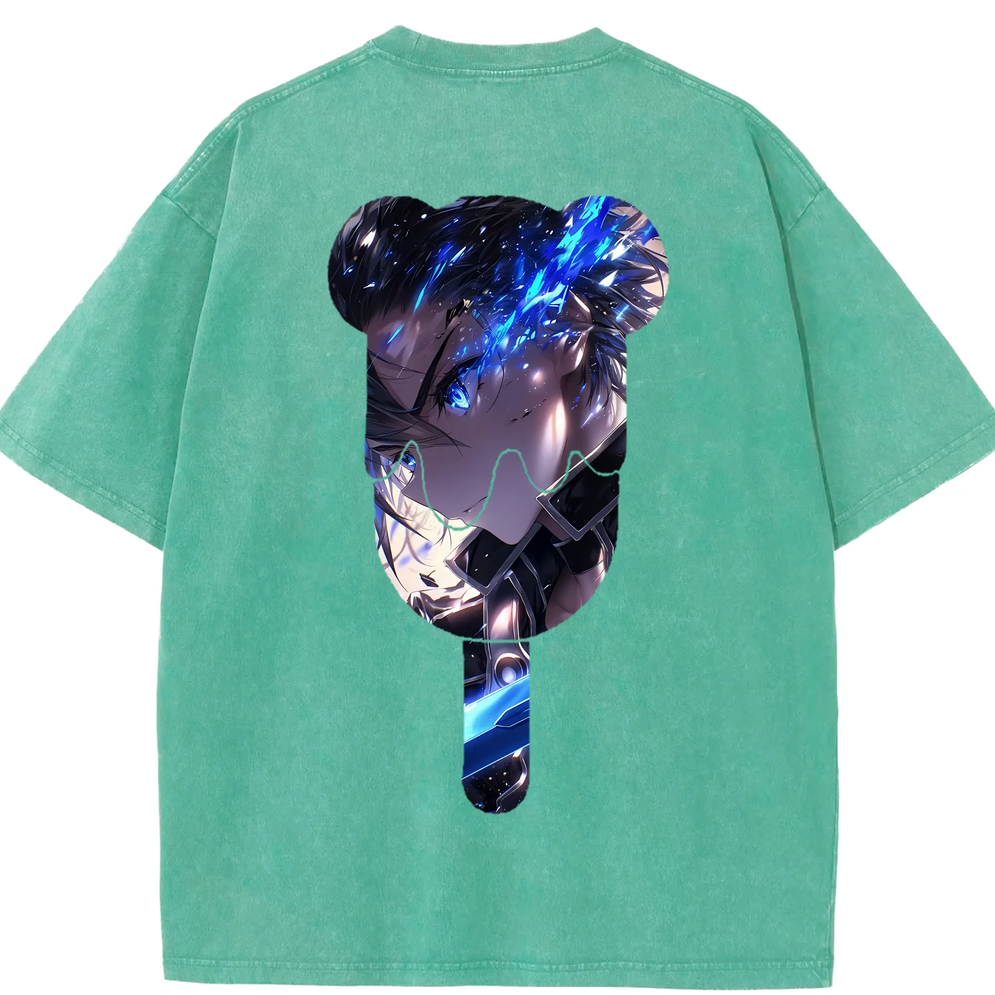 ソードアートオンライン グッズ キリト - 綿100% ヴィンテージ風 半袖Tシャツ ・ フロントプリント ・ 柔らか肌触り ・ 通気性 快適 ・ スポーツ カジュアル 外出用