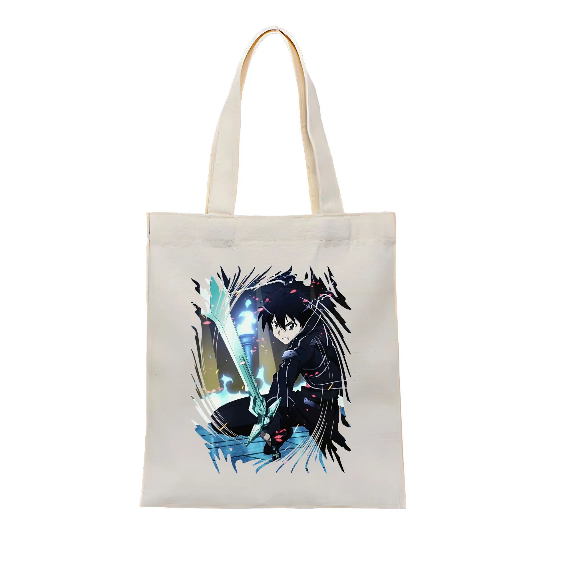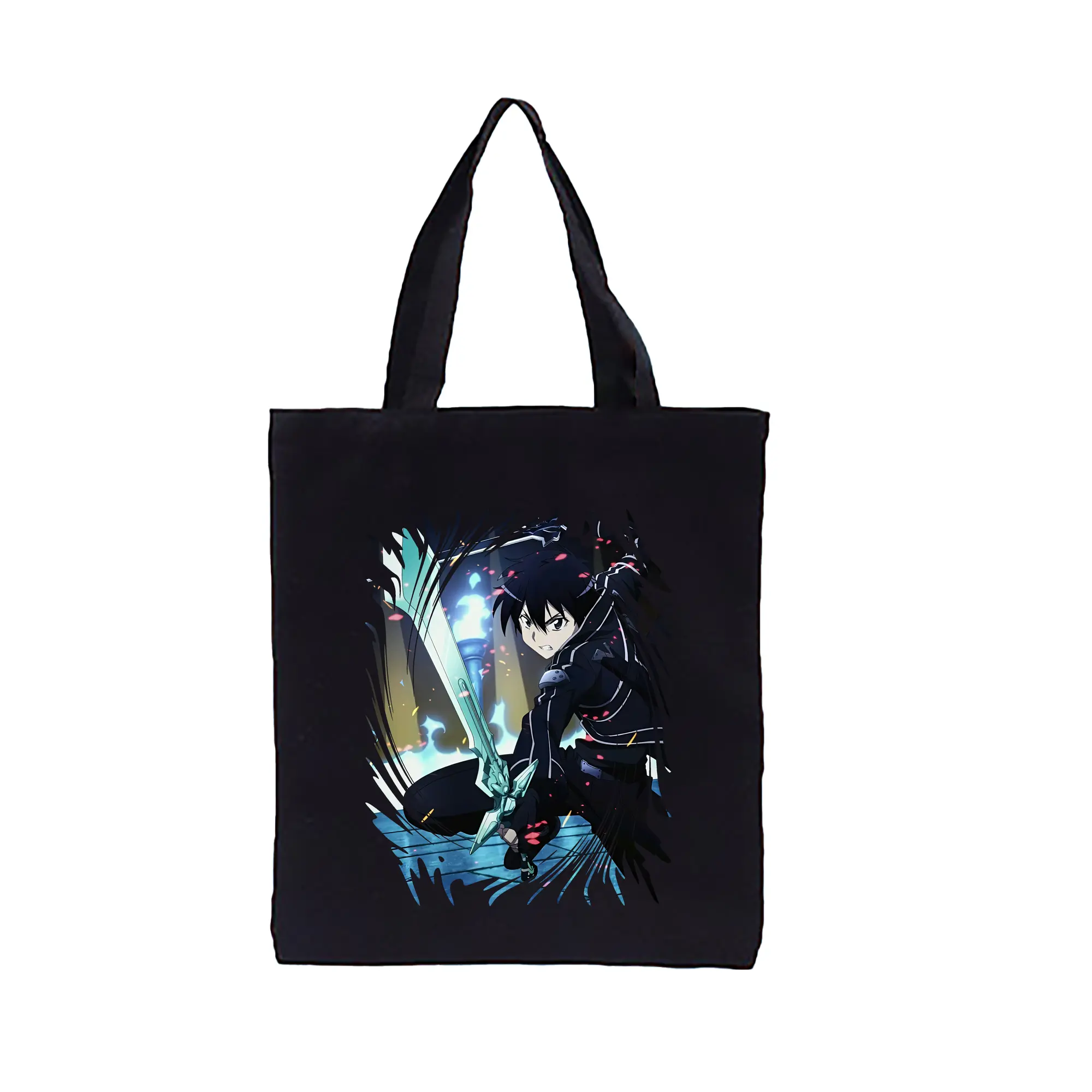 ソードアートオンライン グッズ キリト - 縦型キャンバス手提げバッグ(トートバッグ) ・ キャンバス素材 ・ ショッピング用 ・ 軽量 丈夫 お手入れ簡単