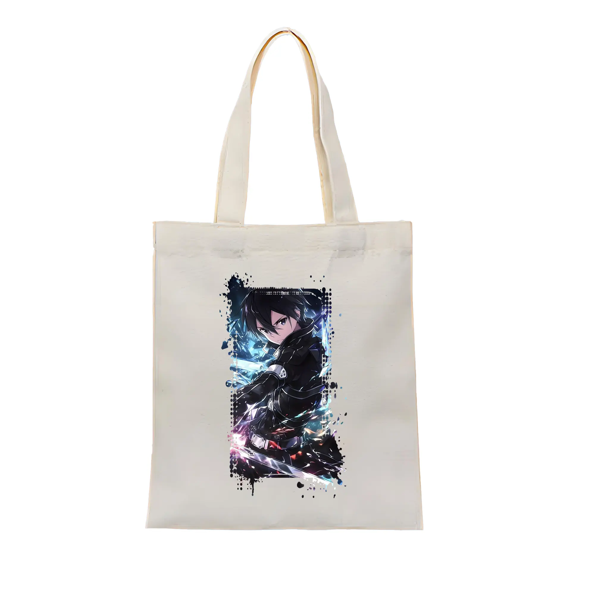 ソードアートオンライン グッズ キリト - 縦型キャンバス手提げバッグ(トートバッグ) ・ キャンバス素材 ・ ショッピング用 ・ 軽量 丈夫 お手入れ簡単