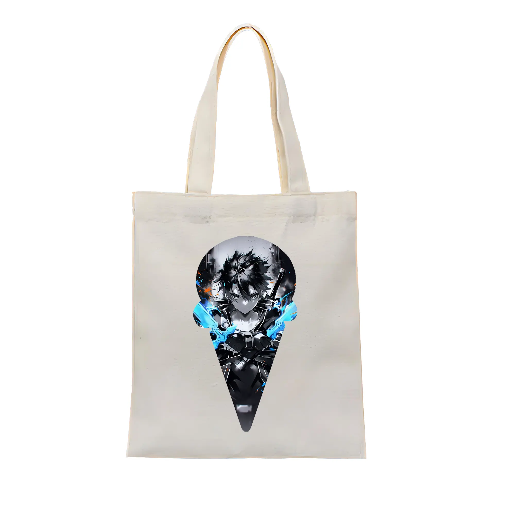 ソードアートオンライン グッズ キリト - 縦型キャンバス手提げバッグ(トートバッグ) ・ キャンバス素材 ・ ショッピング用 ・ 軽量 丈夫 お手入れ簡単