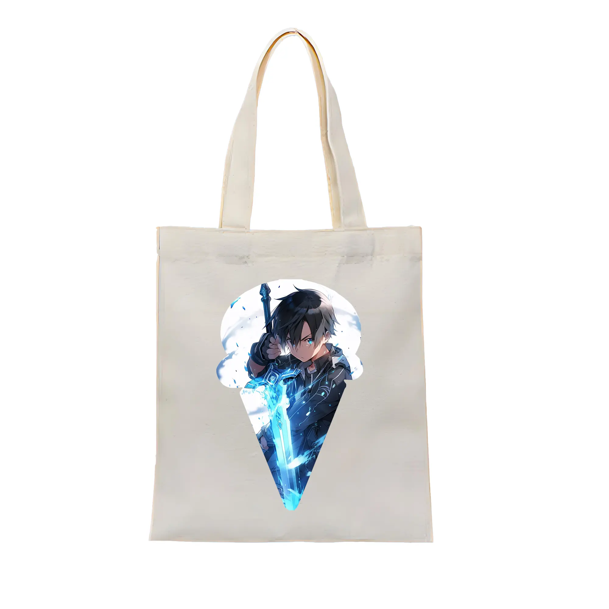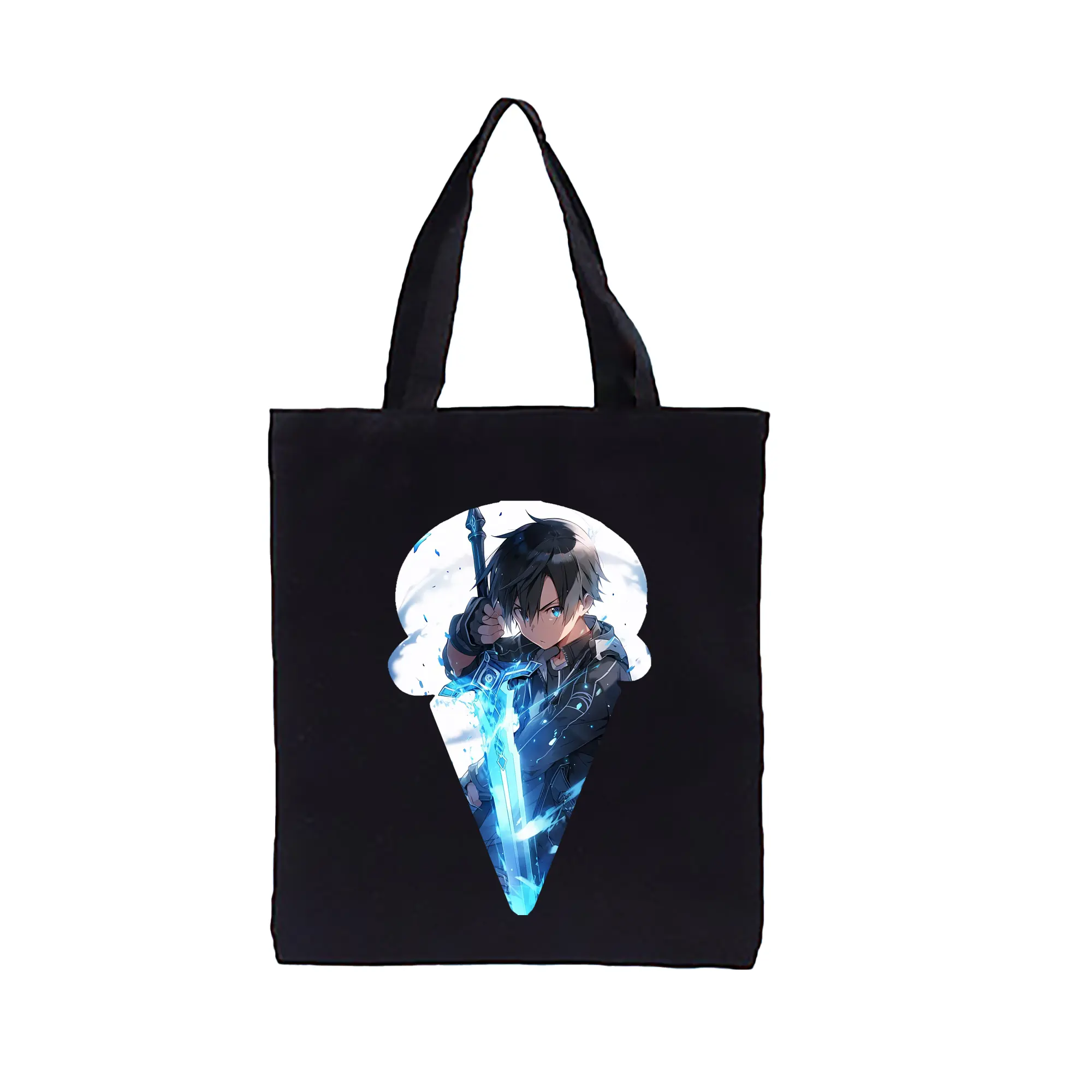 ソードアートオンライン グッズ キリト - 縦型キャンバス手提げバッグ(トートバッグ) ・ キャンバス素材 ・ ショッピング用 ・ 軽量 丈夫 お手入れ簡単