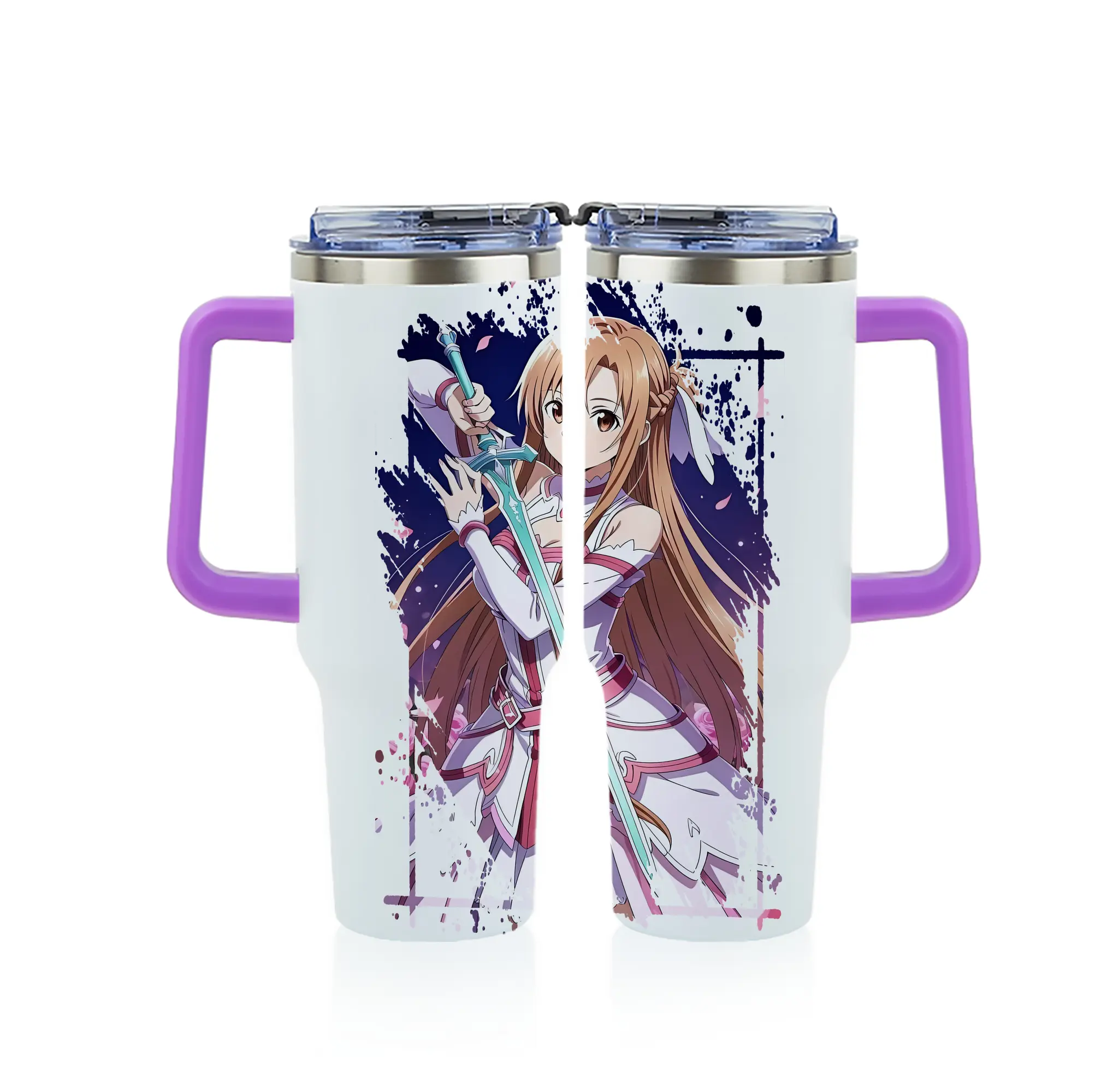 ソードアートオンライン グッズ アスナ - 1200mL フルプリント車用タンブラー ・ 304ステンレス 内側 ・ 201ステンレス 外側 ・ 保温 保冷 ・ 通勤 ドライブ アウトドア用