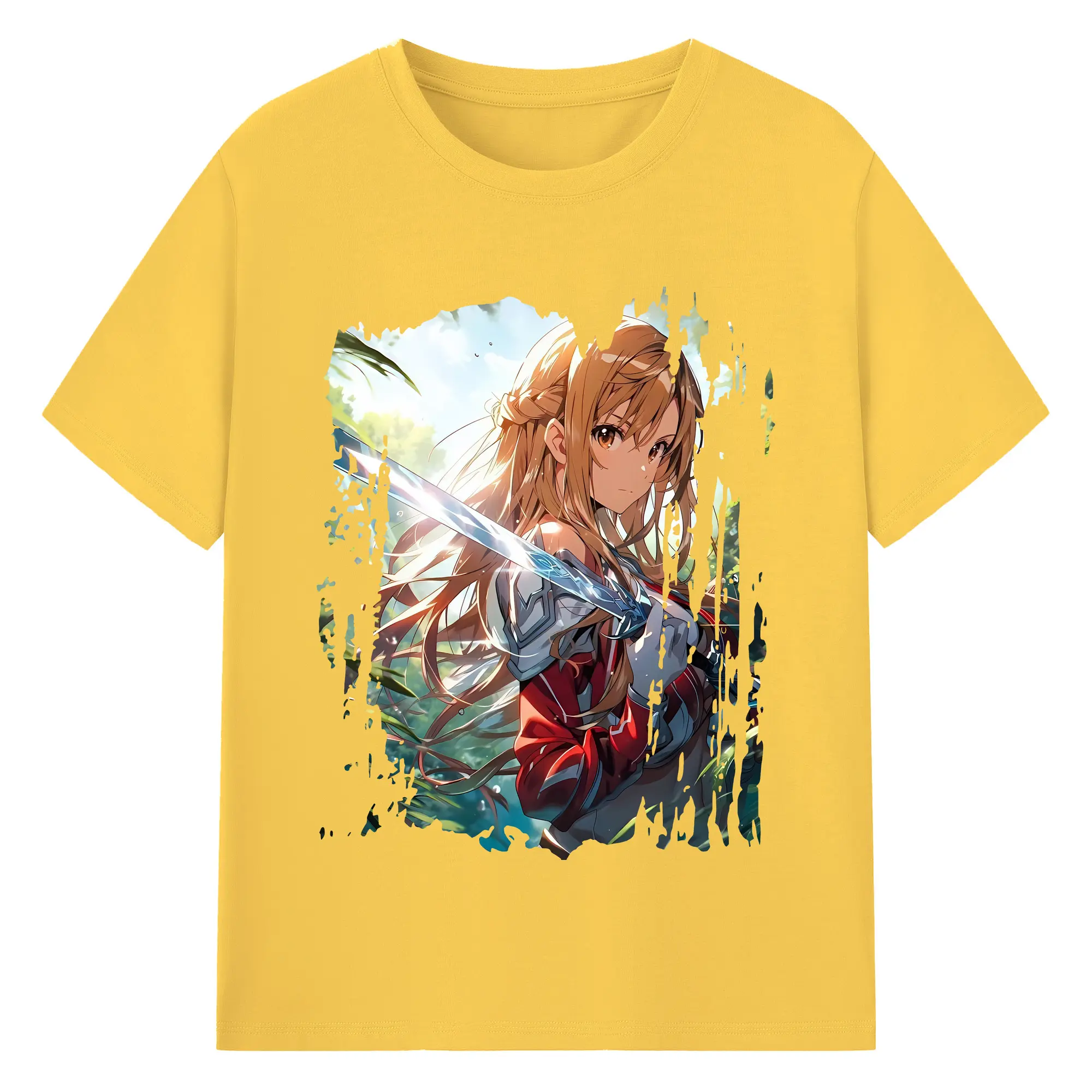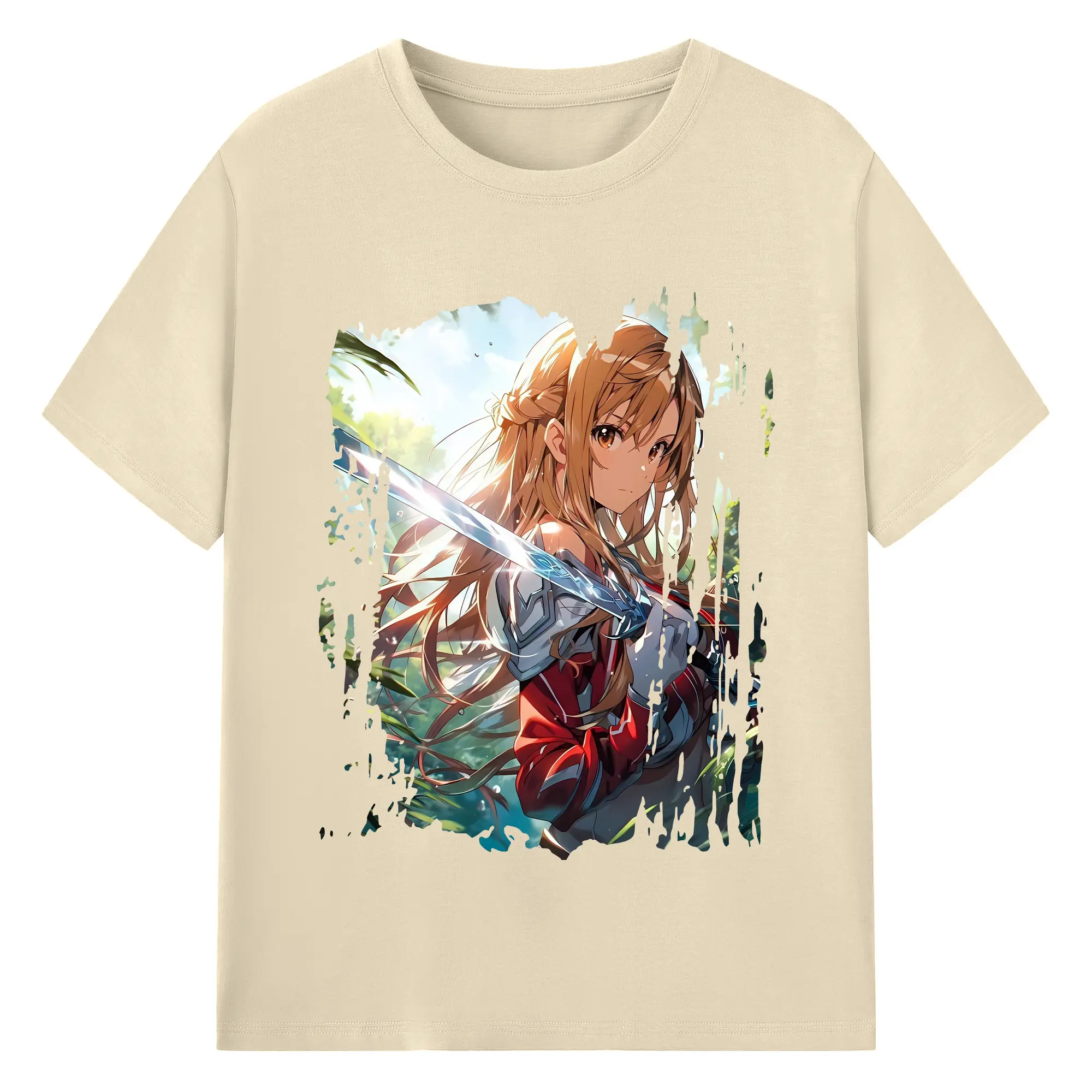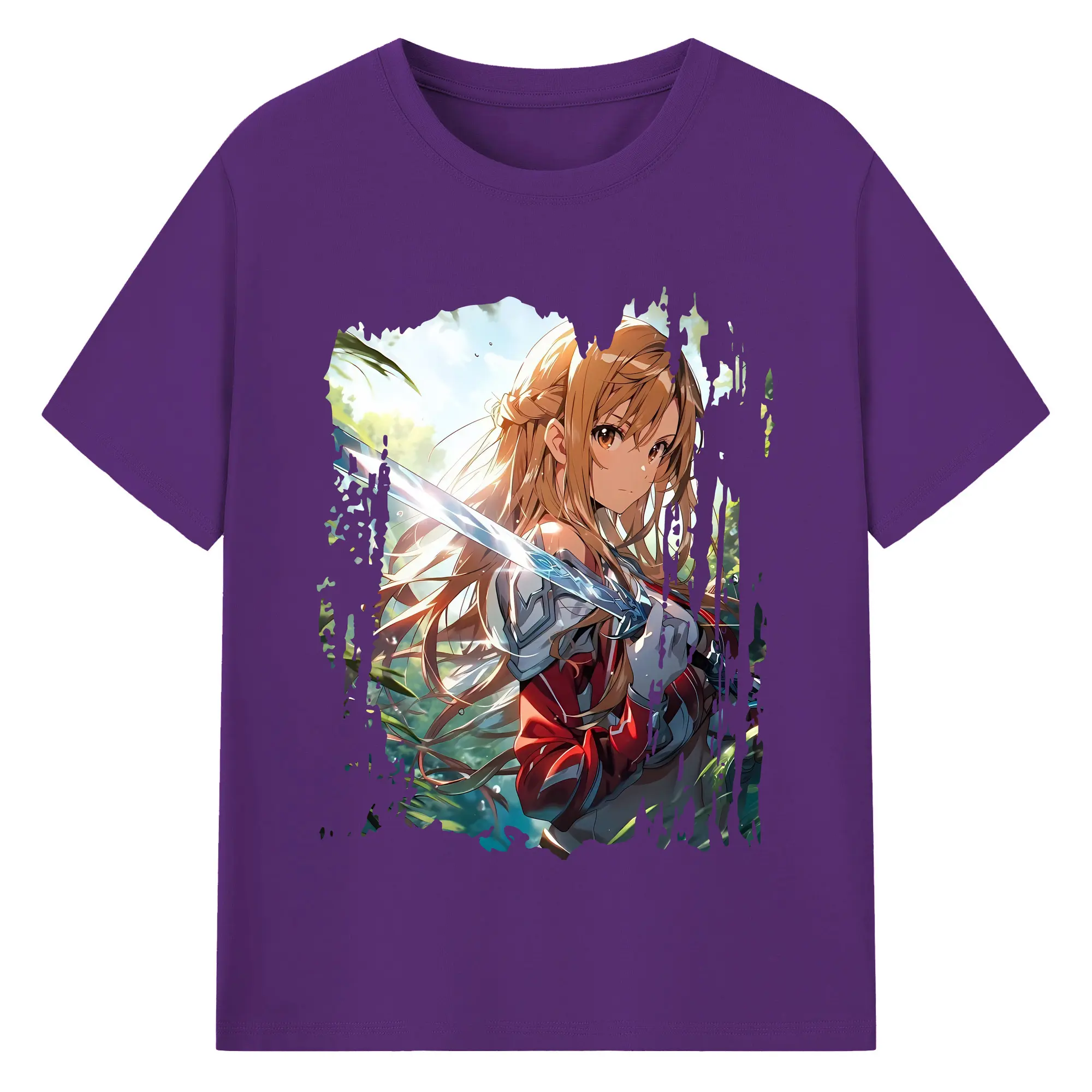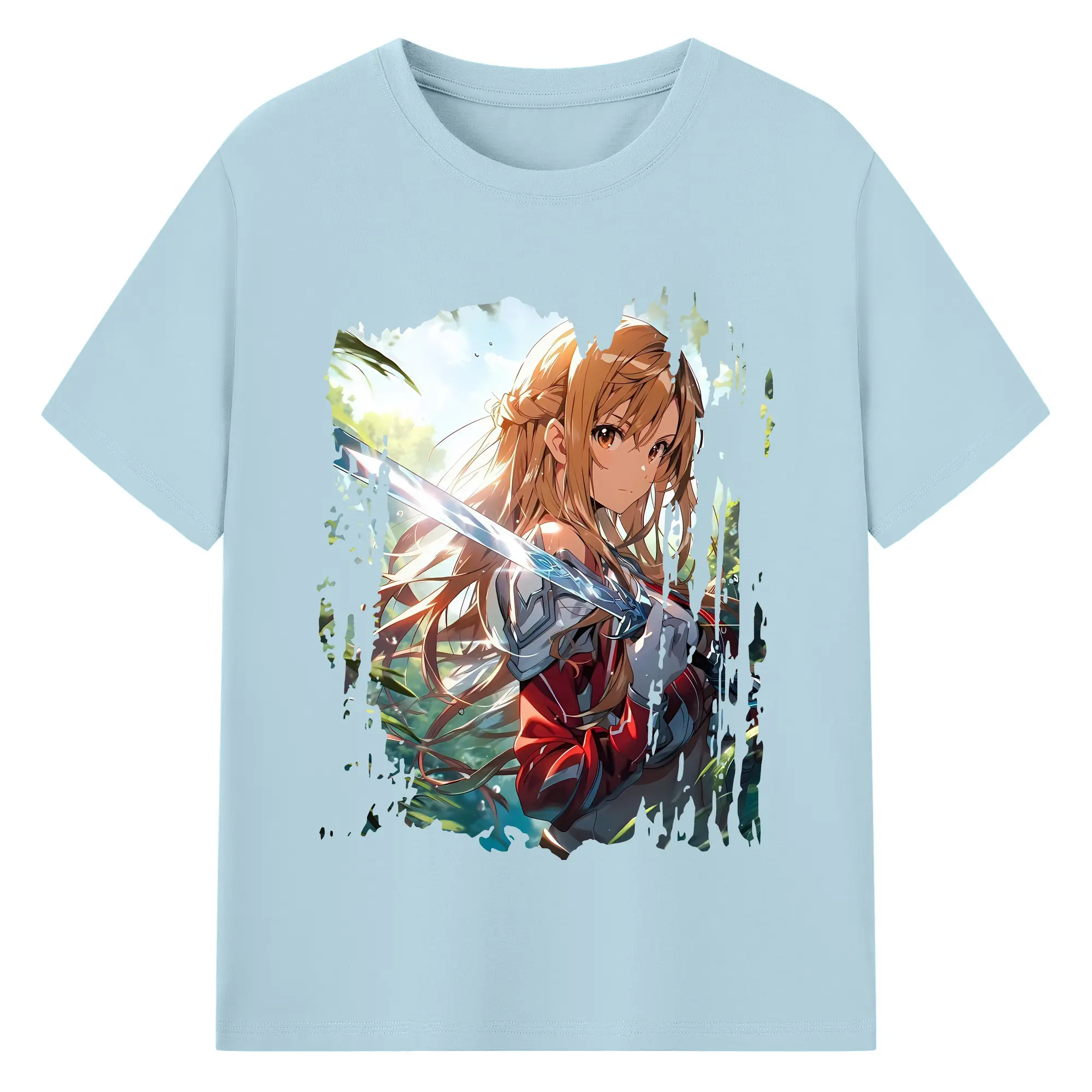 ソードアートオンライン グッズ アスナ - 綿100% 半袖Tシャツ ・ バックプリント ・ 快適 通気性 ・ 日常使い 散歩 スポーツ用