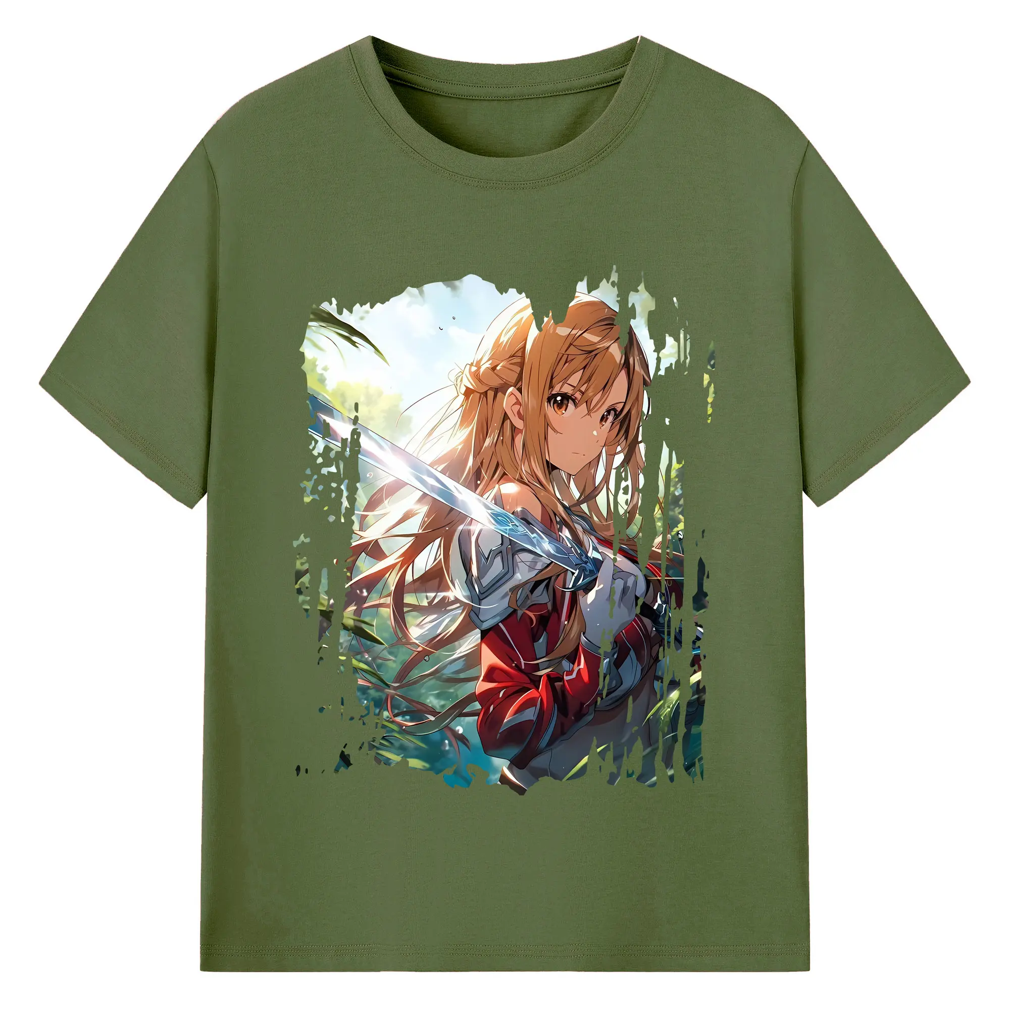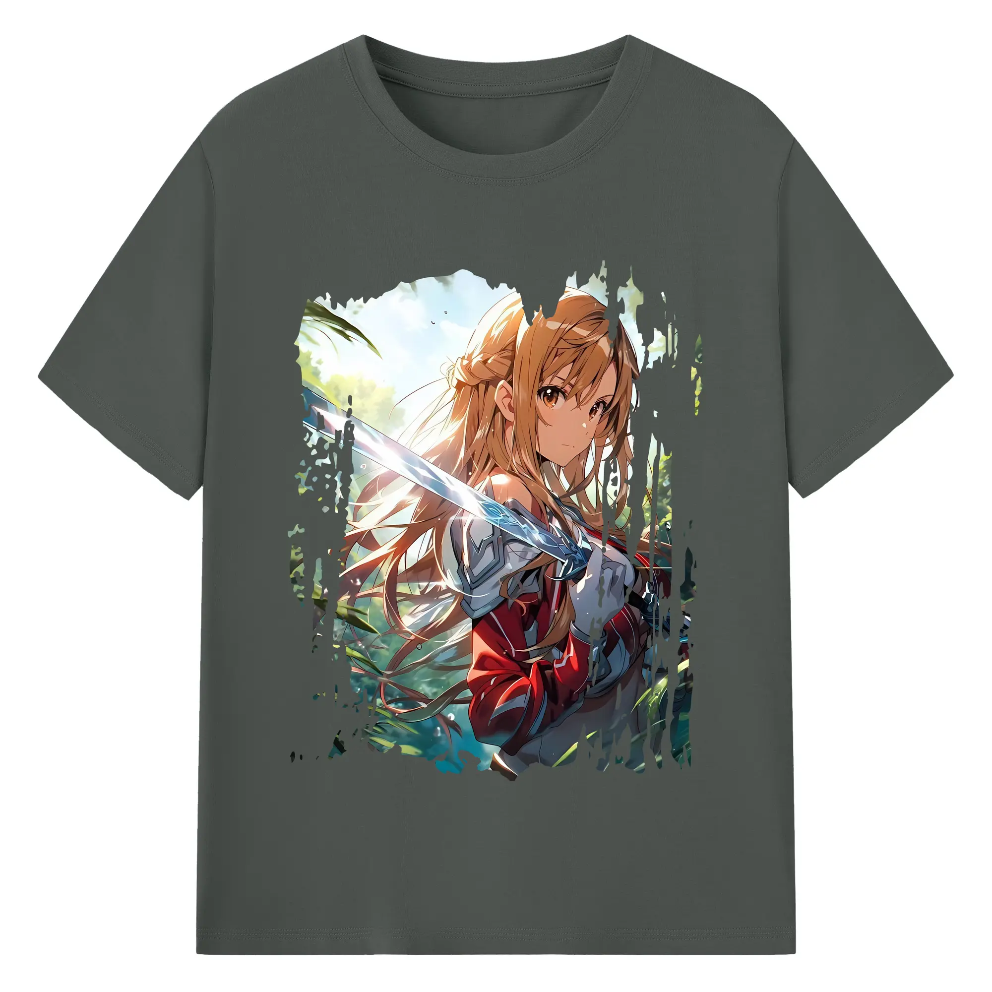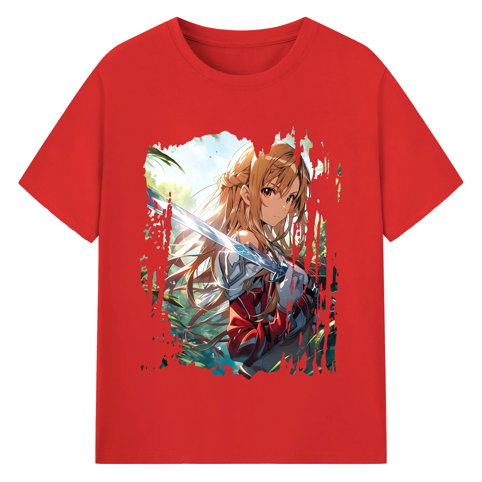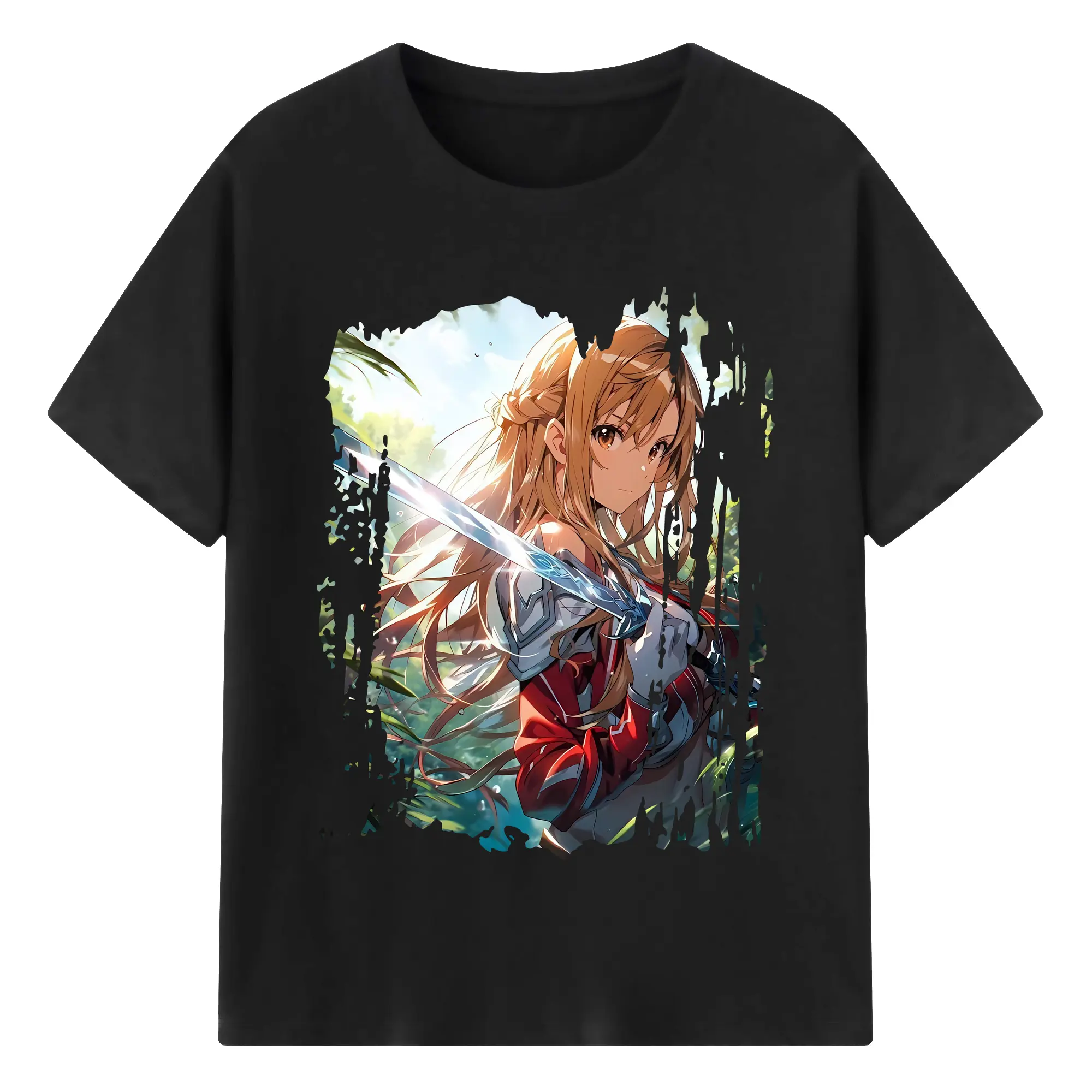 ソードアートオンライン グッズ アスナ - 綿100% 半袖Tシャツ ・ バックプリント ・ 快適 通気性 ・ 日常使い 散歩 スポーツ用