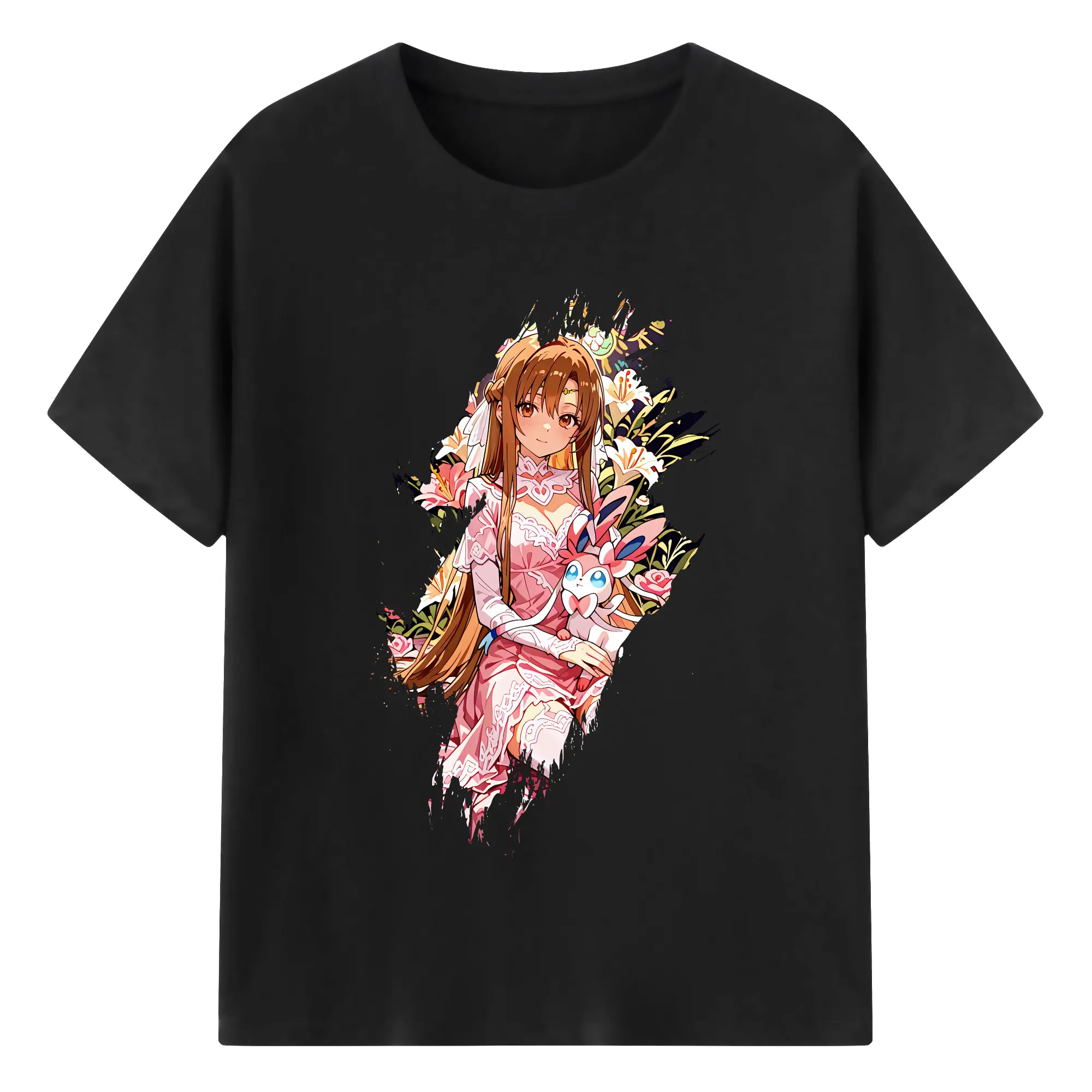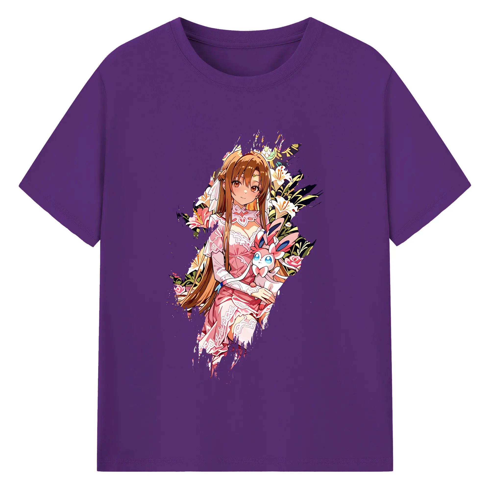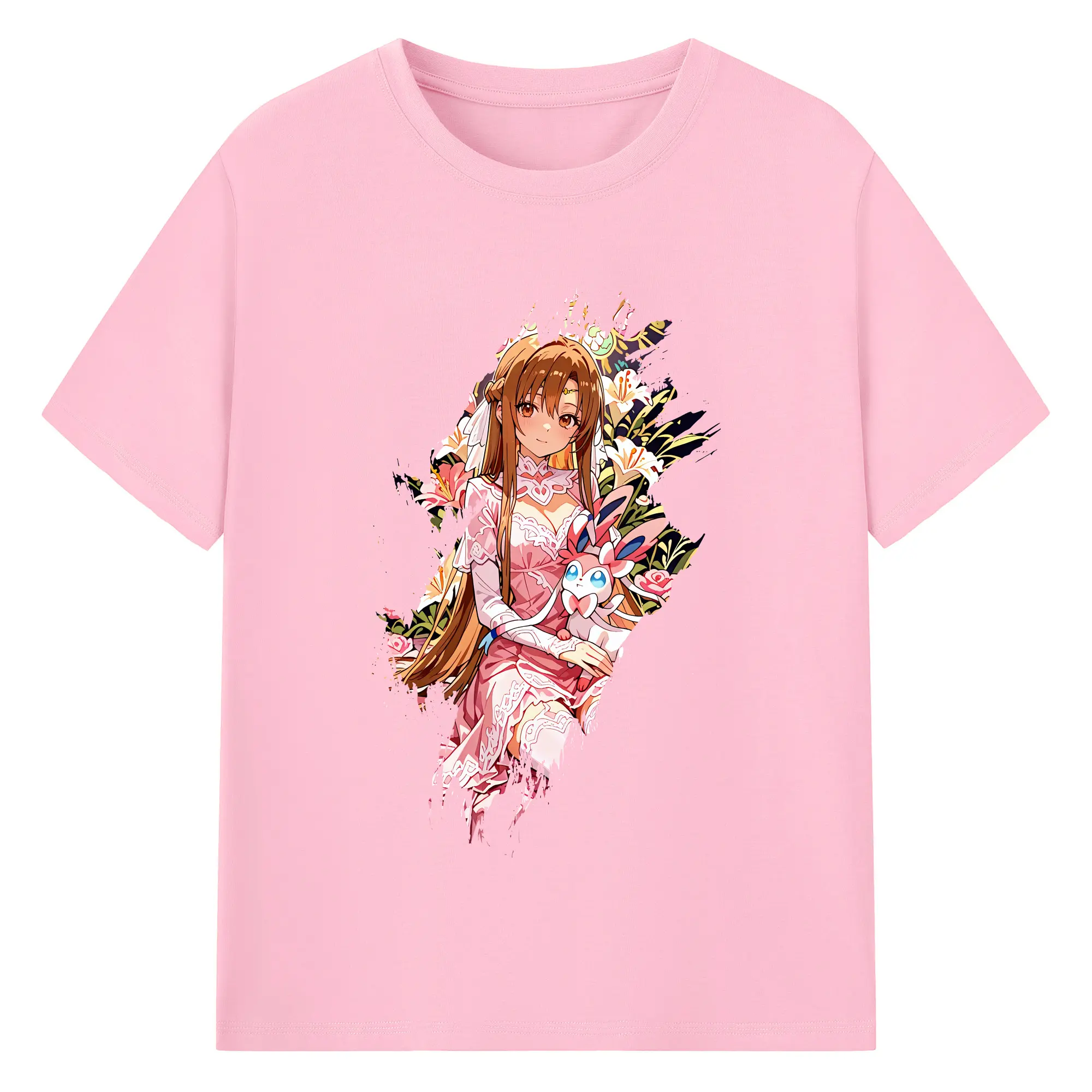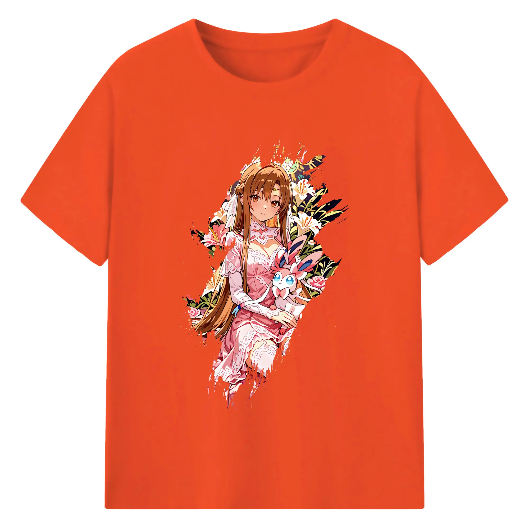 ソードアートオンライン グッズ アスナ - 綿100% 半袖Tシャツ ・ バックプリント ・ 快適 通気性 ・ 日常使い 散歩 スポーツ用
