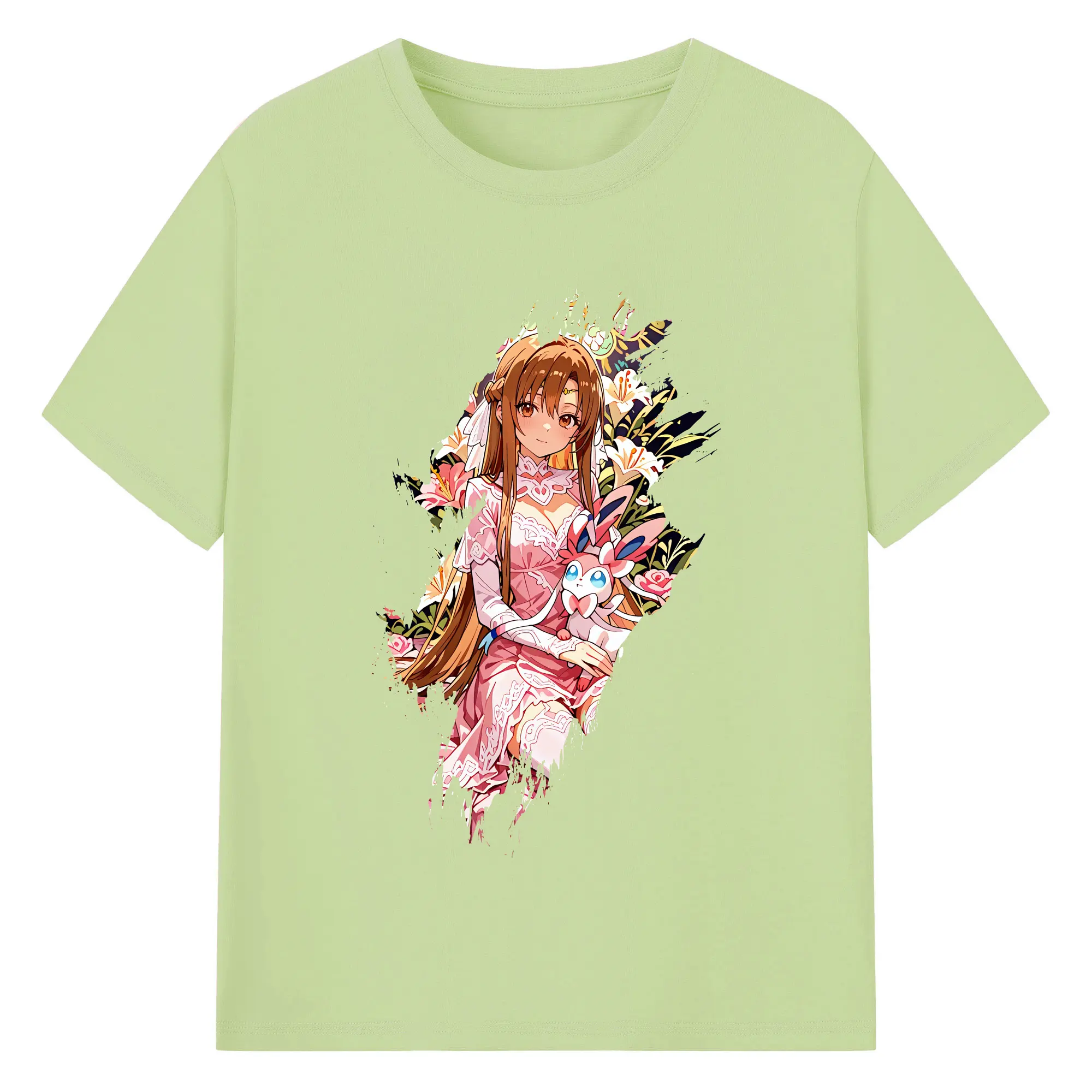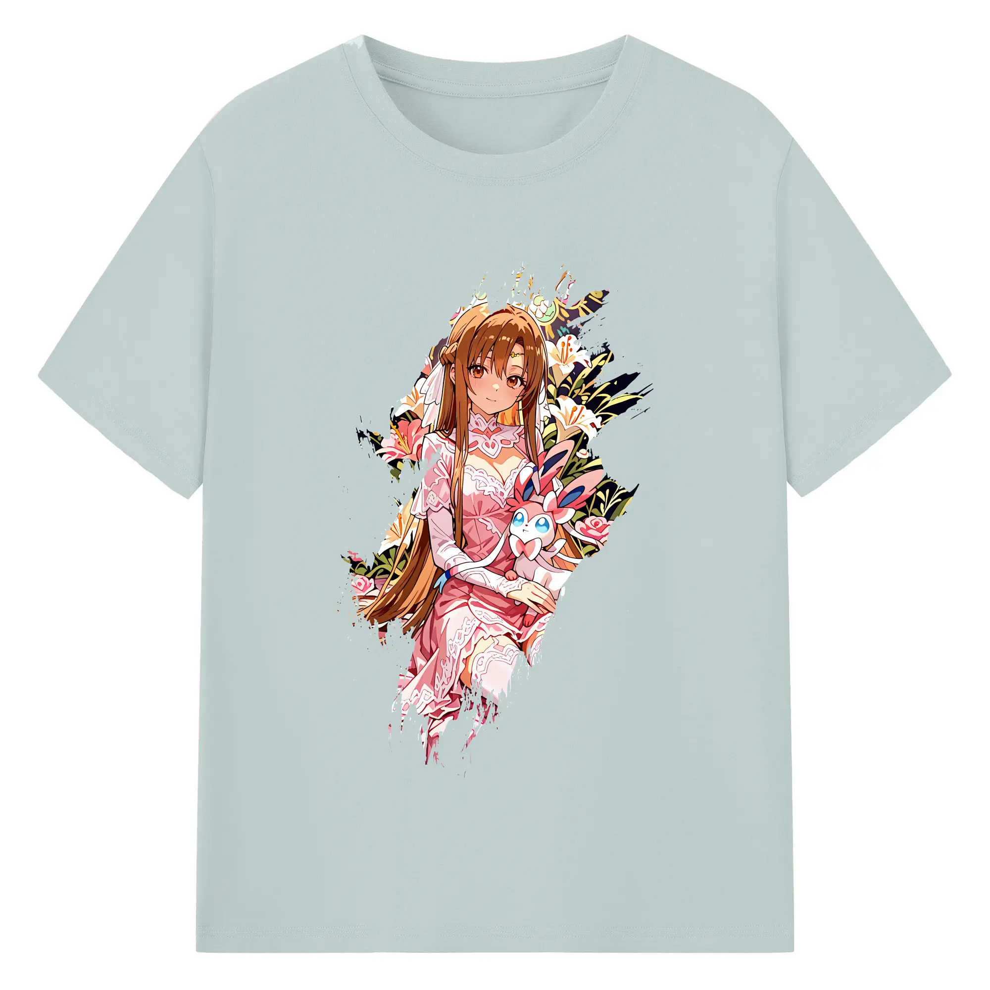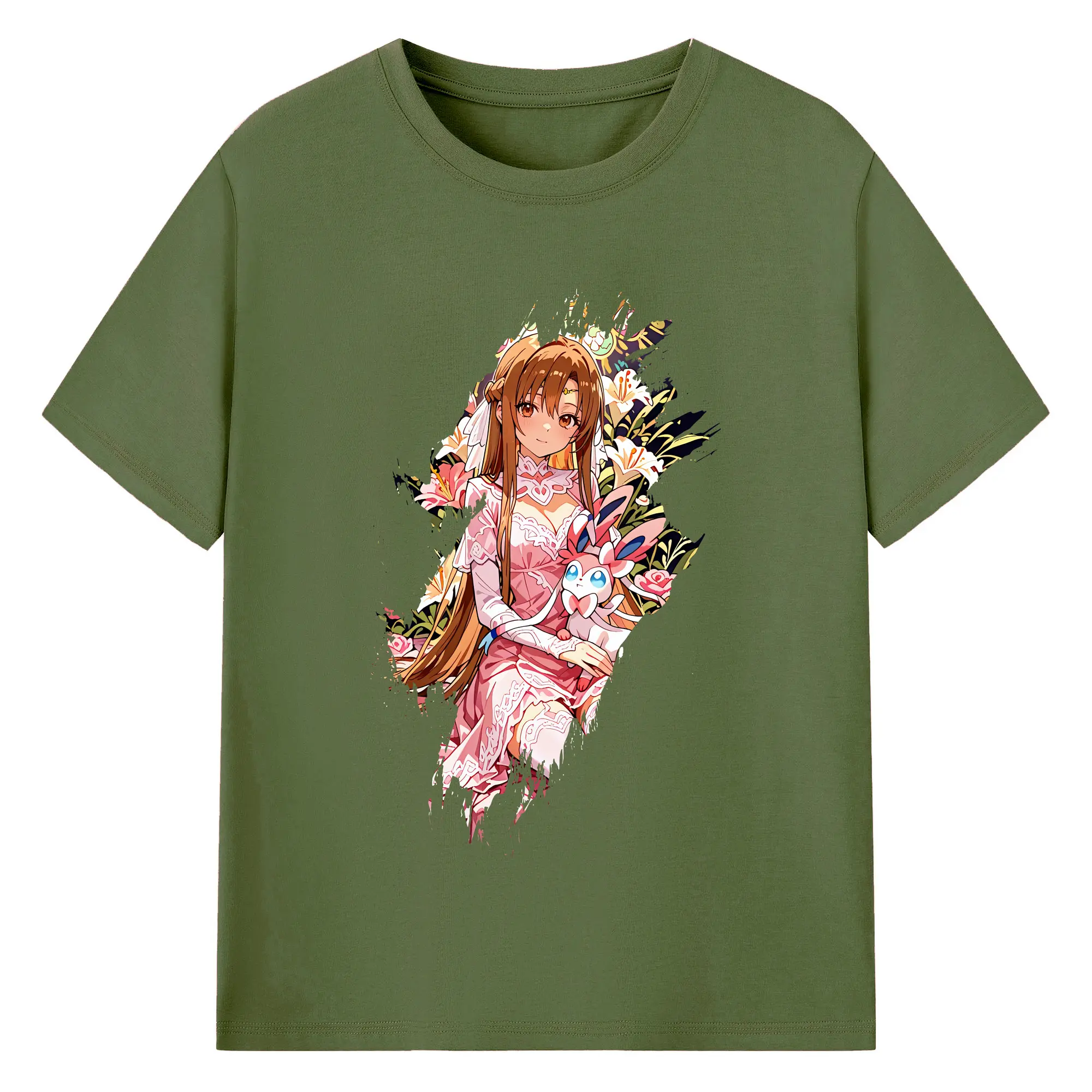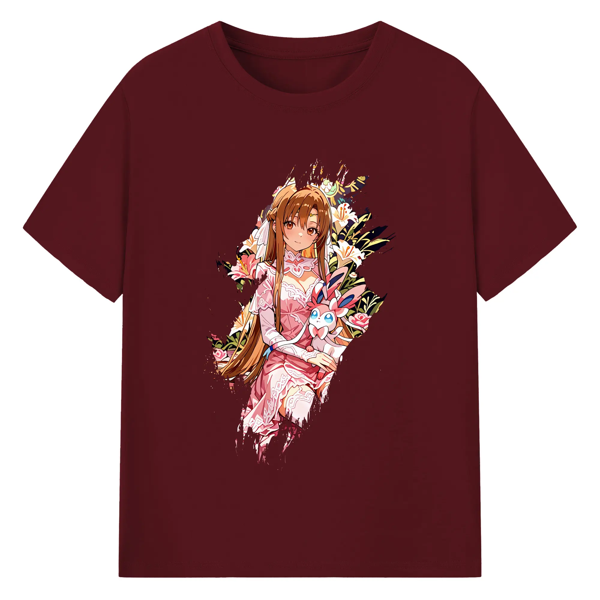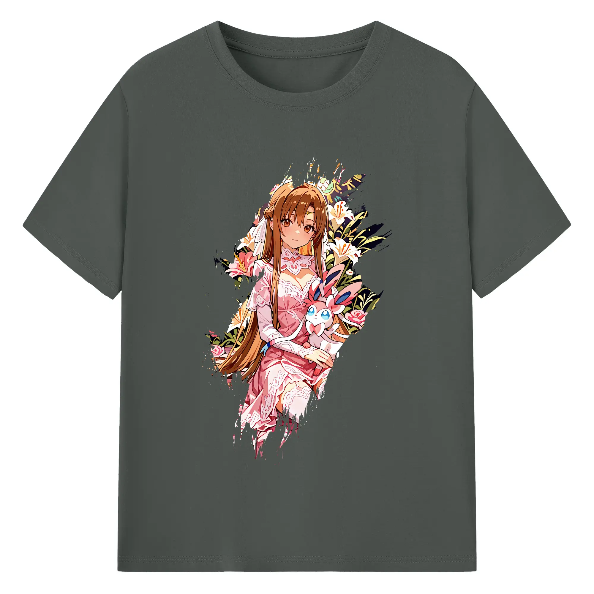 ソードアートオンライン グッズ アスナ - 綿100% 半袖Tシャツ ・ バックプリント ・ 快適 通気性 ・ 日常使い 散歩 スポーツ用