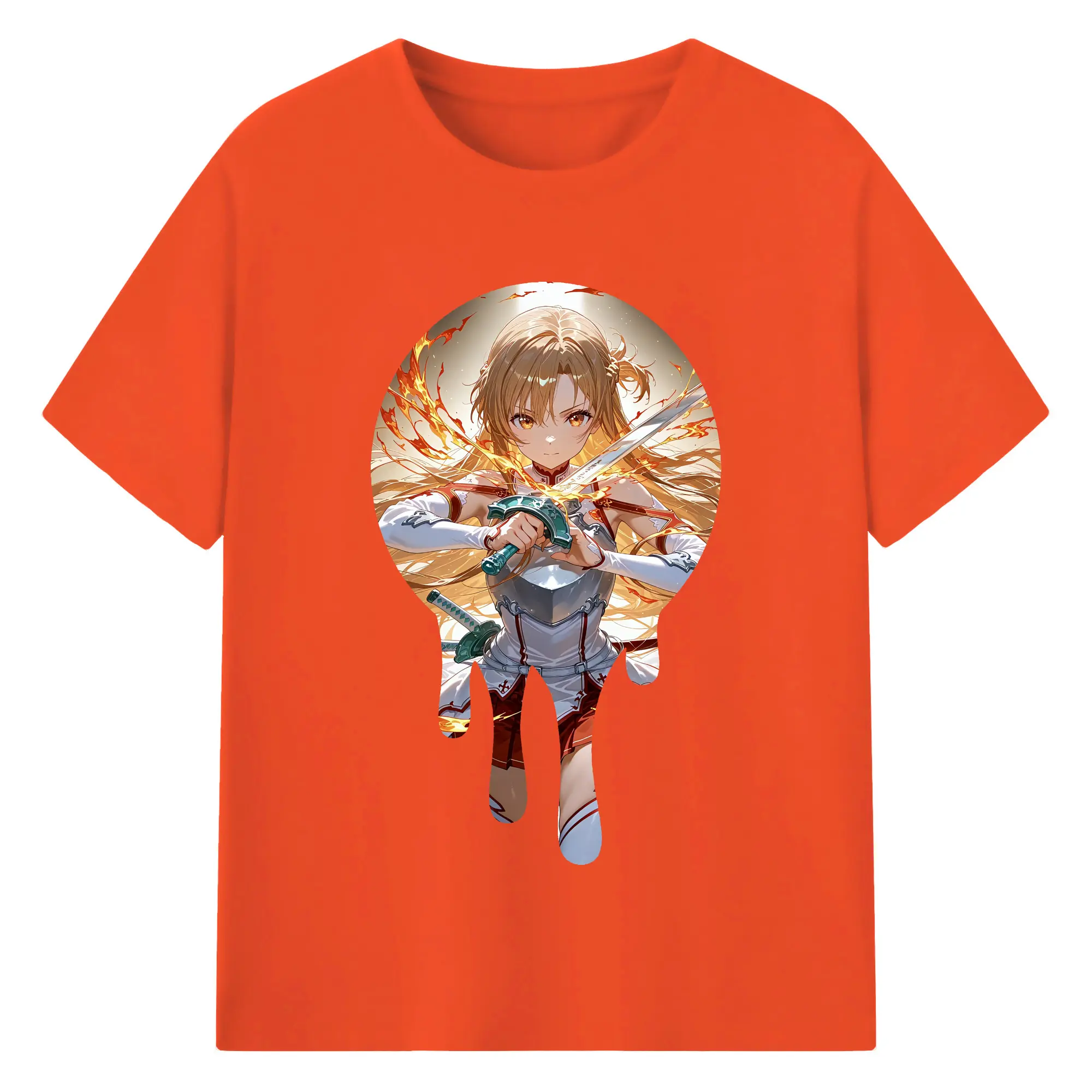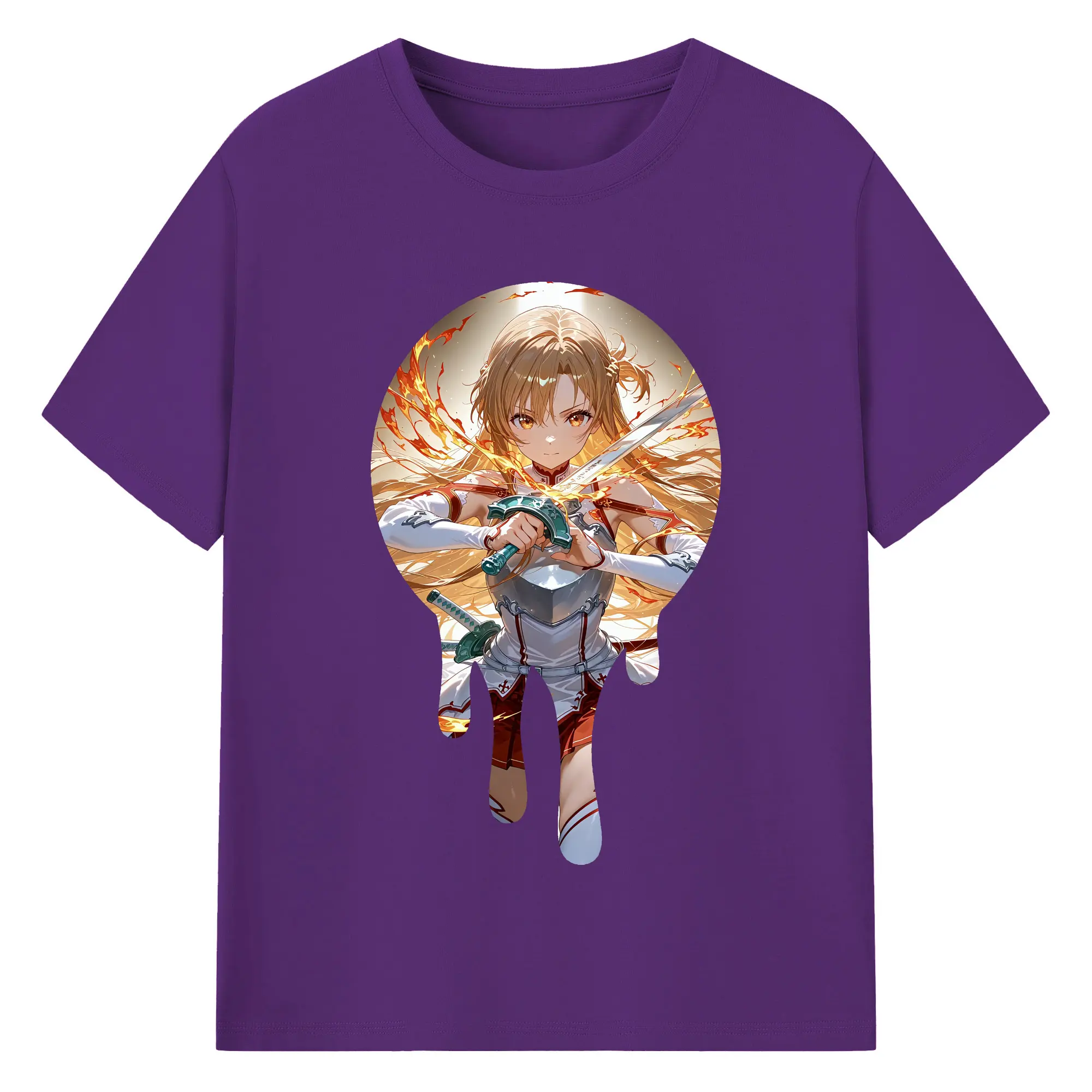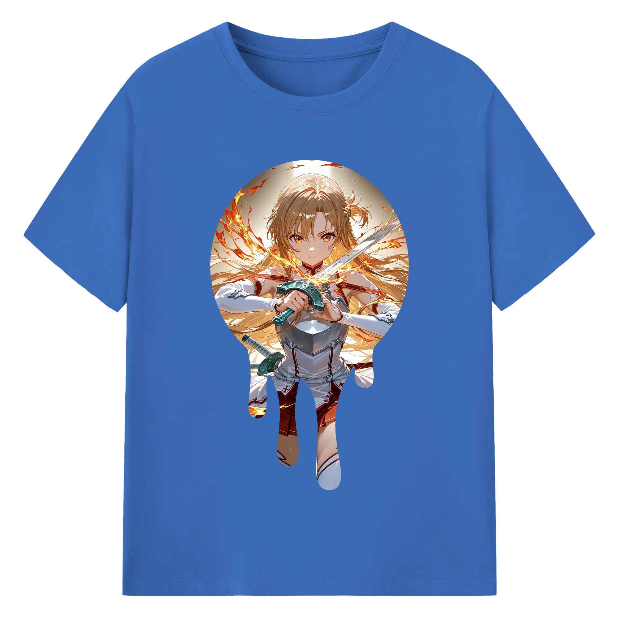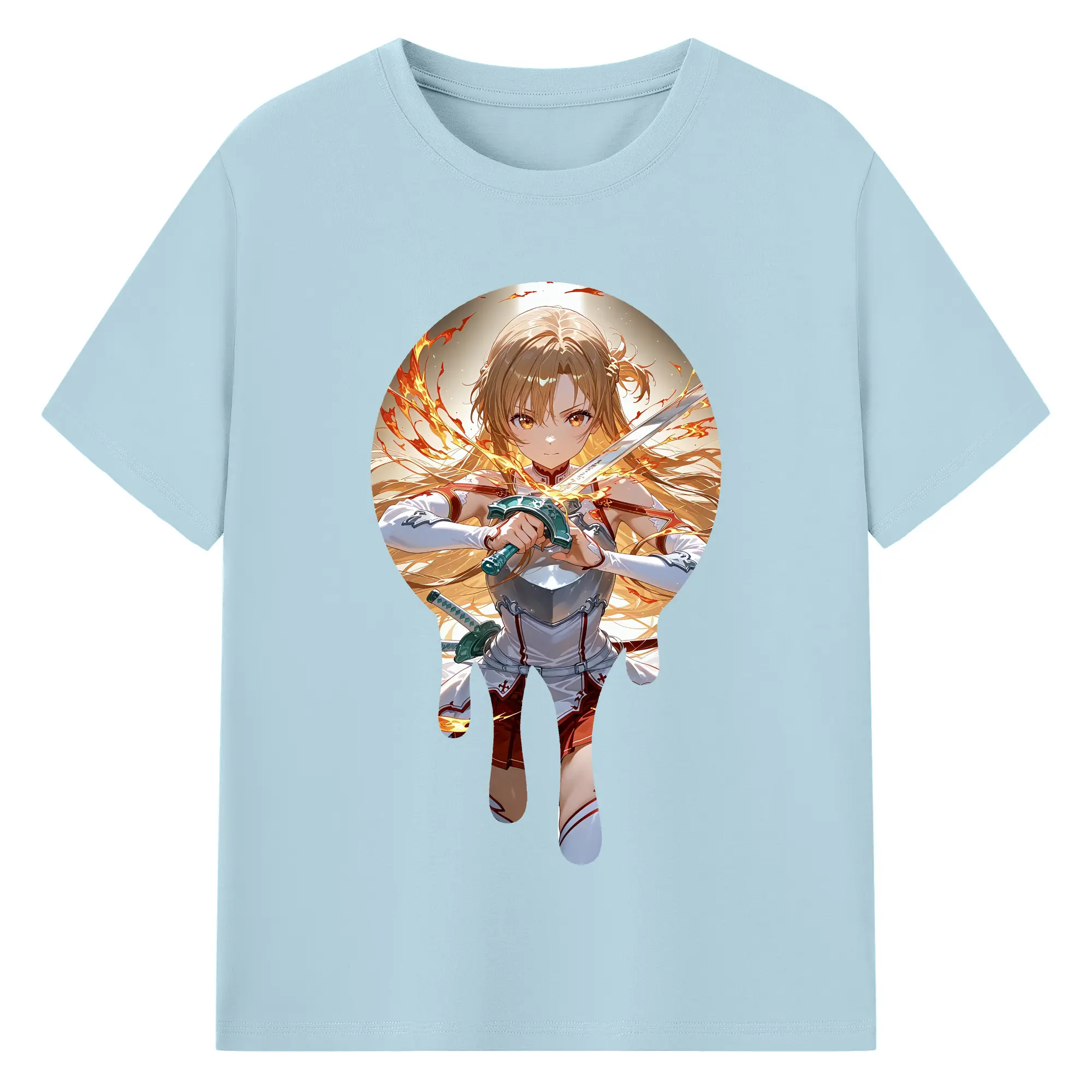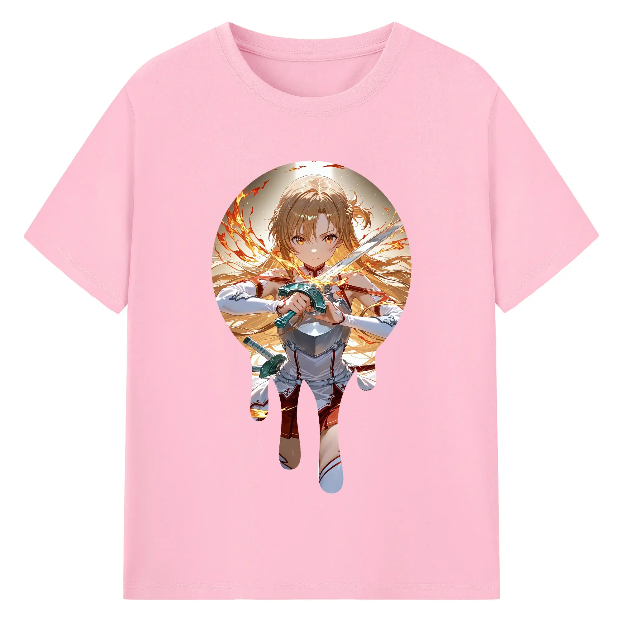 ソードアートオンライン グッズ アスナ - 綿100% 半袖Tシャツ ・ バックプリント ・ 快適 通気性 ・ 日常使い 散歩 スポーツ用