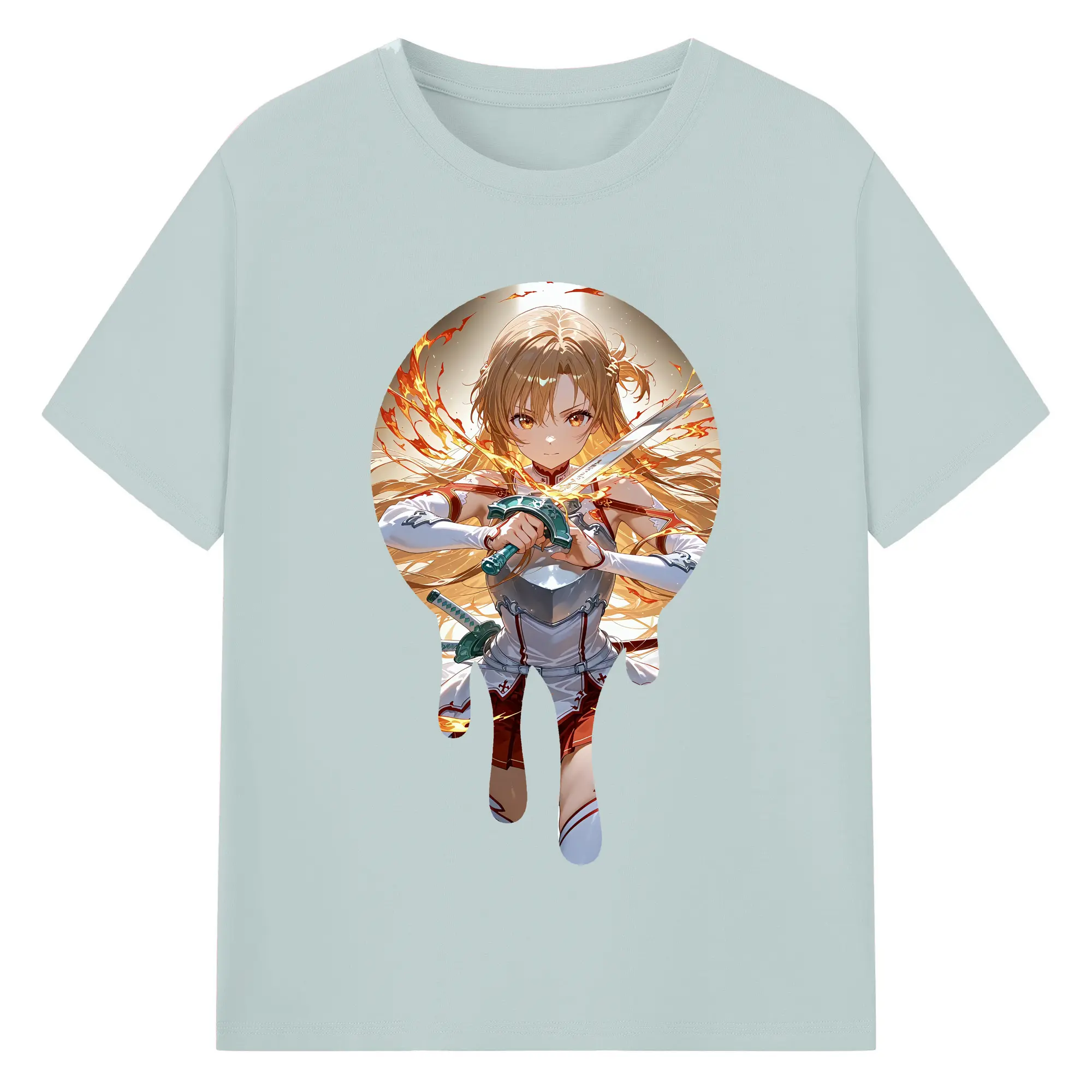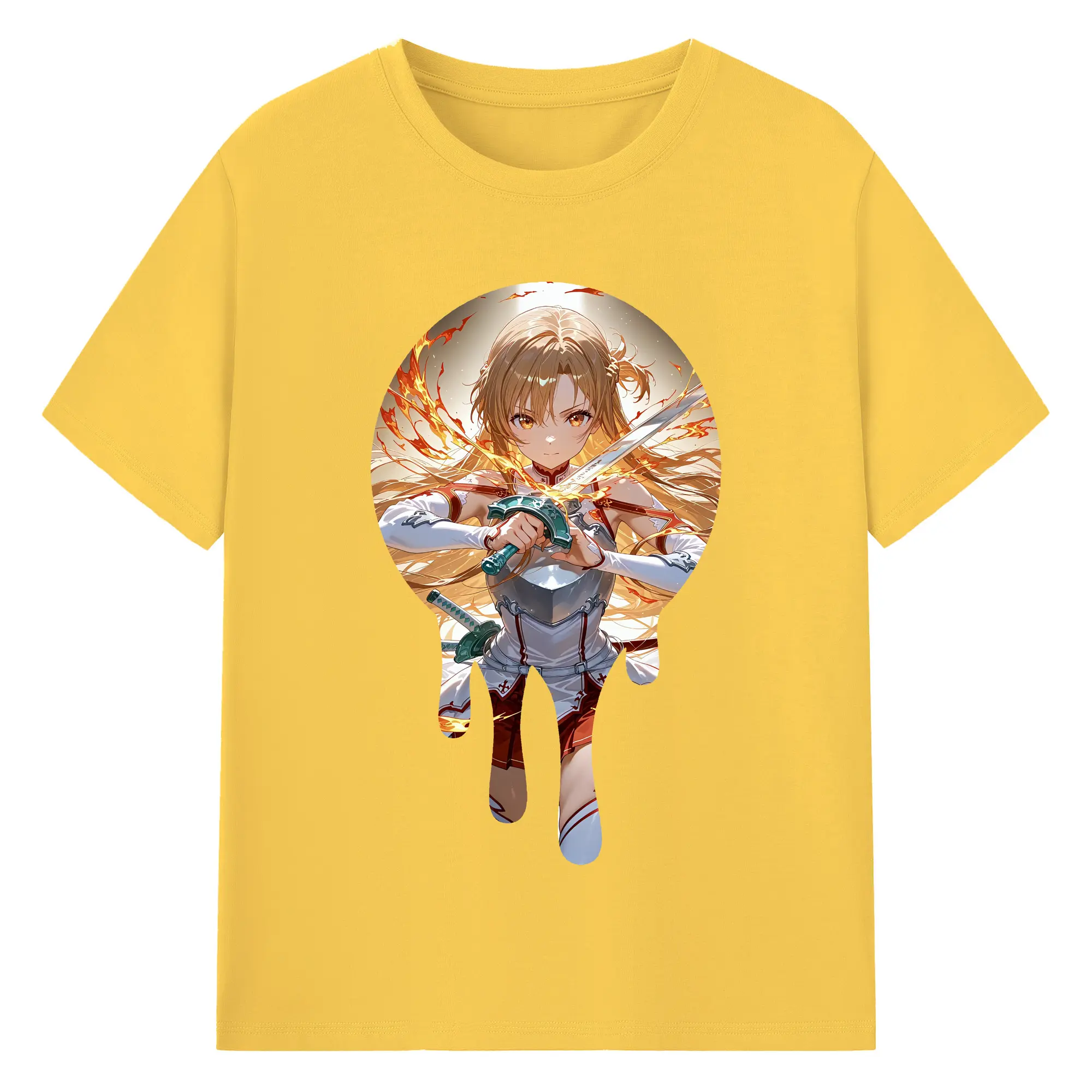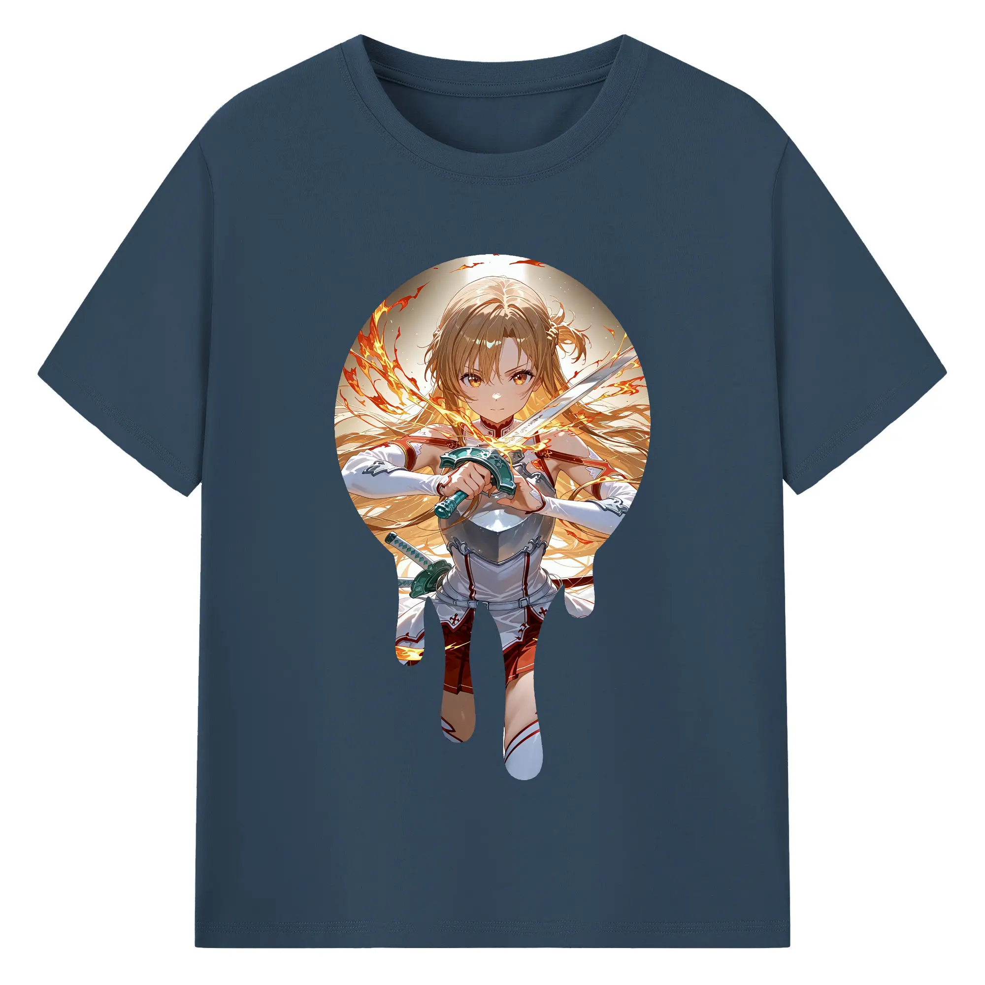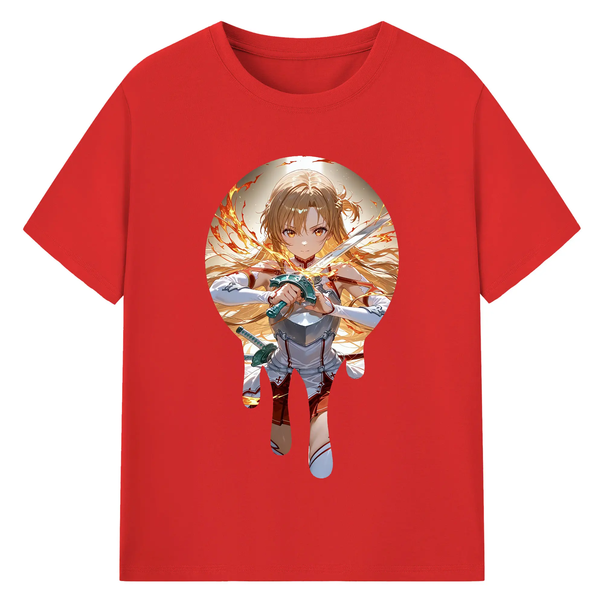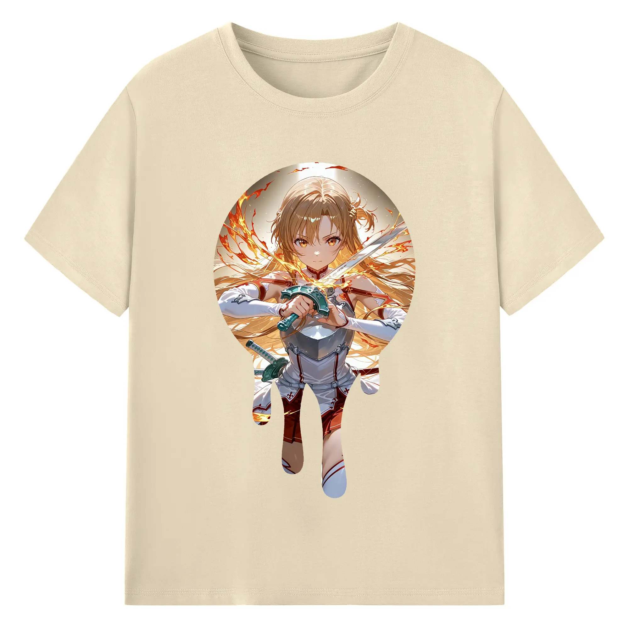 ソードアートオンライン グッズ アスナ - 綿100% 半袖Tシャツ ・ バックプリント ・ 快適 通気性 ・ 日常使い 散歩 スポーツ用