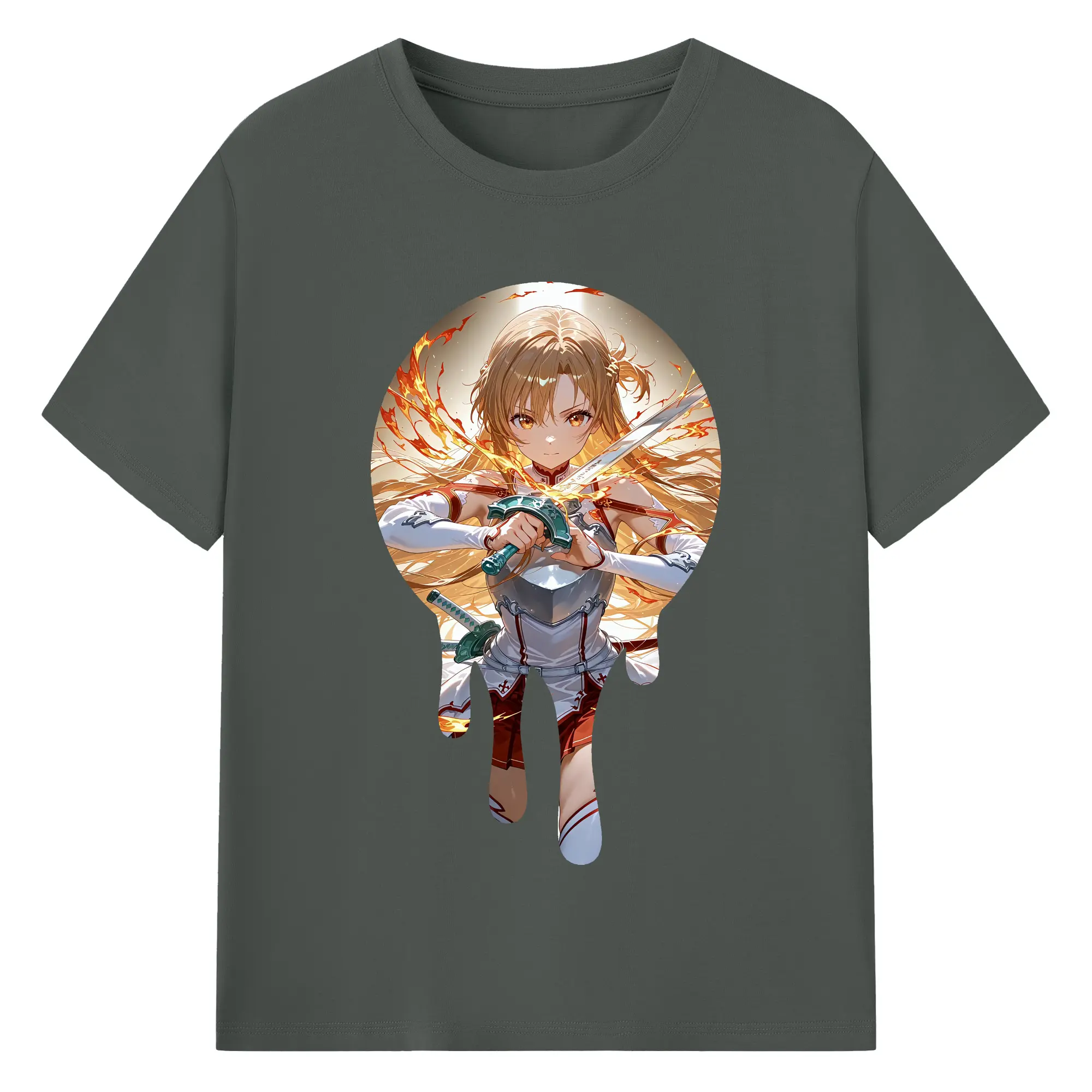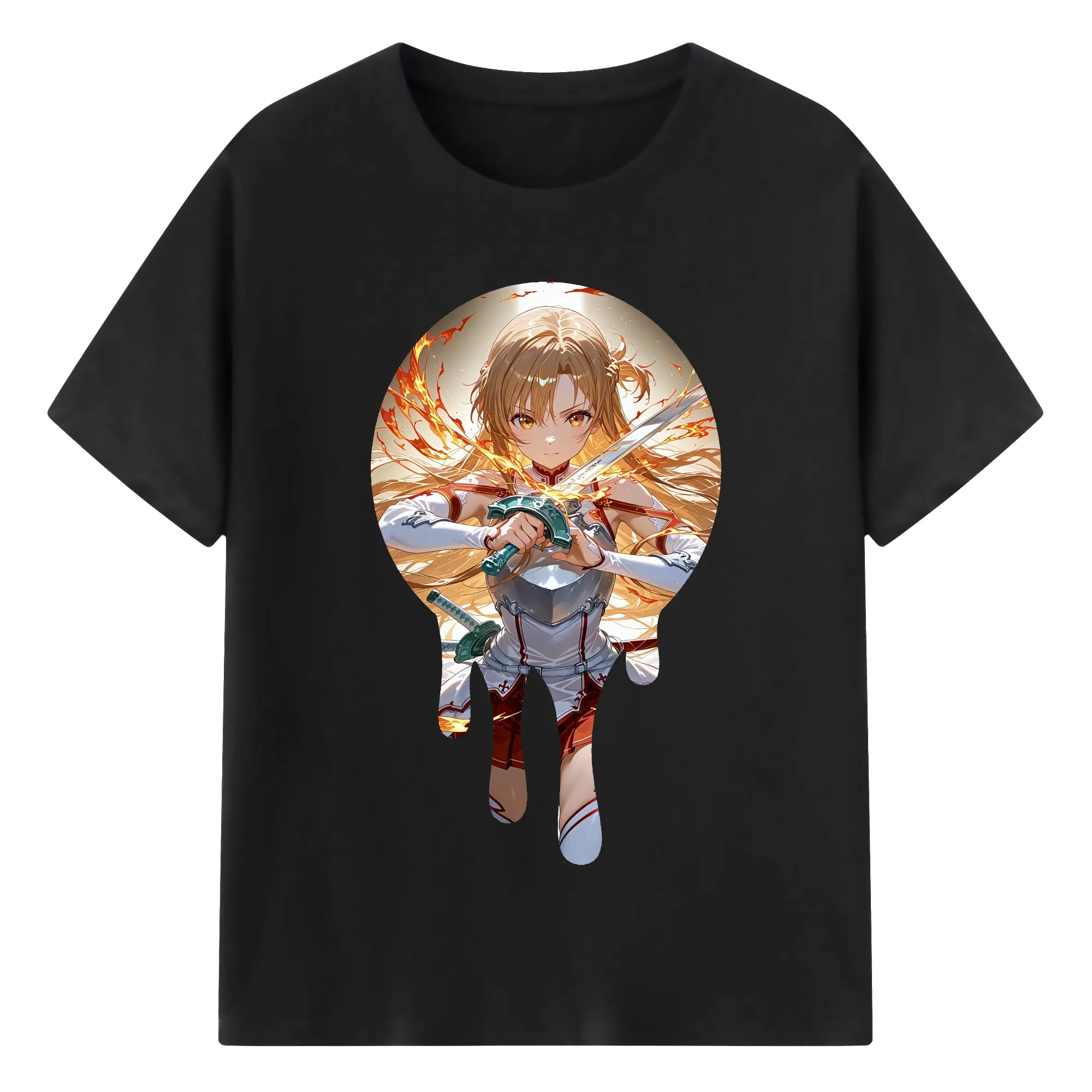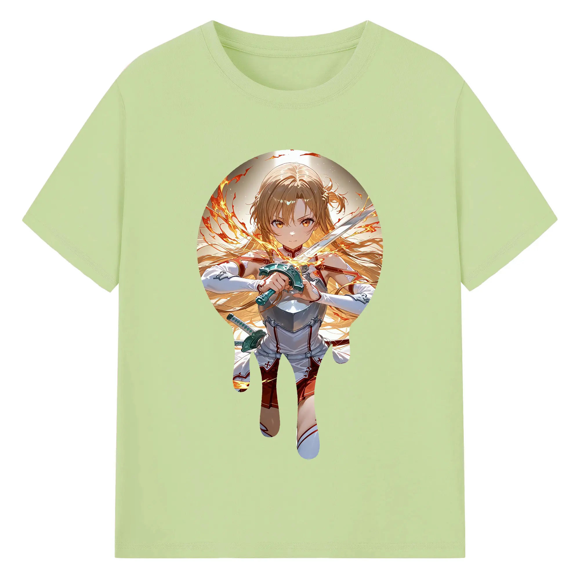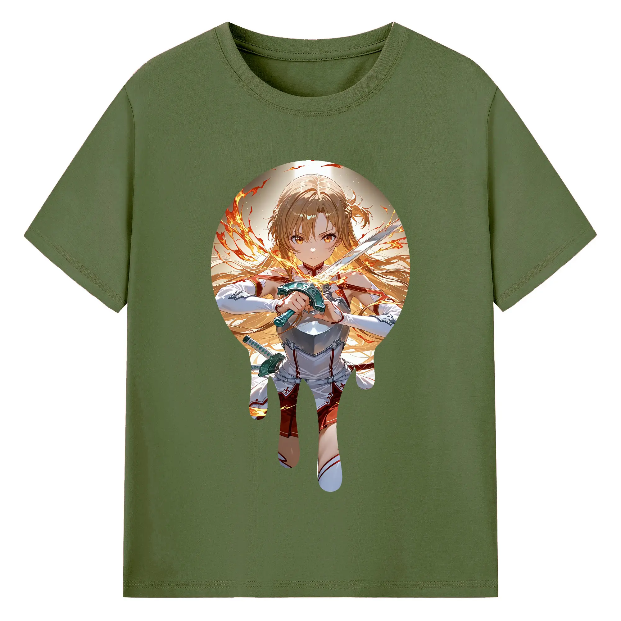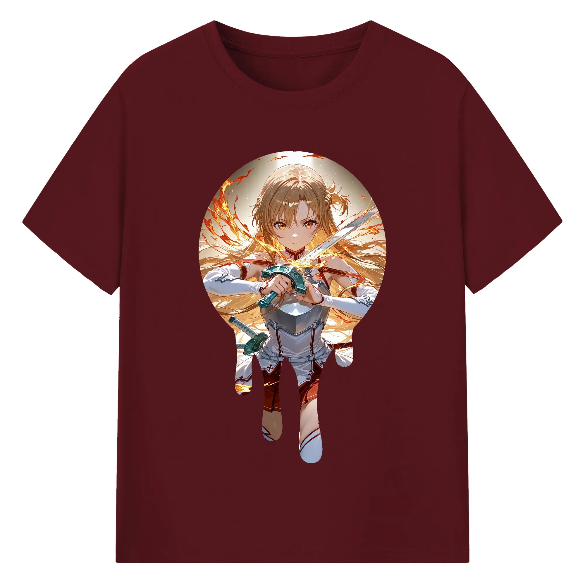 ソードアートオンライン グッズ アスナ - 綿100% 半袖Tシャツ ・ バックプリント ・ 快適 通気性 ・ 日常使い 散歩 スポーツ用