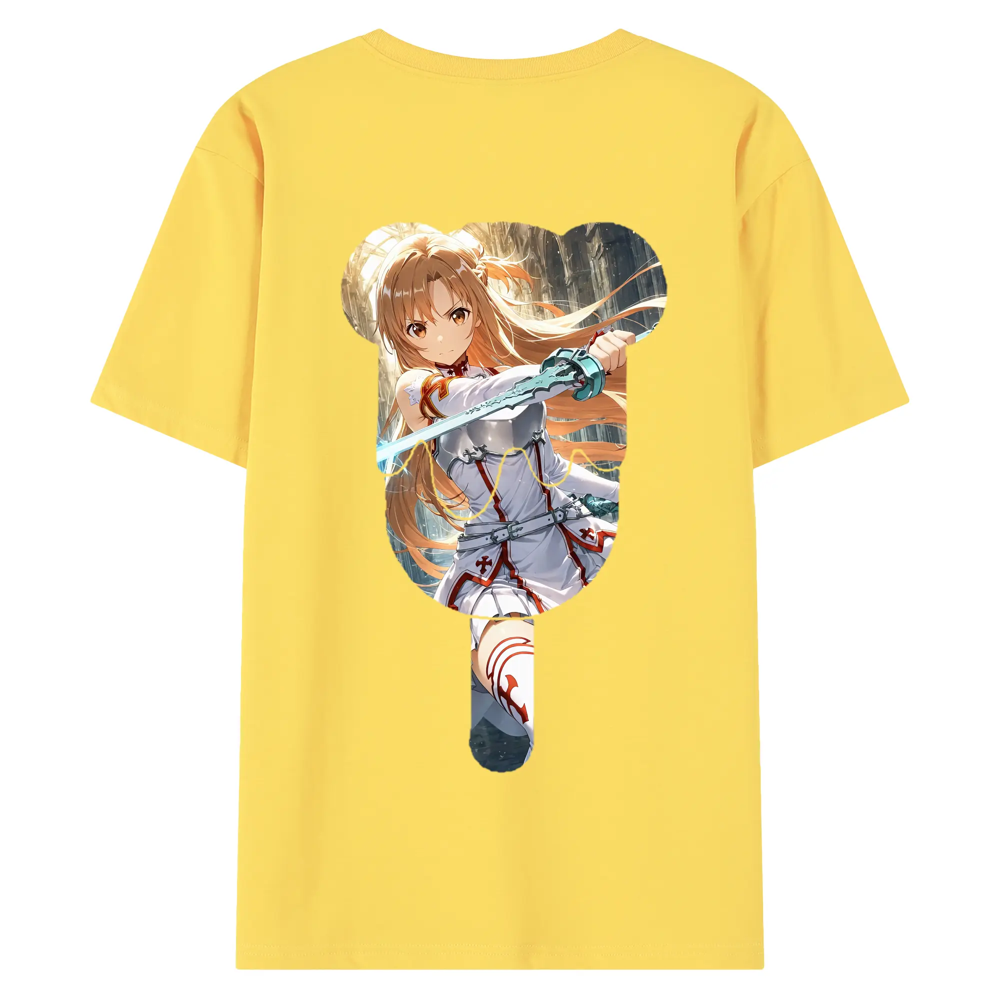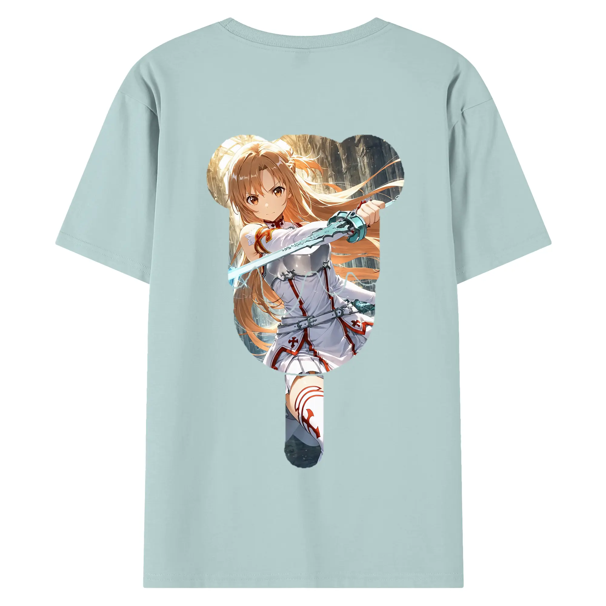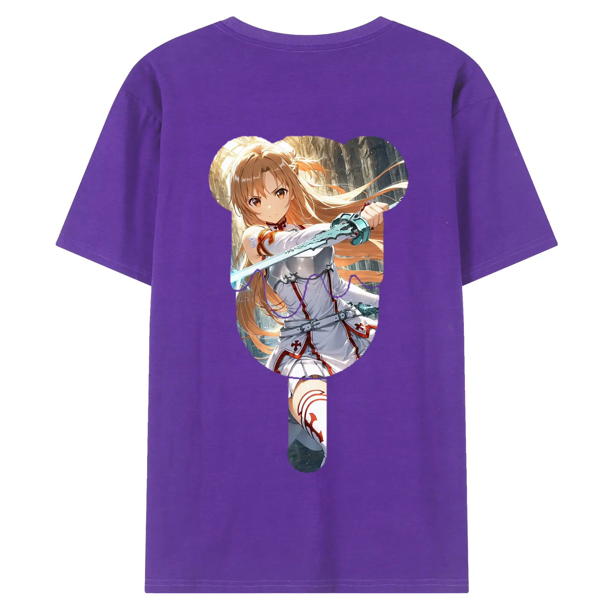 ソードアートオンライン グッズ アスナ - 綿100% 半袖Tシャツ ・ フロントプリント ・ 快適 通気性 ・ 日常使い 散歩 スポーツ用
