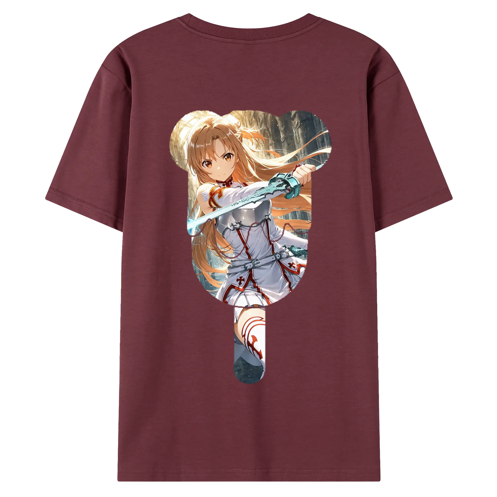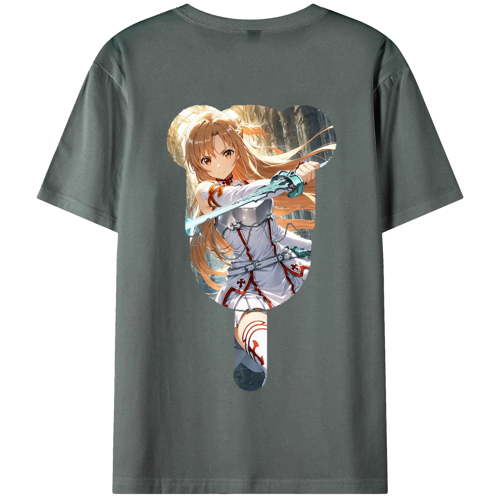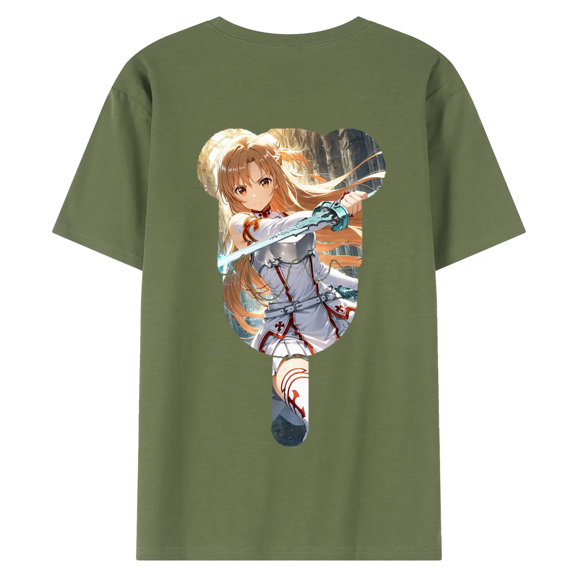 ソードアートオンライン グッズ アスナ - 綿100% 半袖Tシャツ ・ フロントプリント ・ 快適 通気性 ・ 日常使い 散歩 スポーツ用