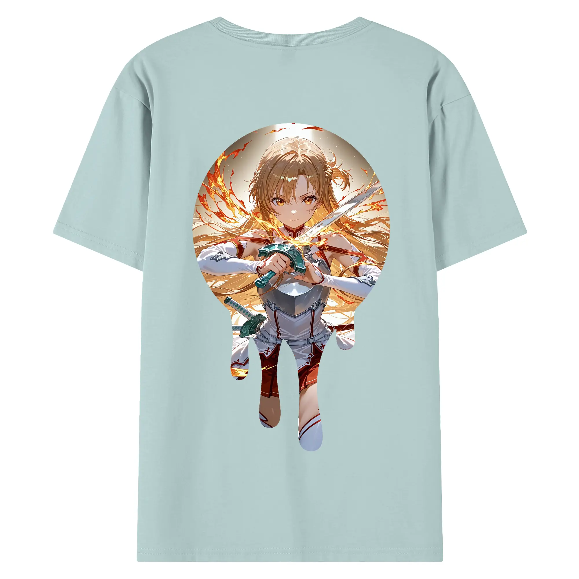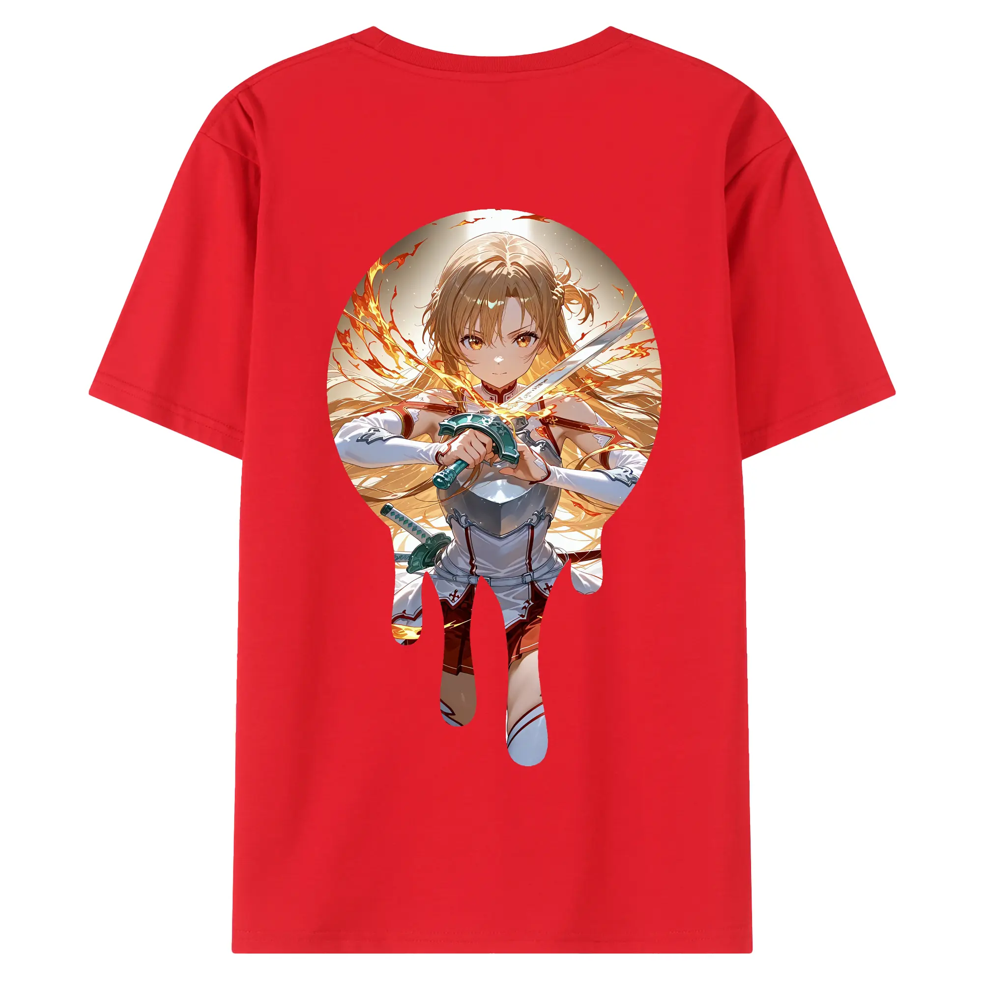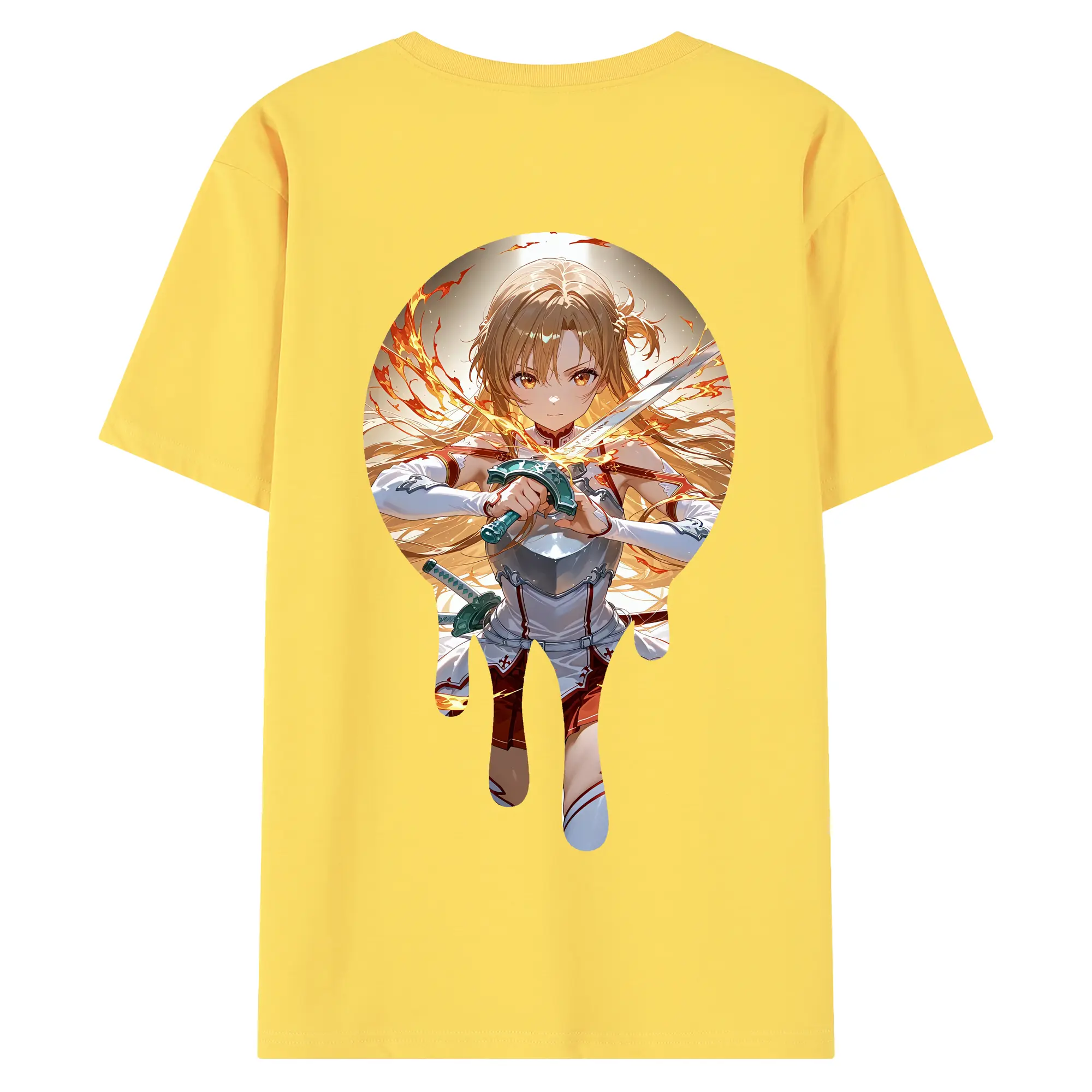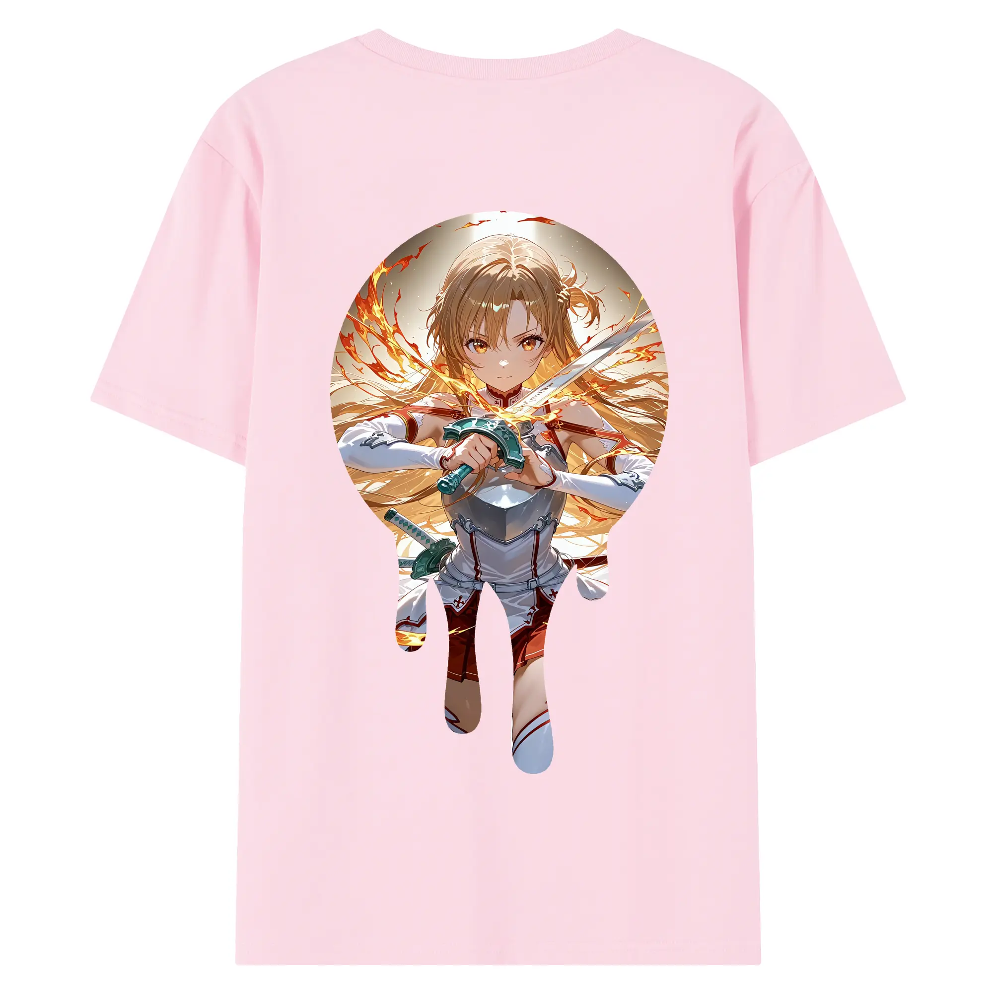 ソードアートオンライン グッズ アスナ - 綿100% 半袖Tシャツ ・ フロントプリント ・ 快適 通気性 ・ 日常使い 散歩 スポーツ用