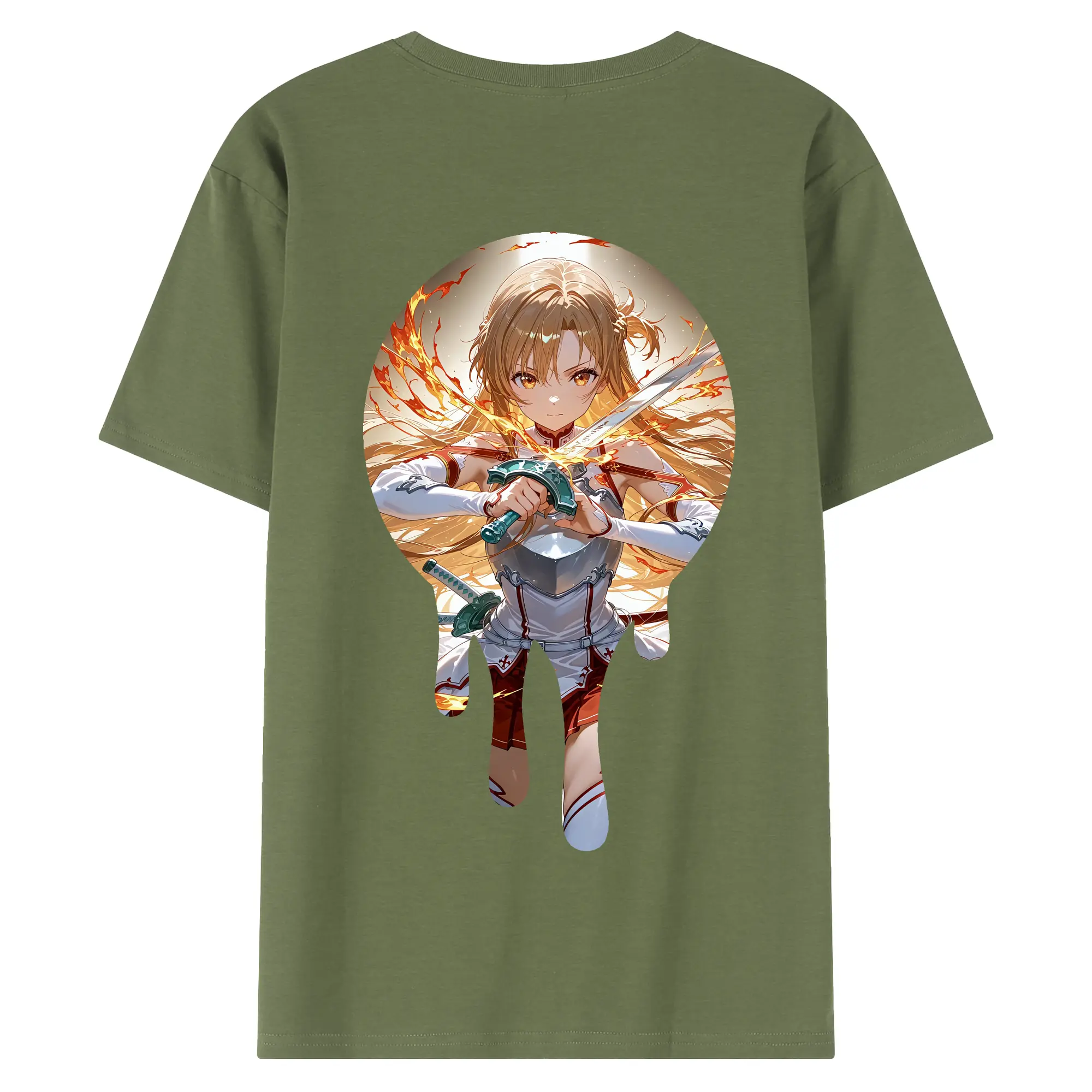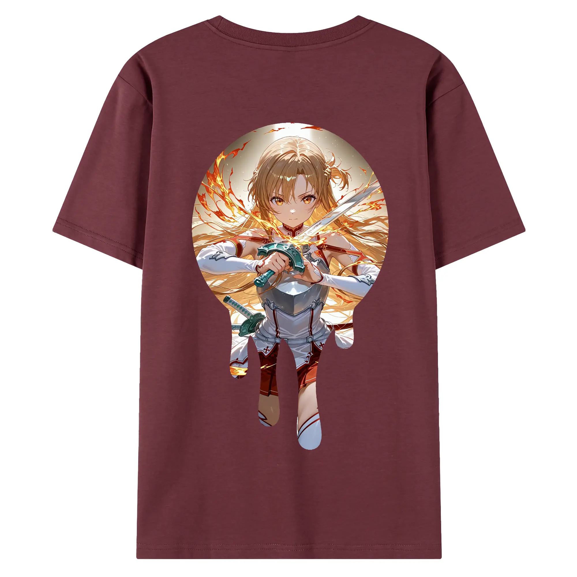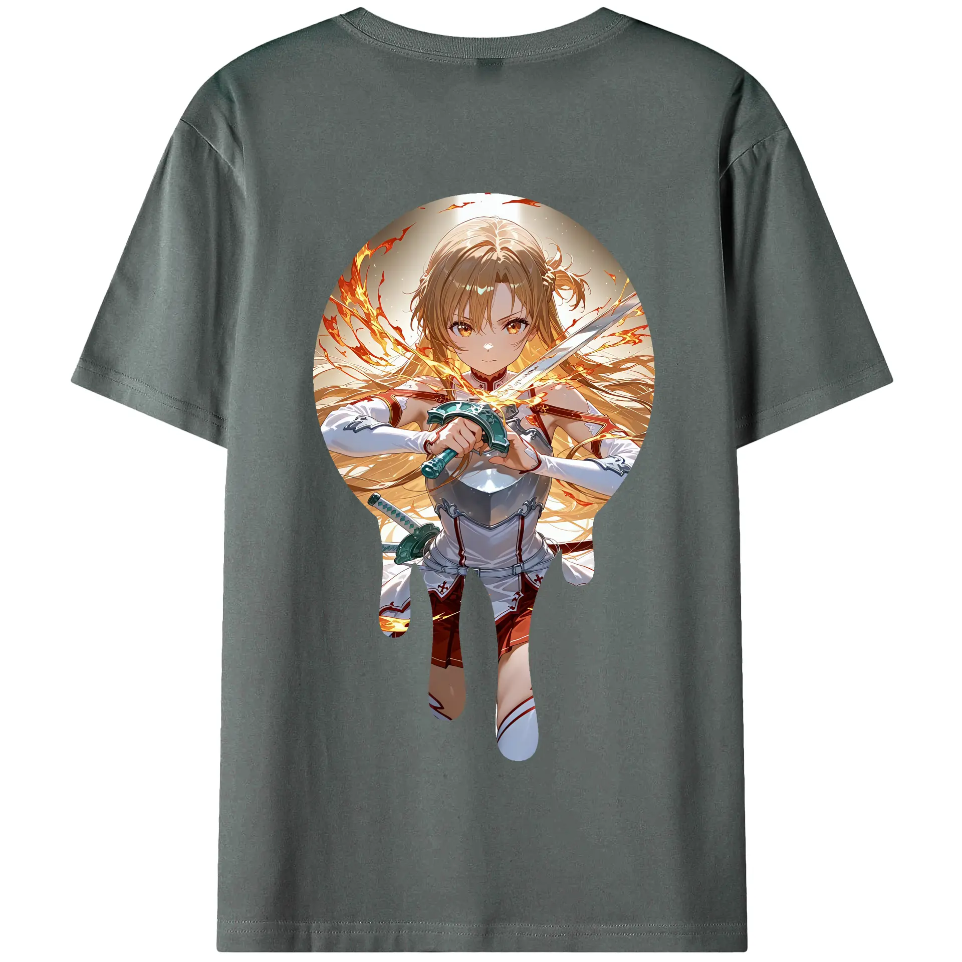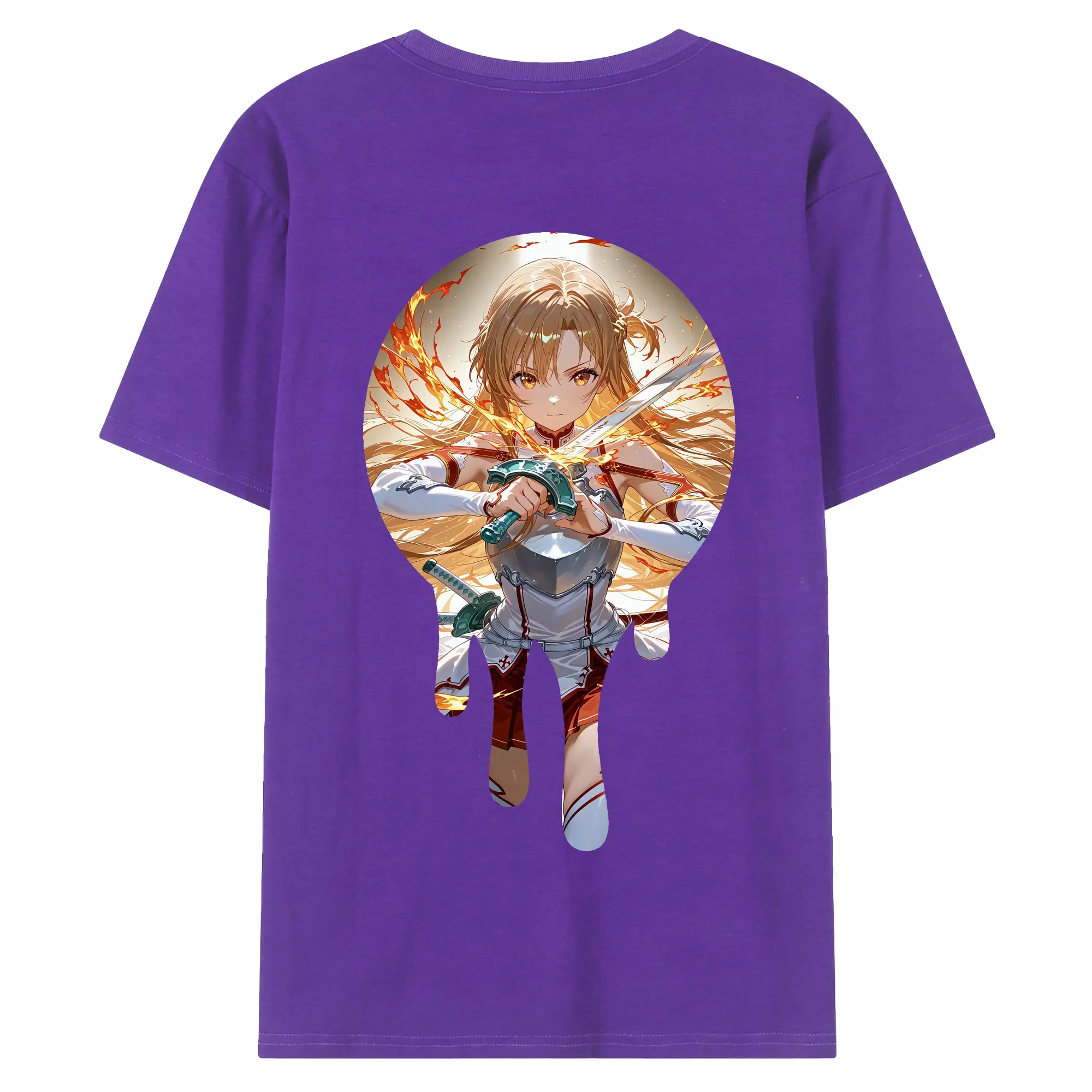ソードアートオンライン グッズ アスナ - 綿100% 半袖Tシャツ ・ フロントプリント ・ 快適 通気性 ・ 日常使い 散歩 スポーツ用