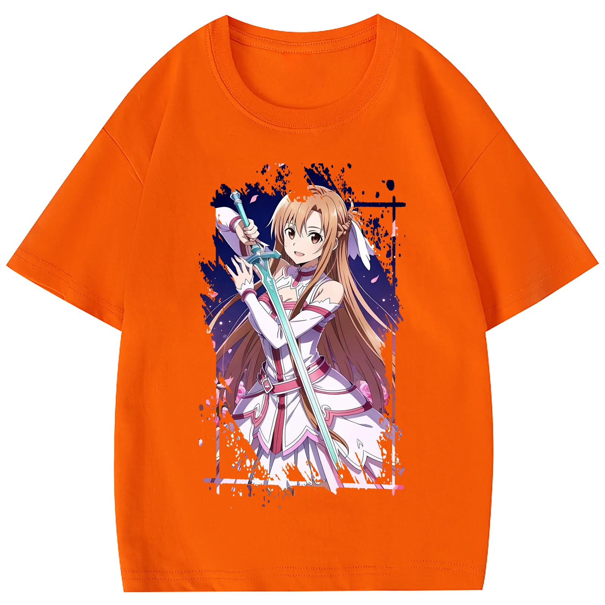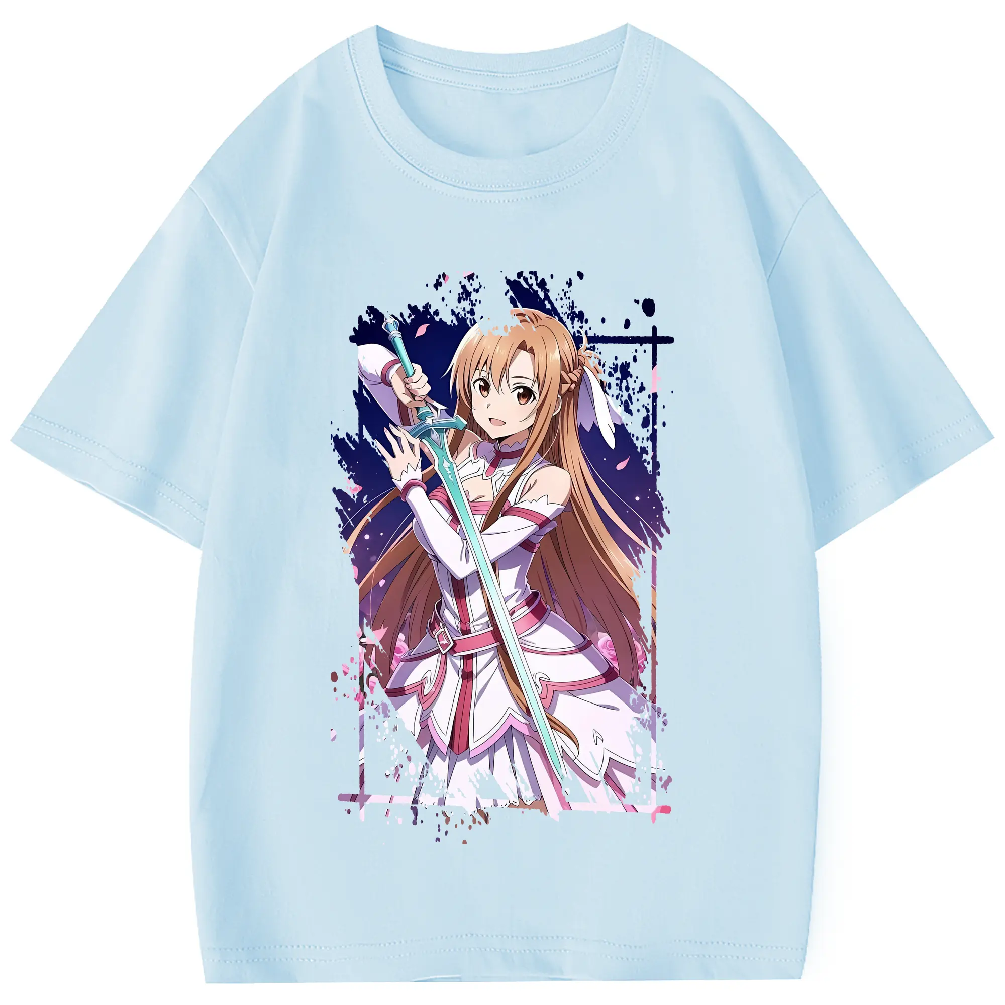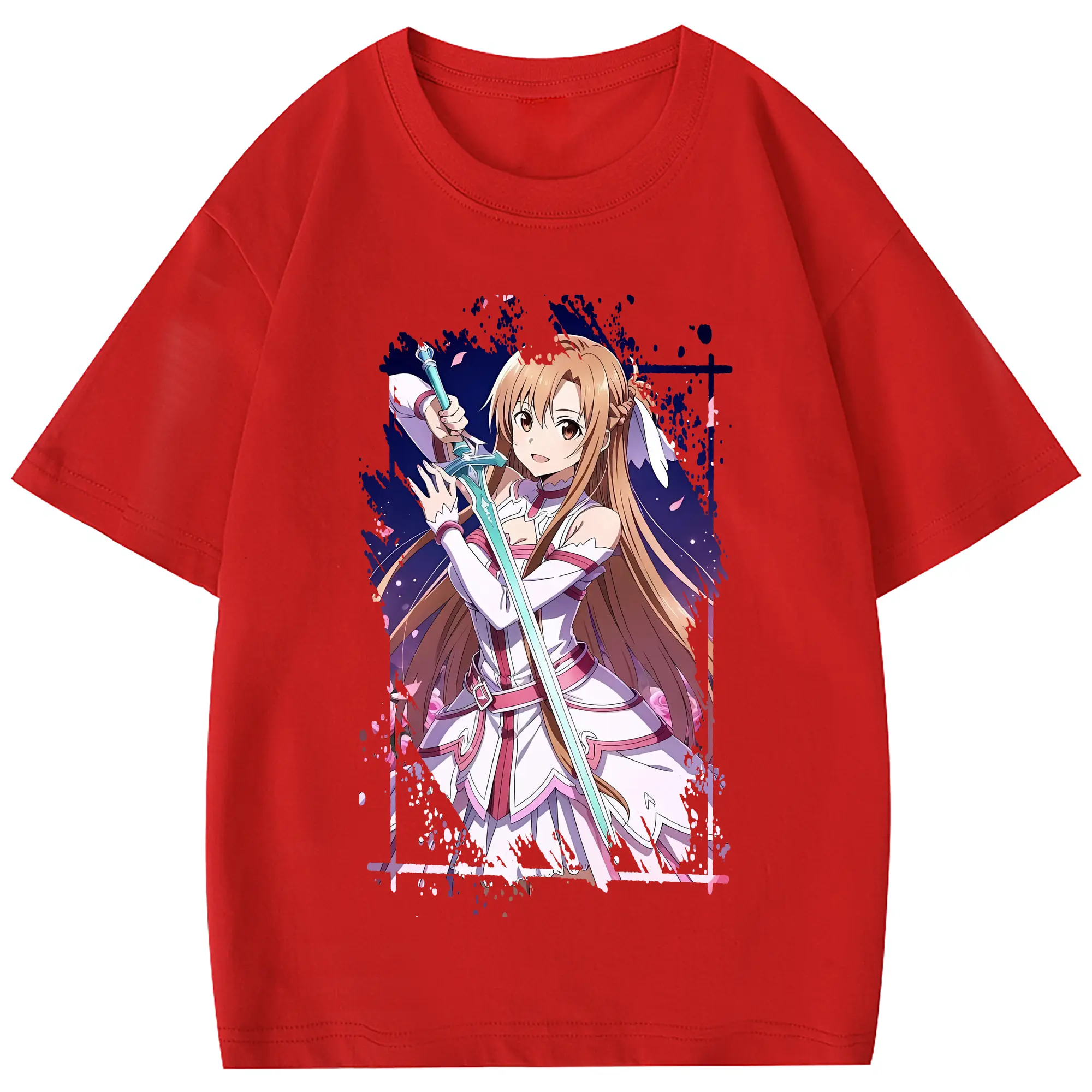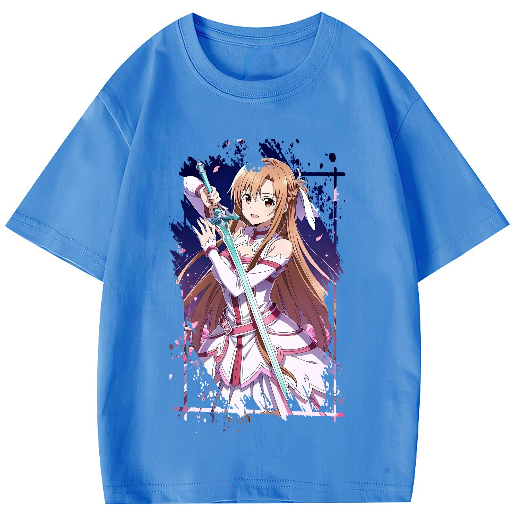 ソードアートオンライン グッズ アスナ - 綿100% 半袖Tシャツ ・ フロントプリント ・ 快適 通気性 ・ 日常使い 散歩 スポーツ用
