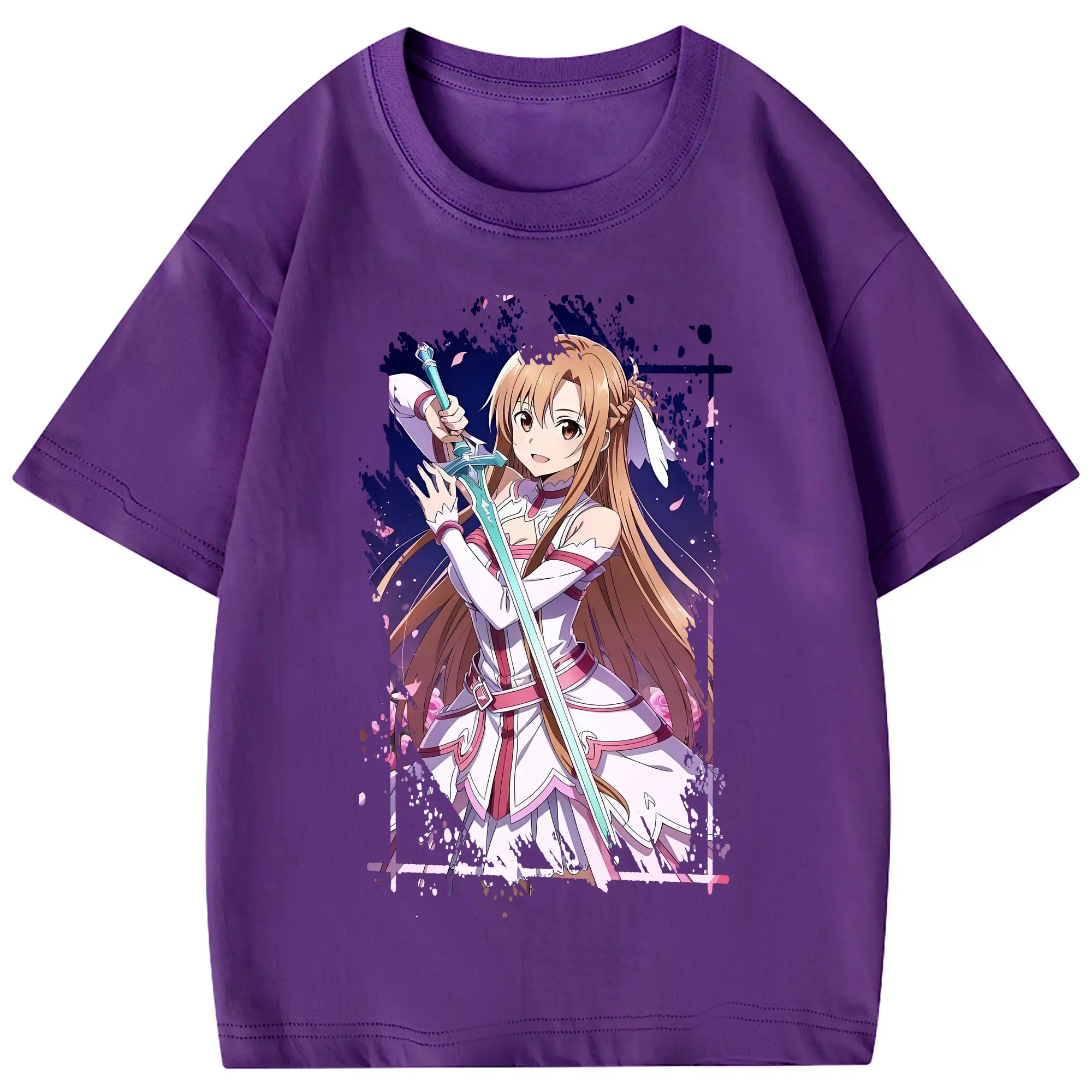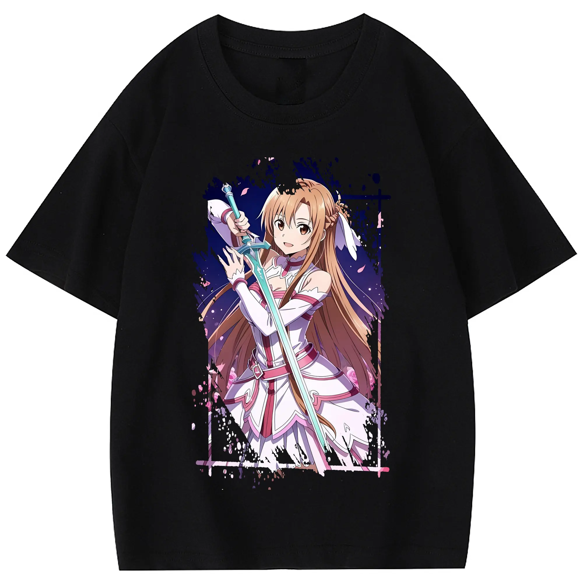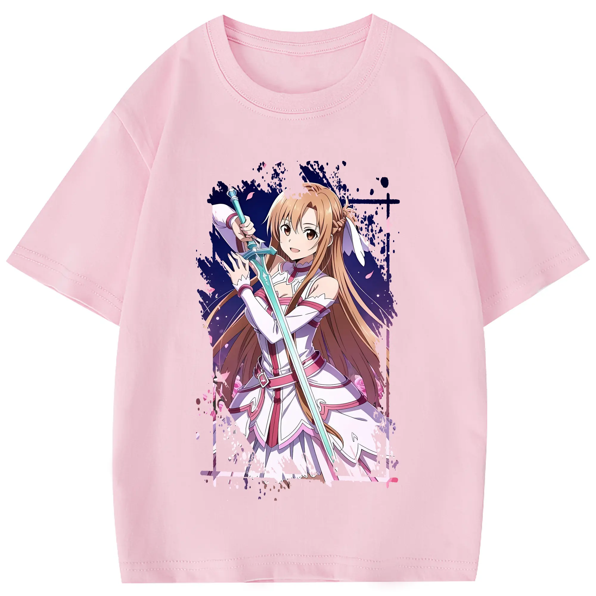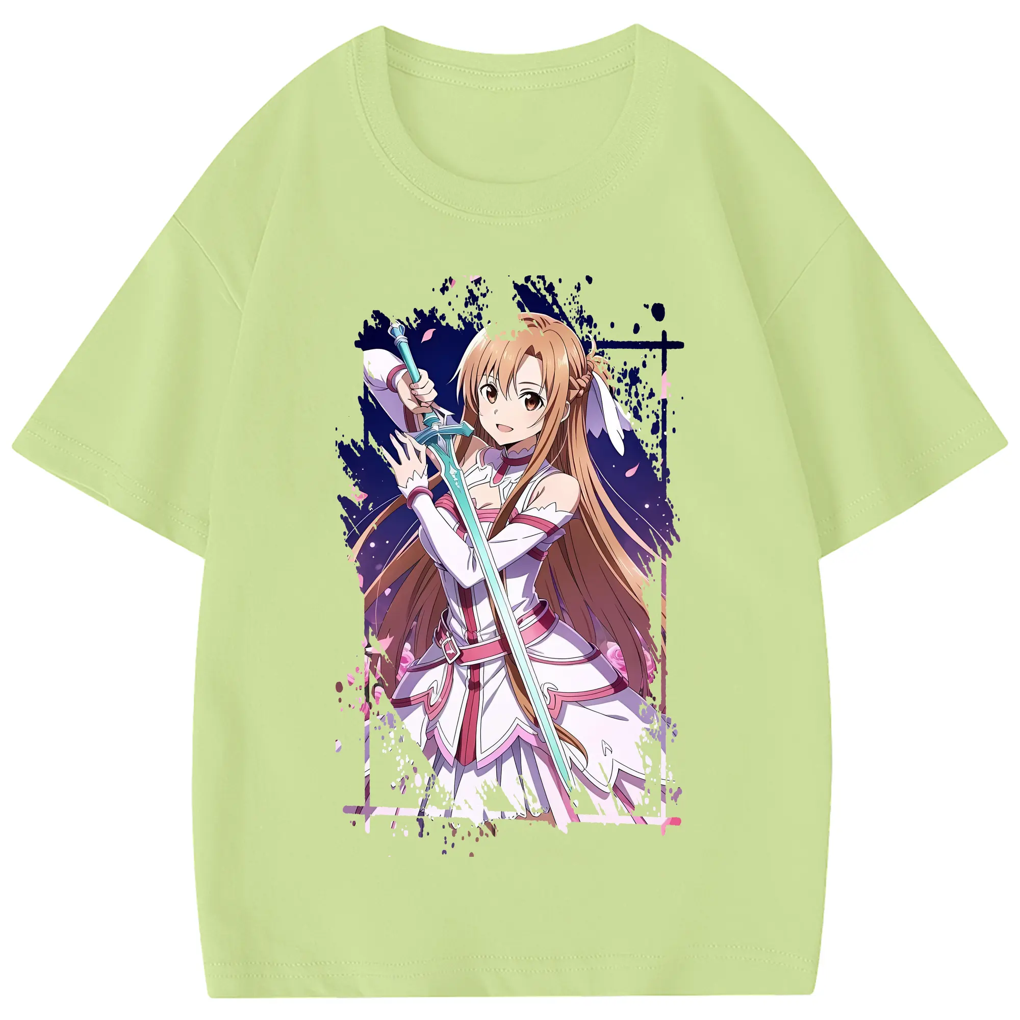 ソードアートオンライン グッズ アスナ - 綿100% 半袖Tシャツ ・ フロントプリント ・ 快適 通気性 ・ 日常使い 散歩 スポーツ用