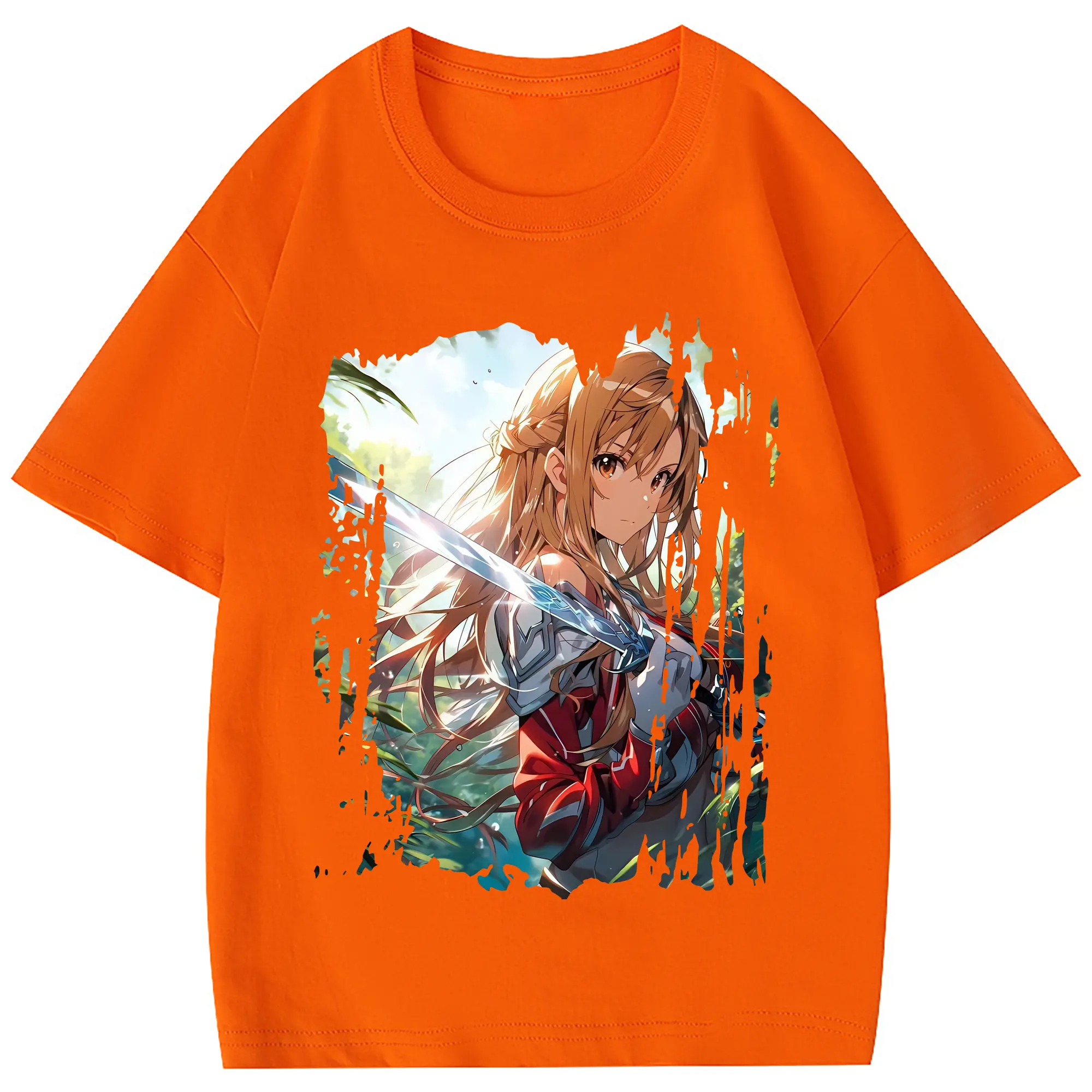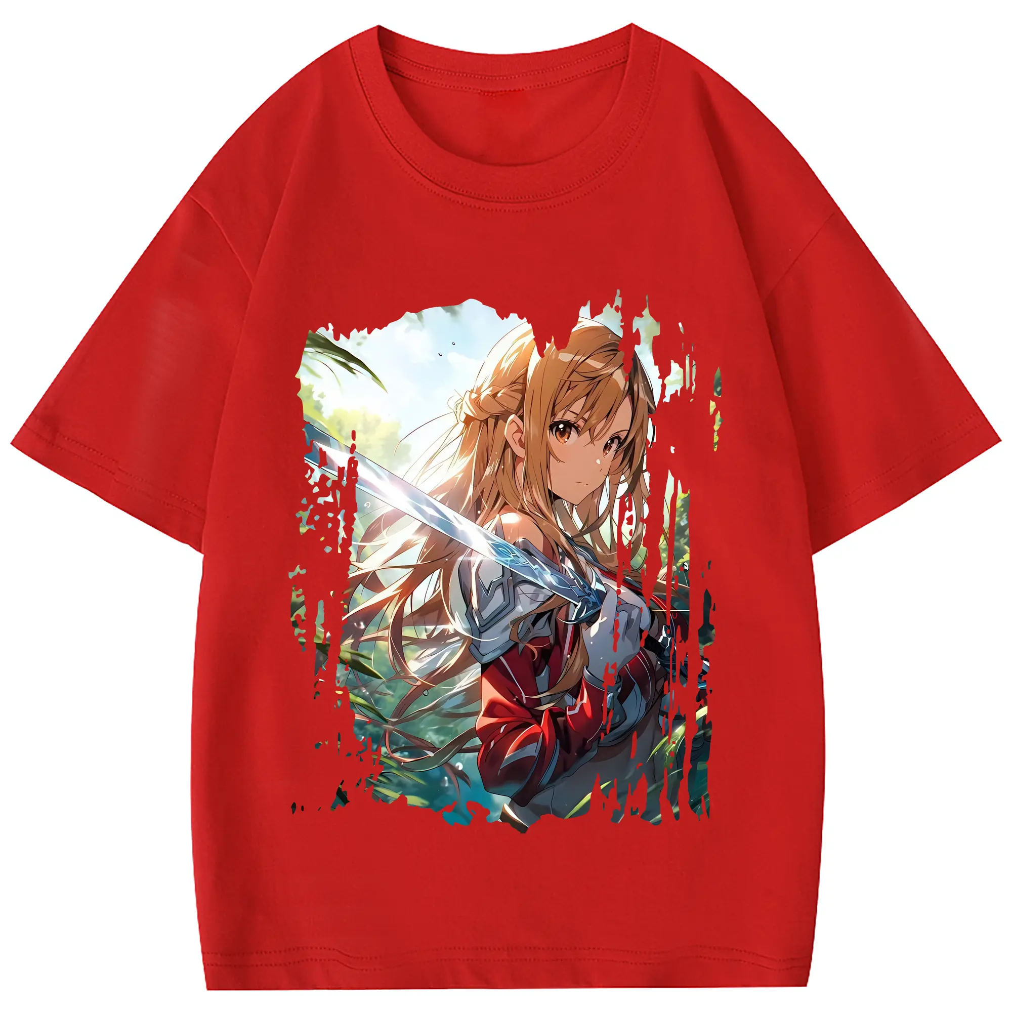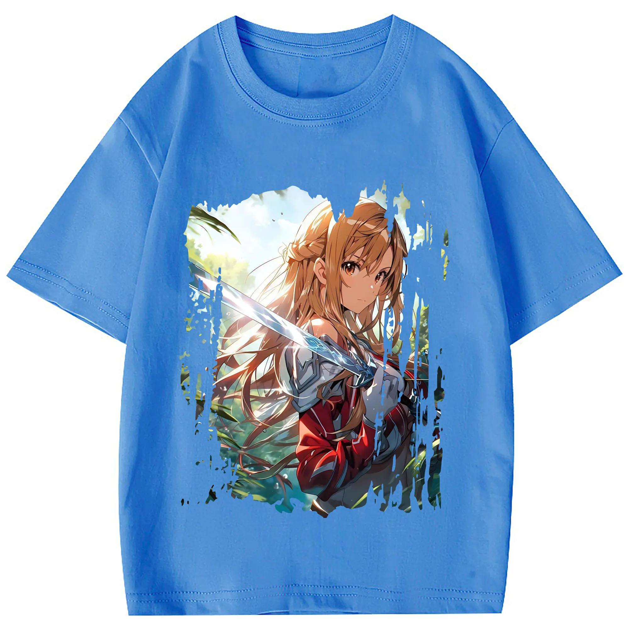 ソードアートオンライン グッズ アスナ - 綿100% 半袖Tシャツ ・ フロントプリント ・ 快適 通気性 ・ 日常使い 散歩 スポーツ用