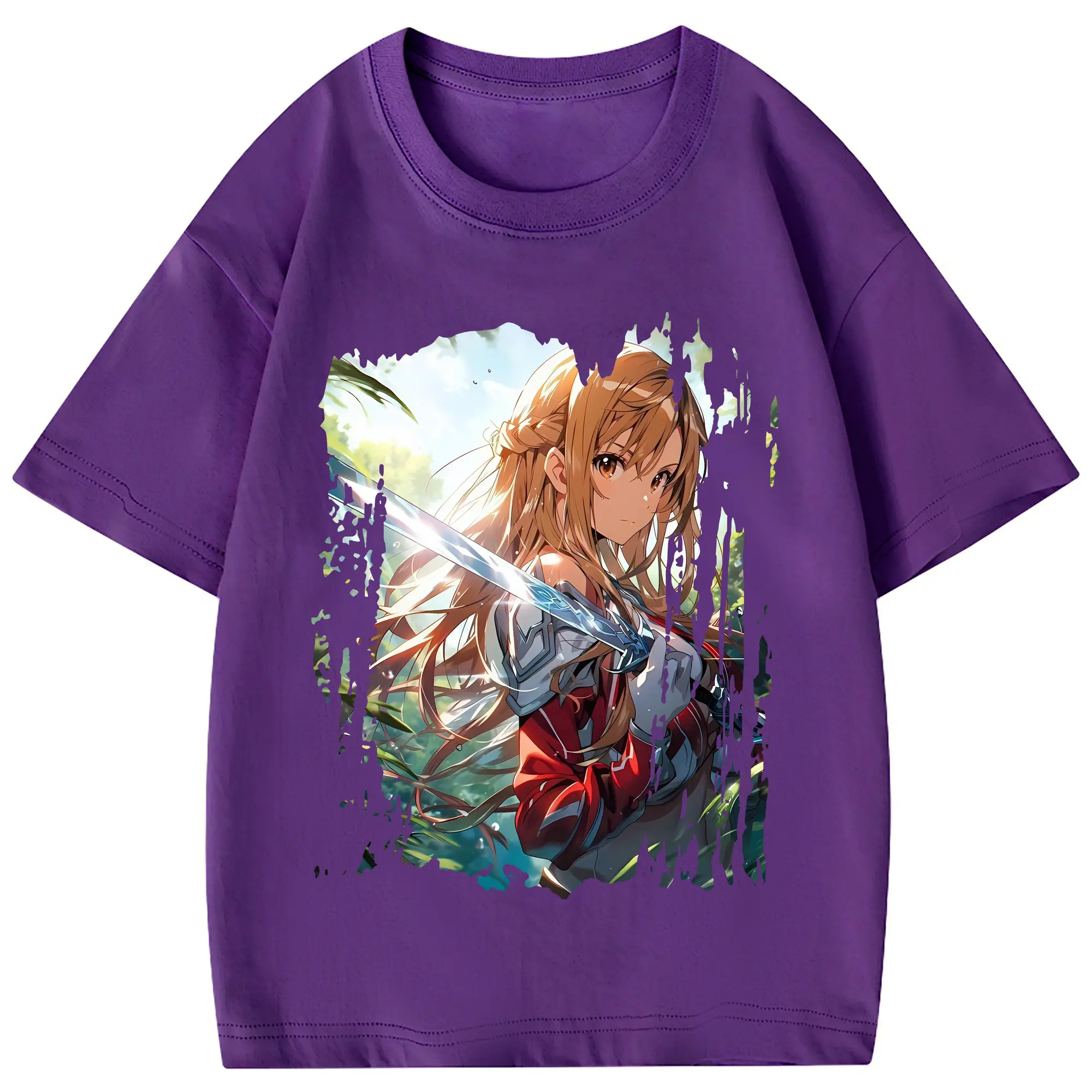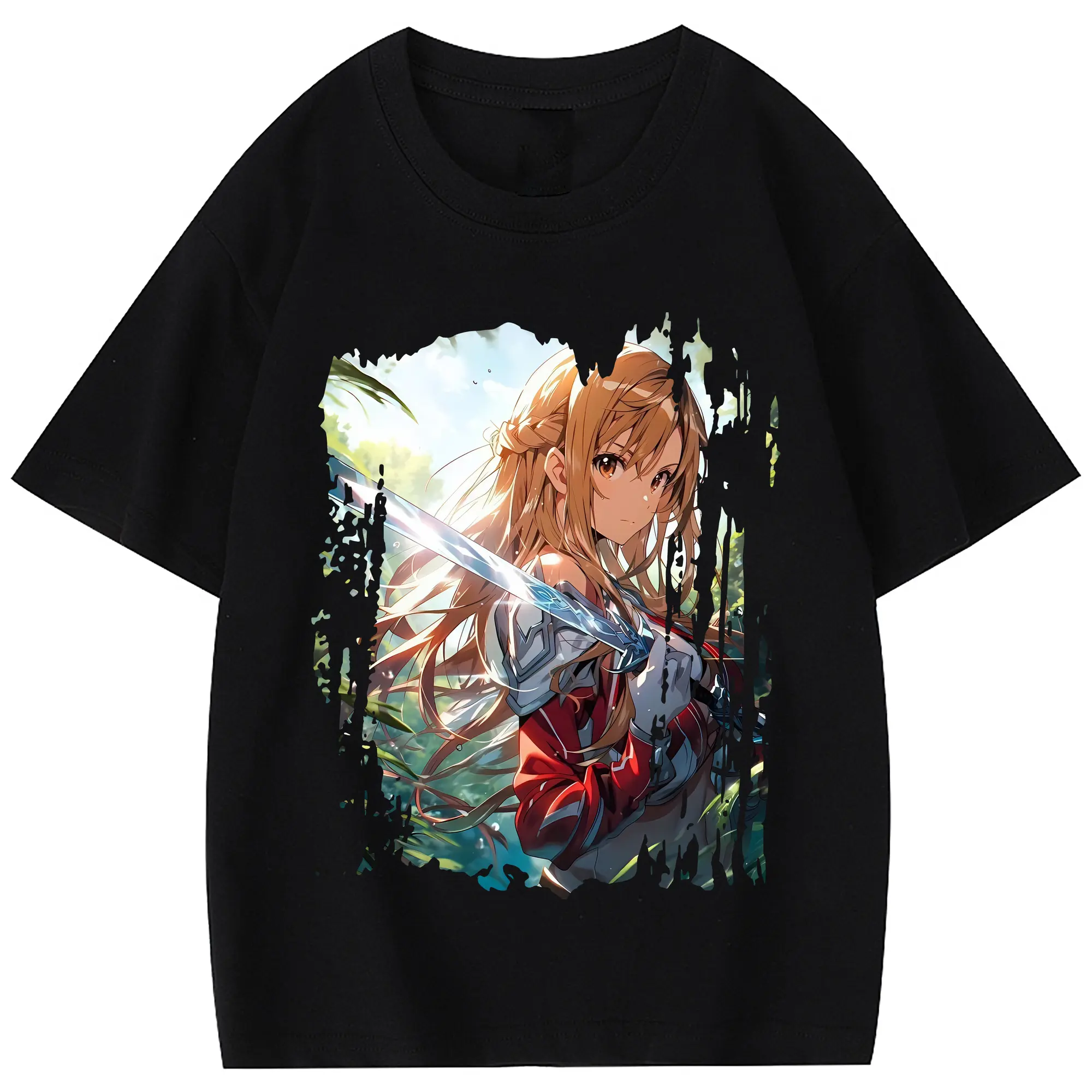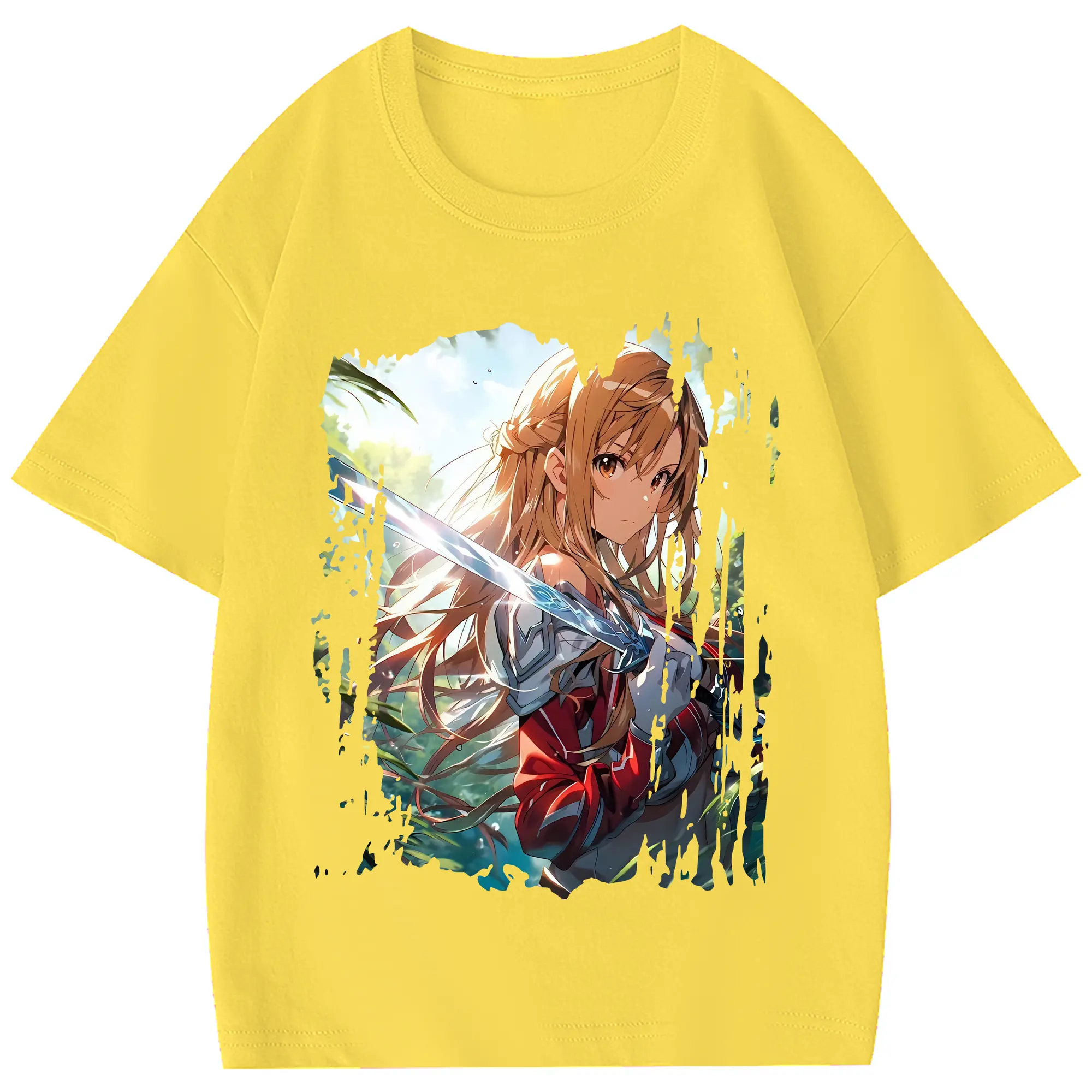 ソードアートオンライン グッズ アスナ - 綿100% 半袖Tシャツ ・ フロントプリント ・ 快適 通気性 ・ 日常使い 散歩 スポーツ用
