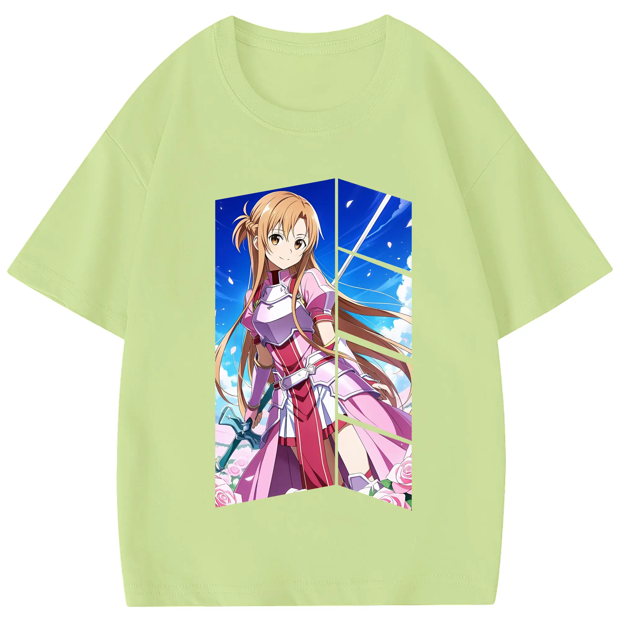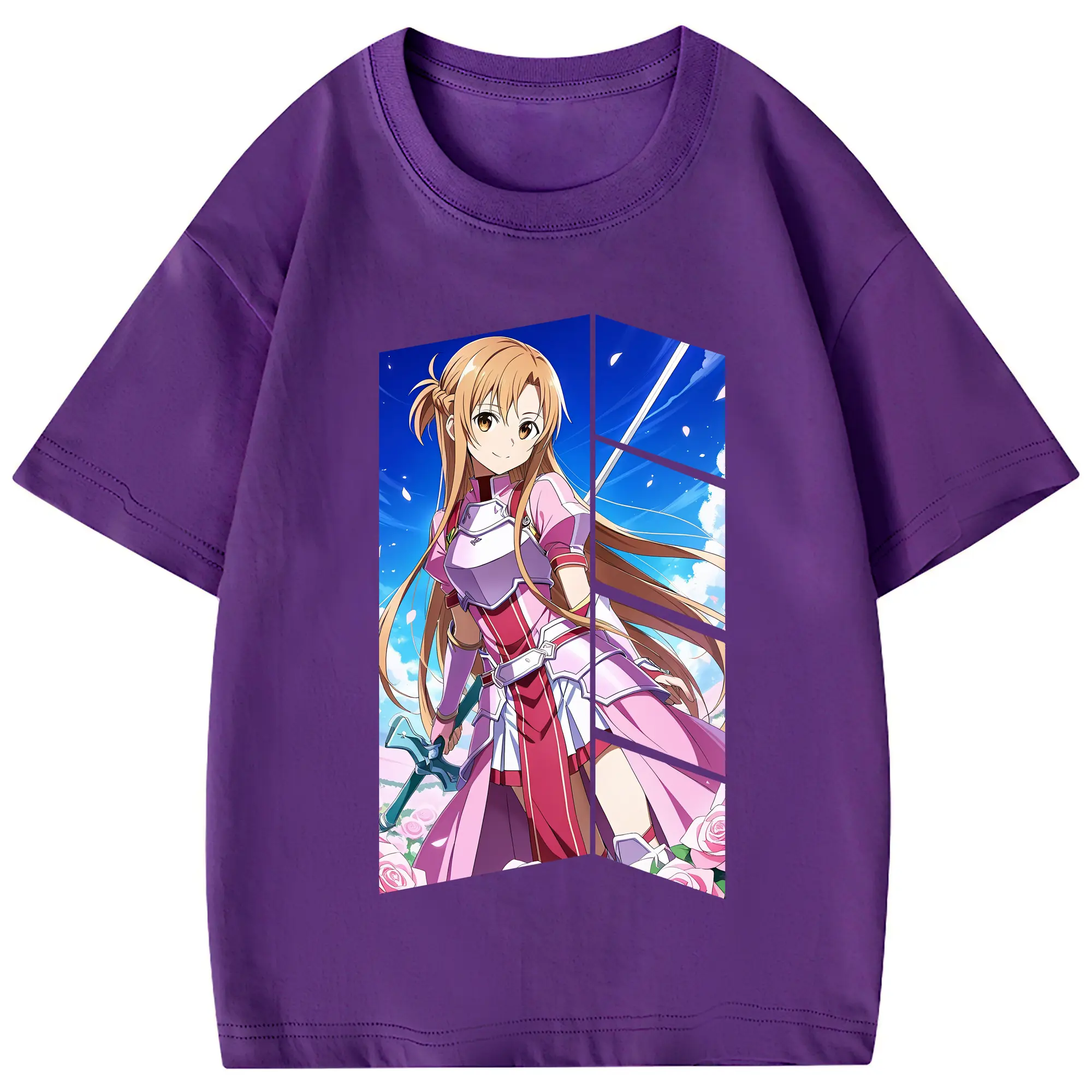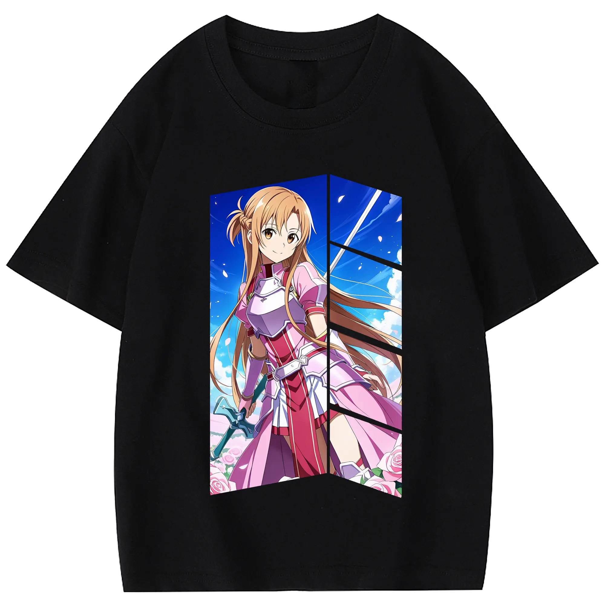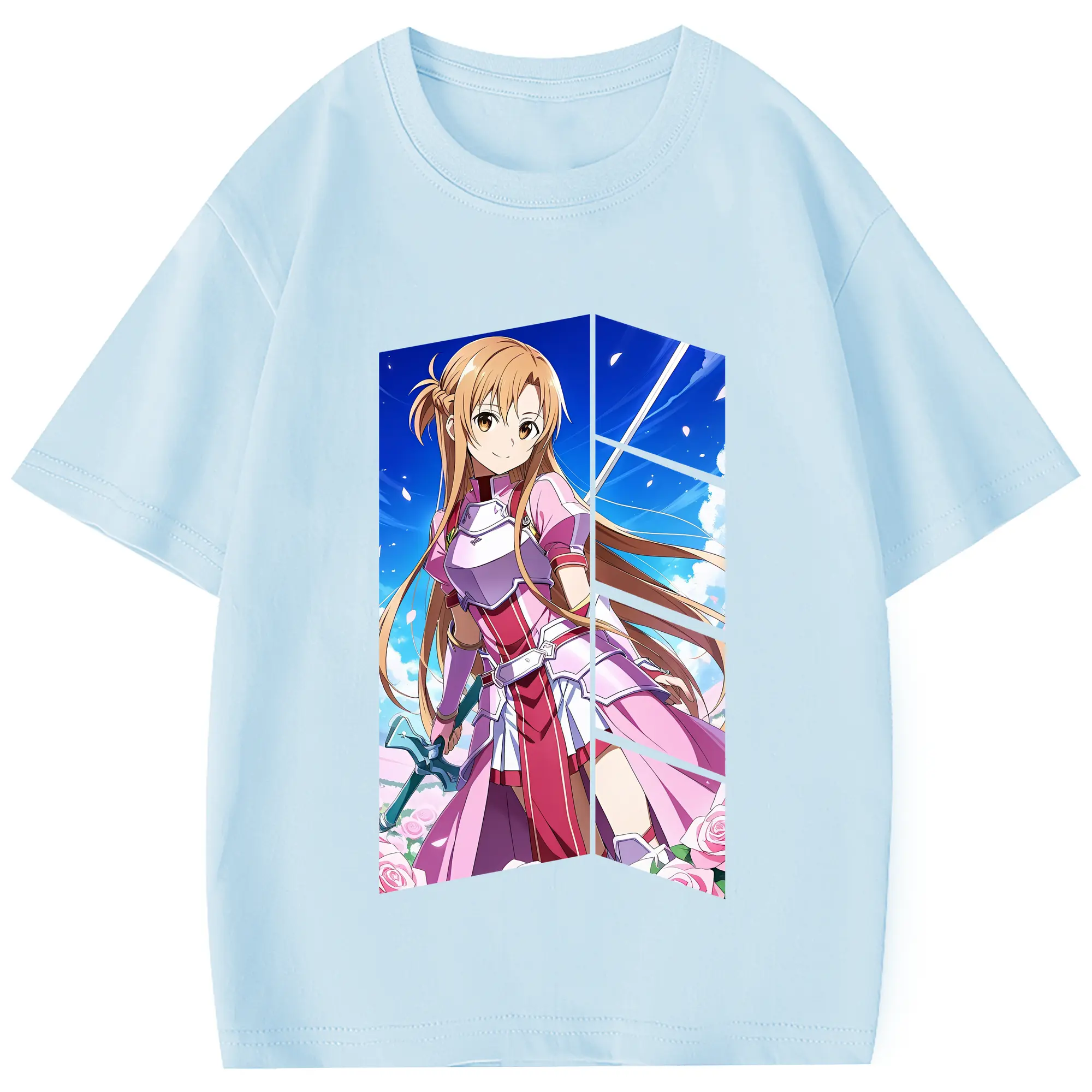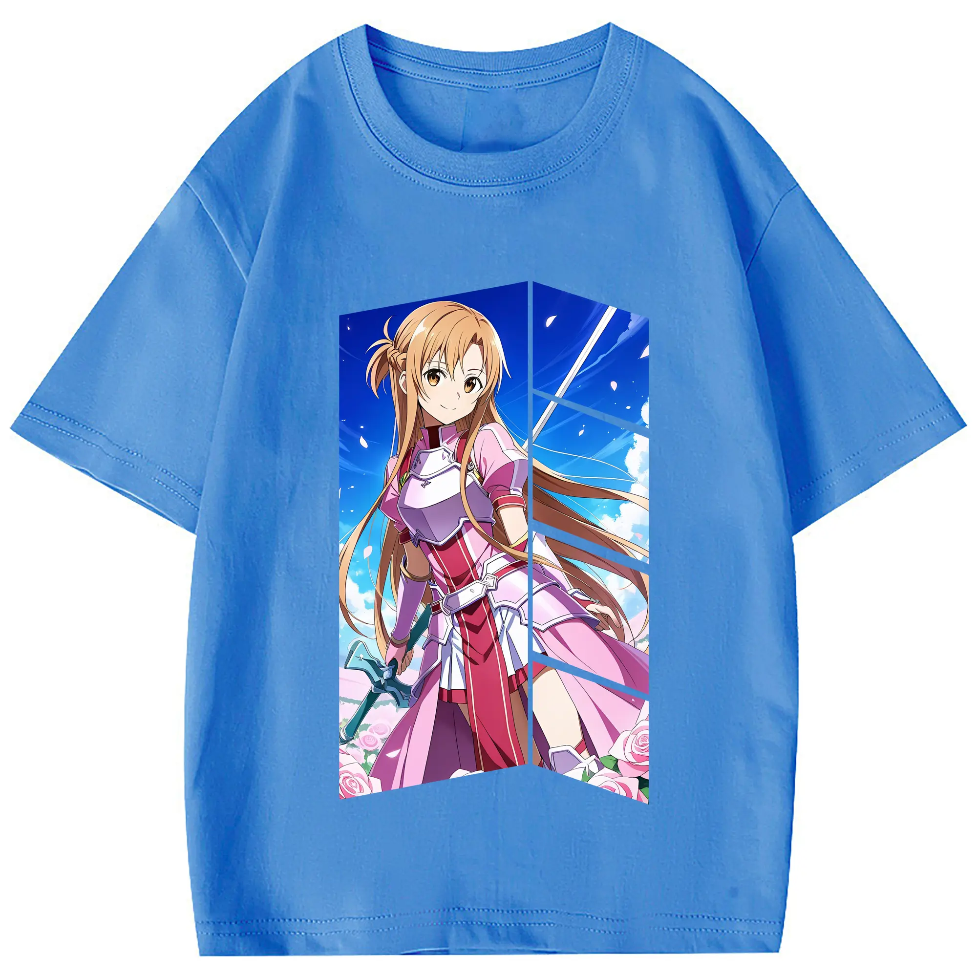 ソードアートオンライン グッズ アスナ - 綿100% 半袖Tシャツ ・ フロントプリント ・ 快適 通気性 ・ 日常使い 散歩 スポーツ用