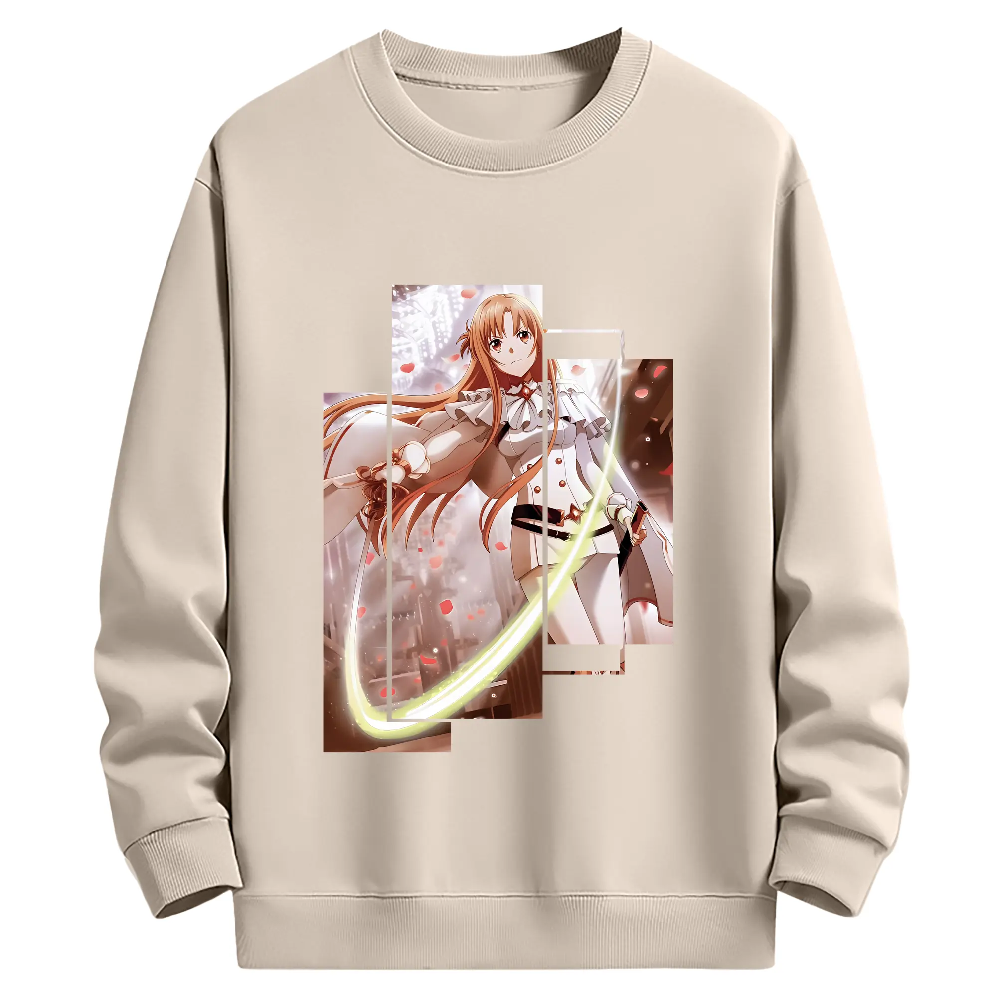 ソードアートオンライン グッズ アスナ - 薄手 クルーネック スウェット 裏毛260g · ポリエステル 春秋向け カジュアル 男女兼用 · トレーナー デイリー スポーツ 散歩に最適