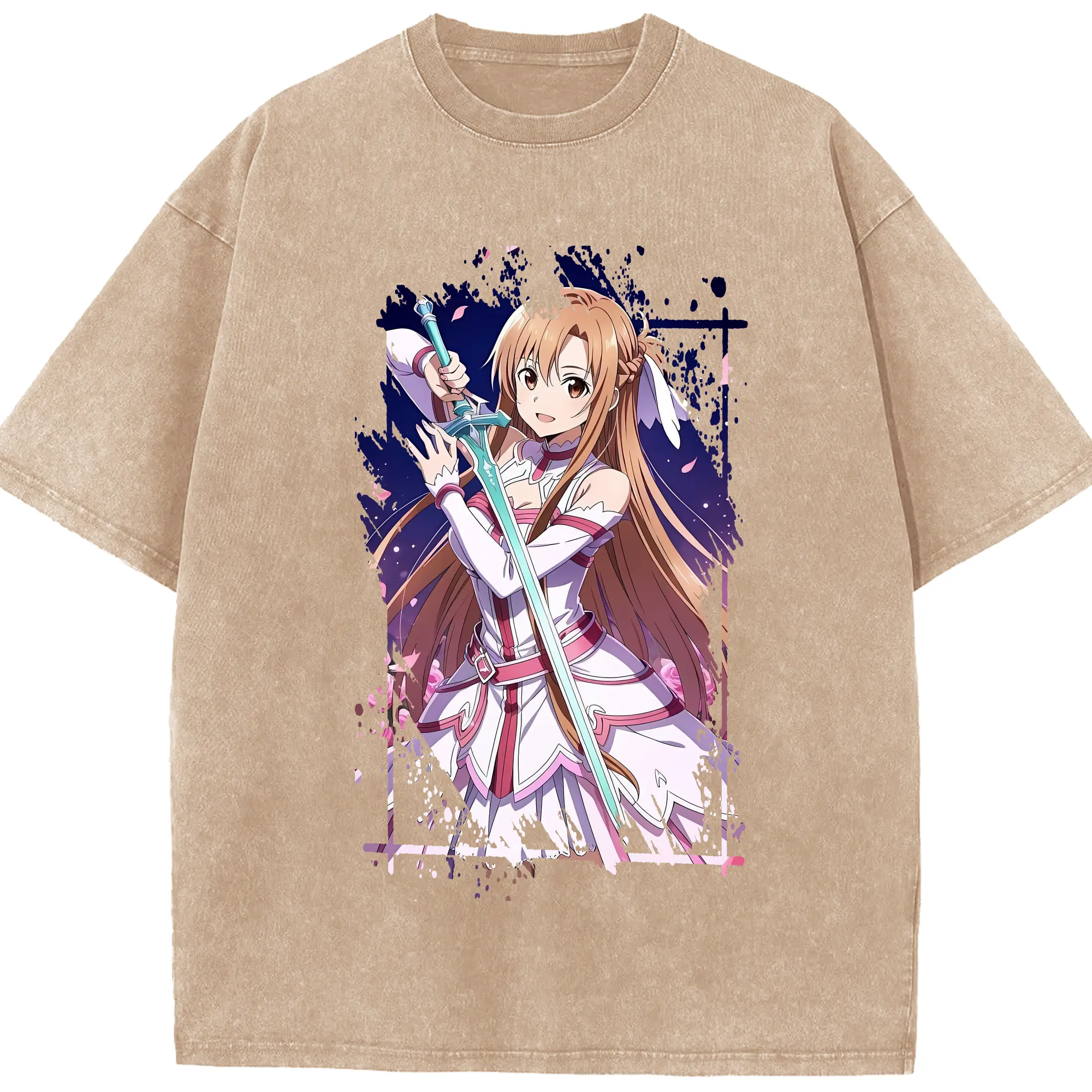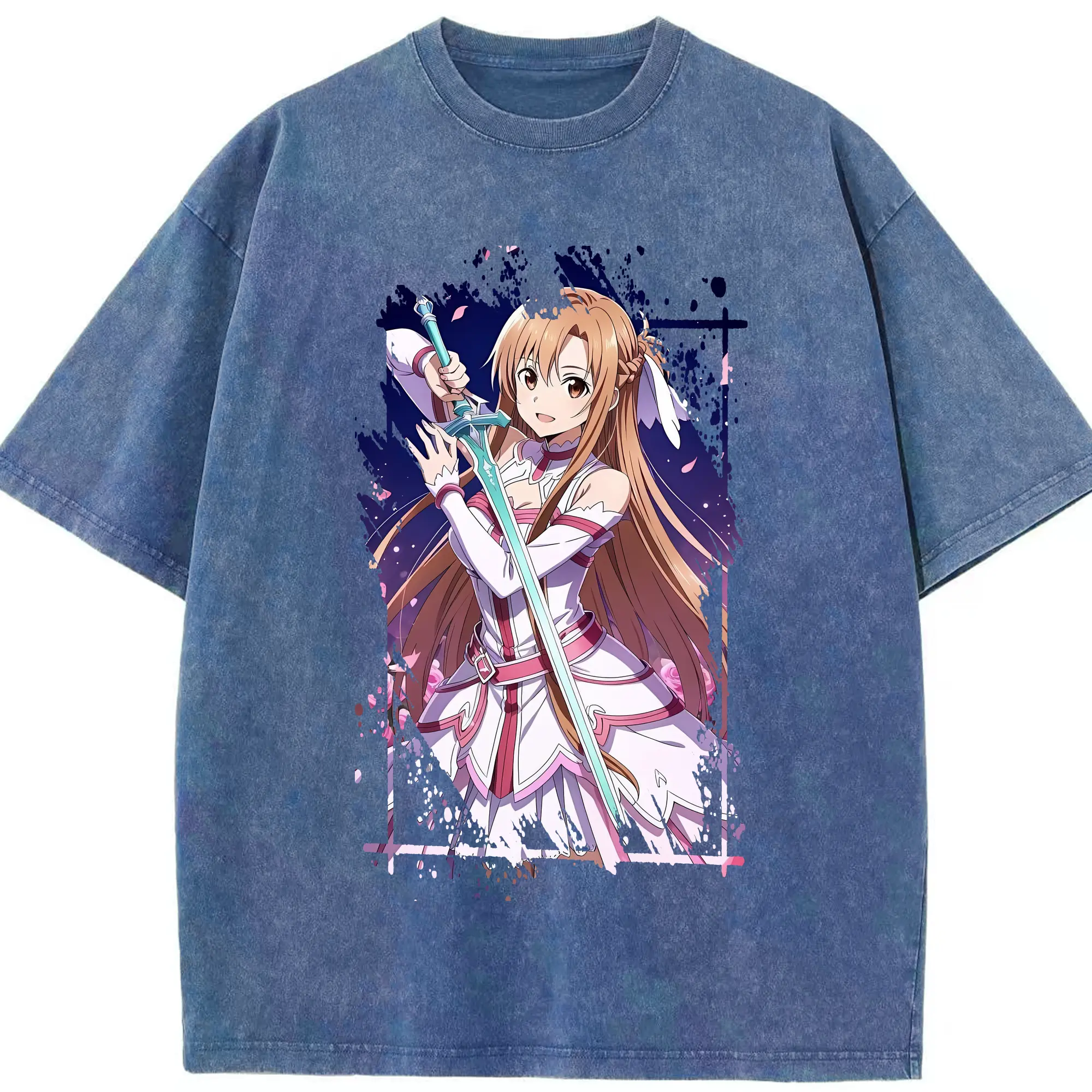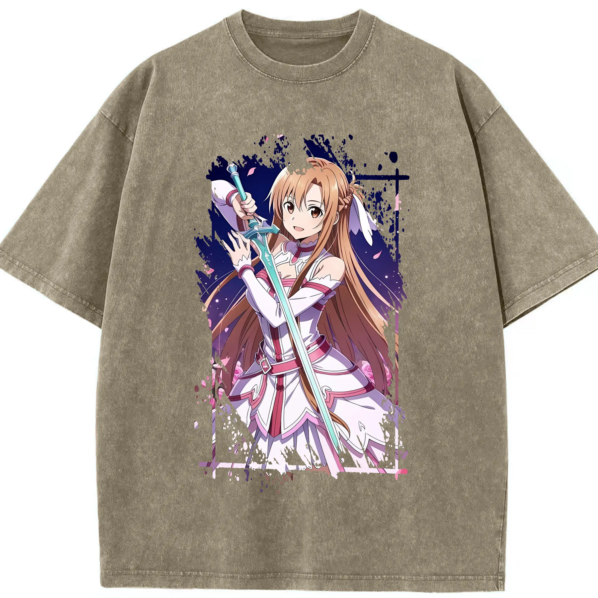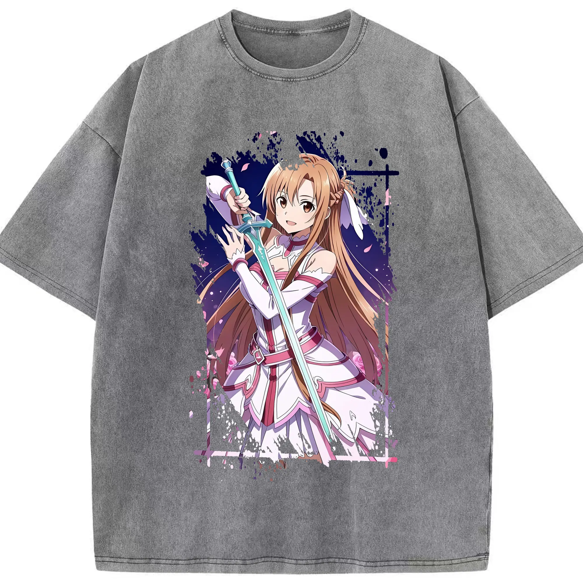 ソードアートオンライン グッズ アスナ - 綿100% ヴィンテージ風 半袖Tシャツ ・ 背面プリント ・ 柔らか肌触り ・ 通気性 快適 ・ スポーツ カジュアル 外出用