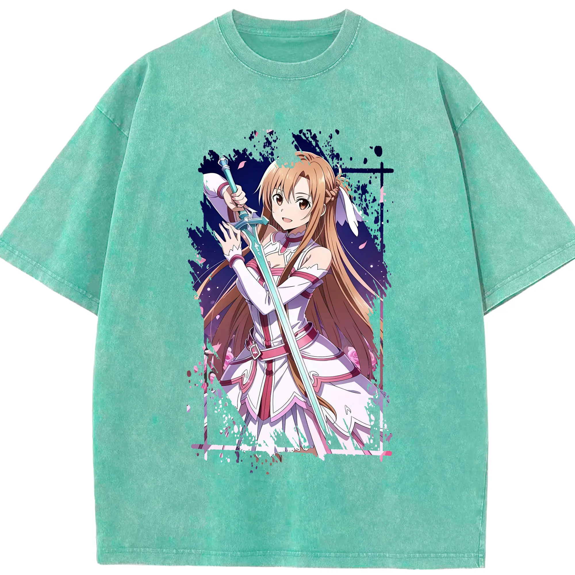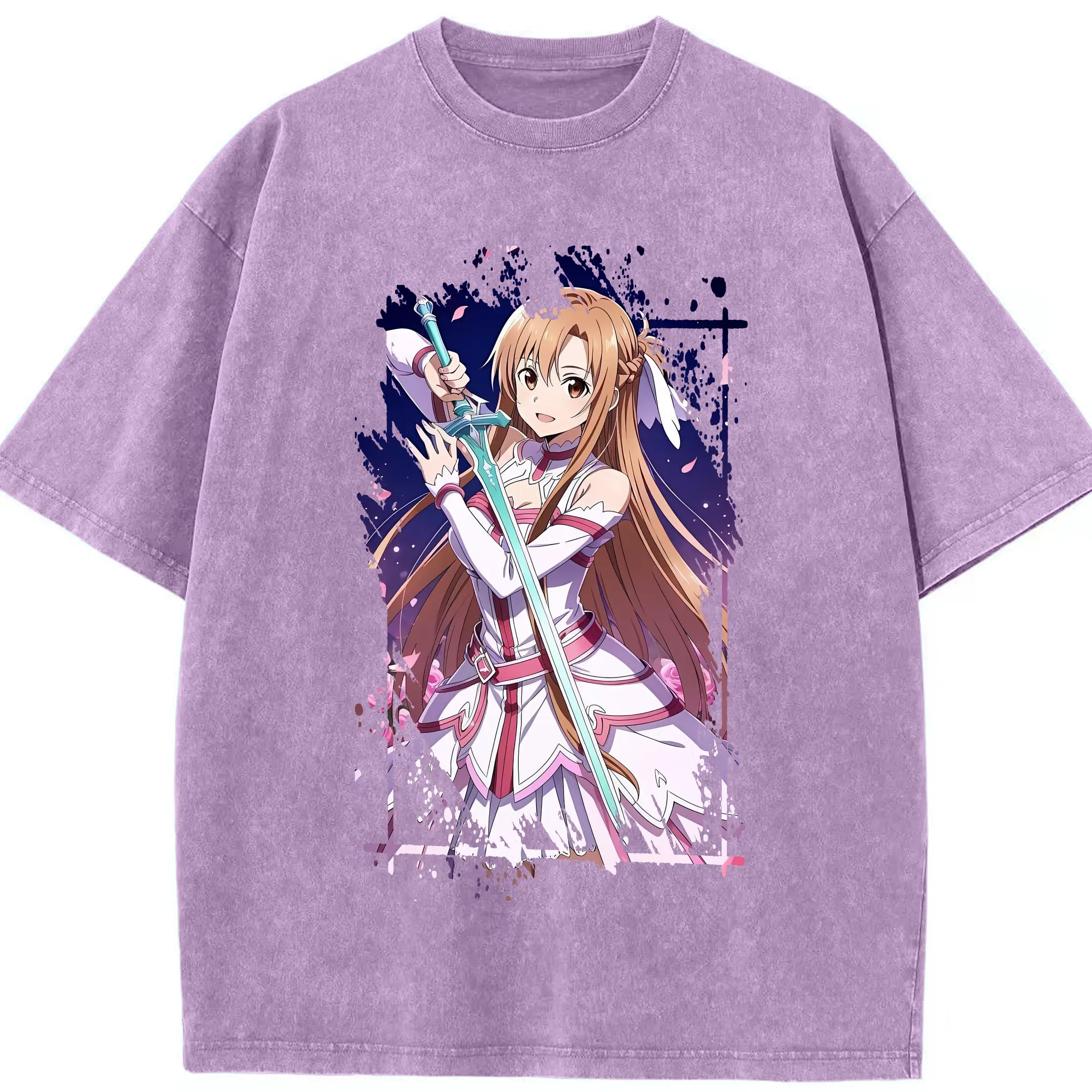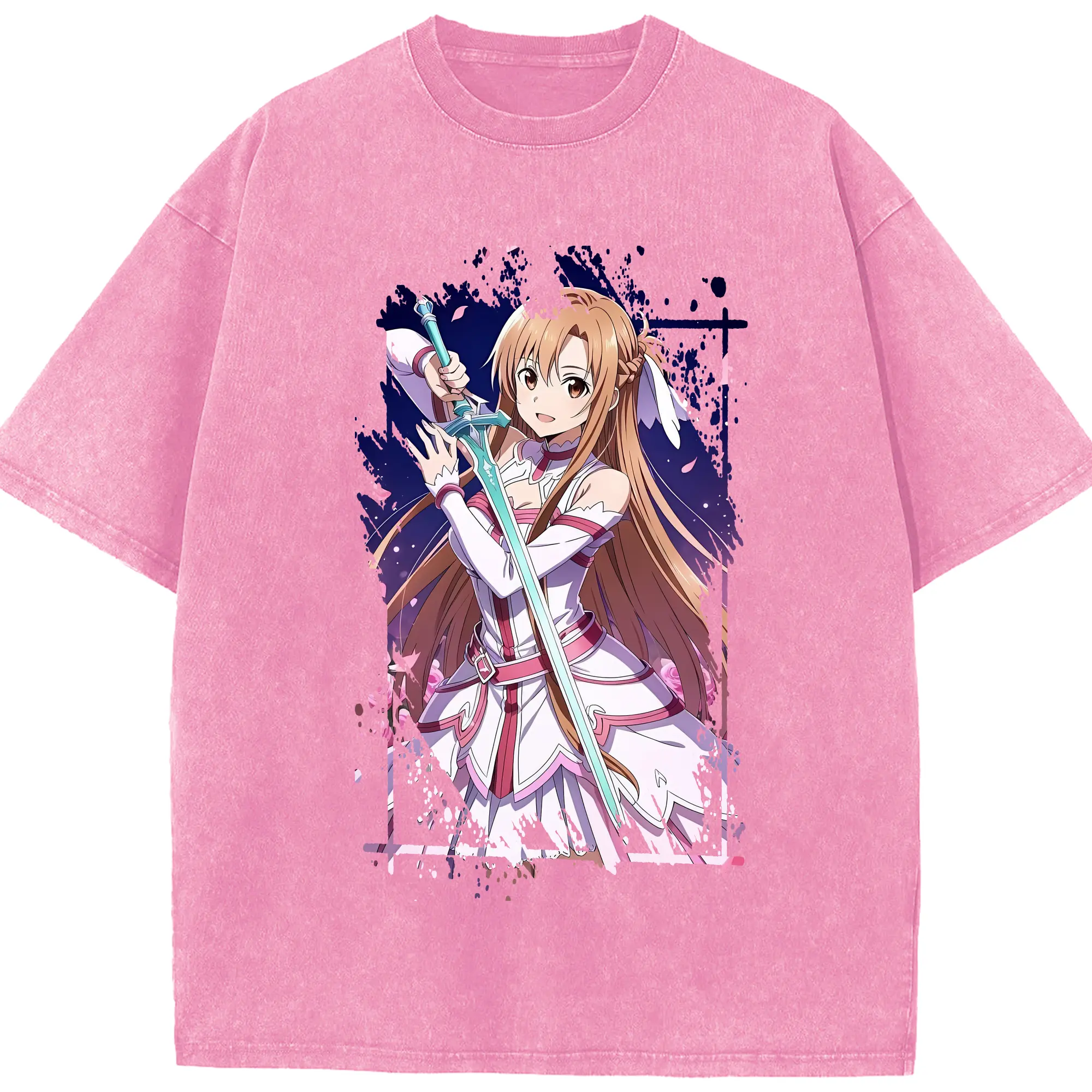ソードアートオンライン グッズ アスナ - 綿100% 半袖Tシャツ ・ フロントプリント ・ 快適 通気性 ・ 日常使い 散歩 スポーツ用