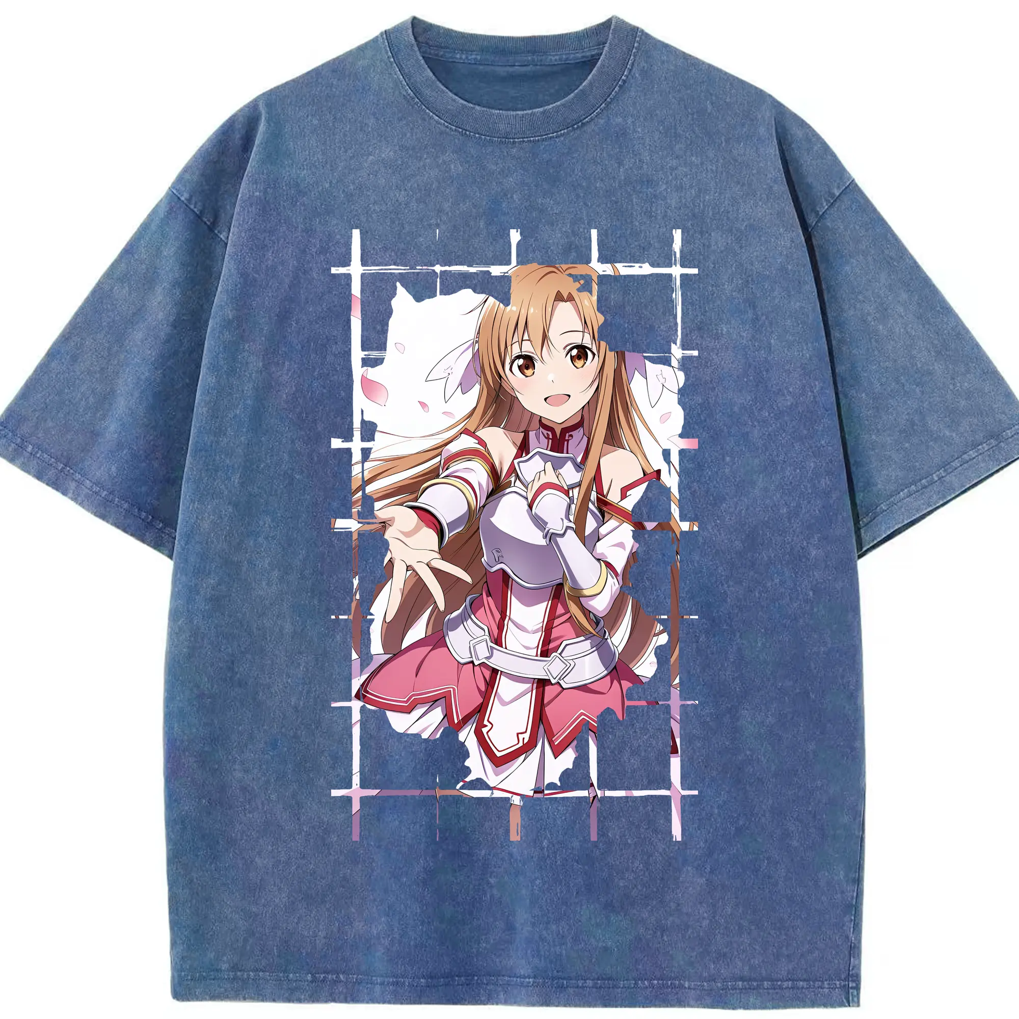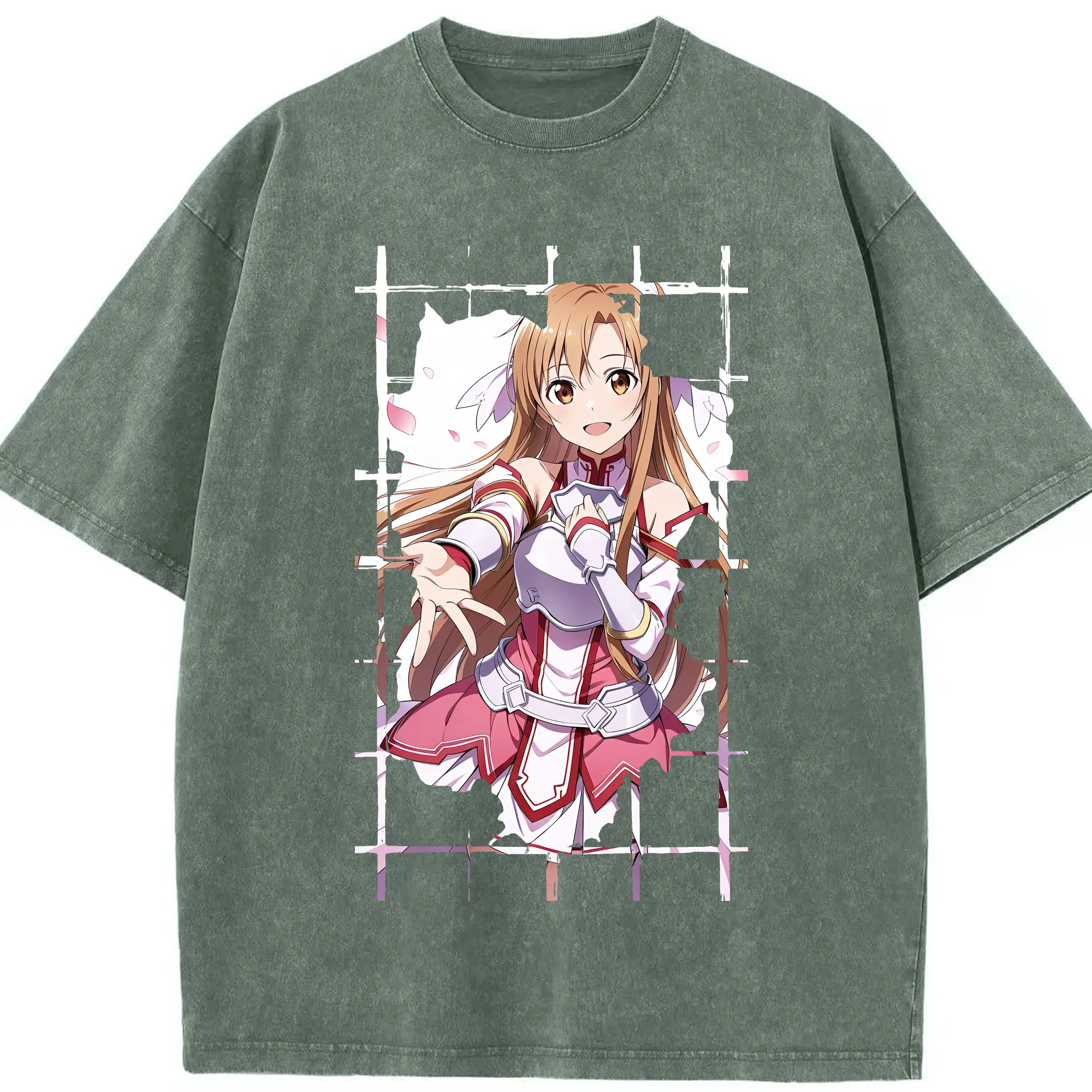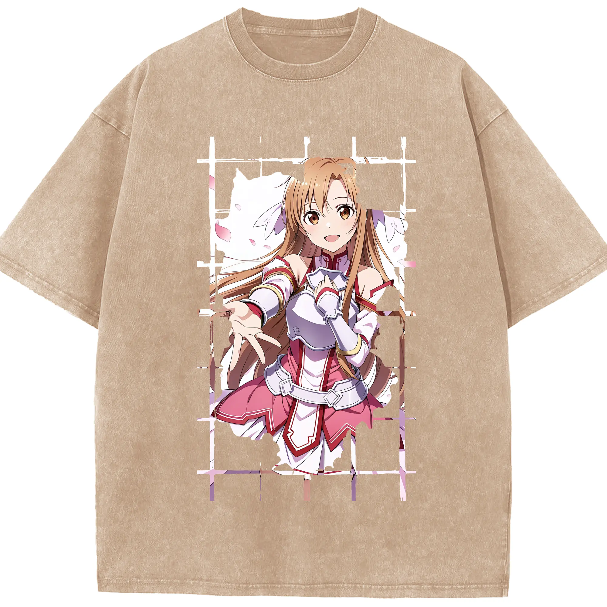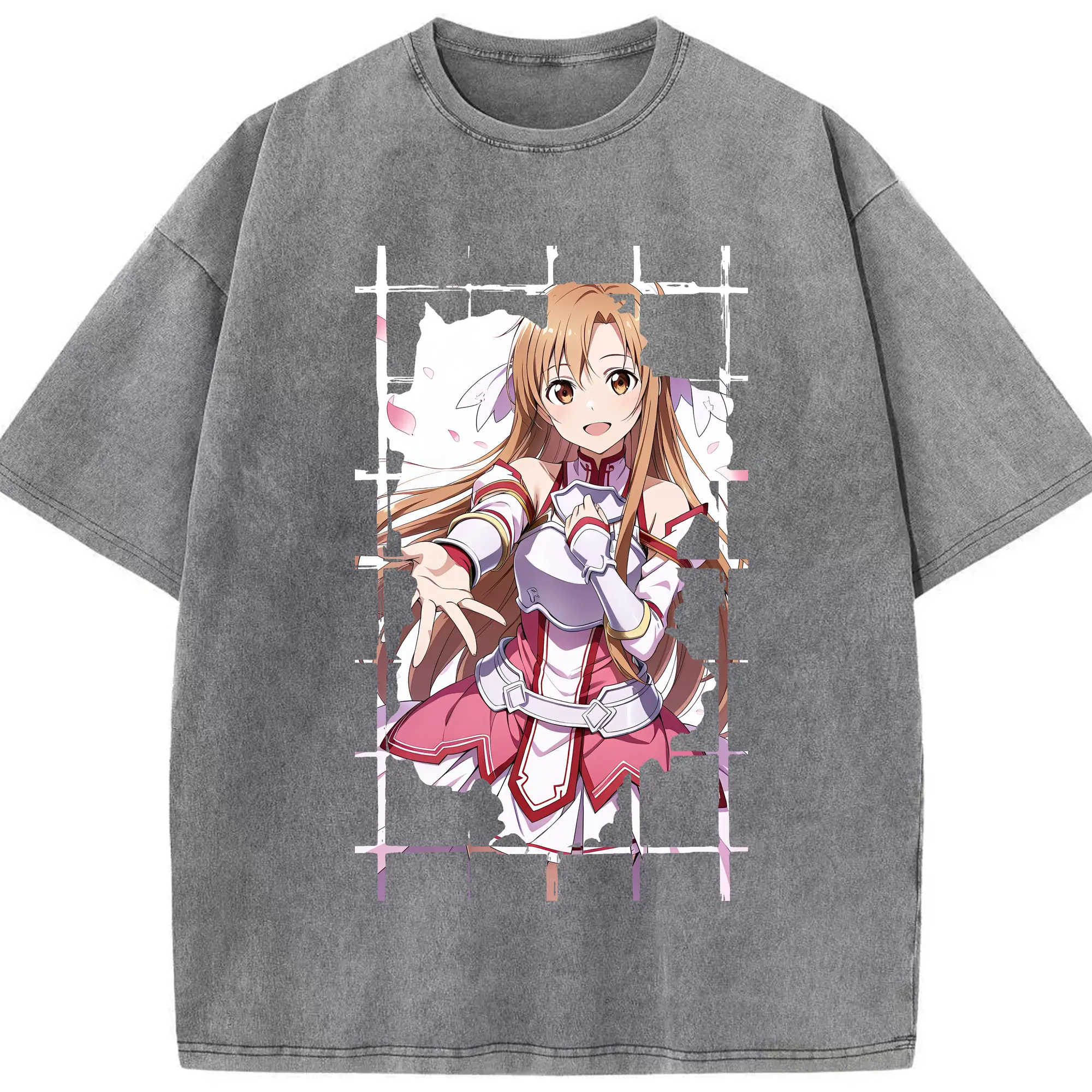 ソードアートオンライン グッズ アスナ - 綿100% ヴィンテージ風 半袖Tシャツ ・ 背面プリント ・ 柔らか肌触り ・ 通気性 快適 ・ スポーツ カジュアル 外出用