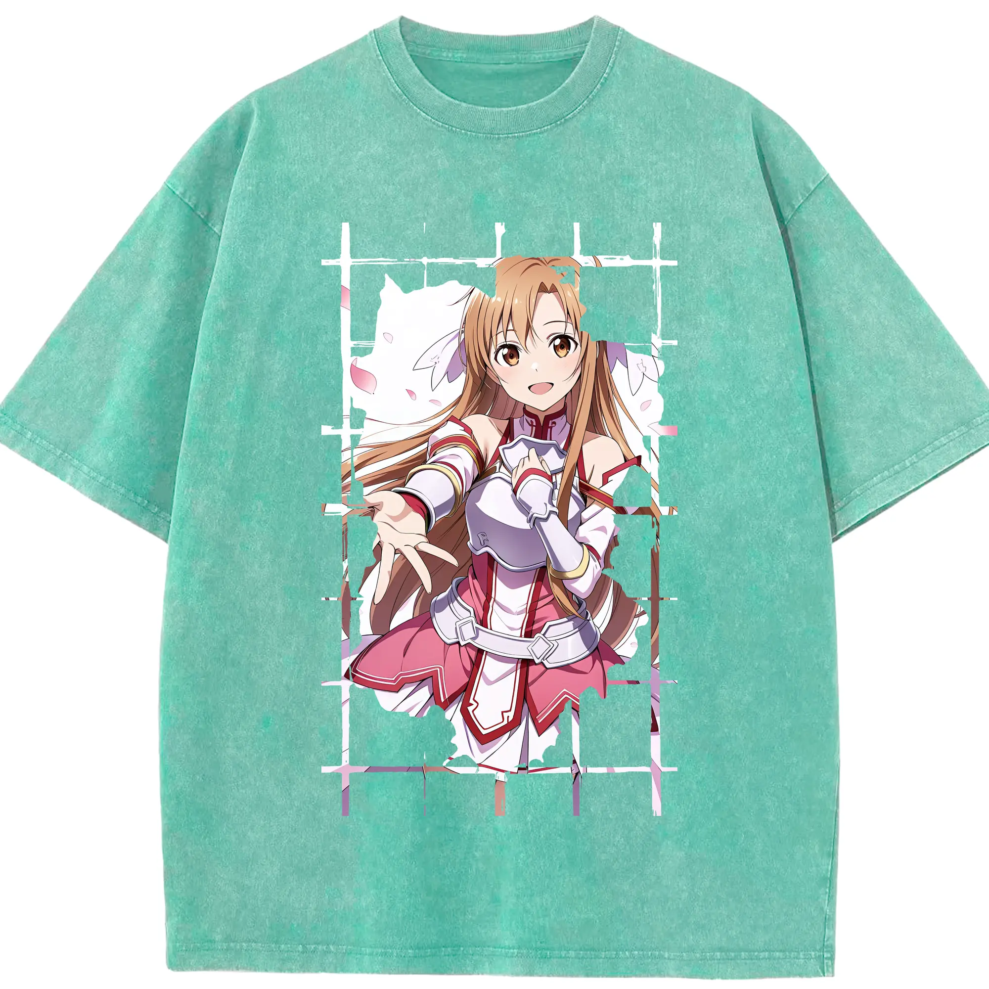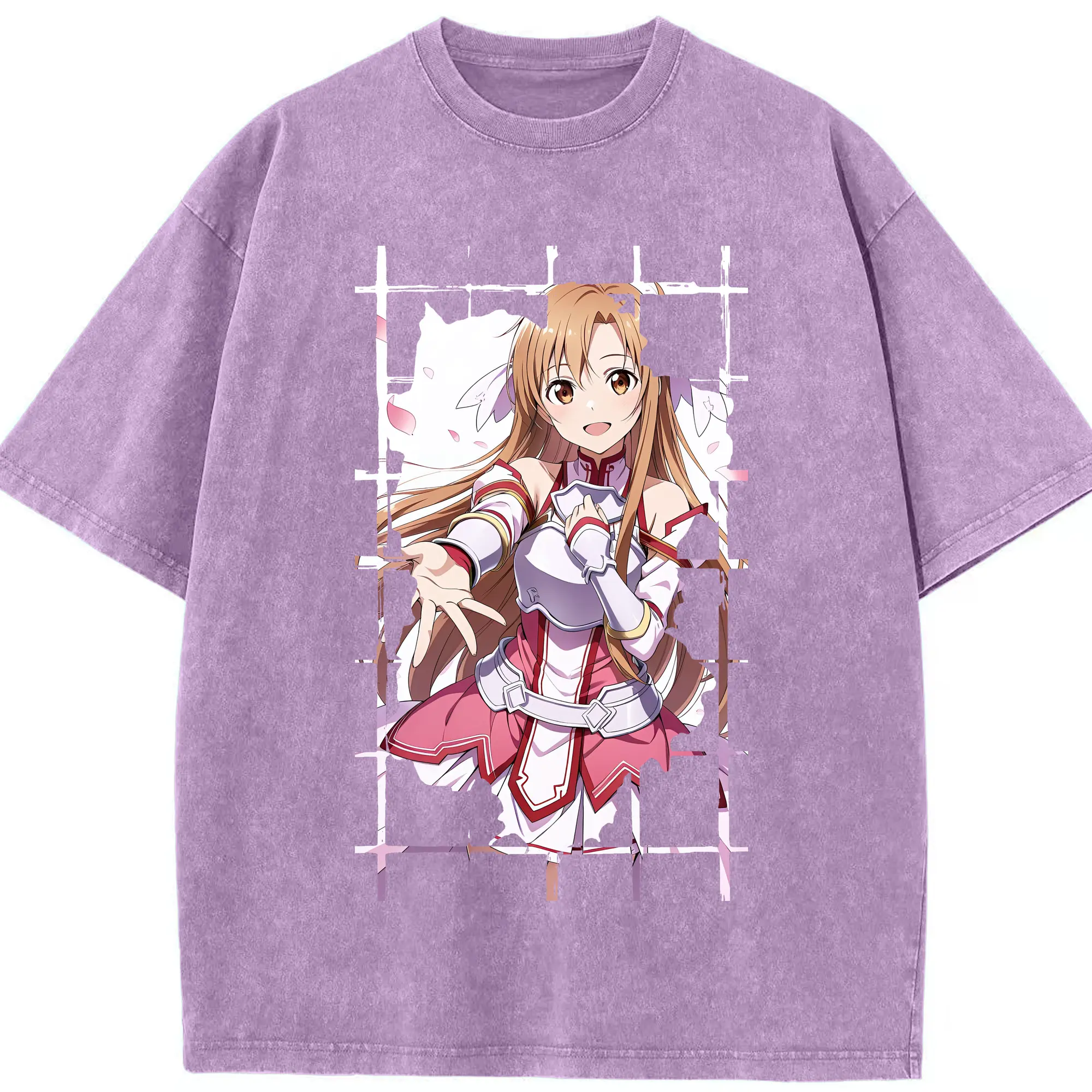 ソードアートオンライン グッズ アスナ - 綿100% 半袖Tシャツ ・ フロントプリント ・ 快適 通気性 ・ 日常使い 散歩 スポーツ用
