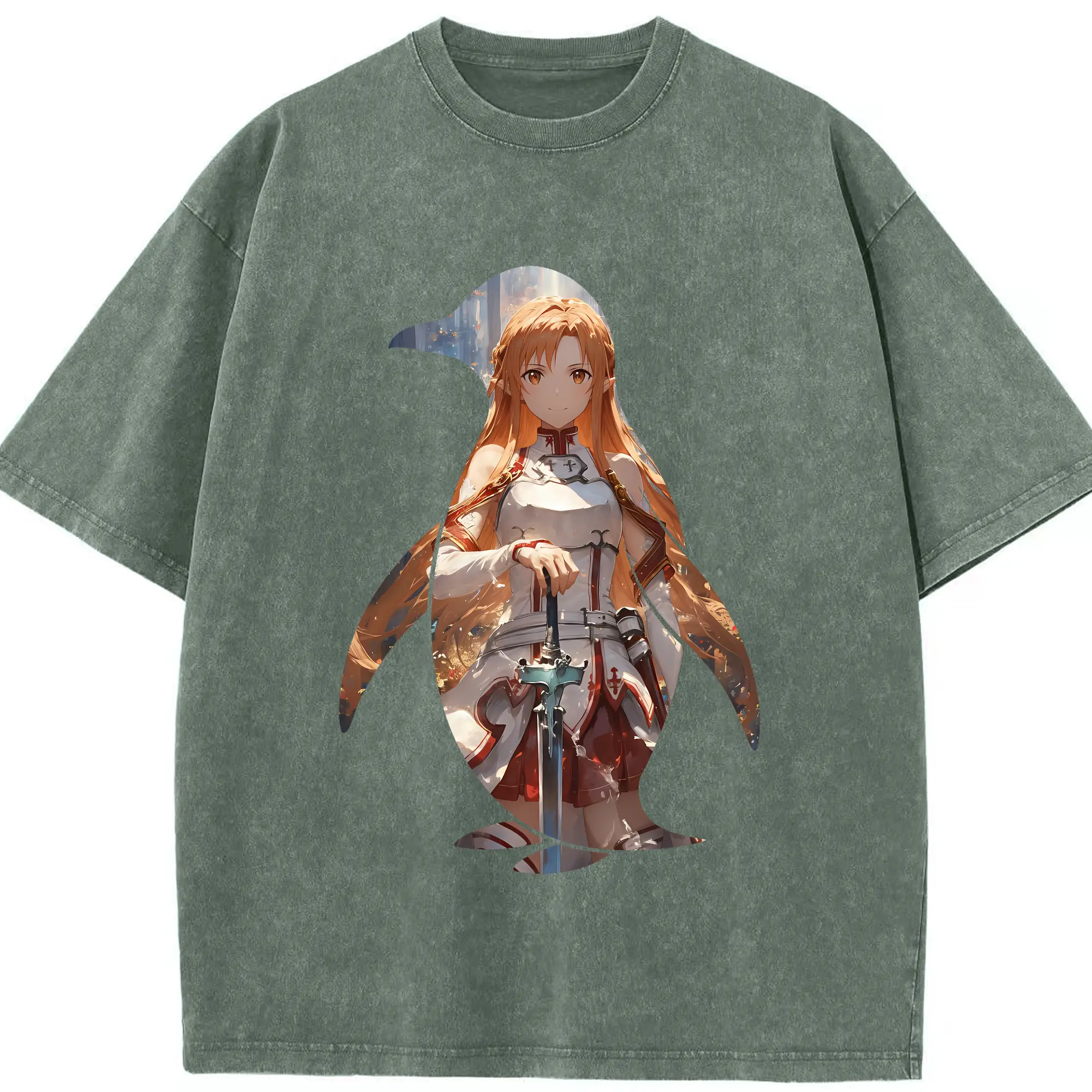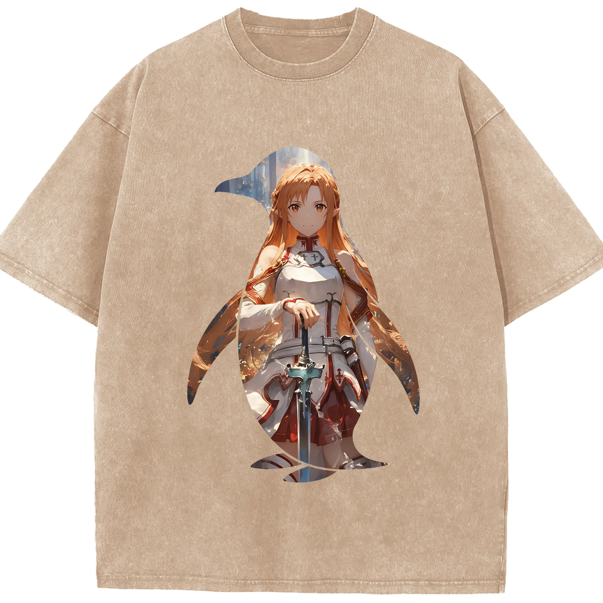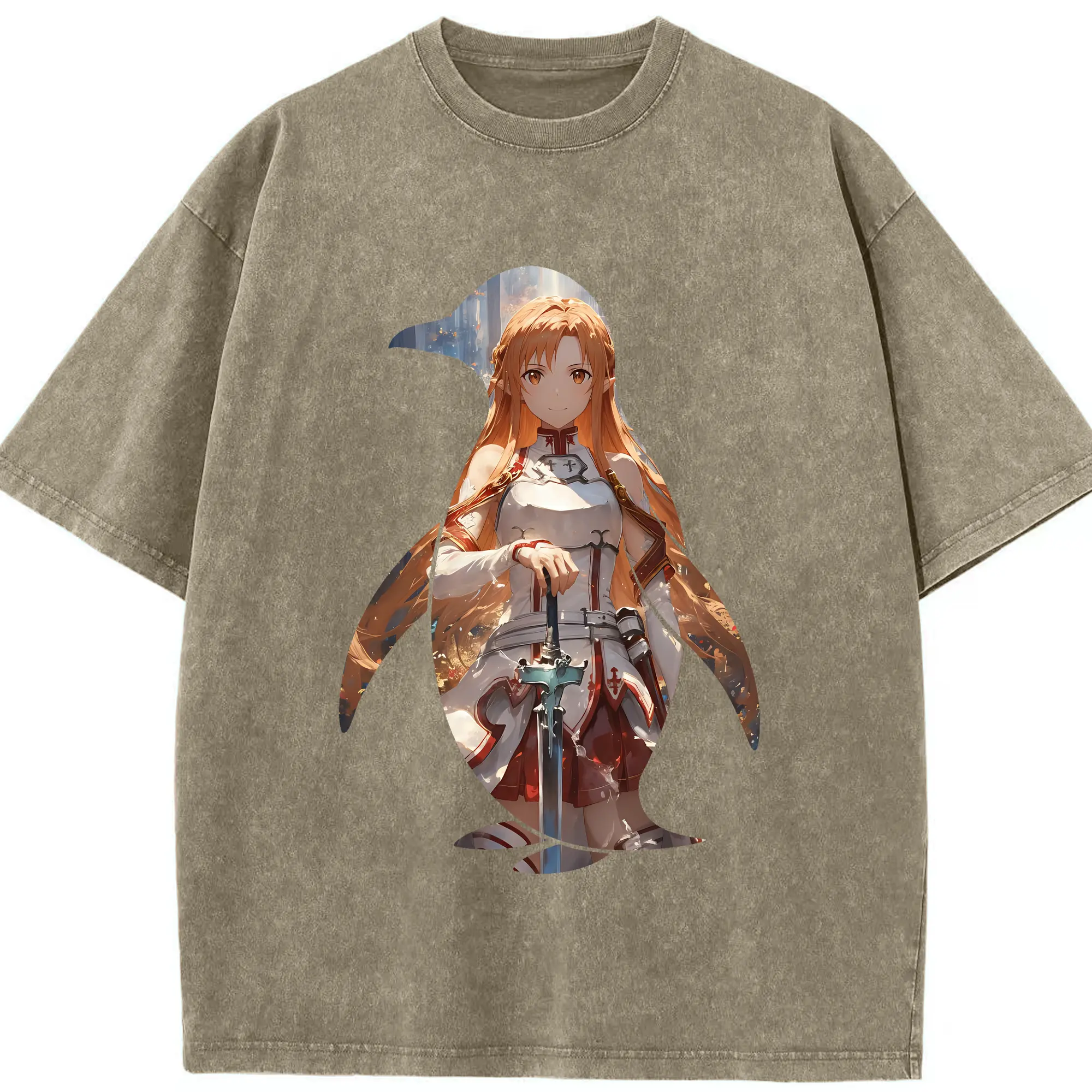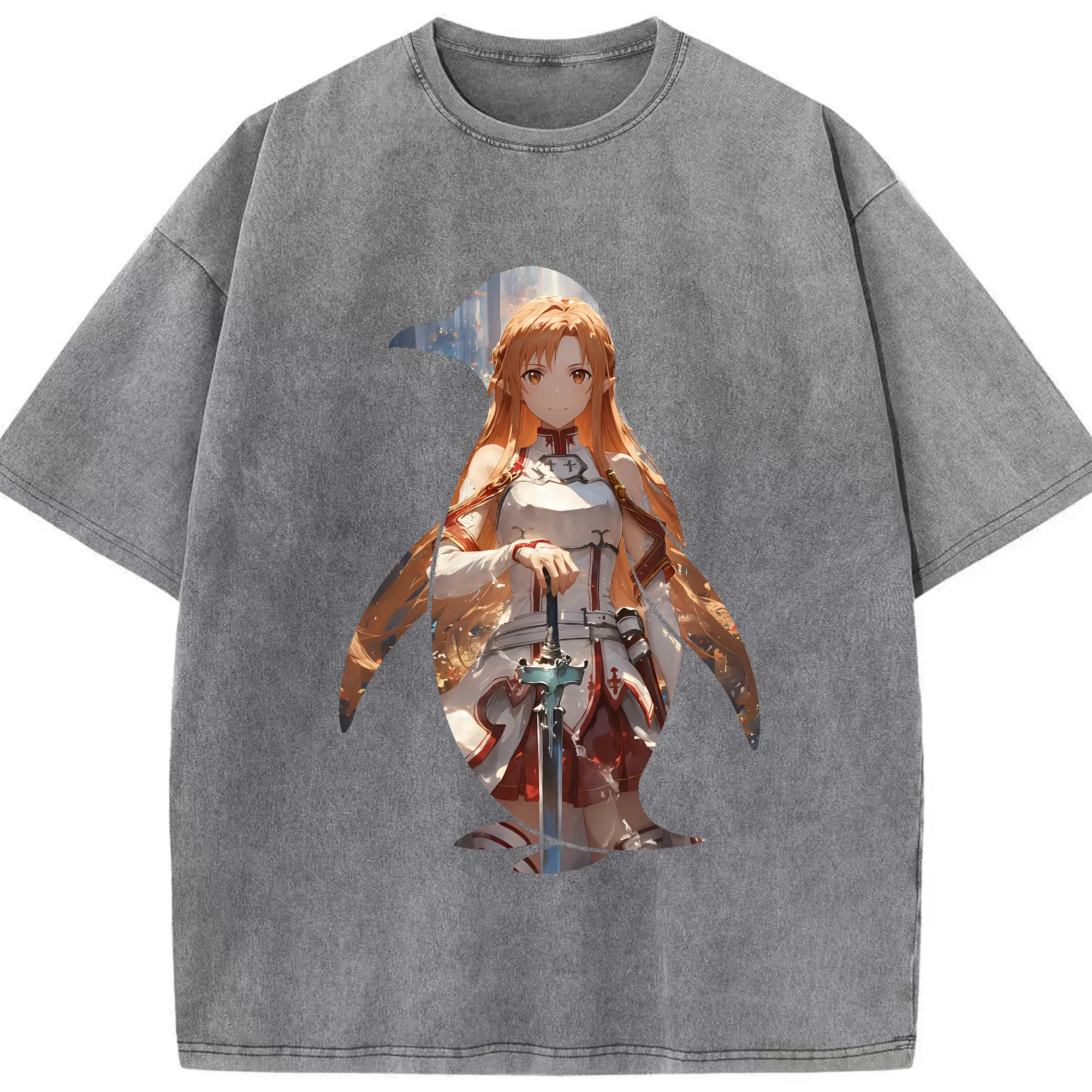 ソードアートオンライン グッズ アスナ - 綿100% ヴィンテージ風 半袖Tシャツ ・ 背面プリント ・ 柔らか肌触り ・ 通気性 快適 ・ スポーツ カジュアル 外出用