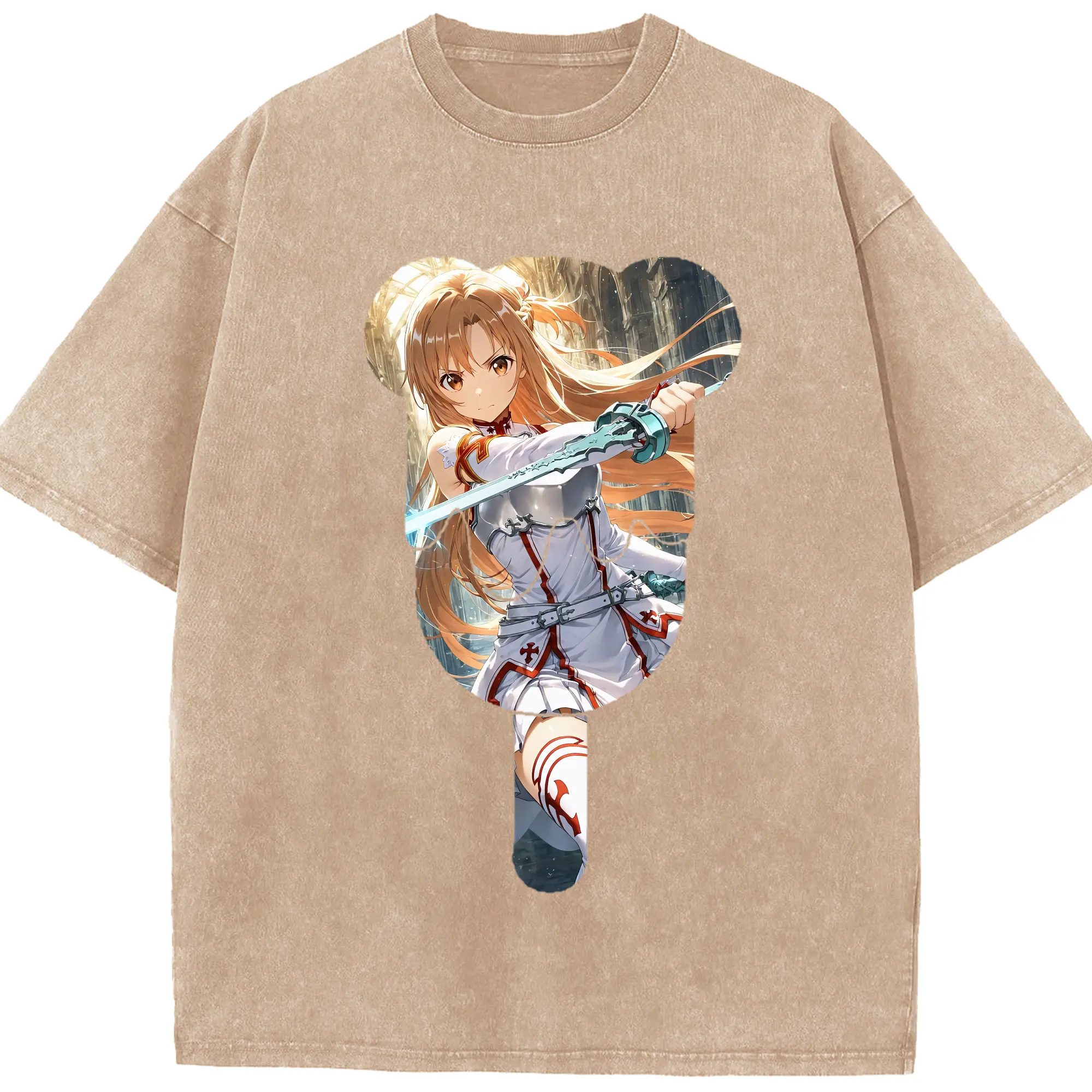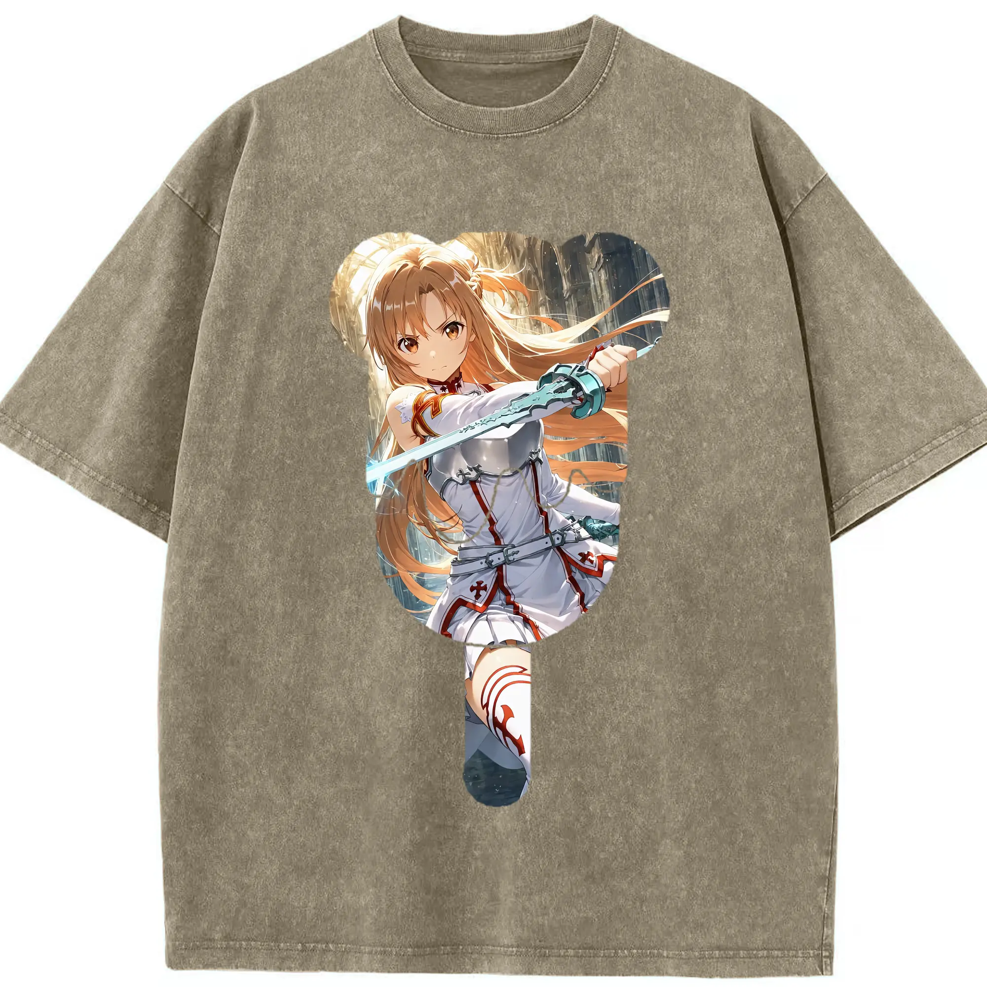 ソードアートオンライン グッズ アスナ - 綿100% ヴィンテージ風 半袖Tシャツ ・ 背面プリント ・ 柔らか肌触り ・ 通気性 快適 ・ スポーツ カジュアル 外出用