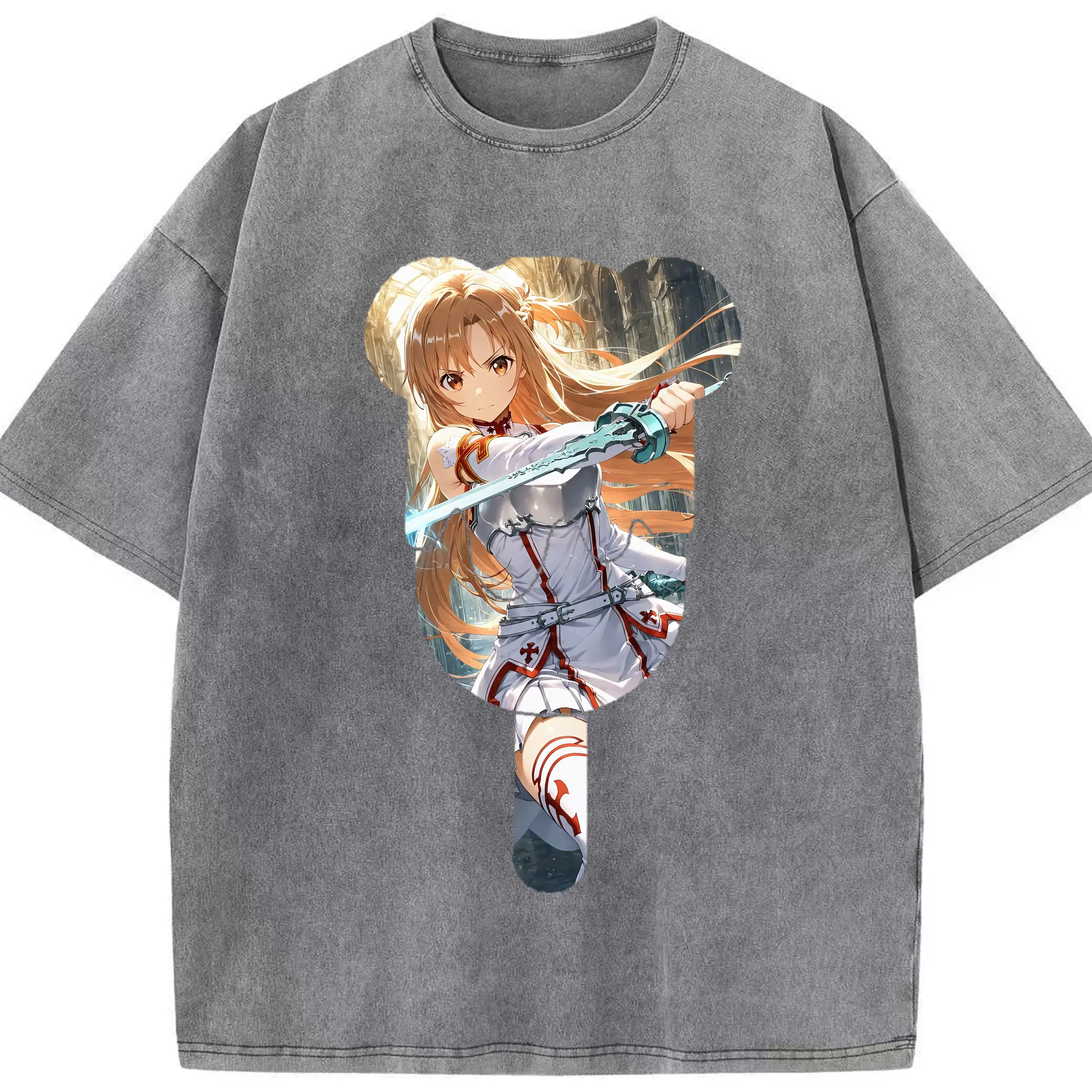 ソードアートオンライン グッズ アスナ - 綿100% 半袖Tシャツ ・ フロントプリント ・ 快適 通気性 ・ 日常使い 散歩 スポーツ用