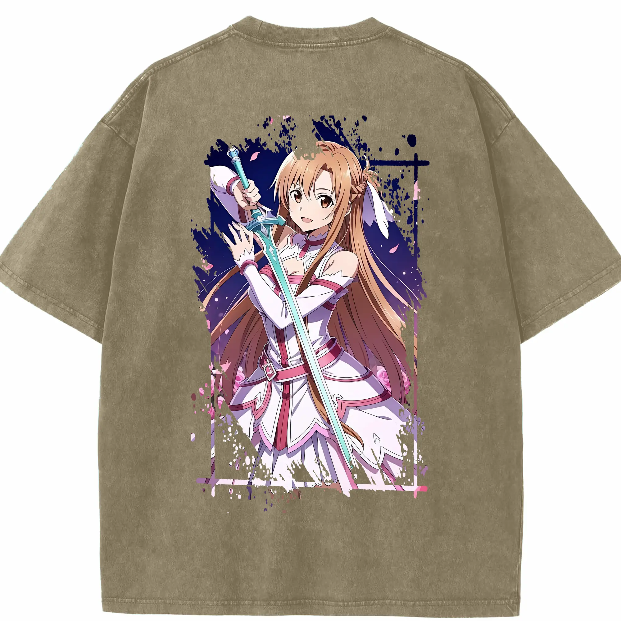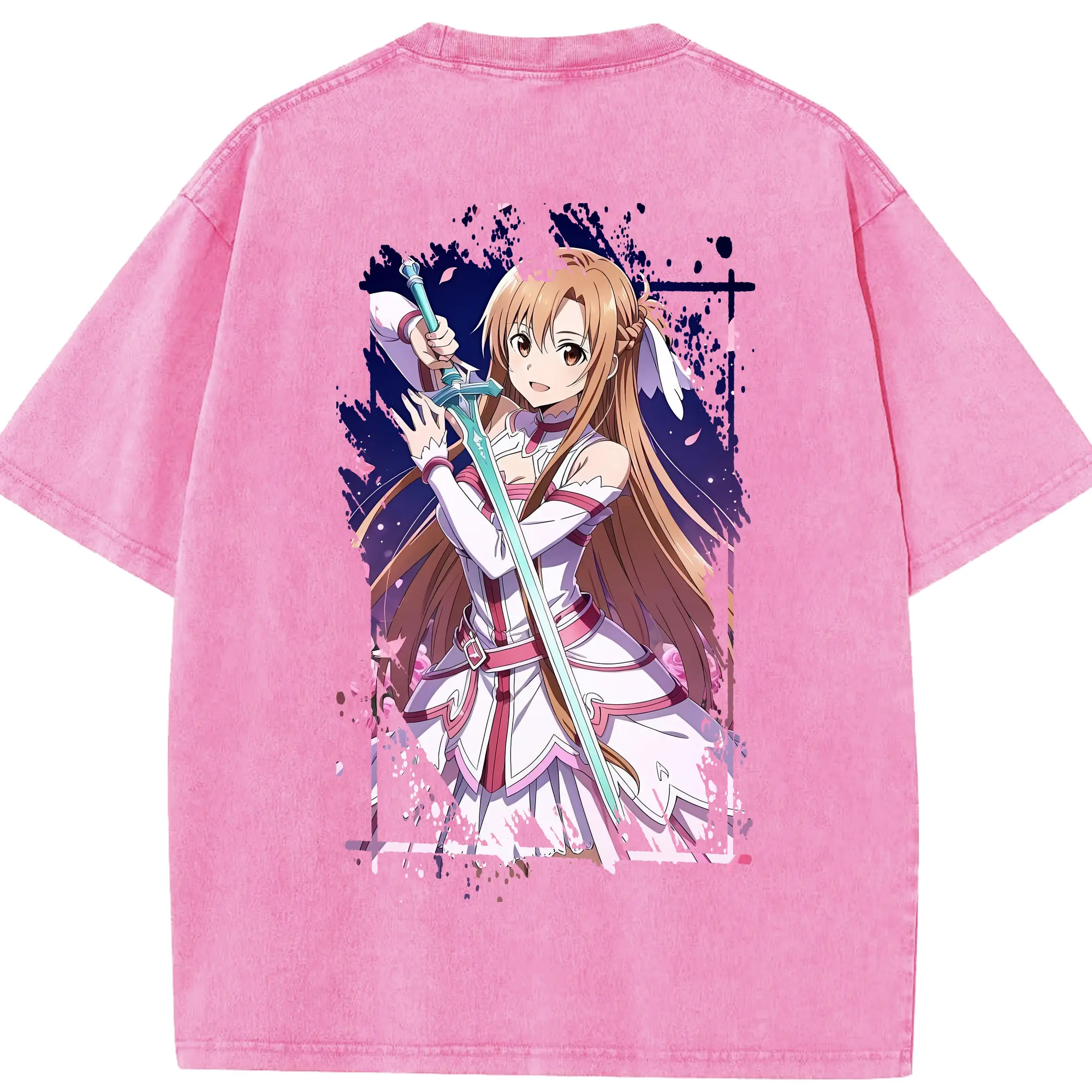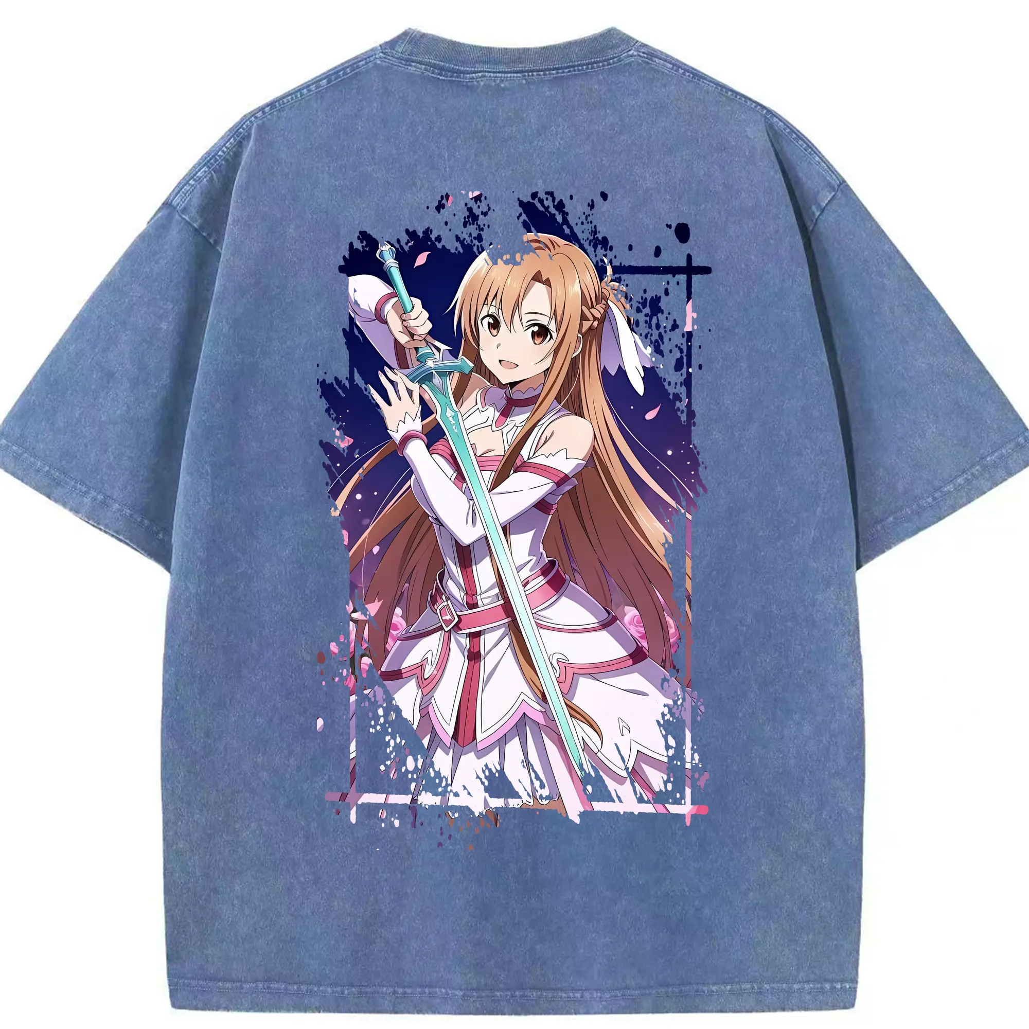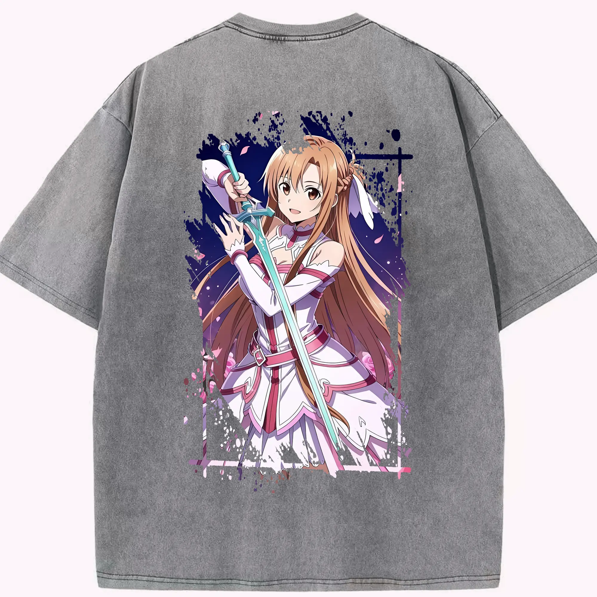 ソードアートオンライン グッズ アスナ - 綿100% ヴィンテージ風 半袖Tシャツ ・ フロントプリント ・ 柔らか肌触り ・ 通気性 快適 ・ スポーツ カジュアル 外出用