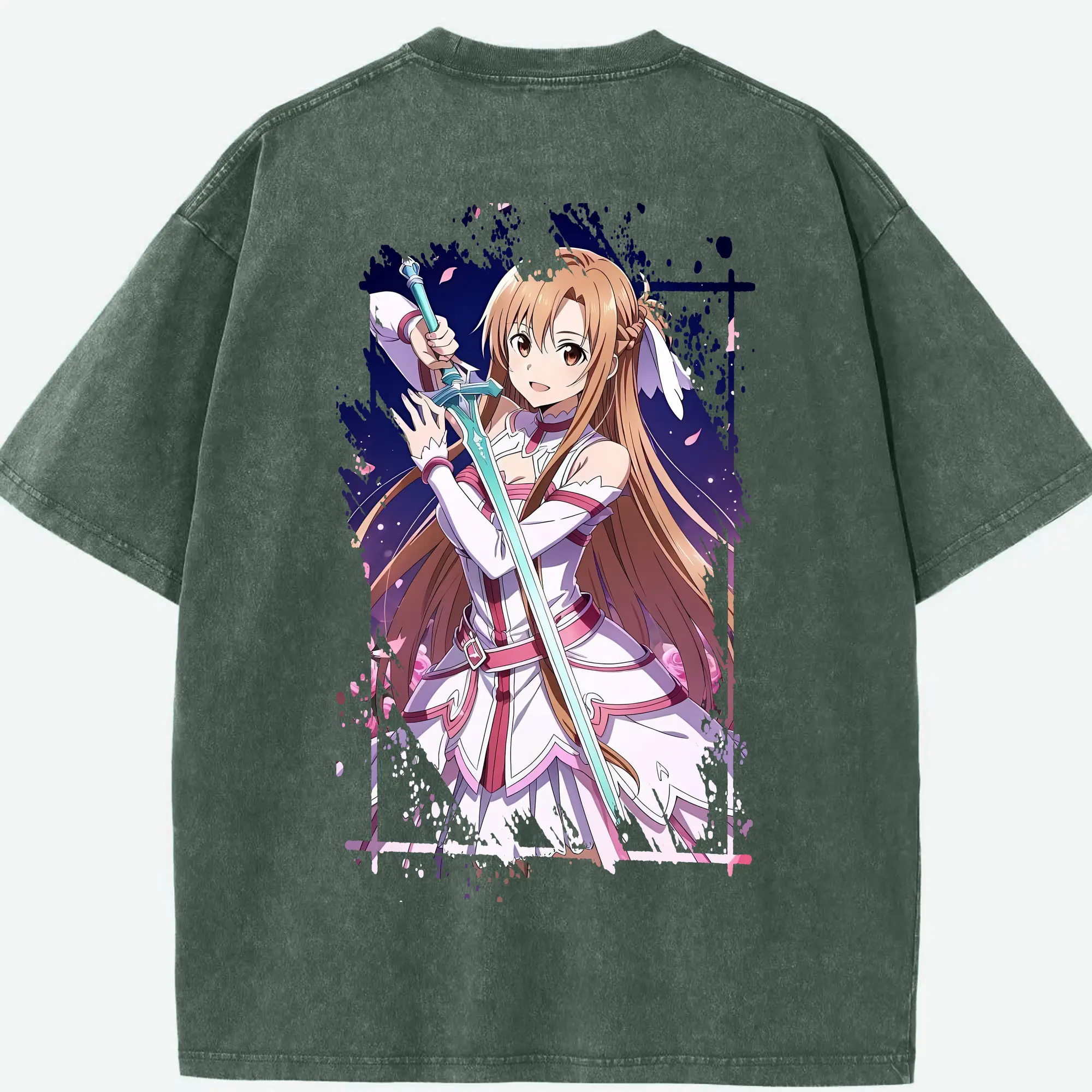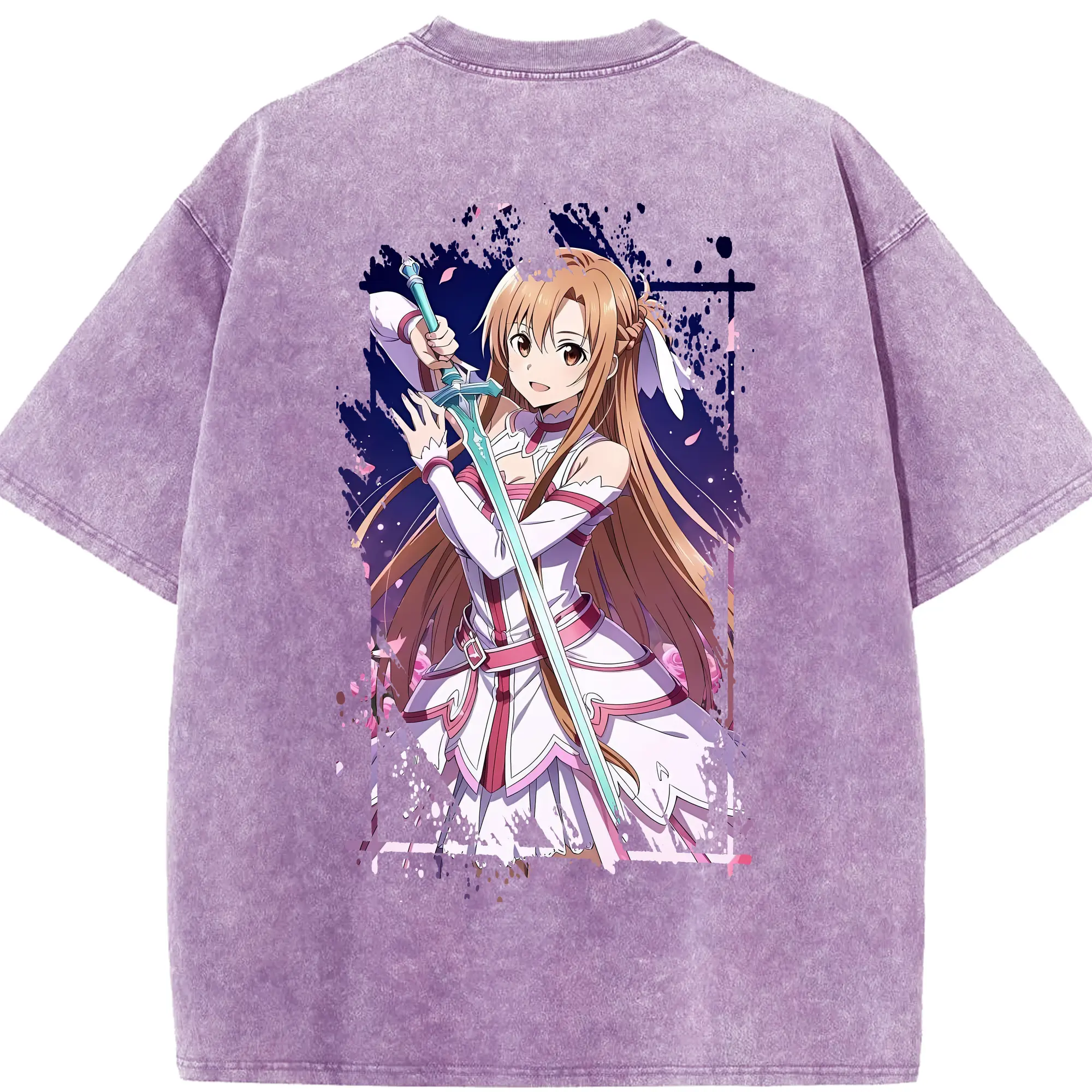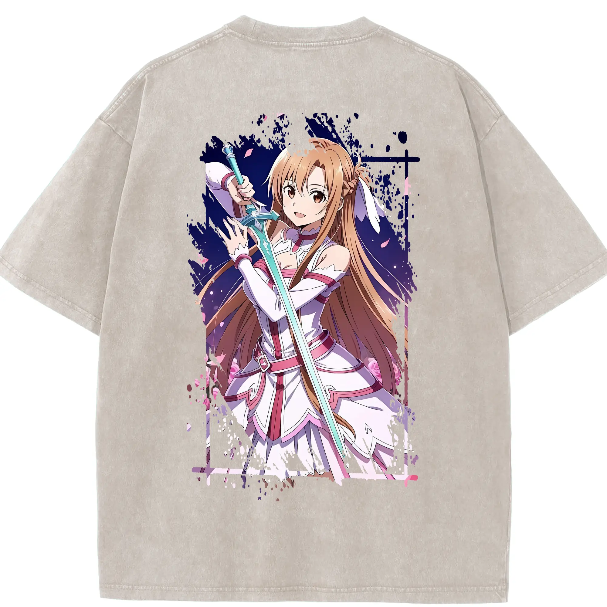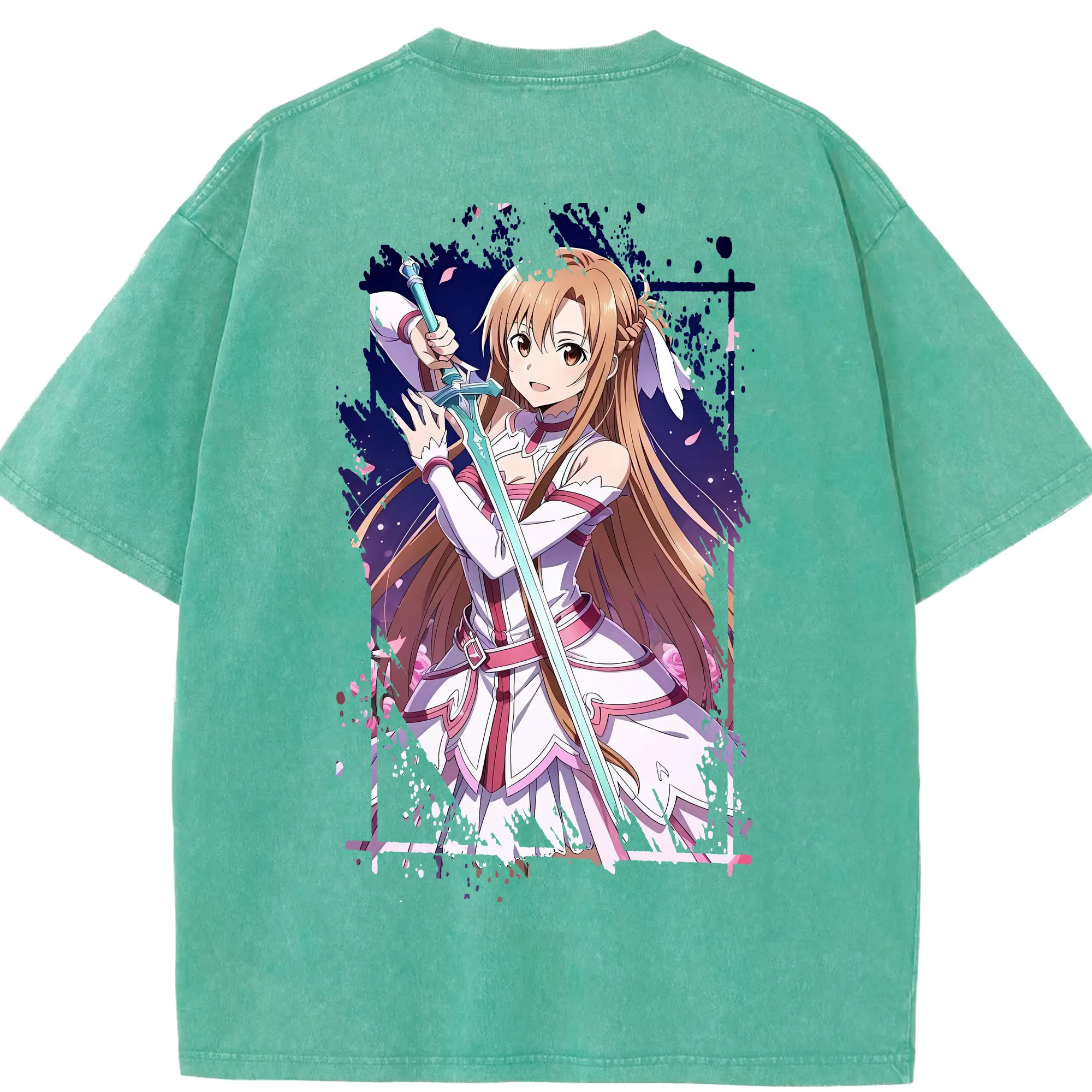 ソードアートオンライン グッズ アスナ - 綿100% ヴィンテージ風 半袖Tシャツ ・ フロントプリント ・ 柔らか肌触り ・ 通気性 快適 ・ スポーツ カジュアル 外出用