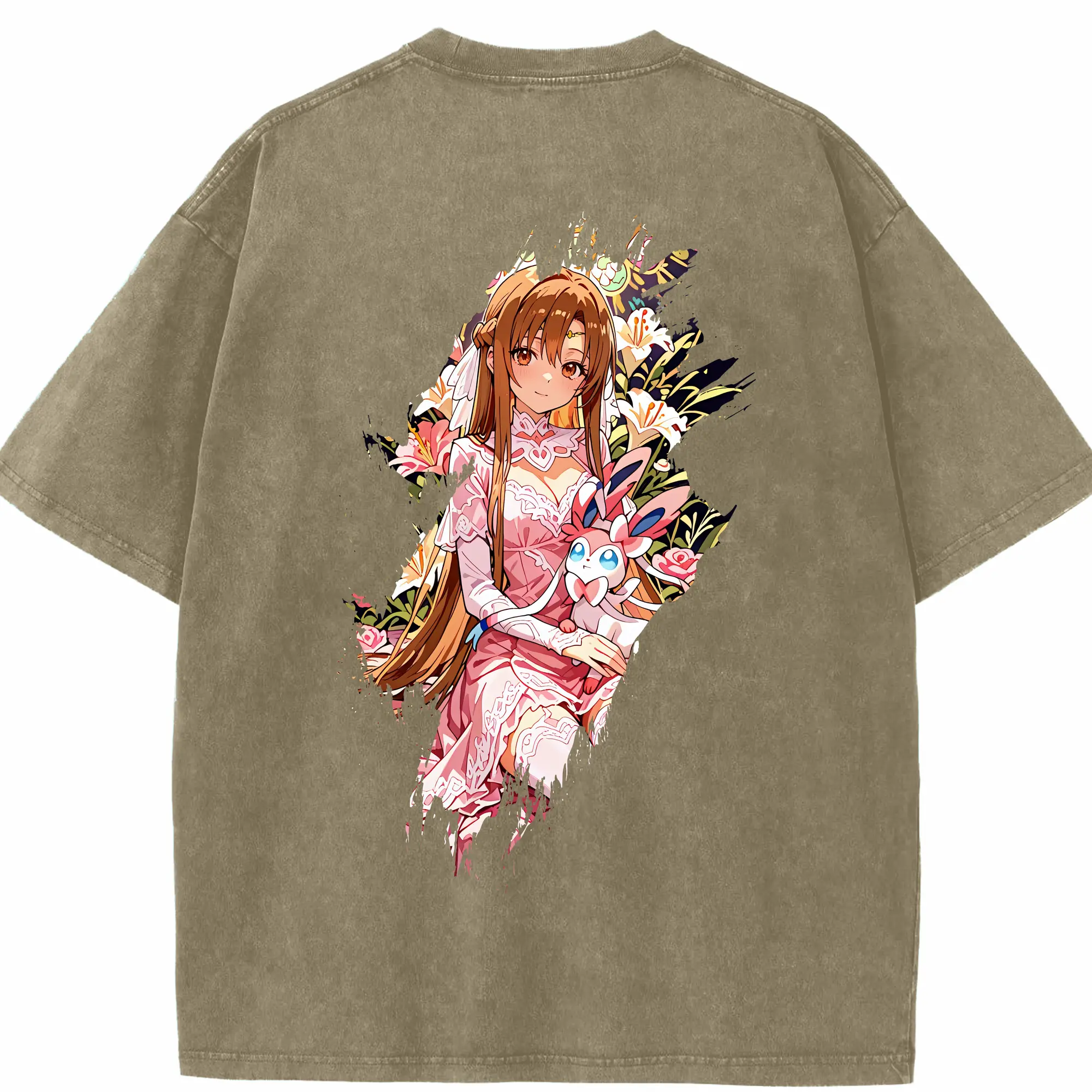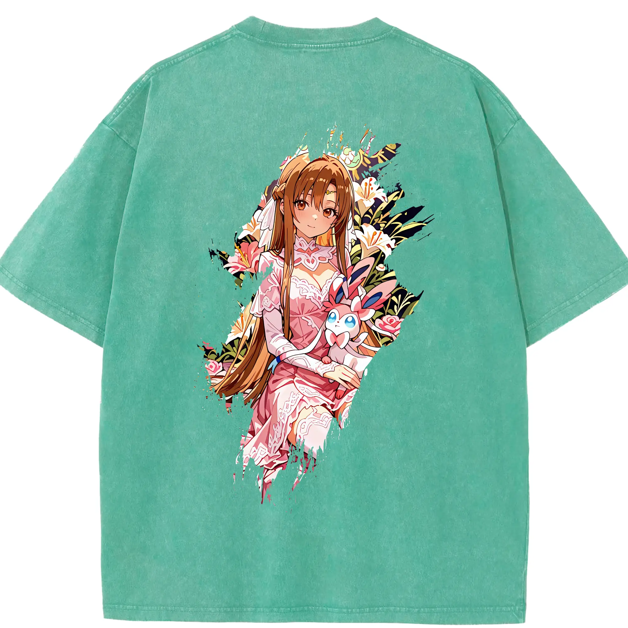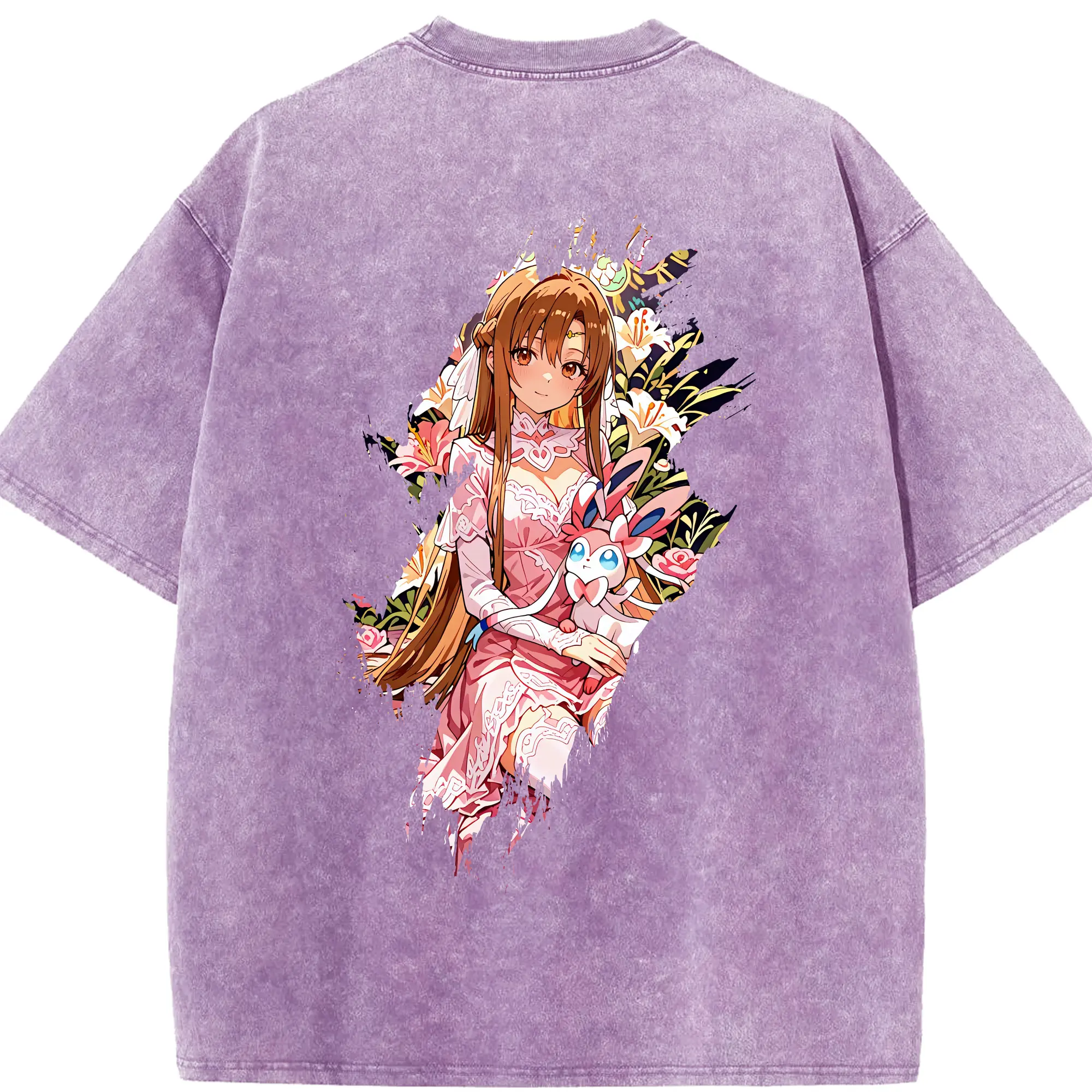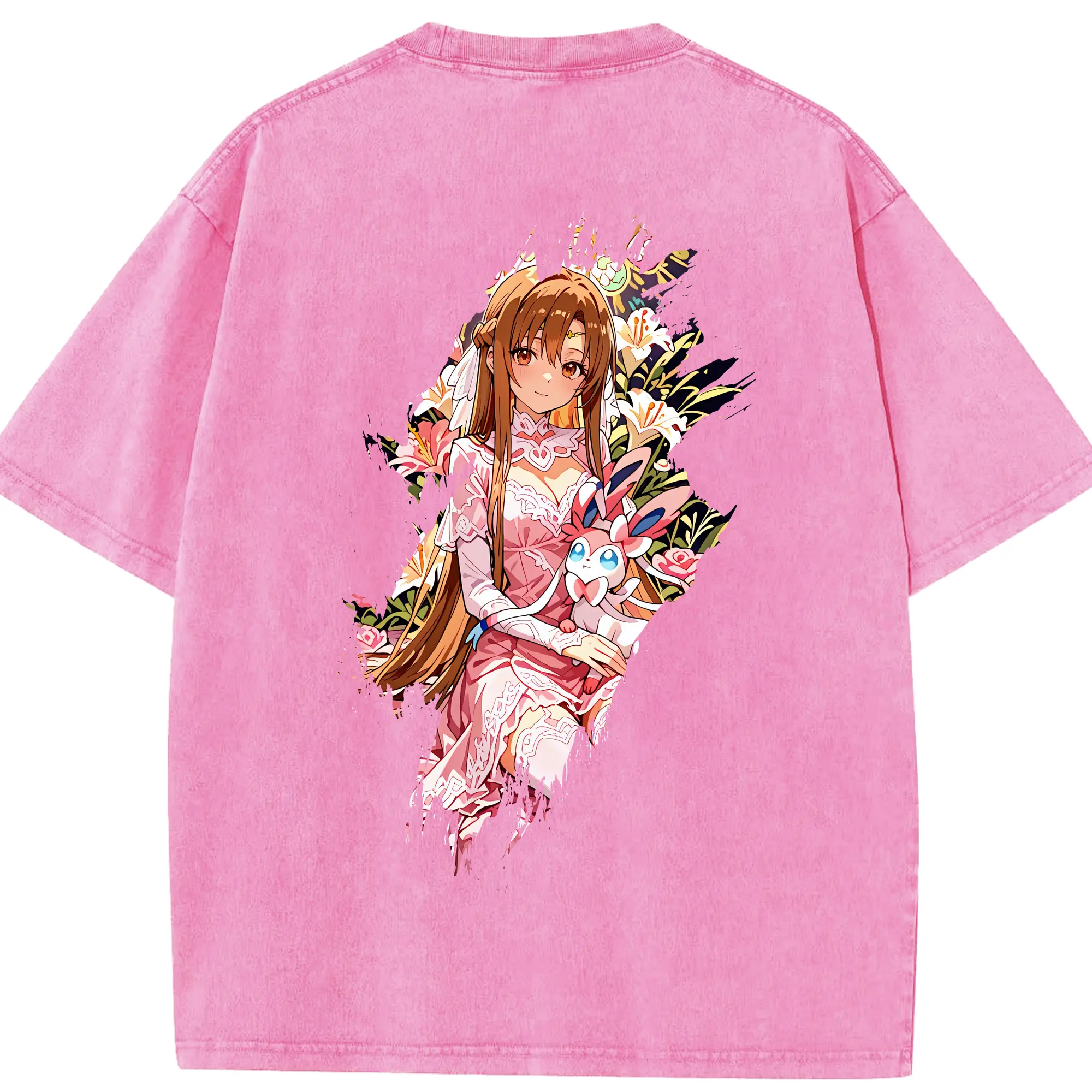 ソードアートオンライン グッズ アスナ - 綿100% ヴィンテージ風 半袖Tシャツ ・ フロントプリント ・ 柔らか肌触り ・ 通気性 快適 ・ スポーツ カジュアル 外出用