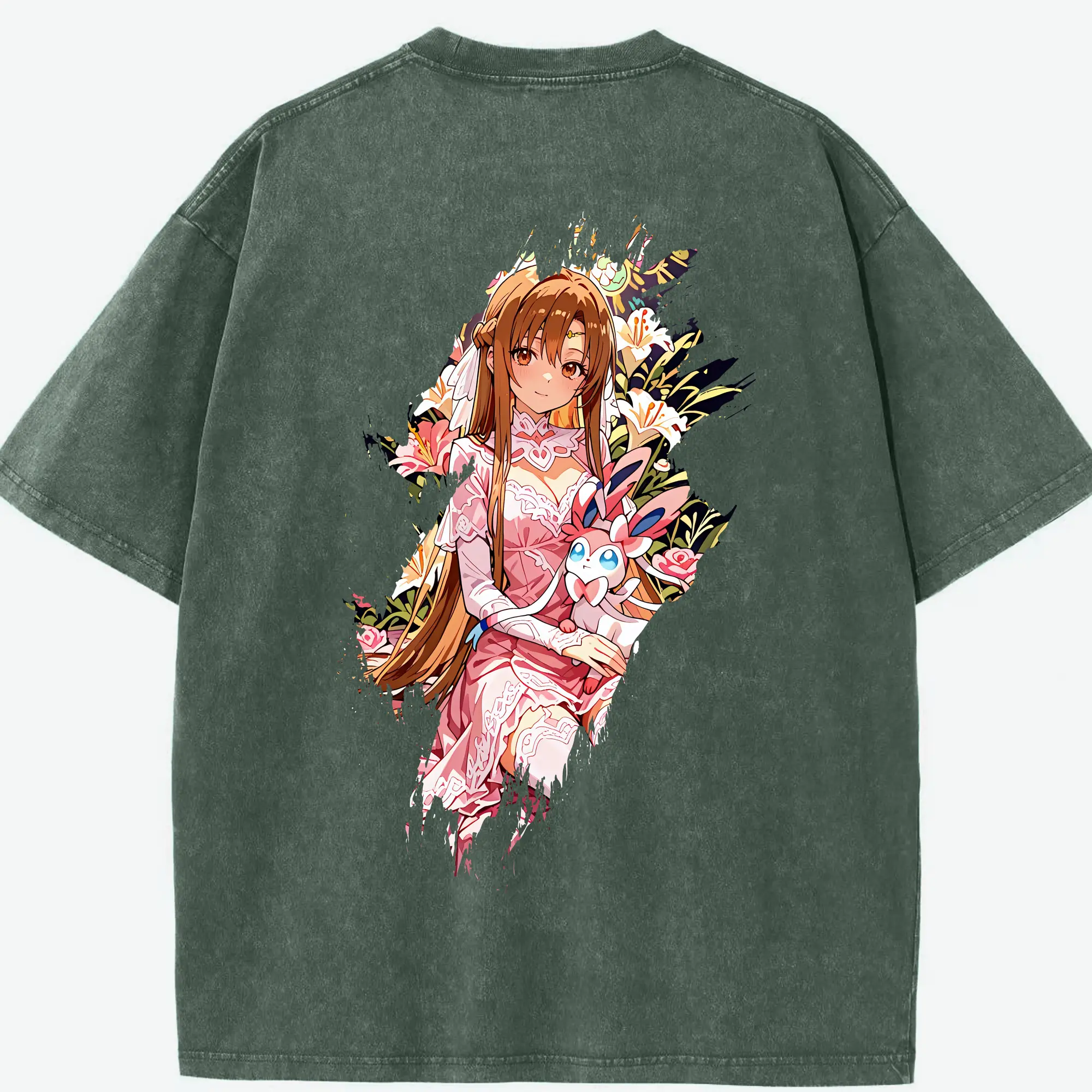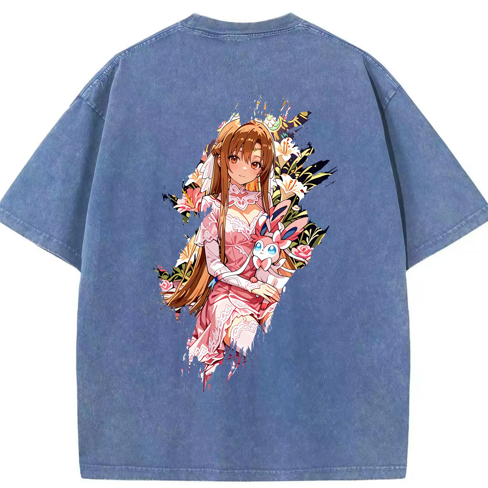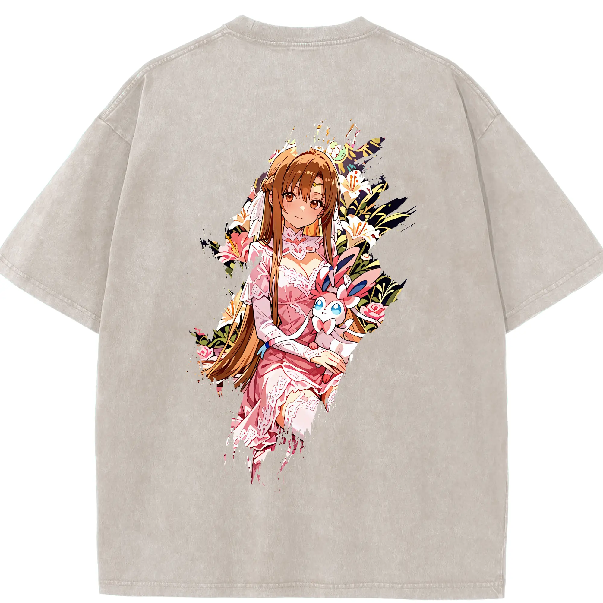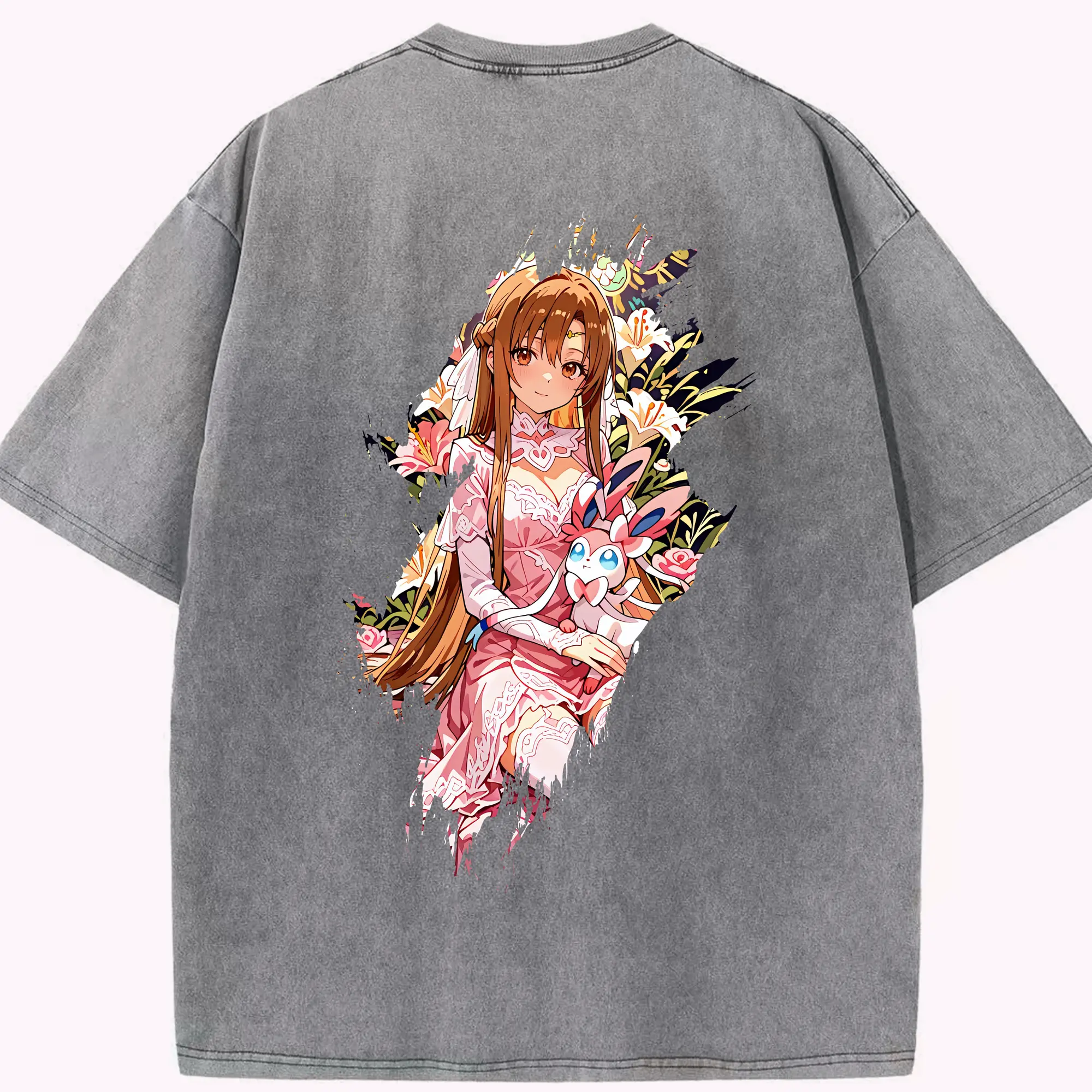 ソードアートオンライン グッズ アスナ - 綿100% ヴィンテージ風 半袖Tシャツ ・ フロントプリント ・ 柔らか肌触り ・ 通気性 快適 ・ スポーツ カジュアル 外出用