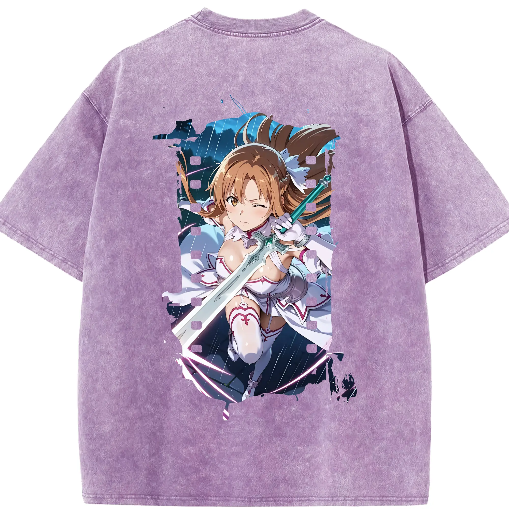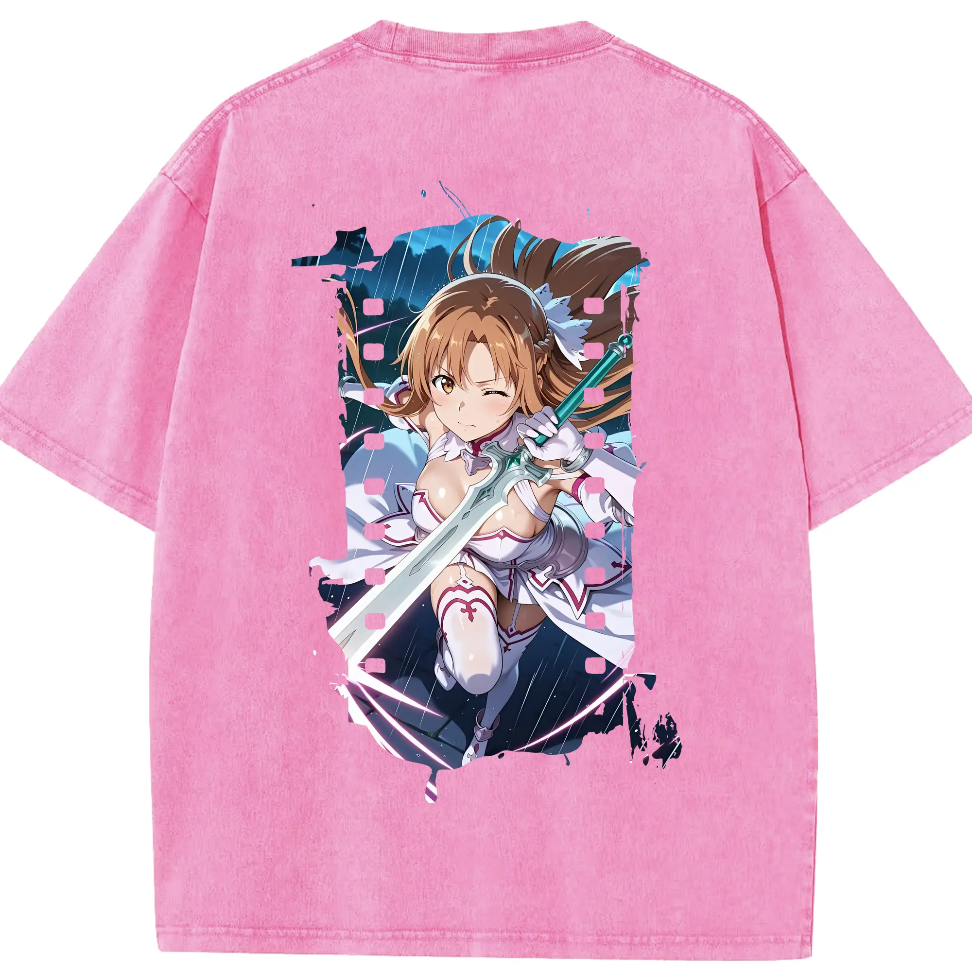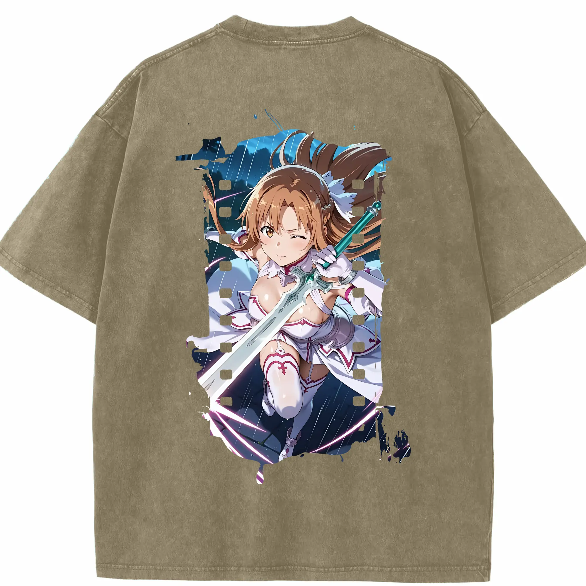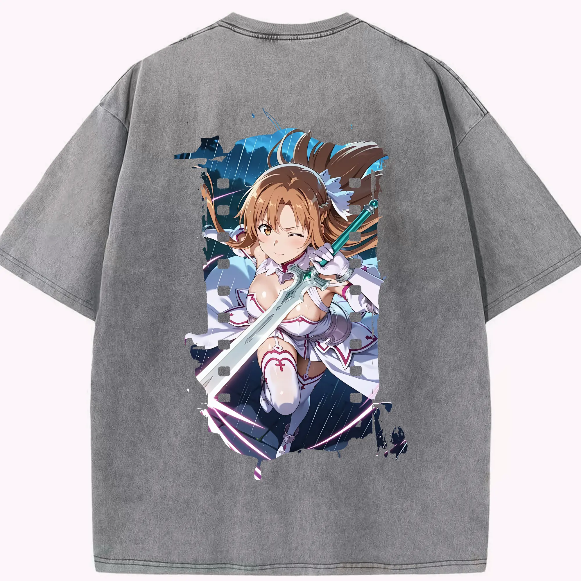 ソードアートオンライン グッズ アスナ - 綿100% ヴィンテージ風 半袖Tシャツ ・ フロントプリント ・ 柔らか肌触り ・ 通気性 快適 ・ スポーツ カジュアル 外出用