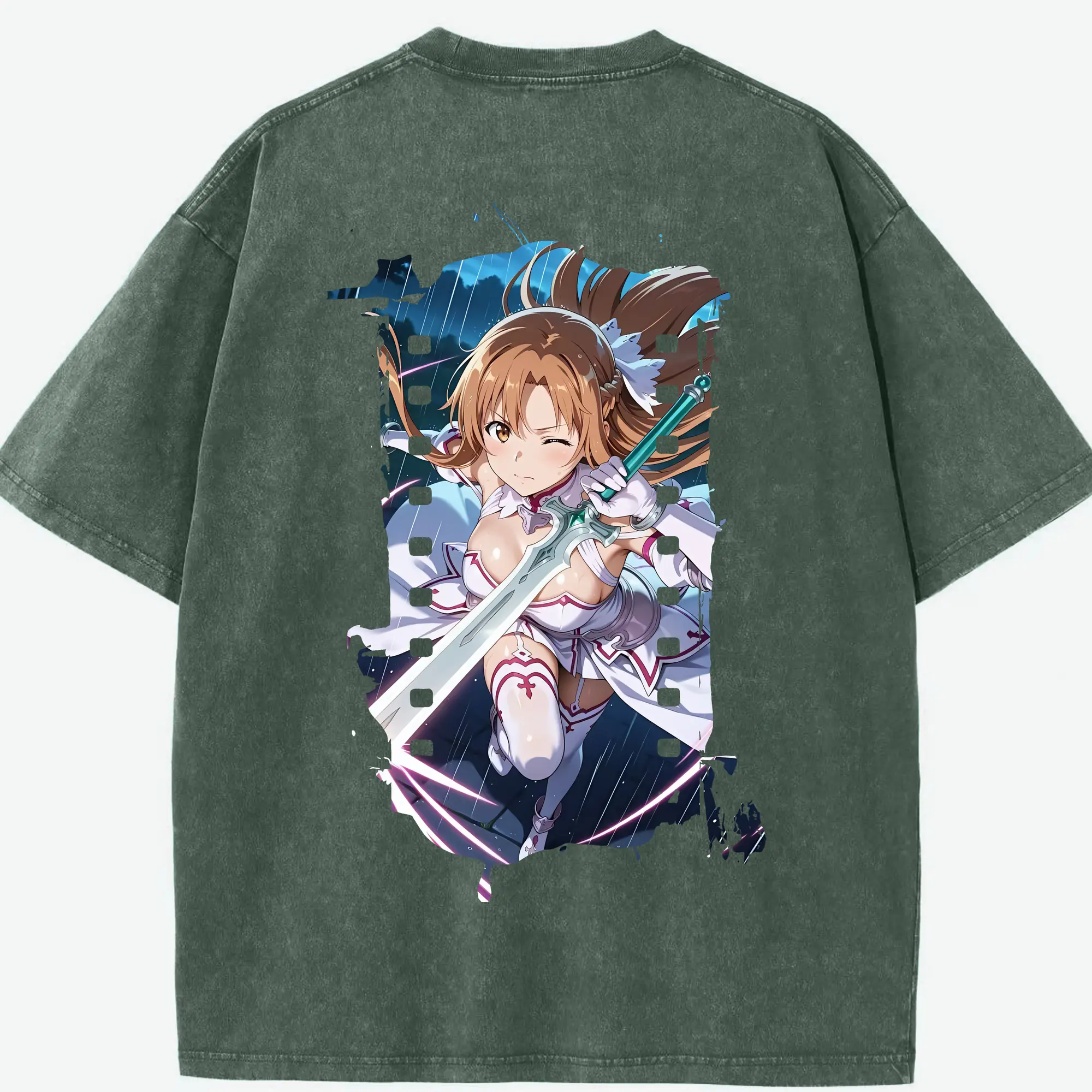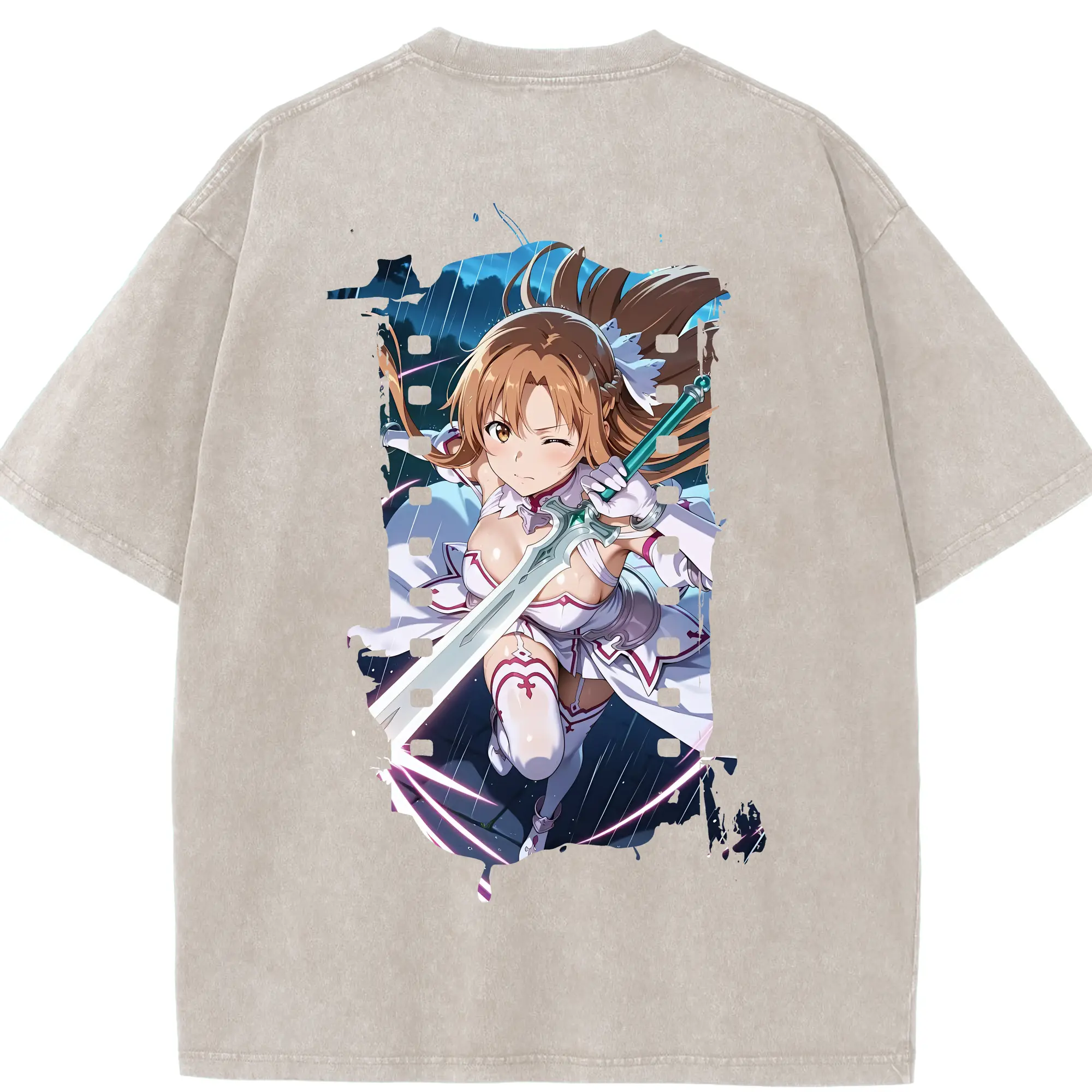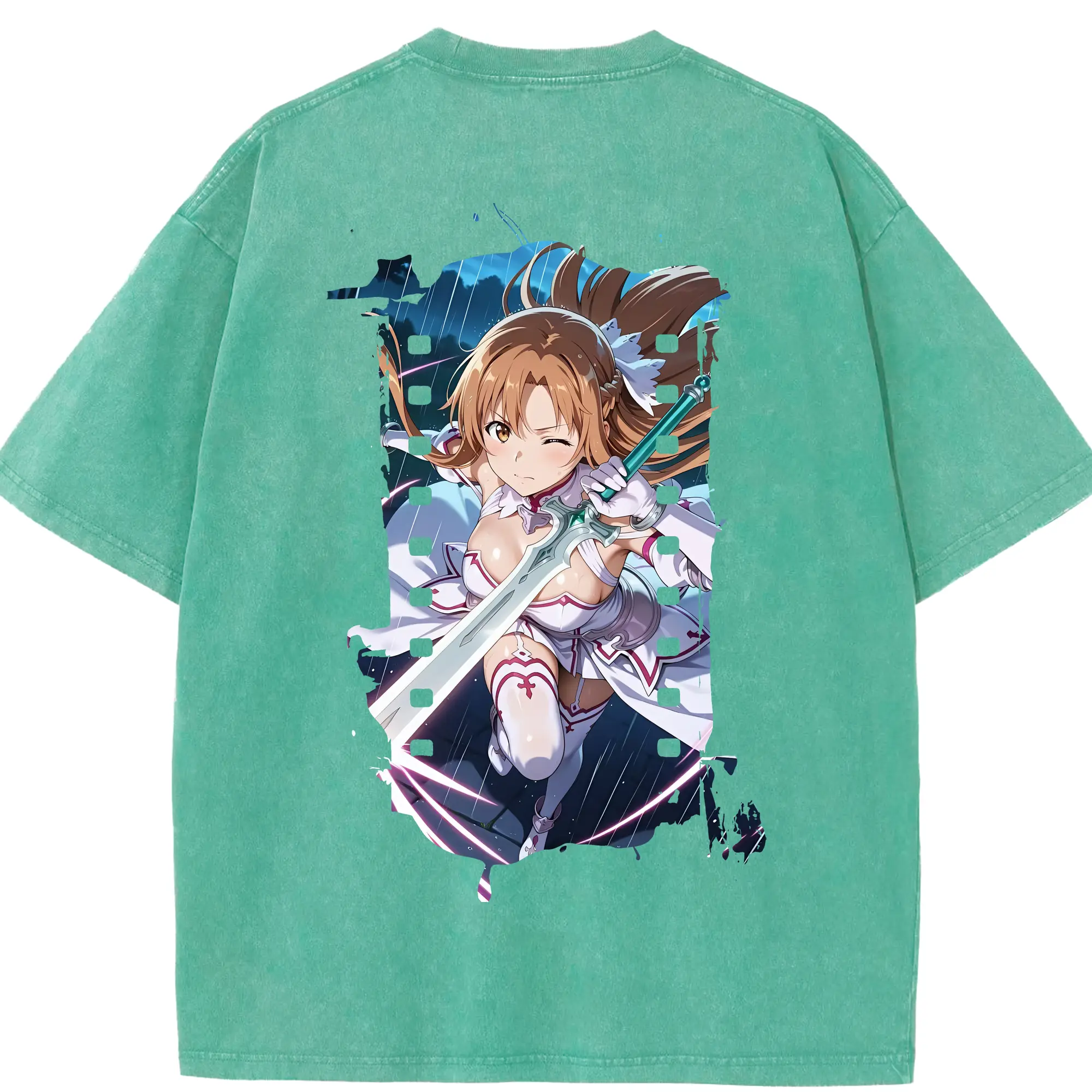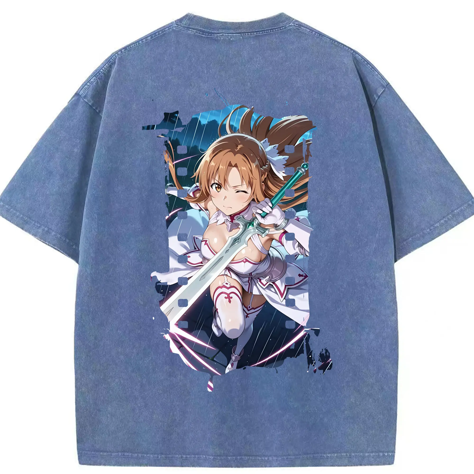 ソードアートオンライン グッズ アスナ - 綿100% ヴィンテージ風 半袖Tシャツ ・ フロントプリント ・ 柔らか肌触り ・ 通気性 快適 ・ スポーツ カジュアル 外出用